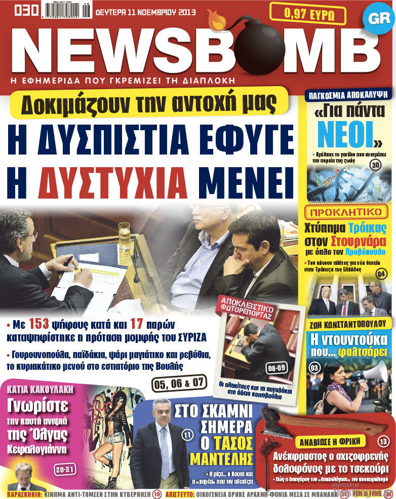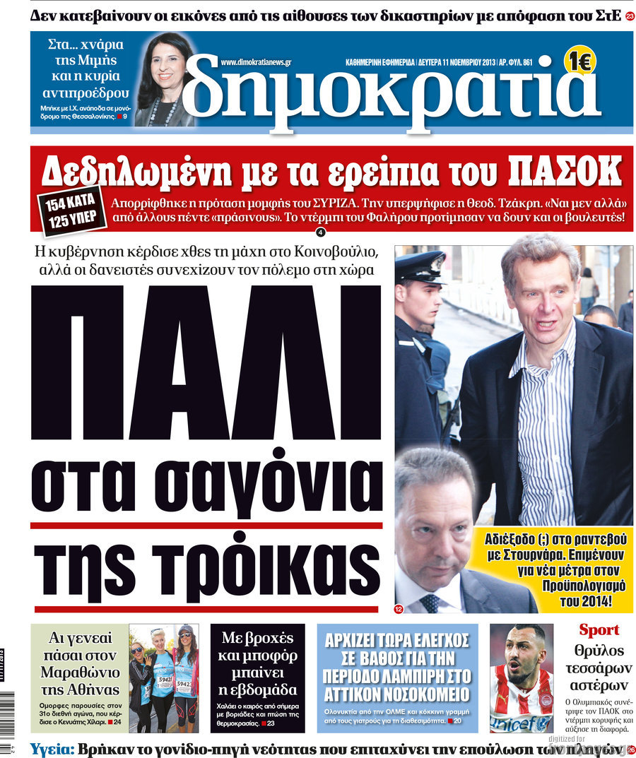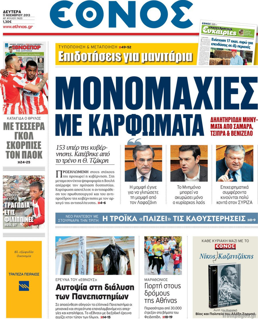 Οι πολιτικές εφημερίδες Enikos Newsroom 08:10, Δευτέρα 11 Νοεμβρίου 2013 Media Οι πολιτικές εφημερίδες Διαβάστε τα πρωτοσέλιδα των πολιτικών εφημερίδων: ΕΦΗΜΕΡΙΔΕΣ ΠΟΛΙΤΙΚΕΣ ΕΦΗΜΕΡΙΔΕΣ ΠΡΩΤΟΣΕΛΙΔΑ Μοιράσου το: σχολίασε κι εσύ (0 σχόλια) Ακολουθήστε το enikos.gr στο Google News και μάθετε πρώτοι όλες τις ειδήσεις Δείτε όλες τις τελευταίες ειδήσεις από την Ελλάδα και τον Κόσμο στο enikos.gr Ειδήσεις Ροή Ειδήσεων 7 ώρες πριν Χριστούγεννα στα μπλόκα οι αγρότες: Άνοιξαν στα διόδια και μοίρασαν προϊόντα στους πολίτες – Νέα σύσκεψη την Κυριακή στη Νίκαια 5 ώρες πριν Ρετζέπ Ταγίπ Ερντογάν: Δεν έχουμε καμία βλέψη στα εδάφη ή την κυριαρχία κανενός – Δεν θα επιτρέψουμε να παραβιαστούν τα δικαιώματά μας 6 ώρες πριν H ακτοφυλακή των ΗΠΑ κατάσχεσε και δεύτερο τάνκερ στα ανοιχτά της Βενεζουέλας – Δείτε βίντεο 7 ώρες πριν Κύκλωμα διακίνησης ναρκωτικών σε σχολεία: Τηλεφωνούσαν στους ανηλίκους την ώρα του μαθήματος – Οι διάλογοι-σοκ, τα «ψευδώνυμα» και τα βασανιστήρια 7 ώρες πριν Αρχεία Επστάιν: Οι 500 σελίδες που λείπουν, τα αναπάντητα ερωτήματα και οι επώνυμοι – Τι έπεται 7 ώρες πριν Αποκαλύφθηκε το άγνωστο «GPS» της αρχαιότητας – Πώς οι ναοί «φώτιζαν» τον δρόμο των ναυτικών πριν από την εφεύρεση των φάρων 8 ώρες πριν Ύπνος: Η διατροφή που μπορεί να σας βοηθήσει να κοιμάστε καλύτερα και να ζήσετε περισσότερο 9 ώρες πριν Αριθμολογία: Ο αριθμός του φύλακα αγγέλου σας, με βάση τον μήνα γέννησής σας – «Έτσι σας στέλνει σημάδια το σύμπαν» 21 ώρες πριν Enerwave: Το νέο «ρεύμα» στη λιανική ενέργειας που αλλάζει την εμπειρία του καταναλωτή 6 λεπτά πριν Οι αθλητικές εφημερίδες 21/12/2025 14 λεπτά πριν Οι πολιτικές εφημερίδες 21/12/2025 22 λεπτά πριν Τα ζώδια σήμερα, Κυριακή 21 Δεκεμβρίου: Αιγόκεροι, αποφασίζετε για το επόμενο κεφάλαιο της ζωής σας 30 λεπτά πριν Εφημερεύοντα φαρμακεία σε Αθήνα και Θεσσαλονίκη (21/12) 37 λεπτά πριν Γιαννούλης Λαρεντζάκης: Πρόταση γάμου στην αρραβωνιαστικιά του, Γιώτα Γεωργοπούλου, έκανε ο παίκτης του Ολυμπιακού – Δείτε φωτογραφίες και βίντεο ENIKOS NETWORK Οι γυναίκες αποκαλύπτουν το πιο ελκυστικό πράγμα που μπορεί να κάνει ένας άνδρας Ομορφιά και αντιγήρανση: Ειδικοί μιλούν για συσκευές περιποίησης του δέρματος «Πολεμική» προετοιμασία από την ευρωπαϊκή βιομηχανία ενέργειας – Η Eurelectric ζητεί «ομπρέλα» προστασίας για τις υποδομές Ακύρωση ΑΦΜ για απάτες – Ποιους βάζει στο στόχαστρο η ΑΑΔΕ Χαρτογραφώντας το «σημείο χωρίς επιστροφή»: Για πρώτη φορά αποκαλύπτεται με λεπτομέρεια το ακανθώδες όριο της ατμόσφαιρας τ... Η Google καταργεί τη λειτουργία «dark web report» – Πώς θα μπορούν οι χρήστες να διαγράφουν τα δεδομένα τους περισσότερα 05:46 , Κυριακή 21 Δεκεμβρίου 2025 Οι αθλητικές εφημερίδες 21/12/2025 Διαβάστε τα πρωτοσέλιδα από τις αθλητικές εφημερίδες, σήμερα 21/12/2025. 05:38 , Κυριακή 21 Δεκεμβρίου 2025 Οι πολιτικές εφημερίδες 21/12/2025 Διαβάστε τα πρωτοσέλιδα από τις πολιτικές εφημερίδες, σήμερα 21/12/2025. 05:08 , Κυριακή 21 Δεκεμβρίου 2025 Σήμερα με τη Realnews: Δωροεπιταγή 10€ Δωροεπιταγή αξίας 10€ για αγορές άνω των 60€ από τα πολυκαταστήματα FactoryOutlet H προσφορά ι... 04:08 , Κυριακή 21 Δεκεμβρίου 2025 Σήμερα με τη Realnews: Ό,τι και αν αγοράσεις, σκανάρεις και κερδίζεις! Σήμερα με τη Realnews: Ό,τι και αν αγοράσεις, σκανάρεις και κερδίζεις! Με το PADU app, το κορυ... ΤΕΛΕΥΤΑΙΕΣ ΕΙΔΗΣΕΙΣ 6 λεπτά πριν Οι αθλητικές εφημερίδες 21/12/2025 14 λεπτά πριν Οι πολιτικές εφημερίδες 21/12/2025 22 λεπτά πριν Τα ζώδια σήμερα, Κυριακή 21 Δεκεμβρίου: Αιγόκεροι,... 30 λεπτά πριν Εφ