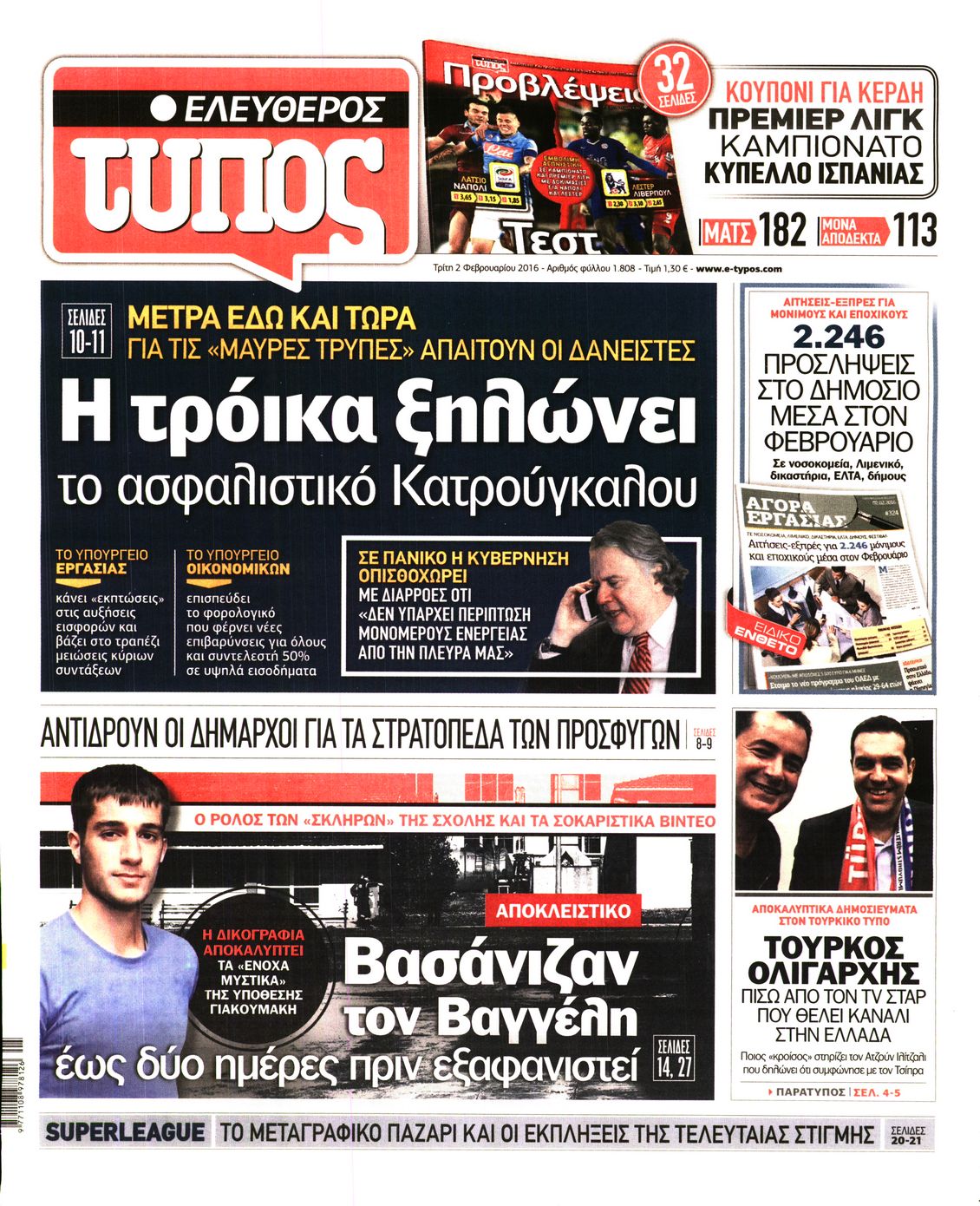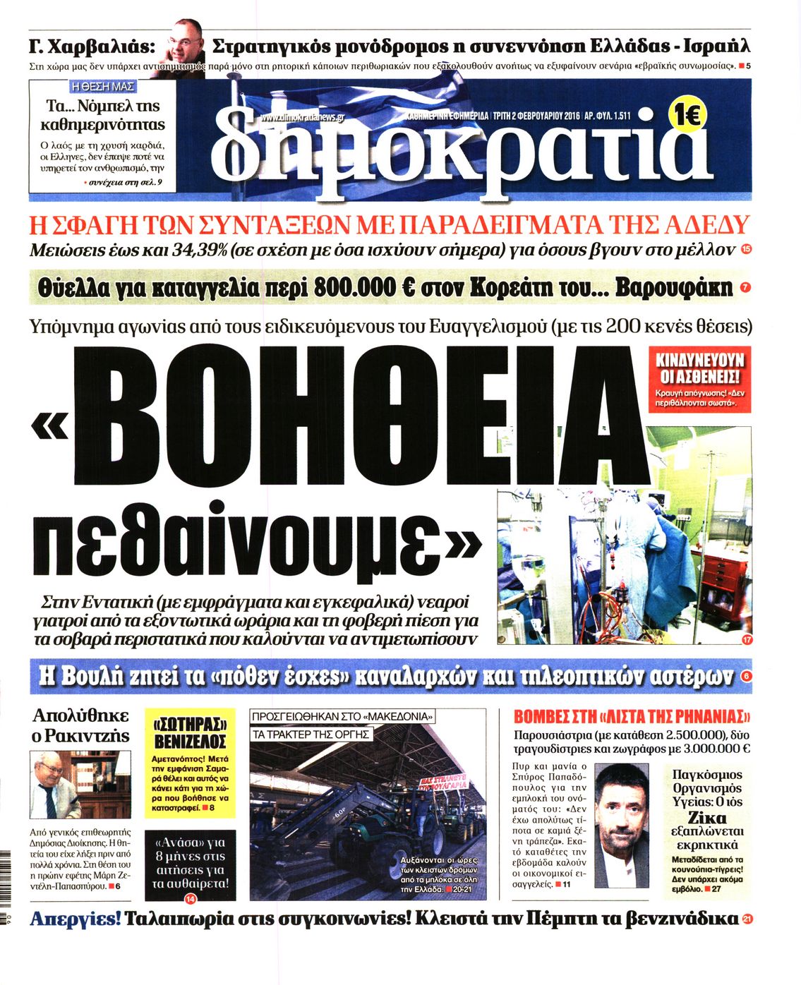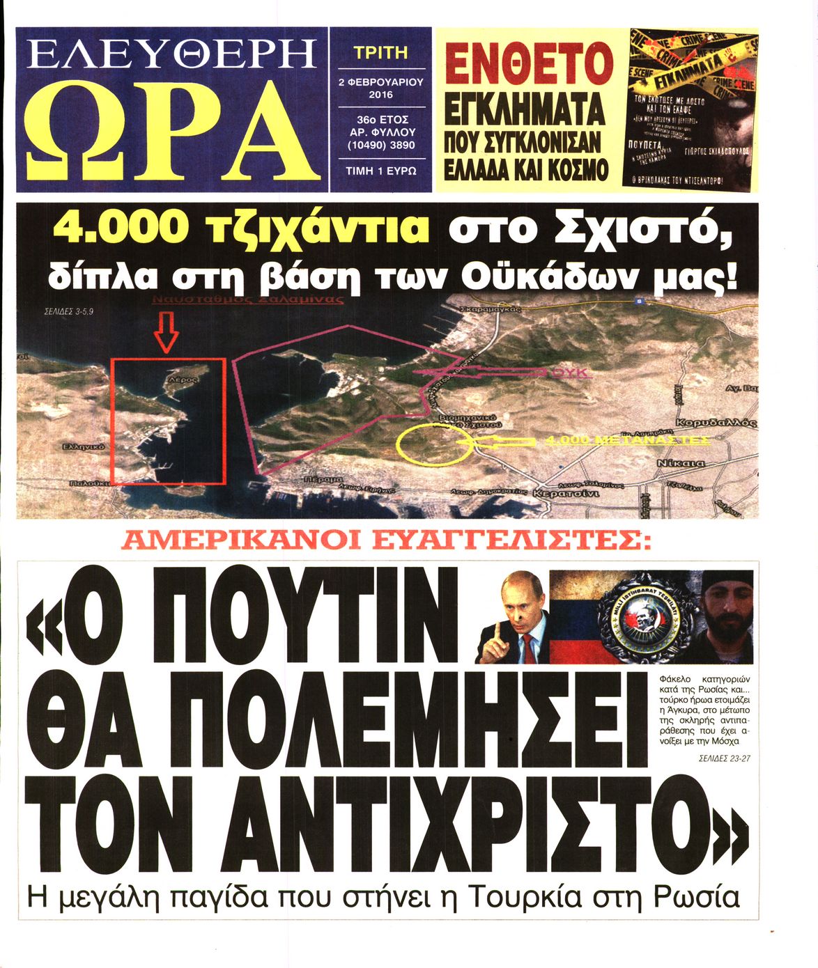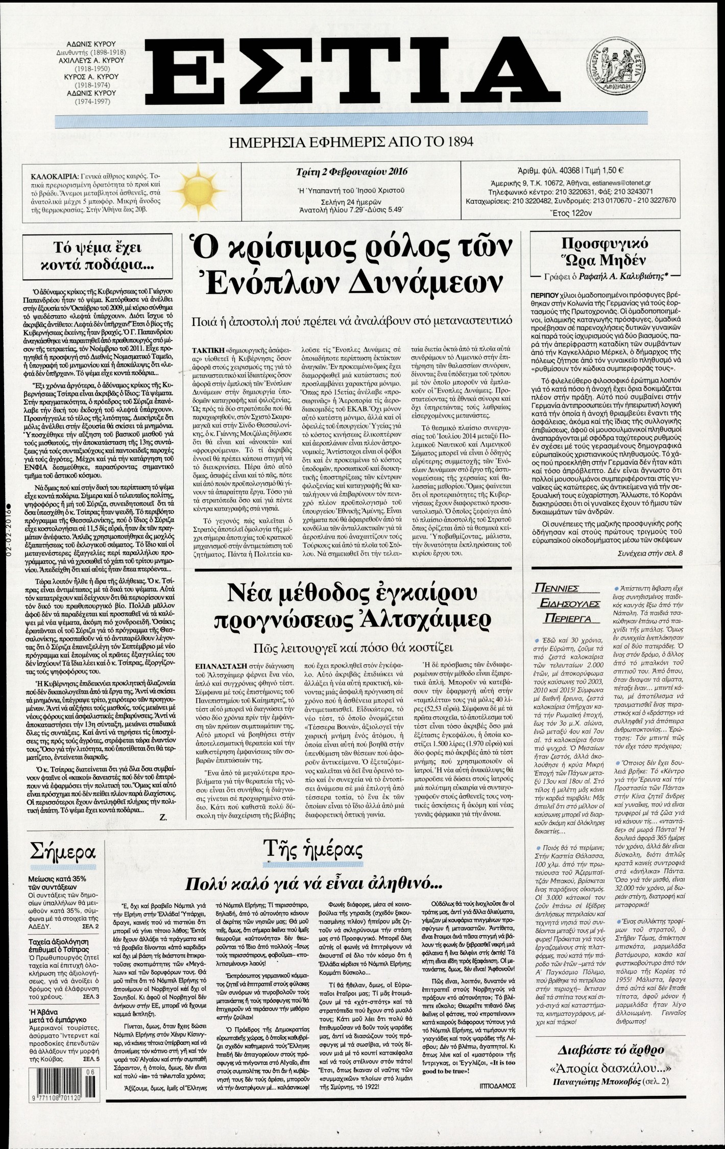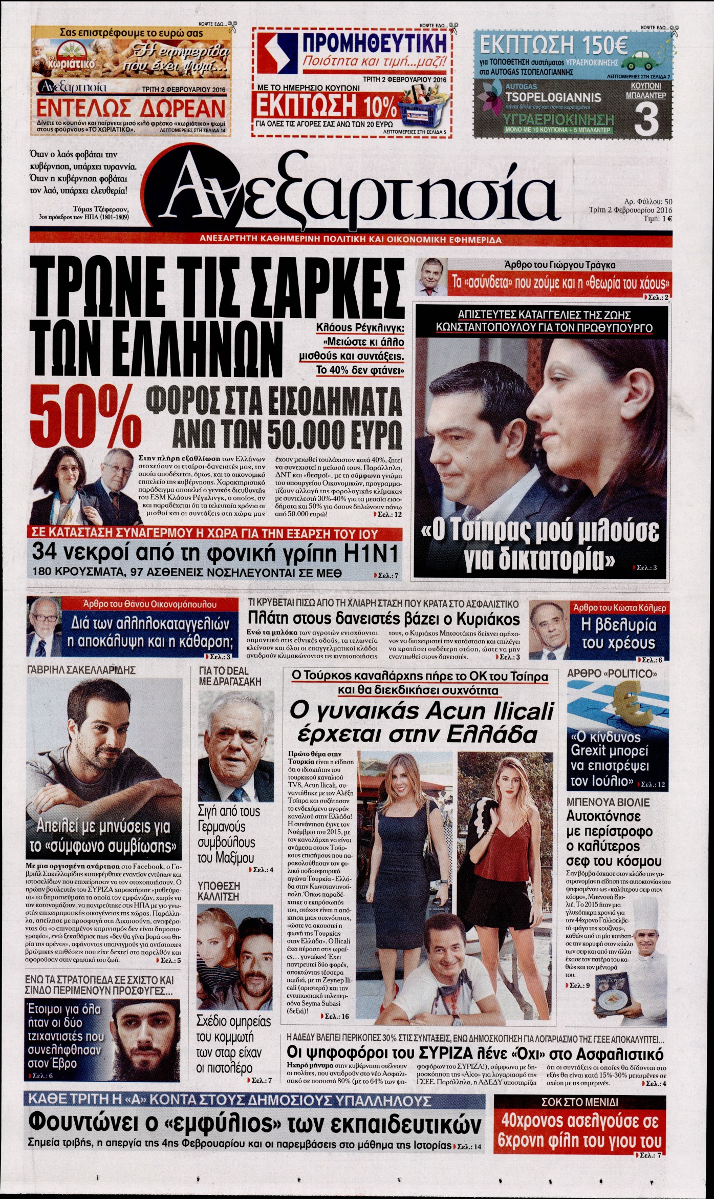 Oι πολιτικές εφημερίδες 2/2/2016 Enikos Newsroom 06:08, Τρίτη 02 Φεβρουαρίου 2016 Media Διαβάστε τα σημερινά πρωτοσέλιδα των πολιτικών εφημερίδων: ΠΟΛΙΤΙΚΕΣ ΕΦΗΜΕΡΙΔΕΣ ΠΡΩΤΟΣΕΛΙΔΑ Μοιράσου το: σχολίασε κι εσύ (0 σχόλια) Ακολουθήστε το enikos.gr στο Google News και μάθετε πρώτοι όλες τις ειδήσεις Δείτε όλες τις τελευταίες ειδήσεις από την Ελλάδα και τον Κόσμο στο enikos.gr Ειδήσεις Ροή Ειδήσεων 8 ώρες πριν Χριστούγεννα στα μπλόκα: Επιμένουν στις κινητοποιήσεις τους οι αγρότες – Ανοίγουν τα διόδια το Σαββατοκύριακο 8 ώρες πριν Ουκρανία: Η άνευ προηγουμένου επίθεση σε ρωσικό τάνκερ στη Μεσόγειο και το μήνυμα προς στον Πούτιν – Το «μακρύ χέρι» του Κιέβου 8 ώρες πριν Πούτιν: Τα μηνύματα σε Ευρώπη και ΝΑΤΟ από το μαραθώνιο «σόου» του – Η απαίτηση για «σεβασμό» και η ειρήνη «με τους όρους» της Μόσχας 7 ώρες πριν ΗΠΑ: Η κυβέρνηση του Ντόναλντ Τραμπ άρχισε να δημοσιοποιεί τα αρχεία Έπσταϊν 7 ώρες πριν Άνω Λιόσια: Πυροβολισμοί σε επιχείρηση με χαλιά – Εντοπίστηκαν 10 κάλυκες 38 λεπτά πριν Αυγά: Πόσα μπορείτε να τρώτε την ημέρα με ασφάλεια για μέγιστη πρόσληψη πρωτεΐνης 1 ώρα πριν Τα ζώδια σήμερα, Σάββατο 20 Δεκεμβρίου: Παρθένοι, το σύμπαν σας δίνει το κλειδί 8 ώρες πριν Ανακαλύφθηκαν αρχαία χρυσά νομίσματα 2.200 ετών που απεικονίζουν τον θεό Απόλλωνα – Η άγνωστη σύνδεση με τον Φίλιππο Β΄ της Μακεδονίας 9 ώρες πριν Ύπνος: Μια κρυφή κατάσταση του εγκεφάλου πριν από τον ύπνο μπορεί να είναι το “κλειδί” για υψηλή ευφυΐα και δημιουργικότητα 6 λεπτά πριν ΔΕΔΔΗΕ: Διακοπές ρεύματος σήμερα (20/12) στην Αθήνα και σε άλλες 7 περιοχές της Αττικής 14 λεπτά πριν Κολομβία: Είκοσι χρόνια κάθειρξη σε πρώην ανώτερο αξιωματικό για 72 εκτελέσεις αμάχων 22 λεπτά πριν Οπτική ψευδαίσθηση: Μόνο αν είσαι ο Σέρλοκ Χολμς θα βρεις τον αριθμό «87» σε 7 δευτερόλεπτα 29 λεπτά πριν Σαρωτικοί οι έλεγχοι στους δρόμους ενόψει εορτών – Μπλόκα της τροχαίας σε κεντρικές αρτηρίες της Αττικής 38 λεπτά πριν Αυγά: Πόσα μπορείτε να τρώτε την ημέρα με ασφάλεια για μέγιστη πρόσληψη πρωτεΐνης ENIKOS NETWORK Το ΕΚΑΒ τιμήθηκε από την Ακαδημία Αθηνών για τα 40 χρόνια προσφοράς του Έχετε πραγματικά μεγάλη καρδιά; 10 χαρακτηριστικά όσων έχουν καλοσύνη Αναστολή μέτρων αναγκαστικής εκτέλεσης για κτηνοτρόφους που πλήττονται από την ευλογιά των αιγοπροβάτων Πλήρης επάρκεια προϊόντων στις λαϊκές της Αττικής, παρά τις αγροτικές κινητοποιήσεις – Τι απαντούν οι πωλητές Χαρτογραφώντας το «σημείο χωρίς επιστροφή»: Για πρώτη φορά αποκαλύπτεται με λεπτομέρεια το ακανθώδες όριο της ατμόσφαιρας τ... Η Google καταργεί τη λειτουργία «dark web report» – Πώς θα μπορούν οι χρήστες να διαγράφουν τα δεδομένα τους περισσότερα 05:48 , Σάββατο 20 Δεκεμβρίου 2025 Οι οικονομικές εφημερίδες 20/12/2025 Διαβάστε τα πρωτοσέλιδα από τις οικονομικές εφημερίδες, σήμερα 20/12/2025. 05:43 , Σάββατο 20 Δεκεμβρίου 2025 Οι αθλητικές εφημερίδες 20/12/2025 Διαβάστε τα πρωτοσέλιδα από τις αθλητικές εφημερίδες, σήμερα 20/12/2025. 05:38 , Σάββατο 20 Δεκεμβρίου 2025 Οι πολιτικές εφημερίδες 20/12/2025 Διαβάστε τα πρωτοσέλιδα από τις πολιτικές εφημερίδες, σήμερα 20/12/2025. 04:20 , Σάββατο 20 Δεκεμβρίου 2025 Αγγελική Νικολούλη: Τα συλλυπητήρια για την απώλεια της Ειρήνης Μαρινάκη Τα συλληπητήρια στον πρόεδρο του Mega, τον Βαγγέλη Μαρινάκη, για την απώλεια της μητέρας του Ε... ΤΕΛΕΥΤΑΙΕΣ ΕΙΔΗΣΕΙΣ 6 λεπτά πριν ΔΕΔΔΗΕ: Διακοπές ρεύματος σήμερα (20/12) στην Αθήνα και... 14 λεπτά πριν Κολομβία: Είκοσι χρόνια κάθειρξη σε πρώην ανώτερο... 22 λεπτά πριν Οπτική ψευδαί