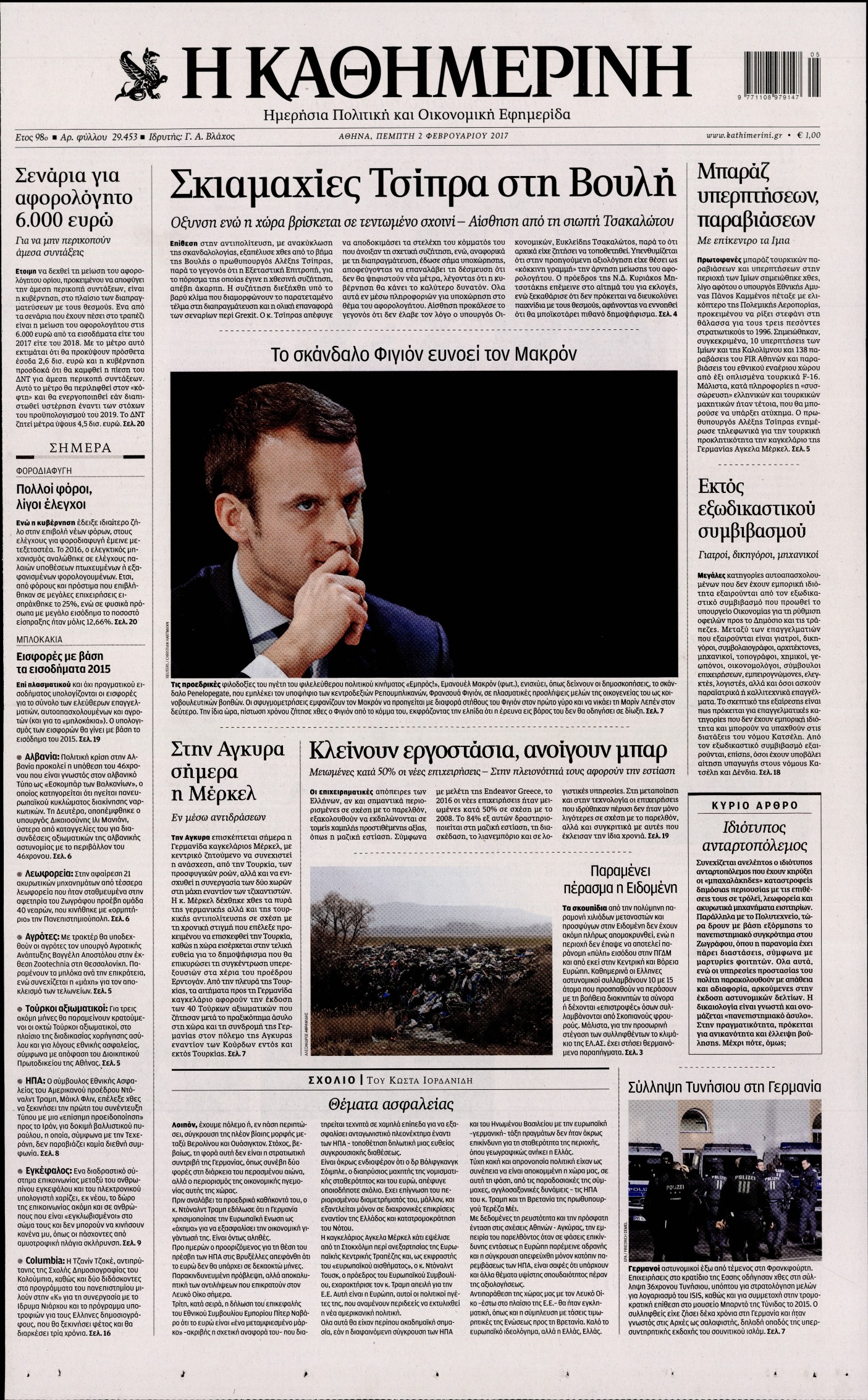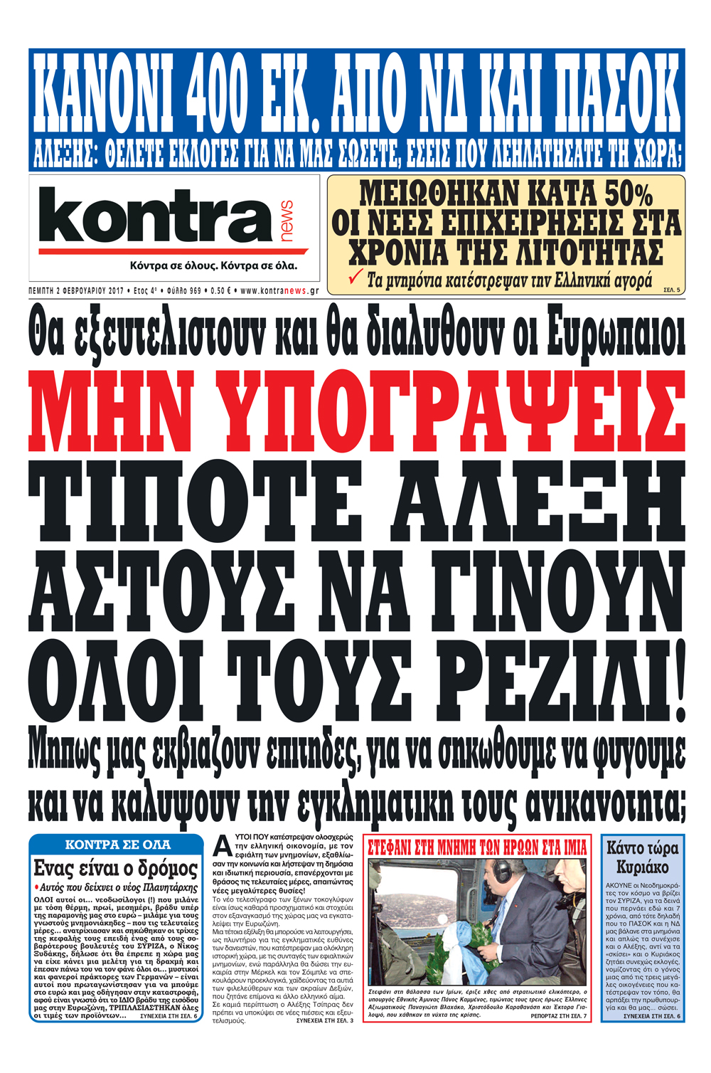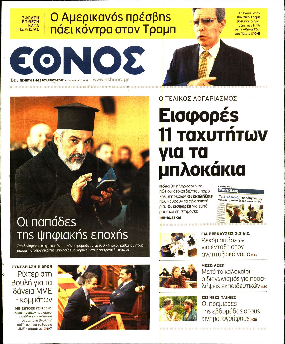 Οι πολιτικές εφημερίδες 2/2/2017 Enikos Newsroom 02:02, Πέμπτη 02 Φεβρουαρίου 2017 Media Διαβάστε τα σημερινά πρωτοσέλιδα των πολιτικών εφημερίδων: ΠΟΛΙΤΙΚΕΣ ΕΦΗΜΕΡΙΔΕΣ ΠΡΩΤΟΣΕΛΙΔΑ Μοιράσου το: σχολίασε κι εσύ (0 σχόλια) Ακολουθήστε το enikos.gr στο Google News και μάθετε πρώτοι όλες τις ειδήσεις Δείτε όλες τις τελευταίες ειδήσεις από την Ελλάδα και τον Κόσμο στο enikos.gr Ειδήσεις Ροή Ειδήσεων 4 ώρες πριν Πώς δρούσε το κύκλωμα που διακινούσε ναρκωτικά σε σχολεία – Υπέβαλαν σε βασανιστήρια όσους δεν τηρούσαν τους «κανόνες πειθαρχίας» 4 ώρες πριν Αγρότες: Γιορτές στα μπλόκα με ανοιχτά διόδια – Δικογραφία στα Ιωάννινα για το σήκωμα των μπαρών 4 ώρες πριν Ζελένσκι: Οι Αμερικανοί πρότειναν συνάντηση Ουκρανίας, ΗΠΑ, Ρωσίας στο Μαϊάμι 2 ώρες πριν Τραμπ: Πώς περνάει τις γιορτές των Χριστουγέννων – Τα δώρα που κάνει στα εγγόνια του 3 ώρες πριν Μικαέλα Μπέντχαους: Ο πρώτος άνθρωπος σε αναπηρικό αμαξίδιο που ταξίδεψε στο διάστημα – ΒΙΝΤΕΟ 5 ώρες πριν Η τύχη χαμογελά σε 3 ζώδια έως τις 28 Δεκεμβρίου – «Προσέξτε τις επιλογές σας και η επιμονή σας θα ανταμειφθεί» 6 ώρες πριν Μία ανεκμετάλλευτη πηγή θα μπορούσε να προσφέρει ανεξάντλητη ενέργεια – Οι επιστήμονες ίσως γνωρίζουν πώς να την ξεκλειδώσουν 2 ώρες πριν Μήπως οι γιορτές σας δεν είναι τόσο τέλειες; 7 χριστουγεννιάτικες συνήθειες που μαρτυρούν ότι μια οικογένεια είναι δυσλειτουργική 12 ώρες πριν Enerwave: Το νέο «ρεύμα» στη λιανική ενέργειας που αλλάζει την εμπειρία του καταναλωτή 10 λεπτά πριν Αυτή την Κυριακή με τη Realnews: Instyle, μαζί Drive και Realnews Geopolitics 12 λεπτά πριν Ο ΑΝΤ1 γεμίζει τις γιορτές με μουσική – Ποιους καλλιτέχνες θα απολαύσουμε 22 λεπτά πριν Πάπας Λέων: Όταν έχει αϋπνίες επενδύει παραγωγικά τον χρόνο του – Ποιο παιχνίδι παίζει στο κινητό 30 λεπτά πριν Πέθανε η σπουδαία αρχαιολόγος Λίλα Μαραγκού 40 λεπτά πριν Πώς να απαλλαγείτε από τη μυρωδιά του τηγανητού φαγητού: Το μυστικό βρίσκεται στην κουζίνα σας ENIKOS NETWORK Οι γυναίκες αποκαλύπτουν το πιο ελκυστικό πράγμα που μπορεί να κάνει ένας άνδρας Ομορφιά και αντιγήρανση: Ειδικοί μιλούν για συσκευές περιποίησης του δέρματος Πορτοκαλί τιμολόγια ρεύματος: Τα σημεία που πρέπει να προσέξουν οι καταναλωτές – Πότε θα εφαρμοστούν Θεοδωρικάκος: Εθνική στρατηγική για τους ημιαγωγούς – Πρώτο βήμα η χρηματοδότηση του πρώτου Κέντρου Ικανοτήτων, με 3,63 εκα... Χαρτογραφώντας το «σημείο χωρίς επιστροφή»: Για πρώτη φορά αποκαλύπτεται με λεπτομέρεια το ακανθώδες όριο της ατμόσφαιρας τ... Η Google καταργεί τη λειτουργία «dark web report» – Πώς θα μπορούν οι χρήστες να διαγράφουν τα δεδομένα τους περισσότερα 20:30 , Σάββατο 20 Δεκεμβρίου 2025 Αυτή την Κυριακή με τη Realnews: Instyle, μαζί Drive και Realnews Geopolitics Αυτή την Κυριακή με τη Realnews: Instyle, μαζί Drive και Realnews Geopolitics Instyle Η Άννα Ρ... 20:28 , Σάββατο 20 Δεκεμβρίου 2025 Ο ΑΝΤ1 γεμίζει τις γιορτές με μουσική – Ποιους καλλιτέχνες θα απολαύσουμε Φέτος στον ΑΝΤ1 γιορτάζουμε τις νύχτες μας παρέα με αγαπημένους καλλιτέχνες και μεγάλες μουσι... 18:19 , Σάββατο 20 Δεκεμβρίου 2025 HOTΕΛ ΕΛVIRA: Η Ελβίρα μαθαίνει πως ο Χάρι μένει κρυφά στο ξενοδοχείο του Παντελή Συνεχίζονται οι εκλογές για πρόεδρο, στο νέο επεισόδιο της κωμικής σειράς του MEGA, HOTΕΛ ΕΛVI... 14:04 , Σάββατο 20 Δεκεμβρίου 2025 Η Realnews αυτής της Κυριακής (21/12/2025) Με τίτλο: «Ασπίδα προστασίας για την Ελλάδα» κυκλοφορεί, αυτήν την Κυριακή, η Realnews. Σημαντ... ΤΕΛΕΥΤΑΙΕΣ ΕΙΔΗΣΕΙΣ 10 λεπτά πριν Αυτή την Κυριακή με τη Realnews: Instyle, μαζί Drive και Realnews... 12 λεπτά πριν Ο ΑΝΤ1 γ
