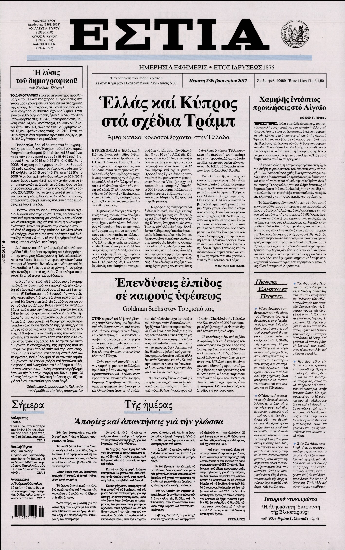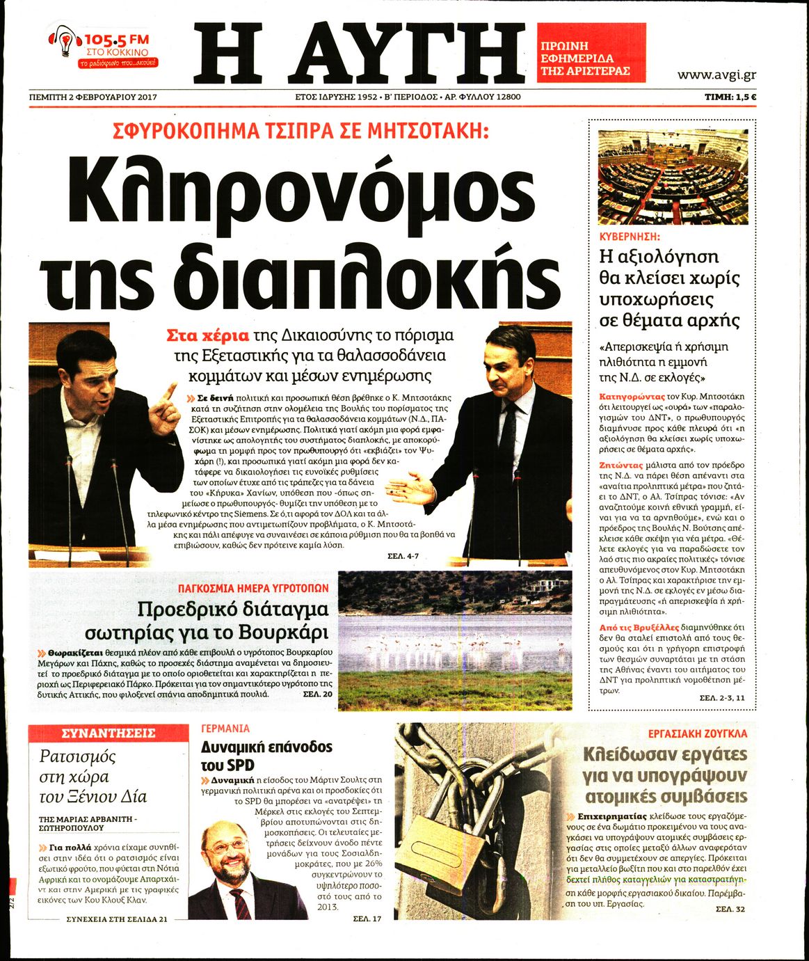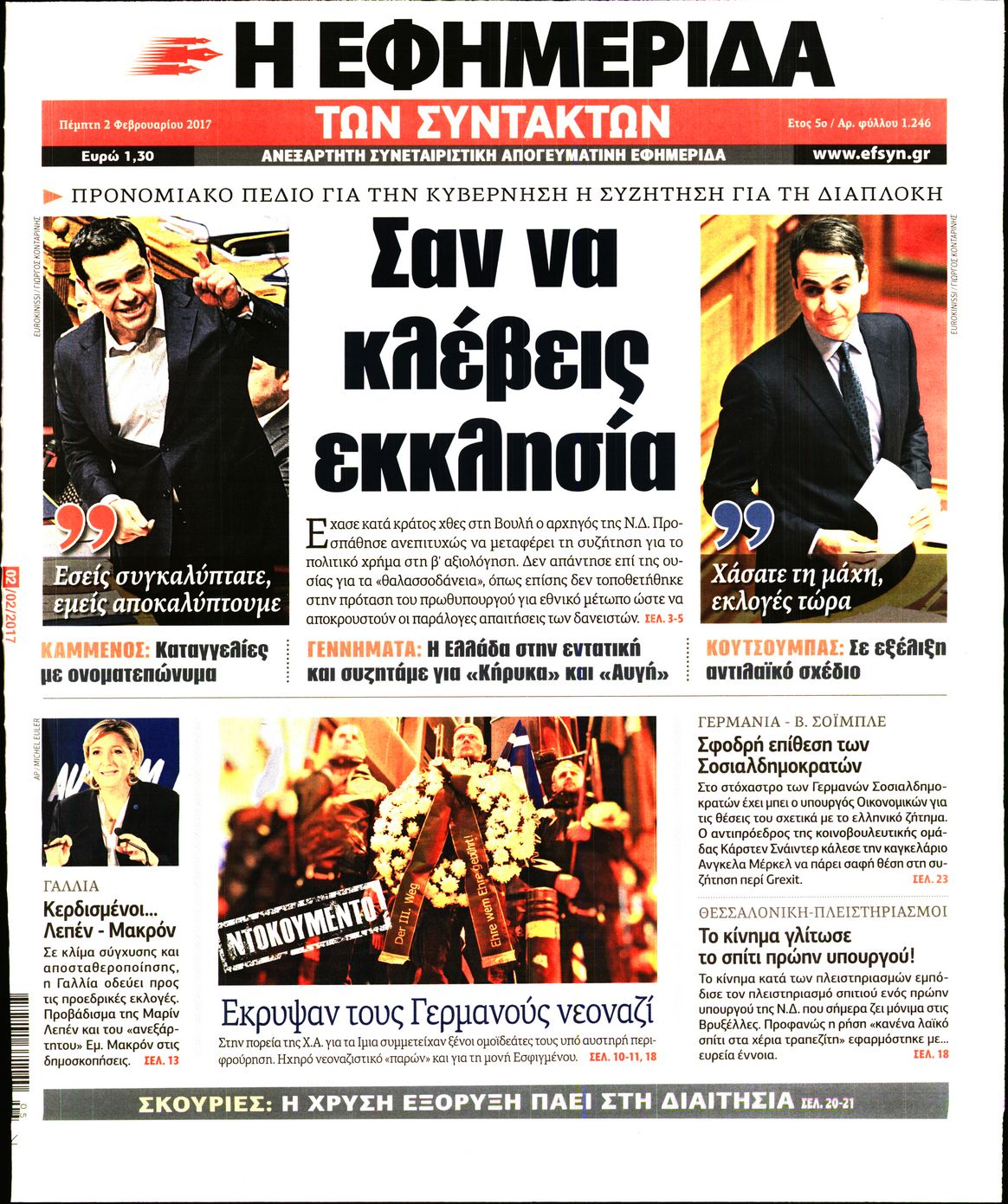 Οι πολιτικές εφημερίδες 2/2/2017 Enikos Newsroom 02:02, Πέμπτη 02 Φεβρουαρίου 2017 Media Διαβάστε τα σημερινά πρωτοσέλιδα των πολιτικών εφημερίδων: ΠΟΛΙΤΙΚΕΣ ΕΦΗΜΕΡΙΔΕΣ ΠΡΩΤΟΣΕΛΙΔΑ Μοιράσου το: σχολίασε κι εσύ (0 σχόλια) Ακολουθήστε το enikos.gr στο Google News και μάθετε πρώτοι όλες τις ειδήσεις Δείτε όλες τις τελευταίες ειδήσεις από την Ελλάδα και τον Κόσμο στο enikos.gr Ειδήσεις Ροή Ειδήσεων 4 ώρες πριν Πώς δρούσε το κύκλωμα που διακινούσε ναρκωτικά σε σχολεία – Υπέβαλαν σε βασανιστήρια όσους δεν τηρούσαν τους «κανόνες πειθαρχίας» 4 ώρες πριν Αγρότες: Γιορτές στα μπλόκα με ανοιχτά διόδια – Δικογραφία στα Ιωάννινα για το σήκωμα των μπαρών 4 ώρες πριν Ζελένσκι: Οι Αμερικανοί πρότειναν συνάντηση Ουκρανίας, ΗΠΑ, Ρωσίας στο Μαϊάμι 2 ώρες πριν Τραμπ: Πώς περνάει τις γιορτές των Χριστουγέννων – Τα δώρα που κάνει στα εγγόνια του 3 ώρες πριν Μικαέλα Μπέντχαους: Ο πρώτος άνθρωπος σε αναπηρικό αμαξίδιο που ταξίδεψε στο διάστημα – ΒΙΝΤΕΟ 5 ώρες πριν Η τύχη χαμογελά σε 3 ζώδια έως τις 28 Δεκεμβρίου – «Προσέξτε τις επιλογές σας και η επιμονή σας θα ανταμειφθεί» 6 ώρες πριν Μία ανεκμετάλλευτη πηγή θα μπορούσε να προσφέρει ανεξάντλητη ενέργεια – Οι επιστήμονες ίσως γνωρίζουν πώς να την ξεκλειδώσουν 2 ώρες πριν Μήπως οι γιορτές σας δεν είναι τόσο τέλειες; 7 χριστουγεννιάτικες συνήθειες που μαρτυρούν ότι μια οικογένεια είναι δυσλειτουργική 12 ώρες πριν Enerwave: Το νέο «ρεύμα» στη λιανική ενέργειας που αλλάζει την εμπειρία του καταναλωτή 10 λεπτά πριν Αυτή την Κυριακή με τη Realnews: Instyle, μαζί Drive και Realnews Geopolitics 12 λεπτά πριν Ο ΑΝΤ1 γεμίζει τις γιορτές με μουσική – Ποιους καλλιτέχνες θα απολαύσουμε 22 λεπτά πριν Πάπας Λέων: Όταν έχει αϋπνίες επενδύει παραγωγικά τον χρόνο του – Ποιο παιχνίδι παίζει στο κινητό 30 λεπτά πριν Πέθανε η σπουδαία αρχαιολόγος Λίλα Μαραγκού 40 λεπτά πριν Πώς να απαλλαγείτε από τη μυρωδιά του τηγανητού φαγητού: Το μυστικό βρίσκεται στην κουζίνα σας ENIKOS NETWORK Οι γυναίκες αποκαλύπτουν το πιο ελκυστικό πράγμα που μπορεί να κάνει ένας άνδρας Ομορφιά και αντιγήρανση: Ειδικοί μιλούν για συσκευές περιποίησης του δέρματος Πορτοκαλί τιμολόγια ρεύματος: Τα σημεία που πρέπει να προσέξουν οι καταναλωτές – Πότε θα εφαρμοστούν Θεοδωρικάκος: Εθνική στρατηγική για τους ημιαγωγούς – Πρώτο βήμα η χρηματοδότηση του πρώτου Κέντρου Ικανοτήτων, με 3,63 εκα... Χαρτογραφώντας το «σημείο χωρίς επιστροφή»: Για πρώτη φορά αποκαλύπτεται με λεπτομέρεια το ακανθώδες όριο της ατμόσφαιρας τ... Η Google καταργεί τη λειτουργία «dark web report» – Πώς θα μπορούν οι χρήστες να διαγράφουν τα δεδομένα τους περισσότερα 20:30 , Σάββατο 20 Δεκεμβρίου 2025 Αυτή την Κυριακή με τη Realnews: Instyle, μαζί Drive και Realnews Geopolitics Αυτή την Κυριακή με τη Realnews: Instyle, μαζί Drive και Realnews Geopolitics Instyle Η Άννα Ρ... 20:28 , Σάββατο 20 Δεκεμβρίου 2025 Ο ΑΝΤ1 γεμίζει τις γιορτές με μουσική – Ποιους καλλιτέχνες θα απολαύσουμε Φέτος στον ΑΝΤ1 γιορτάζουμε τις νύχτες μας παρέα με αγαπημένους καλλιτέχνες και μεγάλες μουσι... 18:19 , Σάββατο 20 Δεκεμβρίου 2025 HOTΕΛ ΕΛVIRA: Η Ελβίρα μαθαίνει πως ο Χάρι μένει κρυφά στο ξενοδοχείο του Παντελή Συνεχίζονται οι εκλογές για πρόεδρο, στο νέο επεισόδιο της κωμικής σειράς του MEGA, HOTΕΛ ΕΛVI... 14:04 , Σάββατο 20 Δεκεμβρίου 2025 Η Realnews αυτής της Κυριακής (21/12/2025) Με τίτλο: «Ασπίδα προστασίας για την Ελλάδα» κυκλοφορεί, αυτήν την Κυριακή, η Realnews. Σημαντ... ΤΕΛΕΥΤΑΙΕΣ ΕΙΔΗΣΕΙΣ 10 λεπτά πριν Αυτή την Κυριακή με τη Realnews: Instyle, μαζί Drive και Realnews... 12 λεπτά πριν Ο ΑΝΤ1 γ