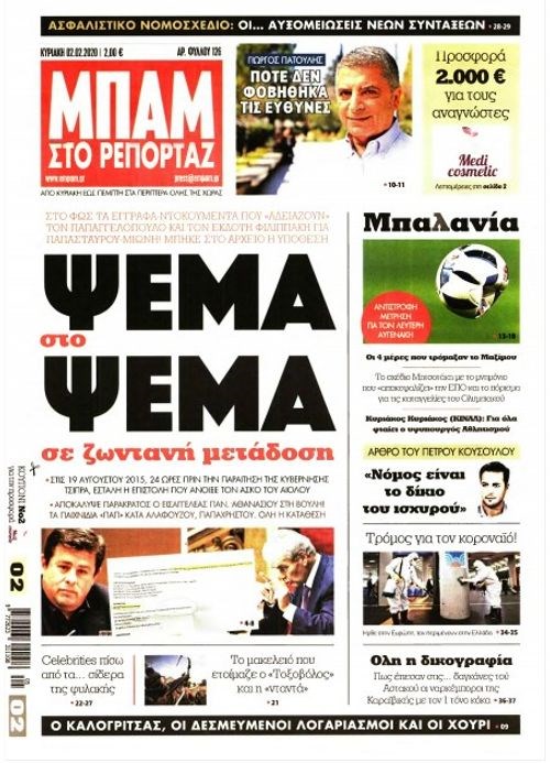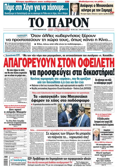 Οι πολιτικές εφημερίδες 2/2/2020 Κώστας Τεό 07:28, Κυριακή 02 Φεβρουαρίου 2020 Media Διαβάστε τα πρωτοσέλιδα των πολιτικών εφημερίδων: ΠΟΛΙΤΙΚΕΣ ΕΦΗΜΕΡΙΔΕΣ ΠΡΩΤΟΣΕΛΙΔΑ Μοιράσου το: σχολίασε κι εσύ (0 σχόλια) Ακολουθήστε το enikos.gr στο Google News και μάθετε πρώτοι όλες τις ειδήσεις Δείτε όλες τις τελευταίες ειδήσεις από την Ελλάδα και τον Κόσμο στο enikos.gr Ειδήσεις Ροή Ειδήσεων 5 ώρες πριν Χριστούγεννα στα μπλόκα: Επιμένουν στις κινητοποιήσεις τους οι αγρότες – Ανοίγουν τα διόδια το Σαββατοκύριακο 6 ώρες πριν Ουκρανία: Η άνευ προηγουμένου επίθεση σε ρωσικό τάνκερ στη Μεσόγειο και το μήνυμα προς στον Πούτιν – Το «μακρύ χέρι» του Κιέβου 5 ώρες πριν Πούτιν: Τα μηνύματα σε Ευρώπη και ΝΑΤΟ από το μαραθώνιο «σόου» του – Η απαίτηση για «σεβασμό» και η ειρήνη «με τους όρους» της Μόσχας 6 ώρες πριν Τραμπ: Δεν αποκλείει την πιθανότητα ενός πολέμου στη Βενεζουέλα – «Ο Μαδούρο ξέρει καλύτερα από τον καθένα τι ακριβώς θέλω» 6 ώρες πριν Συνεχίζει να προκαλεί ο Μίτσκοσκι: «Για μένα το όνομα Μακεδονία είναι ιερό» 5 ώρες πριν Ανακαλύφθηκαν αρχαία χρυσά νομίσματα 2.200 ετών που απεικονίζουν τον θεό Απόλλωνα – Η άγνωστη σύνδεση με τον Φίλιππο Β΄ της Μακεδονίας 6 ώρες πριν Ύπνος: Μια κρυφή κατάσταση του εγκεφάλου πριν από τον ύπνο μπορεί να είναι το “κλειδί” για υψηλή ευφυΐα και δημιουργικότητα 7 ώρες πριν Αριθμολογία: Οι άνθρωποι που έχουν γεννηθεί αυτές τις 4 ημερομηνίες, συχνά παρεξηγούνται – «Η καλοσύνη τους κρύβει τεράστια δύναμη» 8 ώρες πριν Ξεχάστε το καθάρισμα το Σαββατοκύριακο: Ο «κανόνας των 20 λεπτών» που θα σας λύσει τα χέρια 12 λεπτά πριν Ντόναλντ Τραμπ: Προστέθηκε το όνομά του στην πρόσοψη του Κέντρου Κένεντι – Οργισμένη αντίδραση των συγγενών του JFK 27 λεπτά πριν Ταμίλα Κουλίεβα: «Δεν θέλω να είμαι κάποια που πορεύεται συνεχώς με τις ίδιες αναφορές» 42 λεπτά πριν Η Ελλάδα προσχωρεί στη Διεθνή Επιτροπή Αποζημιώσεων για την Ουκρανία 57 λεπτά πριν GNTM: Η Ξένια Τσίρκοβα αναδείχθηκε μεγάλη νικήτρια και πήρε τις 50.000 ευρώ – Ποιος βρέθηκε σε απόσταση αναπνοής; 1 ώρα πριν Θεσσαλονίκη: Εξαφανίστηκε 13χρονος από χώρο φιλοξενίας ασυνόδευτων ανηλίκων στο Ωραιόκαστρο ENIKOS NETWORK Το ΕΚΑΒ τιμήθηκε από την Ακαδημία Αθηνών για τα 40 χρόνια προσφοράς του Έχετε πραγματικά μεγάλη καρδιά; 10 χαρακτηριστικά όσων έχουν καλοσύνη Αναστολή μέτρων αναγκαστικής εκτέλεσης για κτηνοτρόφους που πλήττονται από την ευλογιά των αιγοπροβάτων Πλήρης επάρκεια προϊόντων στις λαϊκές της Αττικής, παρά τις αγροτικές κινητοποιήσεις – Τι απαντούν οι πωλητές Χαρτογραφώντας το «σημείο χωρίς επιστροφή»: Για πρώτη φορά αποκαλύπτεται με λεπτομέρεια το ακανθώδες όριο της ατμόσφαιρας τ... Η Google καταργεί τη λειτουργία «dark web report» – Πώς θα μπορούν οι χρήστες να διαγράφουν τα δεδομένα τους περισσότερα 02:50 , Σάββατο 20 Δεκεμβρίου 2025 GNTM: Η Ξένια Τσίρκοβα αναδείχθηκε μεγάλη νικήτρια και πήρε τις 50.000 ευρώ – Ποιος βρέθηκε σε απόσταση αναπνοής; Με φαντασμαγορικό τρόπο ολοκληρώθηκε το βράδυ της Παρασκευής ο μεγάλος τελικός του GNTM, μέσα ... 22:42 , Παρασκευή 19 Δεκεμβρίου 2025 Γιώργος Γιαννόπουλος για “Το σόι σου”: “Είναι ευτυχία και ευλογία αυτή η σειρά” «Είναι ευτυχία και ευλογία η συγκυρία αυτής της σειράς», θα πει ο Γιώργος Γιαννόπουλος -ο αγαπ... 20:37 , Παρασκευή 19 Δεκεμβρίου 2025 Don’t Forget The Lyrics: Η Έλλη Κοκκίνου υποδέχεται 4 παίκτες που θα κάνουν τα πάντα για να μη χάσουν ούτε… μισή λέξη από τους στίχους Το «Don’t Forget The Lyrics» επιστρέφει α