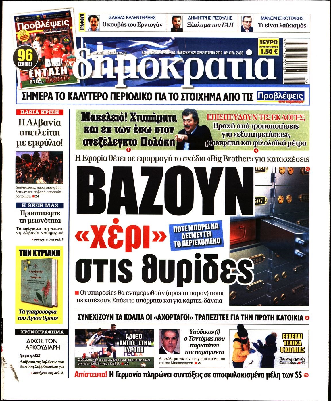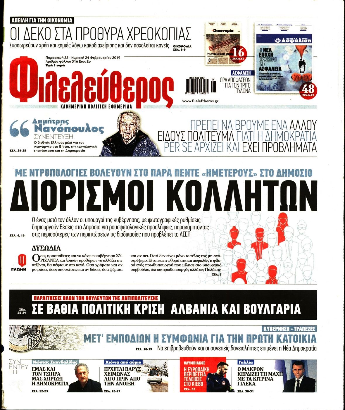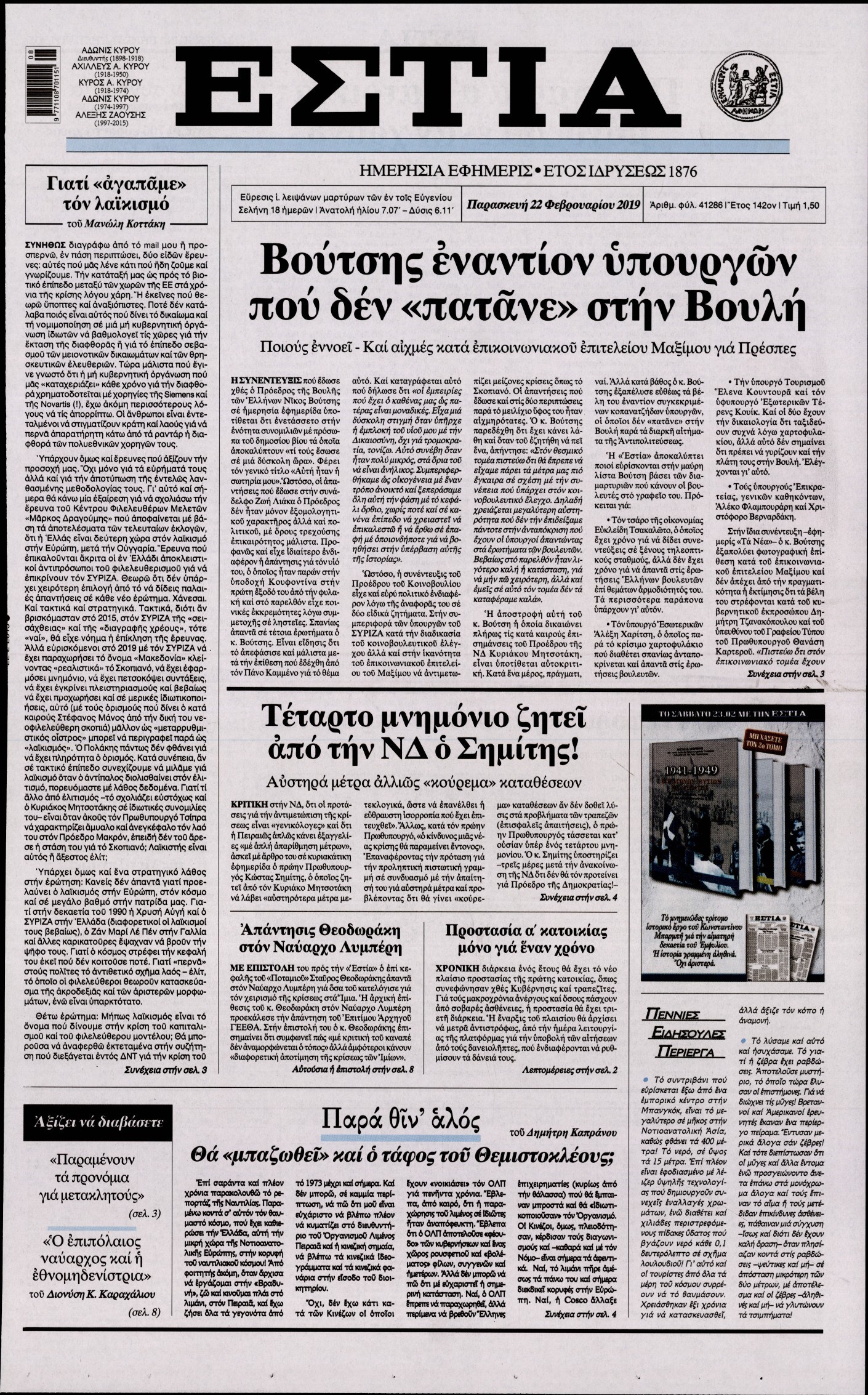 Οι πολιτικές εφημερίδες 22/2/19 Enikos Newsroom 06:31, Παρασκευή 22 Φεβρουαρίου 2019 Media Διαβάστε τα πρωτοσέλιδα των πολιτικών εφημερίδων: ΠΟΛΙΤΙΚΕΣ ΕΦΗΜΕΡΙΔΕΣ ΠΡΩΤΟΣΕΛΙΔΑ Μοιράσου το: σχολίασε κι εσύ (0 σχόλια) Ακολουθήστε το enikos.gr στο Google News και μάθετε πρώτοι όλες τις ειδήσεις Δείτε όλες τις τελευταίες ειδήσεις από την Ελλάδα και τον Κόσμο στο enikos.gr Ειδήσεις Ροή Ειδήσεων 4 ώρες πριν Χριστούγεννα στα μπλόκα οι αγρότες: Άνοιξαν στα διόδια και μοίρασαν προϊόντα στους πολίτες – Νέα σύσκεψη την Κυριακή στη Νίκαια 4 ώρες πριν Κύκλωμα διακίνησης ναρκωτικών σε σχολεία: Τηλεφωνούσαν στους ανηλίκους την ώρα του μαθήματος – Οι διάλογοι-σοκ, τα «ψευδώνυμα» και τα βασανιστήρια 4 ώρες πριν Αρχεία Επστάιν: Οι 500 σελίδες που λείπουν, τα αναπάντητα ερωτήματα και οι επώνυμοι – Τι έπεται 5 ώρες πριν Ζελένσκι: Μόνο οι ΗΠΑ και ο Τραμπ μπορούν να πιέσουν τη Ρωσία να βάλει τέλος στον πόλεμο 6 ώρες πριν Φοινικούντα: Προφυλακιστέος ο 30χρονος για συνέργεια στη διπλή δολοφονία – Και άλλα πρόσωπα στο «μικροσκόπιο» 4 ώρες πριν Αποκαλύφθηκε το άγνωστο «GPS» της αρχαιότητας – Πώς οι ναοί «φώτιζαν» τον δρόμο των ναυτικών πριν από την εφεύρεση των φάρων 5 ώρες πριν Ύπνος: Η διατροφή που μπορεί να σας βοηθήσει να κοιμάστε καλύτερα και να ζήσετε περισσότερο 6 ώρες πριν Αριθμολογία: Ο αριθμός του φύλακα αγγέλου σας, με βάση τον μήνα γέννησής σας – «Έτσι σας στέλνει σημάδια το σύμπαν» 18 ώρες πριν Enerwave: Το νέο «ρεύμα» στη λιανική ενέργειας που αλλάζει την εμπειρία του καταναλωτή 17 λεπτά πριν Δυτική Όχθη: Δύο Παλαιστίνιοι νεκροί από σφαίρες του Ισραηλινού στρατού 32 λεπτά πριν Ένοχος ο 54χρονος «ερευνητής» που έταζε ότι θα εντοπίσει τον αγνοούμενο γιατρό από την Κρήτη – «Μας γέμισε φρούδες ελπίδες», λέει ο πατέρας του 33χρονου 48 λεπτά πριν Σεισμός 3,8 Ρίχτερ ανοιχτά της Αμοργού 1 ώρα πριν Άννα Βίσση: Τα… Social Media «προσκύνησαν» την «απόλυτη» για την συναυλία της στο Καλλιμάρμαρο που προβλήθηκε από το Mega 1 ώρα πριν Φωτεινή Αθερίδου: «Προσπαθώ να είμαι κάθετη και αυστηρή σαν μαμά πια» ENIKOS NETWORK Οι γυναίκες αποκαλύπτουν το πιο ελκυστικό πράγμα που μπορεί να κάνει ένας άνδρας Ομορφιά και αντιγήρανση: Ειδικοί μιλούν για συσκευές περιποίησης του δέρματος «Πολεμική» προετοιμασία από την ευρωπαϊκή βιομηχανία ενέργειας – Η Eurelectric ζητεί «ομπρέλα» προστασίας για τις υποδομές Ακύρωση ΑΦΜ για απάτες – Ποιους βάζει στο στόχαστρο η ΑΑΔΕ Χαρτογραφώντας το «σημείο χωρίς επιστροφή»: Για πρώτη φορά αποκαλύπτεται με λεπτομέρεια το ακανθώδες όριο της ατμόσφαιρας τ... Η Google καταργεί τη λειτουργία «dark web report» – Πώς θα μπορούν οι χρήστες να διαγράφουν τα δεδομένα τους περισσότερα 01:30 , Κυριακή 21 Δεκεμβρίου 2025 Άννα Βίσση: Τα… Social Media «προσκύνησαν» την «απόλυτη» για την συναυλία της στο Καλλιμάρμαρο που προβλήθηκε από το Mega Την ημέρα των γενεθλίων της Άννας Βίσση, το MEGA τίμησε τη διαχρονική παρουσία της «απόλυτης Ε... 00:00 , Κυριακή 21 Δεκεμβρίου 2025 The Voice: Η επιστροφή της Έλενας Παπαρίζου και η ατάκα του Γιώργου Μαζωνάκη μετά τις καταγγελίες Στη φάση των Cross Battles Live μπήκε το The Voice, με την Έλενα Παπαρίζου να επιστρέφει στο π... 20:30 , Σάββατο 20 Δεκεμβρίου 2025 Αυτή την Κυριακή με τη Realnews: Instyle, μαζί Drive και Realnews Geopolitics Αυτή την Κυριακή με τη Realnews: Instyle, μαζί Drive και Realnews Geopolitics Instyle Η Άννα Ρ... 20:28 , Σάββατο 20 Δεκεμβρίου 2025 Ο ΑΝΤ1 γεμίζει τις γιορτές με μουσική – Ποιους καλλιτέχνες θα απολαύσουμε Φέτος στον ΑΝΤ1 γιορτάζουμε τις νύχτες μας παρέα