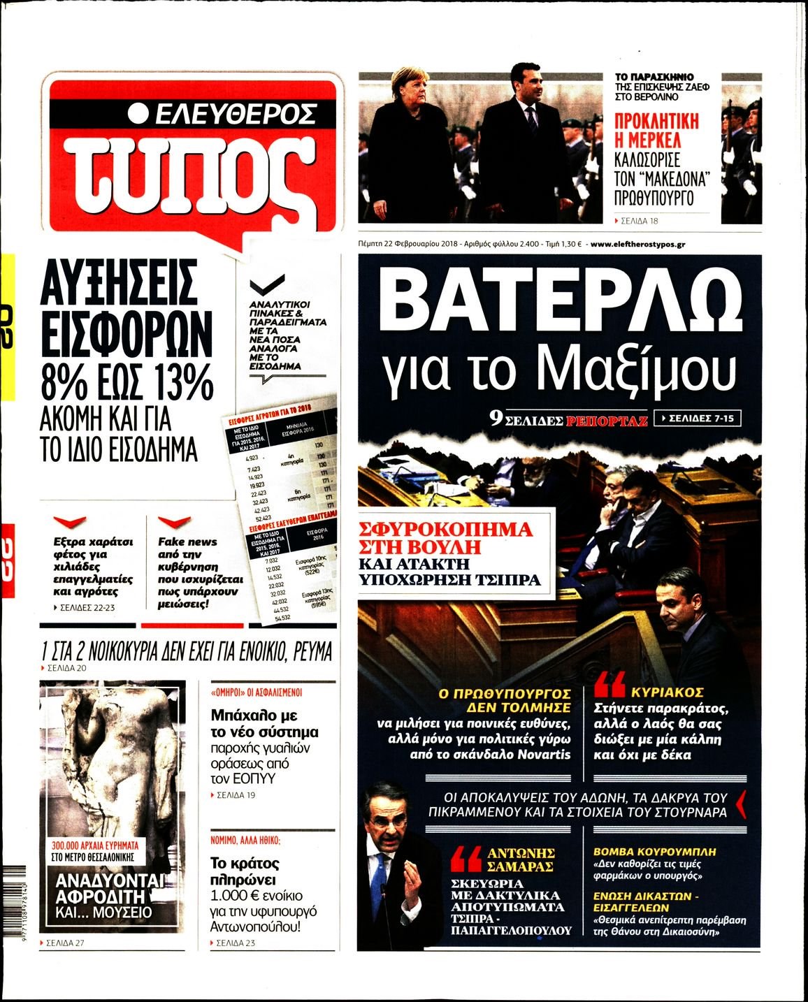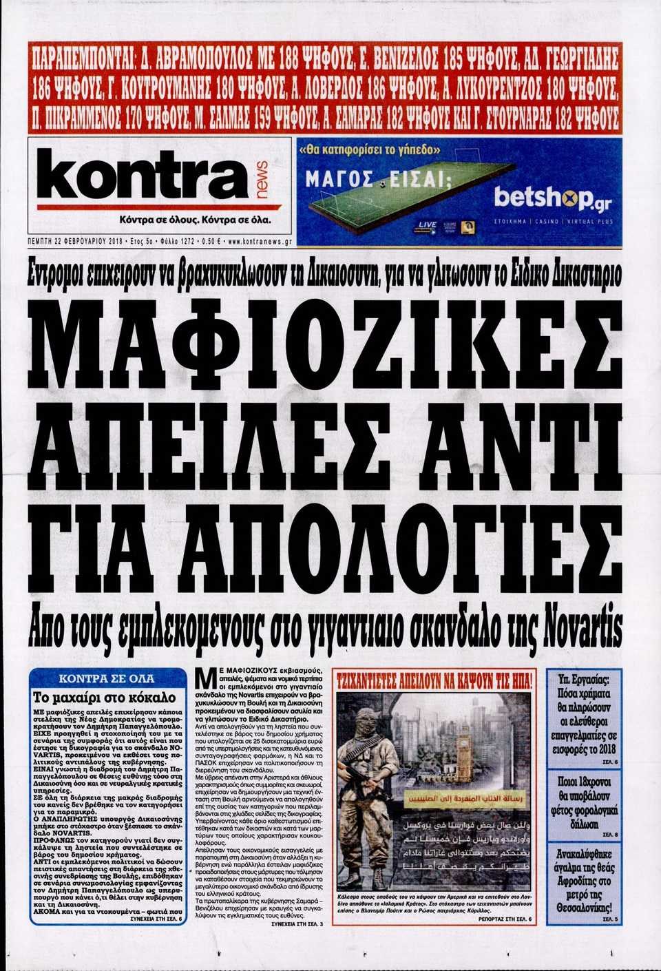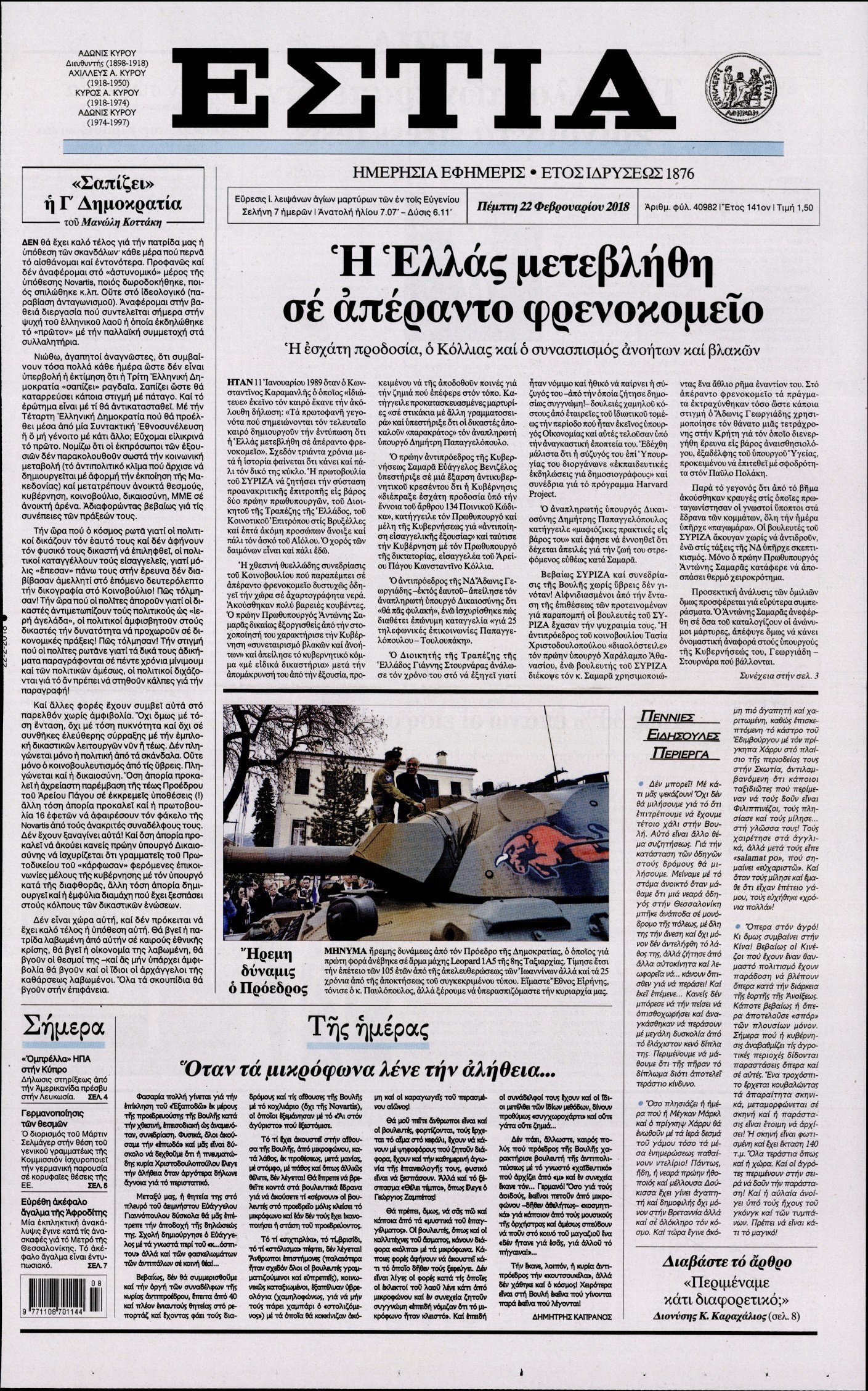 Οι πολιτικές εφημερίδες 22/2/2018 Enikos Newsroom 07:41, Πέμπτη 22 Φεβρουαρίου 2018 Media Διαβάστε τα σημερινά πρωτοσέλιδα των πολιτικών εφημερίδων: ΠΟΛΙΤΙΚΕΣ ΕΦΗΜΕΡΙΔΕΣ ΠΡΩΤΟΣΕΛΙΔΑ Μοιράσου το: σχολίασε κι εσύ (0 σχόλια) Ακολουθήστε το enikos.gr στο Google News και μάθετε πρώτοι όλες τις ειδήσεις Δείτε όλες τις τελευταίες ειδήσεις από την Ελλάδα και τον Κόσμο στο enikos.gr Ειδήσεις Ροή Ειδήσεων 7 ώρες πριν Χριστούγεννα στα μπλόκα: Επιμένουν στις κινητοποιήσεις τους οι αγρότες – Ανοίγουν τα διόδια το Σαββατοκύριακο 7 ώρες πριν Ουκρανία: Η άνευ προηγουμένου επίθεση σε ρωσικό τάνκερ στη Μεσόγειο και το μήνυμα προς στον Πούτιν – Το «μακρύ χέρι» του Κιέβου 6 ώρες πριν Πούτιν: Τα μηνύματα σε Ευρώπη και ΝΑΤΟ από το μαραθώνιο «σόου» του – Η απαίτηση για «σεβασμό» και η ειρήνη «με τους όρους» της Μόσχας 7 ώρες πριν Τραμπ: Δεν αποκλείει την πιθανότητα ενός πολέμου στη Βενεζουέλα – «Ο Μαδούρο ξέρει καλύτερα από τον καθένα τι ακριβώς θέλω» 8 ώρες πριν Συνεχίζει να προκαλεί ο Μίτσκοσκι: «Για μένα το όνομα Μακεδονία είναι ιερό» 6 ώρες πριν Ανακαλύφθηκαν αρχαία χρυσά νομίσματα 2.200 ετών που απεικονίζουν τον θεό Απόλλωνα – Η άγνωστη σύνδεση με τον Φίλιππο Β΄ της Μακεδονίας 7 ώρες πριν Ύπνος: Μια κρυφή κατάσταση του εγκεφάλου πριν από τον ύπνο μπορεί να είναι το “κλειδί” για υψηλή ευφυΐα και δημιουργικότητα 8 ώρες πριν Αριθμολογία: Οι άνθρωποι που έχουν γεννηθεί αυτές τις 4 ημερομηνίες, συχνά παρεξηγούνται – «Η καλοσύνη τους κρύβει τεράστια δύναμη» 9 ώρες πριν Ξεχάστε το καθάρισμα το Σαββατοκύριακο: Ο «κανόνας των 20 λεπτών» που θα σας λύσει τα χέρια 9 λεπτά πριν ΟΗΕ: Το Συμβούλιο Ασφαλείας παρατείνει για έναν χρόνο την εντολή της ειρηνευτικής δύναμης στο Κονγκό 25 λεπτά πριν Μοχάμεντ Σαλάχ: Ζήτησε «συγγνώμη» από τους συμπαίκτες του στη Λίβερπουλ για το ξέσπασμά του 39 λεπτά πριν Μάρκο Ρούμπιο: Ανθρωπιστική κατάπαυση του πυρός στο Σουδάν ζητά ο Αμερικανός υπουργός Εξωτερικών 54 λεπτά πριν Αγγελική Νικολούλη: Τα συλλυπητήρια για την απώλεια της Ειρήνης Μαρινάκη 1 ώρα πριν Βολιβία: Μαζική διαδηλώσεις εναντίον της κατάργησης των επιδοτήσεων των τιμών των καυσίμων ENIKOS NETWORK Το ΕΚΑΒ τιμήθηκε από την Ακαδημία Αθηνών για τα 40 χρόνια προσφοράς του Έχετε πραγματικά μεγάλη καρδιά; 10 χαρακτηριστικά όσων έχουν καλοσύνη Αναστολή μέτρων αναγκαστικής εκτέλεσης για κτηνοτρόφους που πλήττονται από την ευλογιά των αιγοπροβάτων Πλήρης επάρκεια προϊόντων στις λαϊκές της Αττικής, παρά τις αγροτικές κινητοποιήσεις – Τι απαντούν οι πωλητές Χαρτογραφώντας το «σημείο χωρίς επιστροφή»: Για πρώτη φορά αποκαλύπτεται με λεπτομέρεια το ακανθώδες όριο της ατμόσφαιρας τ... Η Google καταργεί τη λειτουργία «dark web report» – Πώς θα μπορούν οι χρήστες να διαγράφουν τα δεδομένα τους περισσότερα 04:20 , Σάββατο 20 Δεκεμβρίου 2025 Αγγελική Νικολούλη: Τα συλλυπητήρια για την απώλεια της Ειρήνης Μαρινάκη Τα συλληπητήρια στον πρόεδρο του Mega, τον Βαγγέλη Μαρινάκη, για την απώλεια της μητέρας του Ε... 02:50 , Σάββατο 20 Δεκεμβρίου 2025 GNTM: Η Ξένια Τσίρκοβα αναδείχθηκε μεγάλη νικήτρια και πήρε τις 50.000 ευρώ – Ποιος βρέθηκε σε απόσταση αναπνοής; Με φαντασμαγορικό τρόπο ολοκληρώθηκε το βράδυ της Παρασκευής ο μεγάλος τελικός του GNTM, μέσα ... 22:42 , Παρασκευή 19 Δεκεμβρίου 2025 Γιώργος Γιαννόπουλος για “Το σόι σου”: “Είναι ευτυχία και ευλογία αυτή η σειρά” «Είναι ευτυχία και ευλογία η συγκυρία αυτής της σειράς», θα πει ο Γιώργος Γιαννόπουλος -ο αγαπ... 20