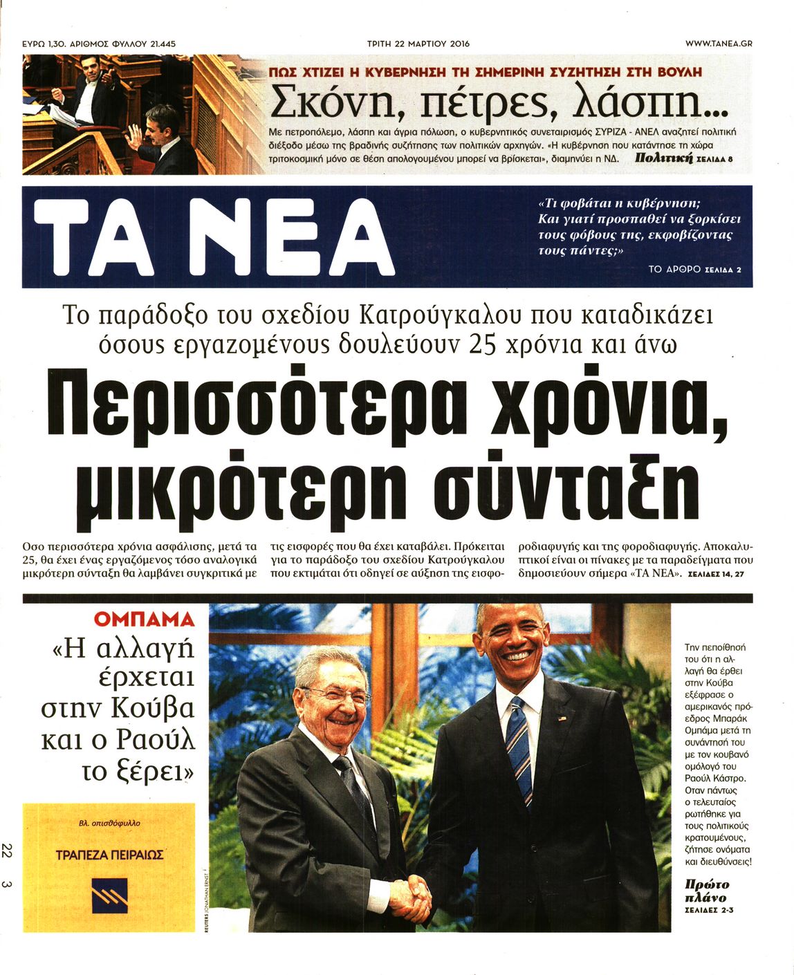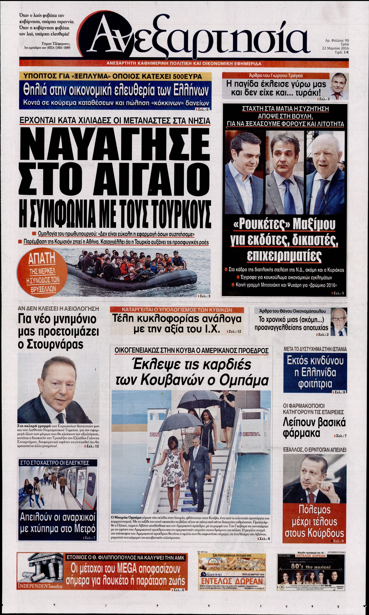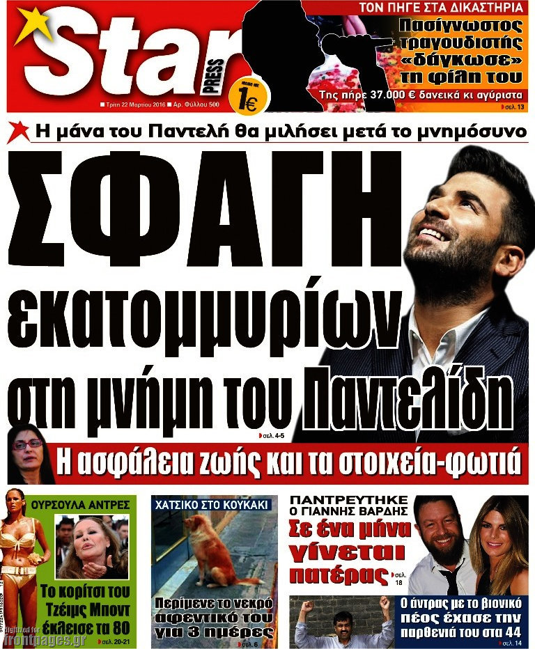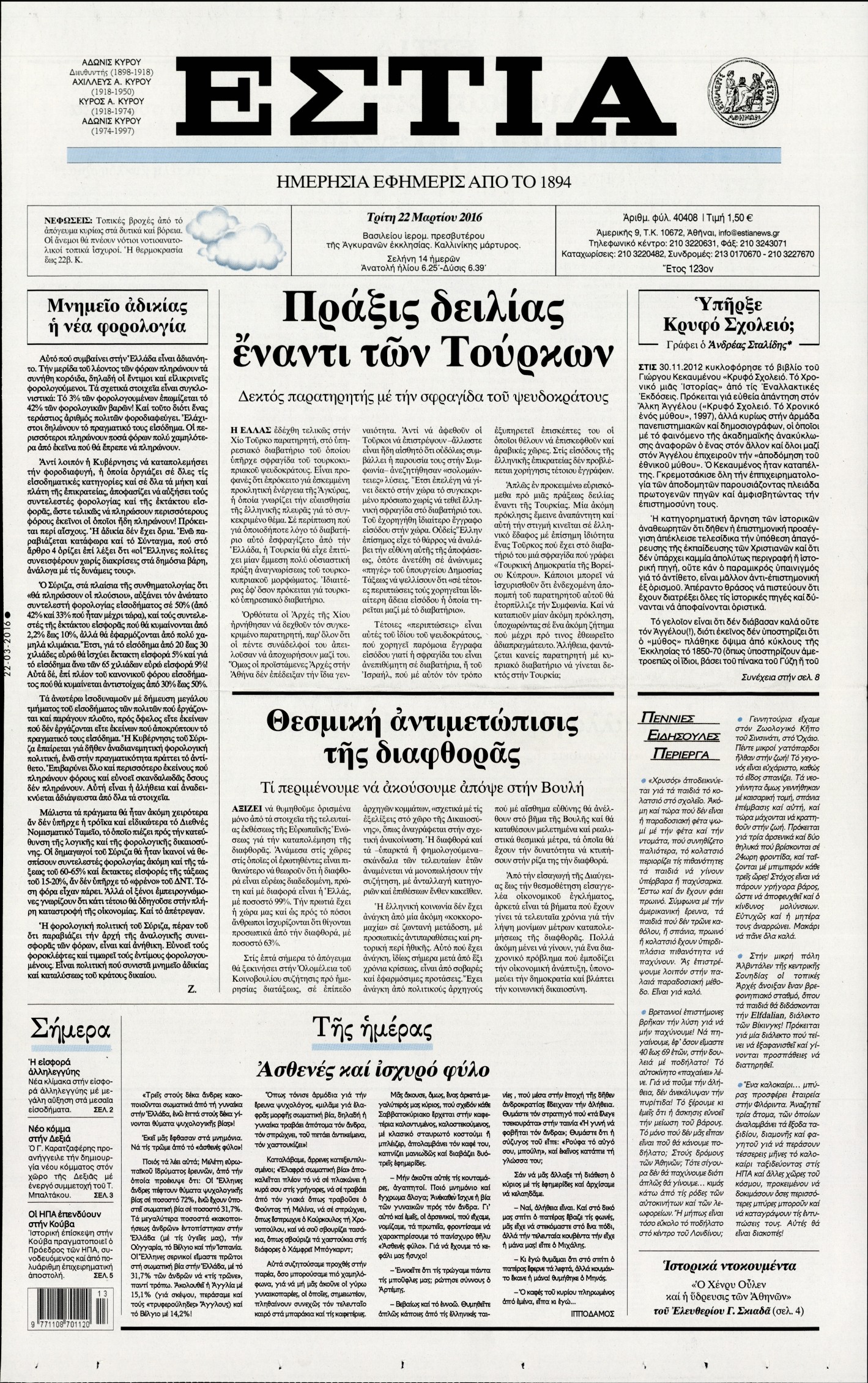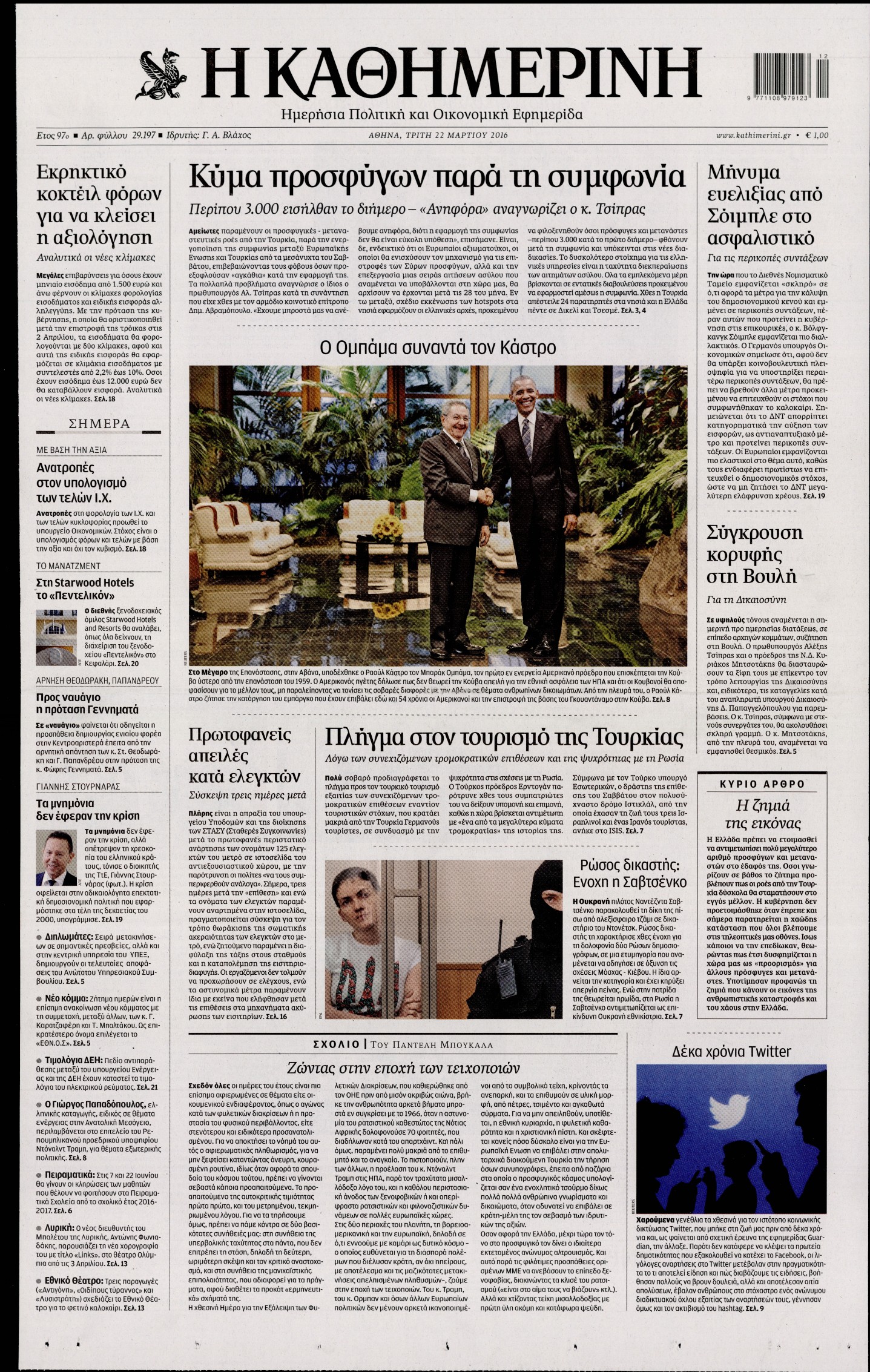 Οι πολιτικές εφημερίδες 22/3/2016 Enikos Newsroom 07:28, Τρίτη 22 Μαρτίου 2016 Media Διαβάστε τα σημερινά πρωτοσέλιδα των πολιτικών εφημερίδων: ΠΟΛΙΤΙΚΕΣ ΕΦΗΜΕΡΙΔΕΣ ΠΡΩΤΟΣΕΛΙΔΑ Μοιράσου το: σχολίασε κι εσύ (0 σχόλια) Ακολουθήστε το enikos.gr στο Google News και μάθετε πρώτοι όλες τις ειδήσεις Δείτε όλες τις τελευταίες ειδήσεις από την Ελλάδα και τον Κόσμο στο enikos.gr Ειδήσεις Ροή Ειδήσεων 4 ώρες πριν Χριστούγεννα στα μπλόκα: Επιμένουν στις κινητοποιήσεις τους οι αγρότες – Ανοίγουν τα διόδια το Σαββατοκύριακο 5 ώρες πριν Ουκρανία: Η άνευ προηγουμένου επίθεση σε ρωσικό τάνκερ στη Μεσόγειο και το μήνυμα προς στον Πούτιν – Το «μακρύ χέρι» του Κιέβου 4 ώρες πριν Πούτιν: Τα μηνύματα σε Ευρώπη και ΝΑΤΟ από το μαραθώνιο «σόου» του – Η απαίτηση για «σεβασμό» και η ειρήνη «με τους όρους» της Μόσχας 5 ώρες πριν Τραμπ: Δεν αποκλείει την πιθανότητα ενός πολέμου στη Βενεζουέλα – «Ο Μαδούρο ξέρει καλύτερα από τον καθένα τι ακριβώς θέλω» 5 ώρες πριν Συνεχίζει να προκαλεί ο Μίτσκοσκι: «Για μένα το όνομα Μακεδονία είναι ιερό» 4 ώρες πριν Ανακαλύφθηκαν αρχαία χρυσά νομίσματα 2.200 ετών που απεικονίζουν τον θεό Απόλλωνα – Η άγνωστη σύνδεση με τον Φίλιππο Β΄ της Μακεδονίας 5 ώρες πριν Ύπνος: Μια κρυφή κατάσταση του εγκεφάλου πριν από τον ύπνο μπορεί να είναι το “κλειδί” για υψηλή ευφυΐα και δημιουργικότητα 6 ώρες πριν Αριθμολογία: Οι άνθρωποι που έχουν γεννηθεί αυτές τις 4 ημερομηνίες, συχνά παρεξηγούνται – «Η καλοσύνη τους κρύβει τεράστια δύναμη» 7 ώρες πριν Ξεχάστε το καθάρισμα το Σαββατοκύριακο: Ο «κανόνας των 20 λεπτών» που θα σας λύσει τα χέρια 15 λεπτά πριν Θεσσαλονίκη: Εξαφανίστηκε 13χρονος από χώρο φιλοξενίας ασυνόδευτων ανηλίκων στο Ωραιόκαστρο 25 λεπτά πριν Ντόναλντ Τραμπ: «Πολύ βαριά αντίποινα» στη Συρία – «Πλήττουμε πολύ δυνατά οχυρά του Ισλαμικού Κράτους» 40 λεπτά πριν Εξάρχεια: Ένταση με μολότοφ, χημικά και κρότου λάμψης 56 λεπτά πριν ΗΠΑ: Τραγωδία στην Αλαμπάμα – Σκότωσε την δημοσιογράφο σύζυγό του και αυτοκτόνησε μπροστά στον 3χρονο γιο τους 1 ώρα πριν Πρόταση γάμου στο ΣΕΦ κατά την διάρκεια του αγώνα Ολυμπιακός-Βιλερμπάν – Δείτε βίντεο ENIKOS NETWORK Το ΕΚΑΒ τιμήθηκε από την Ακαδημία Αθηνών για τα 40 χρόνια προσφοράς του Έχετε πραγματικά μεγάλη καρδιά; 10 χαρακτηριστικά όσων έχουν καλοσύνη Αναστολή μέτρων αναγκαστικής εκτέλεσης για κτηνοτρόφους που πλήττονται από την ευλογιά των αιγοπροβάτων Πλήρης επάρκεια προϊόντων στις λαϊκές της Αττικής, παρά τις αγροτικές κινητοποιήσεις – Τι απαντούν οι πωλητές Χαρτογραφώντας το «σημείο χωρίς επιστροφή»: Για πρώτη φορά αποκαλύπτεται με λεπτομέρεια το ακανθώδες όριο της ατμόσφαιρας τ... Η Google καταργεί τη λειτουργία «dark web report» – Πώς θα μπορούν οι χρήστες να διαγράφουν τα δεδομένα τους περισσότερα 22:42 , Παρασκευή 19 Δεκεμβρίου 2025 Γιώργος Γιαννόπουλος για “Το σόι σου”: “Είναι ευτυχία και ευλογία αυτή η σειρά” «Είναι ευτυχία και ευλογία η συγκυρία αυτής της σειράς», θα πει ο Γιώργος Γιαννόπουλος -ο αγαπ... 20:37 , Παρασκευή 19 Δεκεμβρίου 2025 Don’t Forget The Lyrics: Η Έλλη Κοκκίνου υποδέχεται 4 παίκτες που θα κάνουν τα πάντα για να μη χάσουν ούτε… μισή λέξη από τους στίχους Το «Don’t Forget The Lyrics» επιστρέφει απόψε, Παρασκευή 19 Δεκεμβρίου, στις 21:00 με νέο επει... 19:31 , Παρασκευή 19 Δεκεμβρίου 2025 GNTM: Απόψε ο μεγάλος τελικός για τους 4 φιναλίστ Έπειτα από μήνες γεμάτους μόδα, δημιουργία και έντονες αναμετρήσεις, το GNTM 2025 κορυφώνεται,... 18:11 , Παρασκευή 19 Δεκεμβρίου 2025 Το σό