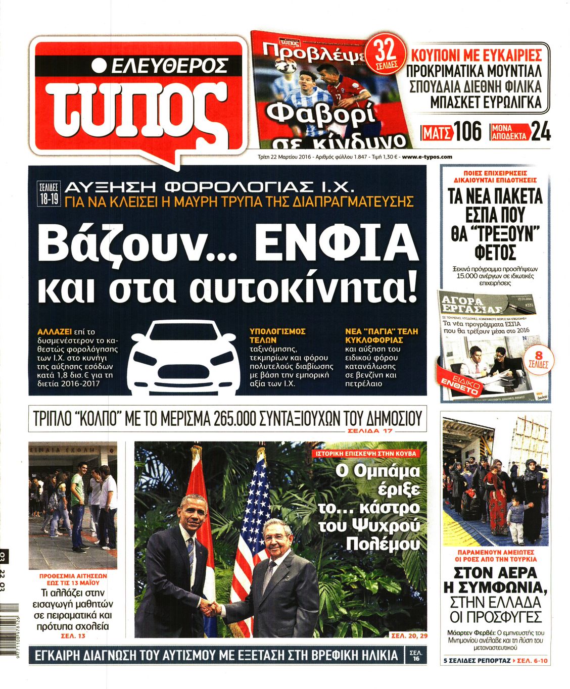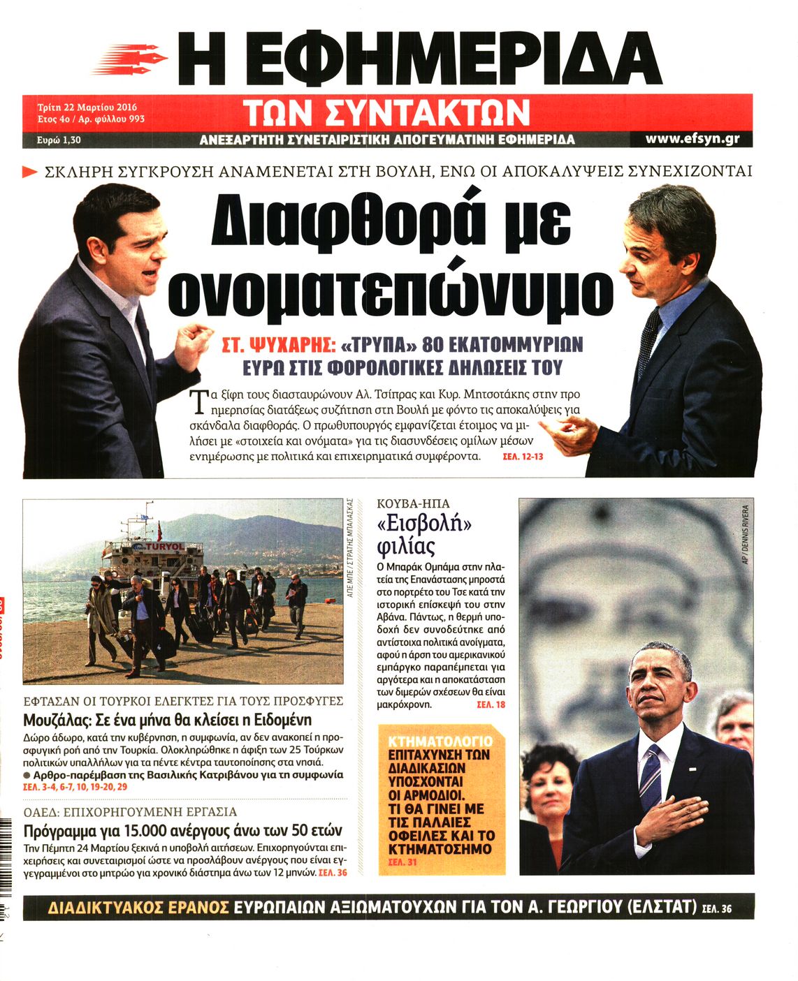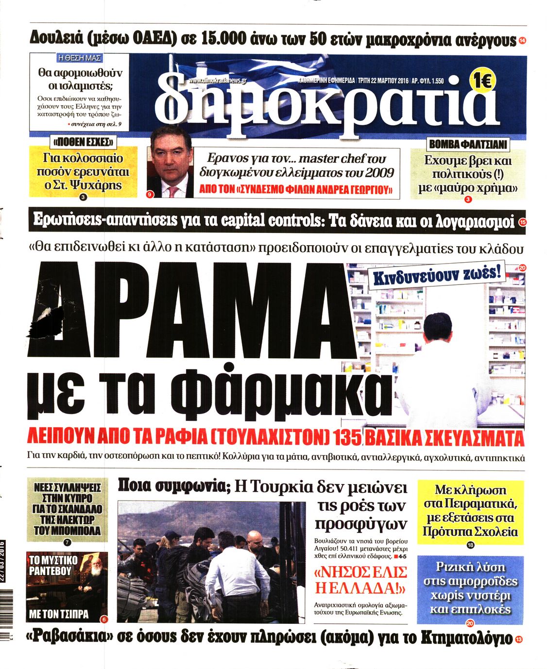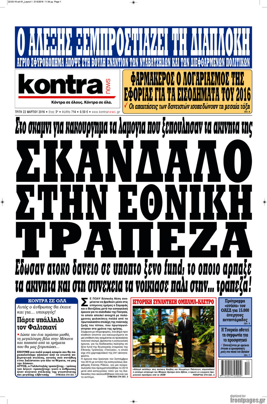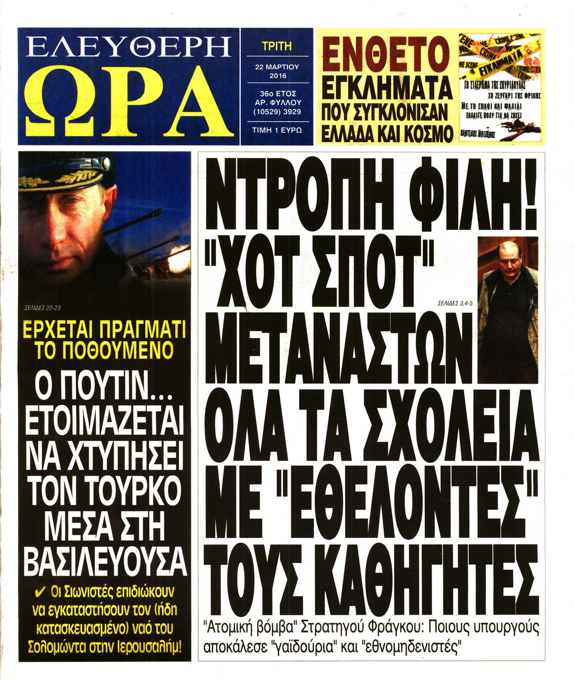 Οι πολιτικές εφημερίδες 22/3/2016 Enikos Newsroom 07:28, Τρίτη 22 Μαρτίου 2016 Media Διαβάστε τα σημερινά πρωτοσέλιδα των πολιτικών εφημερίδων: ΠΟΛΙΤΙΚΕΣ ΕΦΗΜΕΡΙΔΕΣ ΠΡΩΤΟΣΕΛΙΔΑ Μοιράσου το: σχολίασε κι εσύ (0 σχόλια) Ακολουθήστε το enikos.gr στο Google News και μάθετε πρώτοι όλες τις ειδήσεις Δείτε όλες τις τελευταίες ειδήσεις από την Ελλάδα και τον Κόσμο στο enikos.gr Ειδήσεις Ροή Ειδήσεων 4 ώρες πριν Χριστούγεννα στα μπλόκα: Επιμένουν στις κινητοποιήσεις τους οι αγρότες – Ανοίγουν τα διόδια το Σαββατοκύριακο 5 ώρες πριν Ουκρανία: Η άνευ προηγουμένου επίθεση σε ρωσικό τάνκερ στη Μεσόγειο και το μήνυμα προς στον Πούτιν – Το «μακρύ χέρι» του Κιέβου 4 ώρες πριν Πούτιν: Τα μηνύματα σε Ευρώπη και ΝΑΤΟ από το μαραθώνιο «σόου» του – Η απαίτηση για «σεβασμό» και η ειρήνη «με τους όρους» της Μόσχας 5 ώρες πριν Τραμπ: Δεν αποκλείει την πιθανότητα ενός πολέμου στη Βενεζουέλα – «Ο Μαδούρο ξέρει καλύτερα από τον καθένα τι ακριβώς θέλω» 5 ώρες πριν Συνεχίζει να προκαλεί ο Μίτσκοσκι: «Για μένα το όνομα Μακεδονία είναι ιερό» 4 ώρες πριν Ανακαλύφθηκαν αρχαία χρυσά νομίσματα 2.200 ετών που απεικονίζουν τον θεό Απόλλωνα – Η άγνωστη σύνδεση με τον Φίλιππο Β΄ της Μακεδονίας 5 ώρες πριν Ύπνος: Μια κρυφή κατάσταση του εγκεφάλου πριν από τον ύπνο μπορεί να είναι το “κλειδί” για υψηλή ευφυΐα και δημιουργικότητα 6 ώρες πριν Αριθμολογία: Οι άνθρωποι που έχουν γεννηθεί αυτές τις 4 ημερομηνίες, συχνά παρεξηγούνται – «Η καλοσύνη τους κρύβει τεράστια δύναμη» 7 ώρες πριν Ξεχάστε το καθάρισμα το Σαββατοκύριακο: Ο «κανόνας των 20 λεπτών» που θα σας λύσει τα χέρια 15 λεπτά πριν Θεσσαλονίκη: Εξαφανίστηκε 13χρονος από χώρο φιλοξενίας ασυνόδευτων ανηλίκων στο Ωραιόκαστρο 25 λεπτά πριν Ντόναλντ Τραμπ: «Πολύ βαριά αντίποινα» στη Συρία – «Πλήττουμε πολύ δυνατά οχυρά του Ισλαμικού Κράτους» 40 λεπτά πριν Εξάρχεια: Ένταση με μολότοφ, χημικά και κρότου λάμψης 56 λεπτά πριν ΗΠΑ: Τραγωδία στην Αλαμπάμα – Σκότωσε την δημοσιογράφο σύζυγό του και αυτοκτόνησε μπροστά στον 3χρονο γιο τους 1 ώρα πριν Πρόταση γάμου στο ΣΕΦ κατά την διάρκεια του αγώνα Ολυμπιακός-Βιλερμπάν – Δείτε βίντεο ENIKOS NETWORK Το ΕΚΑΒ τιμήθηκε από την Ακαδημία Αθηνών για τα 40 χρόνια προσφοράς του Έχετε πραγματικά μεγάλη καρδιά; 10 χαρακτηριστικά όσων έχουν καλοσύνη Αναστολή μέτρων αναγκαστικής εκτέλεσης για κτηνοτρόφους που πλήττονται από την ευλογιά των αιγοπροβάτων Πλήρης επάρκεια προϊόντων στις λαϊκές της Αττικής, παρά τις αγροτικές κινητοποιήσεις – Τι απαντούν οι πωλητές Χαρτογραφώντας το «σημείο χωρίς επιστροφή»: Για πρώτη φορά αποκαλύπτεται με λεπτομέρεια το ακανθώδες όριο της ατμόσφαιρας τ... Η Google καταργεί τη λειτουργία «dark web report» – Πώς θα μπορούν οι χρήστες να διαγράφουν τα δεδομένα τους περισσότερα 22:42 , Παρασκευή 19 Δεκεμβρίου 2025 Γιώργος Γιαννόπουλος για “Το σόι σου”: “Είναι ευτυχία και ευλογία αυτή η σειρά” «Είναι ευτυχία και ευλογία η συγκυρία αυτής της σειράς», θα πει ο Γιώργος Γιαννόπουλος -ο αγαπ... 20:37 , Παρασκευή 19 Δεκεμβρίου 2025 Don’t Forget The Lyrics: Η Έλλη Κοκκίνου υποδέχεται 4 παίκτες που θα κάνουν τα πάντα για να μη χάσουν ούτε… μισή λέξη από τους στίχους Το «Don’t Forget The Lyrics» επιστρέφει απόψε, Παρασκευή 19 Δεκεμβρίου, στις 21:00 με νέο επει... 19:31 , Παρασκευή 19 Δεκεμβρίου 2025 GNTM: Απόψε ο μεγάλος τελικός για τους 4 φιναλίστ Έπειτα από μήνες γεμάτους μόδα, δημιουργία και έντονες αναμετρήσεις, το GNTM 2025 κορυφώνεται,... 18:11 , Παρασκευή 19 Δεκεμβρίου 2025 Το σό