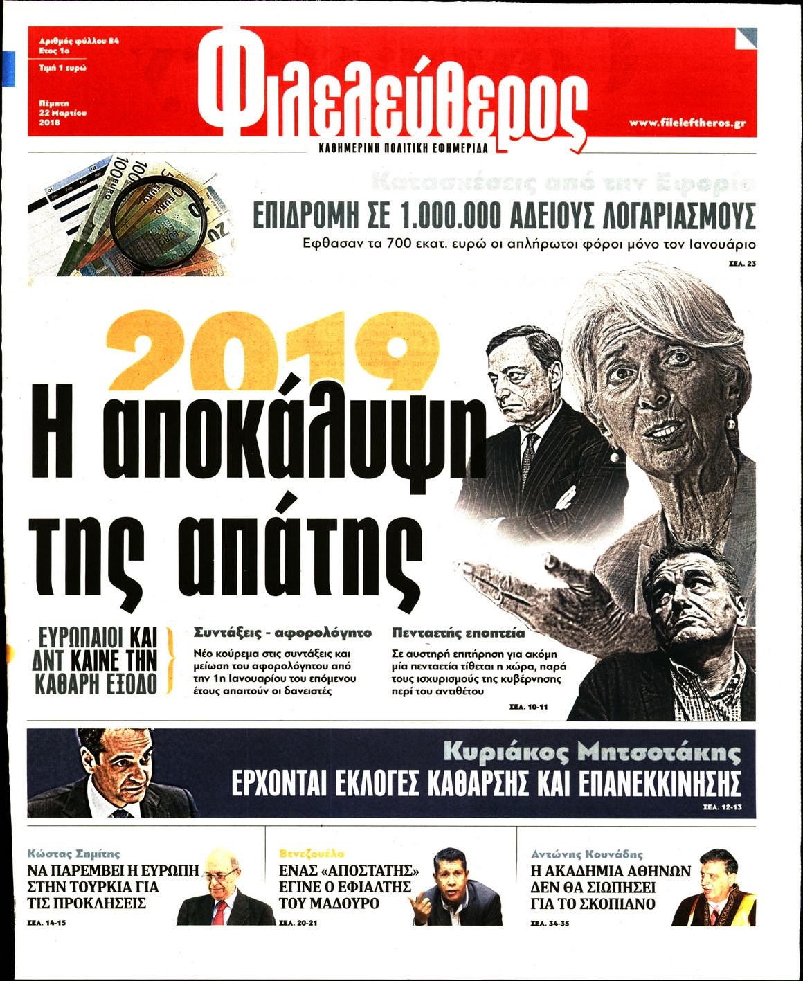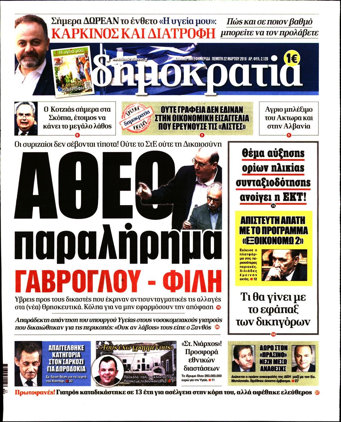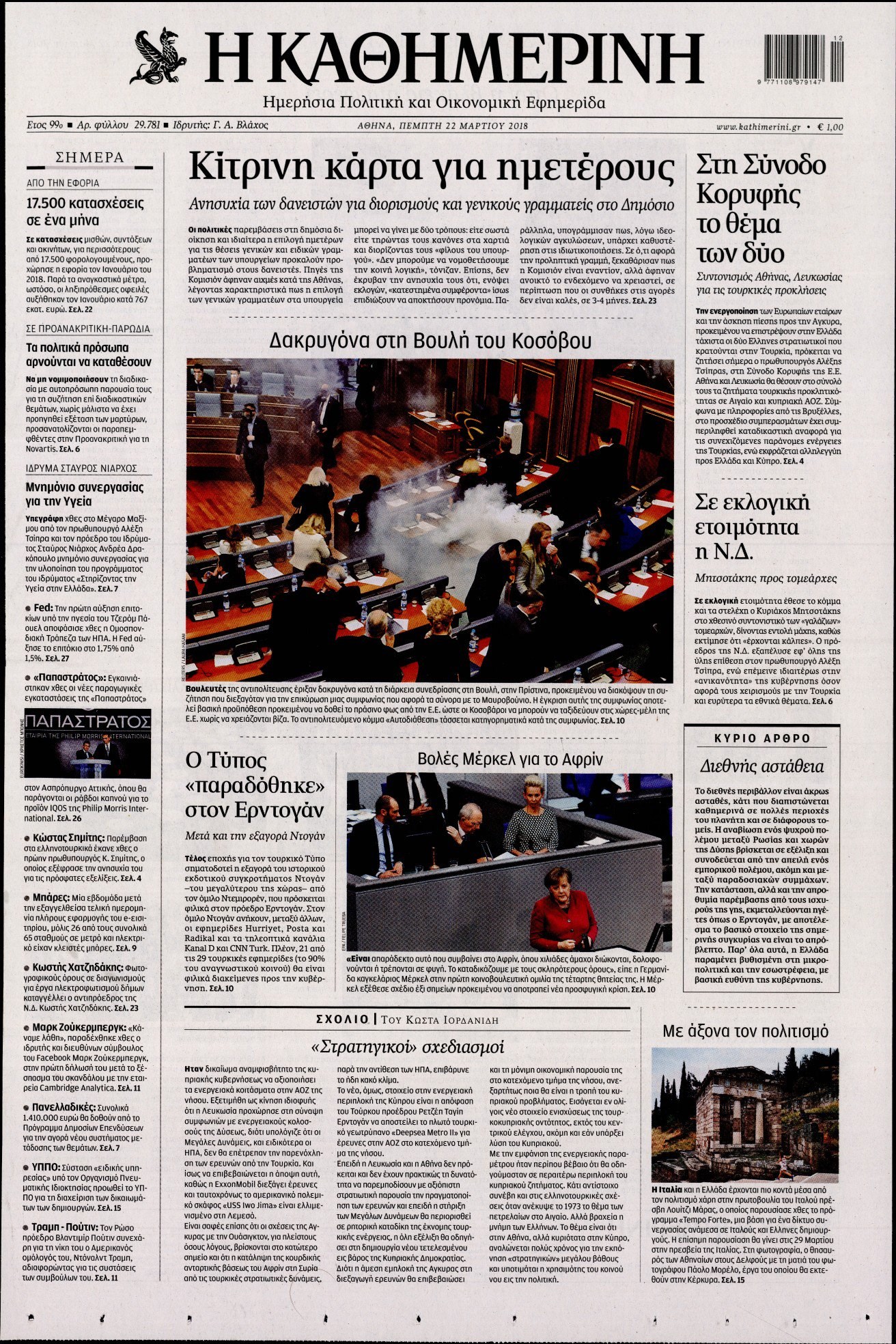 Οι πολιτικές εφημερίδες 22/3/2018 Enikos Newsroom 07:39, Πέμπτη 22 Μαρτίου 2018 Media Διαβάστε τα σημερινά πρωτοσέλιδα των πολιτικών εφημερίδων: ΠΟΛΙΤΙΚΕΣ ΕΦΗΜΕΡΙΔΕΣ ΠΡΩΤΟΣΕΛΙΔΑ Μοιράσου το: σχολίασε κι εσύ (0 σχόλια) Ακολουθήστε το enikos.gr στο Google News και μάθετε πρώτοι όλες τις ειδήσεις Δείτε όλες τις τελευταίες ειδήσεις από την Ελλάδα και τον Κόσμο στο enikos.gr Ειδήσεις Ροή Ειδήσεων 7 ώρες πριν Χριστούγεννα στα μπλόκα: Επιμένουν στις κινητοποιήσεις τους οι αγρότες – Ανοίγουν τα διόδια το Σαββατοκύριακο 7 ώρες πριν Ουκρανία: Η άνευ προηγουμένου επίθεση σε ρωσικό τάνκερ στη Μεσόγειο και το μήνυμα προς στον Πούτιν – Το «μακρύ χέρι» του Κιέβου 6 ώρες πριν Πούτιν: Τα μηνύματα σε Ευρώπη και ΝΑΤΟ από το μαραθώνιο «σόου» του – Η απαίτηση για «σεβασμό» και η ειρήνη «με τους όρους» της Μόσχας 7 ώρες πριν Τραμπ: Δεν αποκλείει την πιθανότητα ενός πολέμου στη Βενεζουέλα – «Ο Μαδούρο ξέρει καλύτερα από τον καθένα τι ακριβώς θέλω» 8 ώρες πριν Συνεχίζει να προκαλεί ο Μίτσκοσκι: «Για μένα το όνομα Μακεδονία είναι ιερό» 6 ώρες πριν Ανακαλύφθηκαν αρχαία χρυσά νομίσματα 2.200 ετών που απεικονίζουν τον θεό Απόλλωνα – Η άγνωστη σύνδεση με τον Φίλιππο Β΄ της Μακεδονίας 7 ώρες πριν Ύπνος: Μια κρυφή κατάσταση του εγκεφάλου πριν από τον ύπνο μπορεί να είναι το “κλειδί” για υψηλή ευφυΐα και δημιουργικότητα 8 ώρες πριν Αριθμολογία: Οι άνθρωποι που έχουν γεννηθεί αυτές τις 4 ημερομηνίες, συχνά παρεξηγούνται – «Η καλοσύνη τους κρύβει τεράστια δύναμη» 9 ώρες πριν Ξεχάστε το καθάρισμα το Σαββατοκύριακο: Ο «κανόνας των 20 λεπτών» που θα σας λύσει τα χέρια 33 δευτερόλεπτα πριν Γιώργος Μπαρτζώκας: «Για εμένα σημαίνει πάρα πολλά να ακούω το όνομά μου από τον κόσμο του Ολυμπιακού» 9 λεπτά πριν ΟΗΕ: Το Συμβούλιο Ασφαλείας παρατείνει για έναν χρόνο την εντολή της ειρηνευτικής δύναμης στο Κονγκό 25 λεπτά πριν Μοχάμεντ Σαλάχ: Ζήτησε «συγγνώμη» από τους συμπαίκτες του στη Λίβερπουλ για το ξέσπασμά του 40 λεπτά πριν Μάρκο Ρούμπιο: Ανθρωπιστική κατάπαυση του πυρός στο Σουδάν ζητά ο Αμερικανός υπουργός Εξωτερικών 55 λεπτά πριν Αγγελική Νικολούλη: Τα συλλυπητήρια για την απώλεια της Ειρήνης Μαρινάκη ENIKOS NETWORK Το ΕΚΑΒ τιμήθηκε από την Ακαδημία Αθηνών για τα 40 χρόνια προσφοράς του Έχετε πραγματικά μεγάλη καρδιά; 10 χαρακτηριστικά όσων έχουν καλοσύνη Αναστολή μέτρων αναγκαστικής εκτέλεσης για κτηνοτρόφους που πλήττονται από την ευλογιά των αιγοπροβάτων Πλήρης επάρκεια προϊόντων στις λαϊκές της Αττικής, παρά τις αγροτικές κινητοποιήσεις – Τι απαντούν οι πωλητές Χαρτογραφώντας το «σημείο χωρίς επιστροφή»: Για πρώτη φορά αποκαλύπτεται με λεπτομέρεια το ακανθώδες όριο της ατμόσφαιρας τ... Η Google καταργεί τη λειτουργία «dark web report» – Πώς θα μπορούν οι χρήστες να διαγράφουν τα δεδομένα τους περισσότερα 04:20 , Σάββατο 20 Δεκεμβρίου 2025 Αγγελική Νικολούλη: Τα συλλυπητήρια για την απώλεια της Ειρήνης Μαρινάκη Τα συλληπητήρια στον πρόεδρο του Mega, τον Βαγγέλη Μαρινάκη, για την απώλεια της μητέρας του Ε... 02:50 , Σάββατο 20 Δεκεμβρίου 2025 GNTM: Η Ξένια Τσίρκοβα αναδείχθηκε μεγάλη νικήτρια και πήρε τις 50.000 ευρώ – Ποιος βρέθηκε σε απόσταση αναπνοής; Με φαντασμαγορικό τρόπο ολοκληρώθηκε το βράδυ της Παρασκευής ο μεγάλος τελικός του GNTM, μέσα ... 22:42 , Παρασκευή 19 Δεκεμβρίου 2025 Γιώργος Γιαννόπουλος για “Το σόι σου”: “Είναι ευτυχία και ευλογία αυτή η σειρά” «Είναι ευτυχία και ευλογία η συγκυρία αυτής της σειράς», θα πει ο Γιώργος Γιαννό