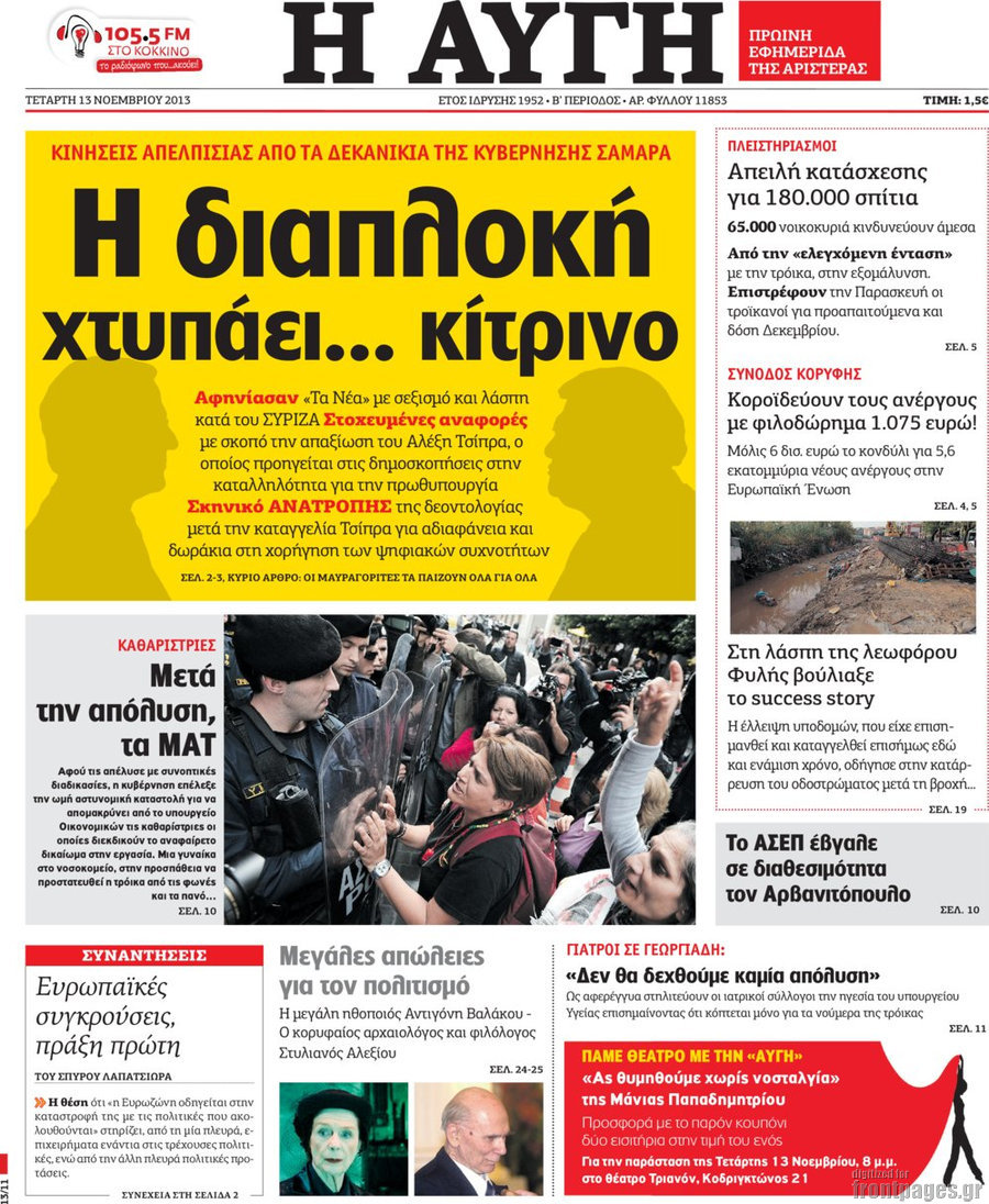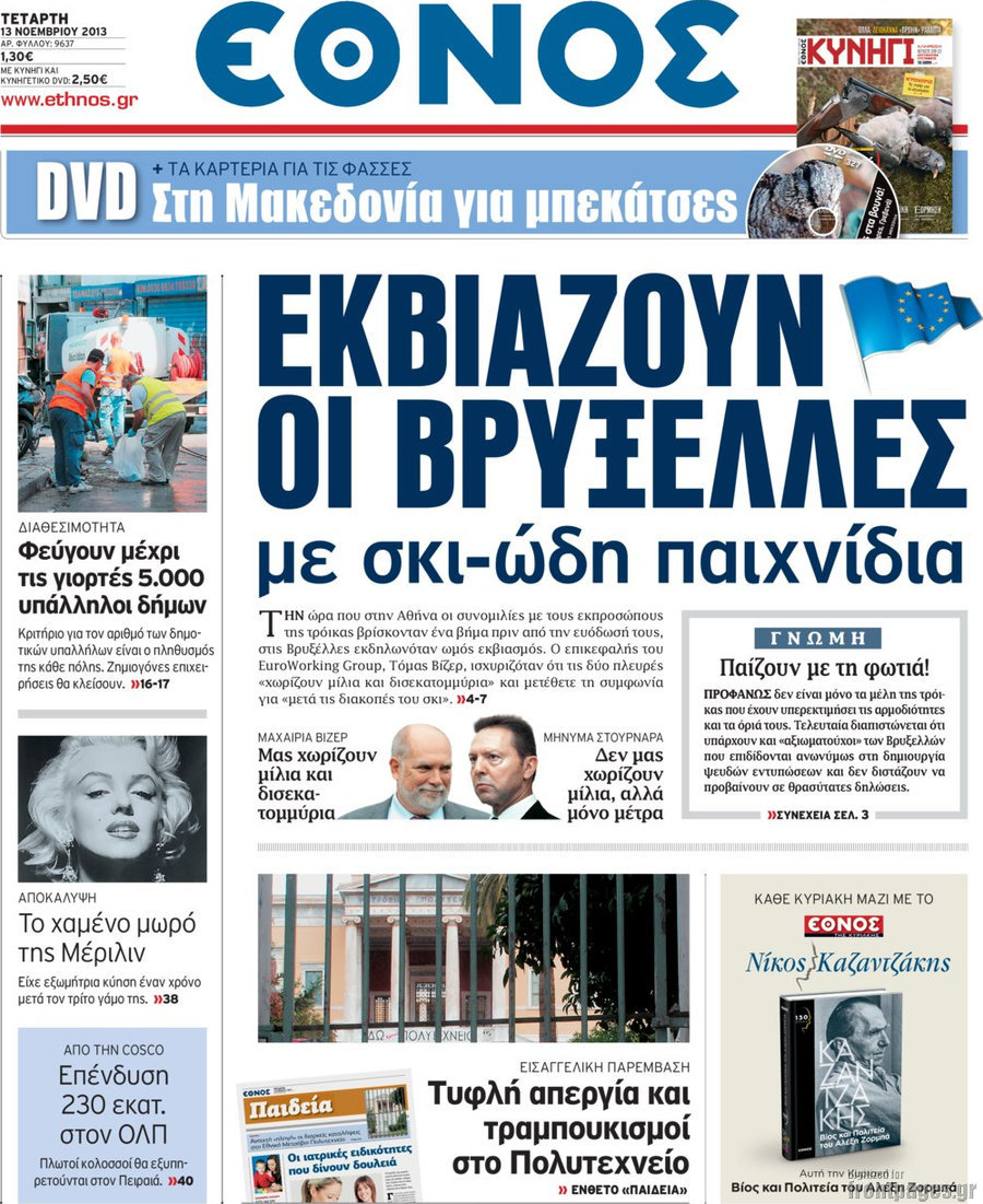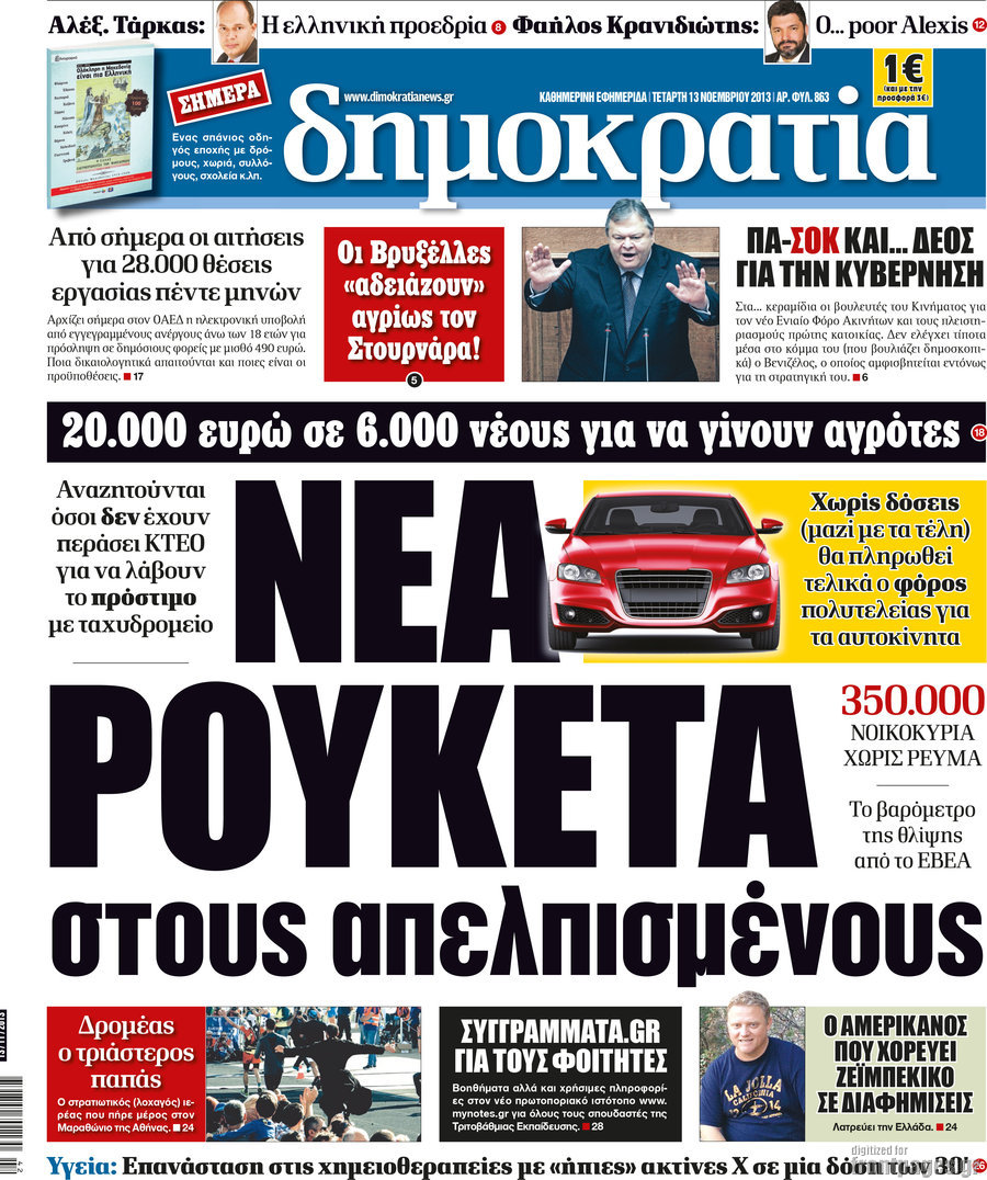 Οι πολιτικές εφημερίδες Enikos Newsroom 08:16, Τετάρτη 13 Νοεμβρίου 2013 Media Οι πολιτικές εφημερίδες Διαβάστε τα πρωτοσέλιδα των πολιτικών εφημερίδων: ΕΦΗΜΕΡΙΔΕΣ ΠΟΛΙΤΙΚΕΣ ΕΦΗΜΕΡΙΔΕΣ ΠΡΩΤΟΣΕΛΙΔΑ Μοιράσου το: σχολίασε κι εσύ (0 σχόλια) Ακολουθήστε το enikos.gr στο Google News και μάθετε πρώτοι όλες τις ειδήσεις Δείτε όλες τις τελευταίες ειδήσεις από την Ελλάδα και τον Κόσμο στο enikos.gr Ειδήσεις Ροή Ειδήσεων 4 ώρες πριν Κύκλωμα διακίνησης ναρκωτικών σε σχολεία: Βίντεο ντοκουμέντο από τα βασανιστήρια στους ανήλικους – Συζητούσαν για το πώς θα κάνουν «ξέπλυμα χρήματος» 3 ώρες πριν Κλιμακώνουν τις κινητοποιήσεις τους οι αγρότες: Κλείνουν τη Δευτέρα τις σήραγγες των Τεμπών για τα φορτηγά – Ανοίγουν την Τρίτη τους δρόμους για τους εκδρομείς 4 ώρες πριν Αιματηρό επεισόδιο στον Άγιο Παντελεήμονα – Δύο τραυματίες, αναζητείται ο δράστης 3 ώρες πριν ΗΠΑ: Αυξάνουν την πίεση στην Βενεζουέλα – Το νέο ρεσάλτο σε τάνκερ και ο στόχος του Τραμπ 4 ώρες πριν Κασσελάκης για παραίτηση Μάλαμα: «Η πορεία μας δεν θα καθοριστεί από μεμονωμένα πρόσωπα, μηχανισμούς και προσωπικές ατζέντες» 4 ώρες πριν Ύπνος: Τι είναι ο «κανόνας 3-3-3» που χρησιμοποιεί ένας γιατρός για να ξεχωρίσει την κόπωση από την αϋπνία 5 ώρες πριν Αριθμολογία: Οι άνθρωποι που έχουν γεννηθεί αυτές τις 4 ημερομηνίες, είναι οι πιο πιστοί και αφοσιωμένοι σύντροφοι 3 ώρες πριν Αρχαιολογικό θρίλερ στην καρδιά της Ευρώπης: Παράξενο θραύσμα με ανάγλυφα και σφηνοειδή γραφή ανακαλύφθηκε σε μέρος που δεν περίμενε κανείς 2 ημέρες πριν Enerwave: Το νέο «ρεύμα» στη λιανική ενέργειας που αλλάζει την εμπειρία του καταναλωτή 16 λεπτά πριν David και Victoria Beckham: Ξύπνησαν… μπλοκαρισμένοι στο Instagram, από τον γιο τους Brooklyn 31 λεπτά πριν ΠΑΟΚ: Ζημιά στον «δικέφαλο του Βορρά» με τον Παβλένκα – Υπέστη κάκωση στον έσω πλάγιο σύνδεσμο – Εκτός για 1 με 1,5 μήνα 39 λεπτά πριν Μάρκο Νίκολιτς μετά το ΑΕΚ-ΟΦΗ: «Τα τελευταία πολλά χρόνια δεν παίρναμε νίκη τα Χριστούγεννα και φέτος τα καταφέραμε» 52 λεπτά πριν Νείλος: Νεκρή μία 47χρονη Ιταλίδα έπειτα από σύγκρουση δύο κρουαζιερόπλοιων 1 ώρα πριν Τζέιμς Ράνσον: Πέθανε σε ηλικία 46 ετών ο Αμερικανός ηθοποιός – Γνωστός για την συμμετοχή του στην σειρά «The Wire» ENIKOS NETWORK Οι γυναίκες έχουν βρει μια νέα απόλαυση στην κρεβατοκάμαρα που οι περισσότεροι άνδρες αγνοούν Christmas glow: 5 χρυσές συμβουλές για επιδερμίδα που λάμπει από ομορφιά τα Χριστούγεννα Νέο έτος ρεκόρ για τον ελληνικό τουρισμό το 2025: «Είμαστε μέσα στους 10 πλέον επισκέψιμους προορισμούς παγκοσμίως» λέει η ... Τιμές καυσίμων: Πόσο θα πληρώσουν οι εκδρομείς των Χριστουγέννων – Το κόστος μετακινήσεων σε δημοφιλείς προορισμούς Χαρτογραφώντας το «σημείο χωρίς επιστροφή»: Για πρώτη φορά αποκαλύπτεται με λεπτομέρεια το ακανθώδες όριο της ατμόσφαιρας τ... Η Google καταργεί τη λειτουργία «dark web report» – Πώς θα μπορούν οι χρήστες να διαγράφουν τα δεδομένα τους περισσότερα 00:13 , Δευτέρα 22 Δεκεμβρίου 2025 MasterChef: Στον… αέρα το τρέιλερ του 10ου κύκλου – ΒΙΝΤΕΟ Κυκλοφόρησε το τρέιλερ για τον 10ο κύκλο του MasterChef, σηματοδοτώντας την επιστροφή του δημο... 21:30 , Κυριακή 21 Δεκεμβρίου 2025 Ο Δικαστής: Στα χέρια της Αστυνομίας βίντεο, που ανατρέπει όλα τα δεδομένα – Στενεύει ο κλοιός γύρω από τον Δικαστή Καταιγιστικές εξελίξεις στο τελευταίο επεισόδιο της χρονιάς της σειράς “Ο Δικαστής”... 17:18 , Κυριακή 21 Δεκεμβρίου 2025 «Η Μεγάλη Χίμαιρα»: Μάγεψε το κοινό κατά την avant-première της προβολής της Την Πρωτοχ