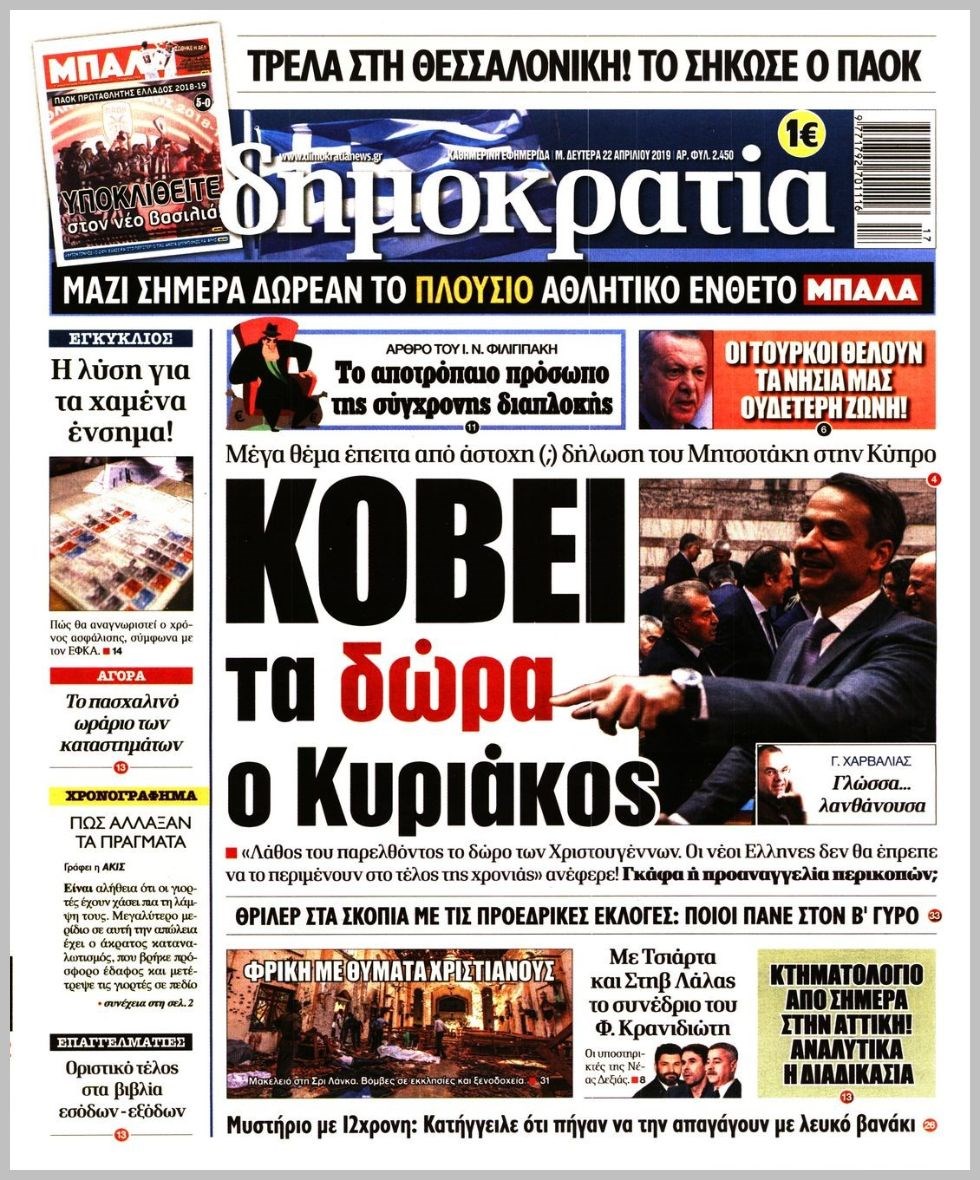 Οι πολιτικές εφημερίδες 22/4/2019 Κώστας Τεό 06:25, Δευτέρα 22 Απριλίου 2019 Media Διαβάστε τα πρωτοσέλιδα των πολιτικών εφημερίδων: ΠΟΛΙΤΙΚΕΣ ΕΦΗΜΕΡΙΔΕΣ ΠΡΩΤΟΣΕΛΙΔΑ Μοιράσου το: σχολίασε κι εσύ (0 σχόλια) Ακολουθήστε το enikos.gr στο Google News και μάθετε πρώτοι όλες τις ειδήσεις Δείτε όλες τις τελευταίες ειδήσεις από την Ελλάδα και τον Κόσμο στο enikos.gr Ειδήσεις Ροή Ειδήσεων 2 λεπτά πριν Καμία «ανακωχή» για τους αγρότες: Γενική συνέλευση σήμερα στο μπλόκο της Νίκαιας – Ο σχεδιασμός για ανοιχτούς δρόμους τα Χριστούγεννα 8 ώρες πριν Ρετζέπ Ταγίπ Ερντογάν: Δεν έχουμε καμία βλέψη στα εδάφη ή την κυριαρχία κανενός – Δεν θα επιτρέψουμε να παραβιαστούν τα δικαιώματά μας 56 λεπτά πριν LEGEND: Ο διάδοχος της φρεγάτας Constellation έρχεται από την ακτοφυλακή των ΗΠΑ 23 λεπτά πριν Τζορτζ Κλούνεϊ: Πέθανε η αδελφή του, Άντα Ζάιντλερ – «Η ηρωίδα μου» 9 ώρες πριν Αρχεία Επστάιν: Οι 500 σελίδες που λείπουν, τα αναπάντητα ερωτήματα και οι επώνυμοι – Τι έπεται 2 ώρες πριν Οπτική ψευδαίσθηση: Μόνο το 2% των ανθρώπων θα βρει την πεταλούδα σε 15 δευτερόλεπτα 2 ώρες πριν Μήλο vs μπανάνα: Ποιο φρούτο έχει περισσότερες φυτικές ίνες, σύμφωνα με διαιτολόγους – Τα οφέλη τους για την υγεία 3 ώρες πριν Τα ζώδια σήμερα, Κυριακή 21 Δεκεμβρίου: Αιγόκεροι, αποφασίζετε για το επόμενο κεφάλαιο της ζωής σας 23 ώρες πριν Enerwave: Το νέο «ρεύμα» στη λιανική ενέργειας που αλλάζει την εμπειρία του καταναλωτή 2 λεπτά πριν Καμία «ανακωχή» για τους αγρότες: Γενική συνέλευση σήμερα στο μπλόκο της Νίκαιας – Ο σχεδιασμός για ανοιχτούς δρόμους τα Χριστούγεννα 5 λεπτά πριν Άγιος έρωτας: Ένας καταστροφικός σεισμός χτυπά τη Στέρνα 13 λεπτά πριν Συνταγή για σκορδόψωμο – Πώς να φτιάξετε δύο συνοδευτικά με τσένταρ και πιπεριές 18 λεπτά πριν Σήμερα με τη Realnews: Ό,τι και αν αγοράσεις, σκανάρεις και κερδίζεις! 23 λεπτά πριν Τζορτζ Κλούνεϊ: Πέθανε η αδελφή του, Άντα Ζάιντλερ – «Η ηρωίδα μου» ENIKOS NETWORK Λίπος στο συκώτι: Τα καλύτερα και τα χειρότερα ροφήματα για το λιπώδες ήπαρ Τεστ προσωπικότητας: Είναι το πρόσωπό σας οβάλ, τετράγωνο, στρογγυλό ή σε σχήμα καρδιάς – Τι σημαίνει; Πρωτοχρονιά 2026: Πόσο κοστίζει φέτος η βασιλόπιτα «Πολεμική» προετοιμασία από την ευρωπαϊκή βιομηχανία ενέργειας – Η Eurelectric ζητεί «ομπρέλα» προστασίας για τις υποδομές Χαρτογραφώντας το «σημείο χωρίς επιστροφή»: Για πρώτη φορά αποκαλύπτεται με λεπτομέρεια το ακανθώδες όριο της ατμόσφαιρας τ... Η Google καταργεί τη λειτουργία «dark web report» – Πώς θα μπορούν οι χρήστες να διαγράφουν τα δεδομένα τους περισσότερα 08:13 , Κυριακή 21 Δεκεμβρίου 2025 Άγιος έρωτας: Ένας καταστροφικός σεισμός χτυπά τη Στέρνα Καταιγιστικές είναι οι εξελίξεις στα δυο τελευταία, συγκλονιστικά επεισόδια του 2025 της σειρά... 08:00 , Κυριακή 21 Δεκεμβρίου 2025 Σήμερα με τη Realnews: Ό,τι και αν αγοράσεις, σκανάρεις και κερδίζεις! Σήμερα με τη Realnews: Ό,τι και αν αγοράσεις, σκανάρεις και κερδίζεις! Με το PADU app, το κορυ... 07:00 , Κυριακή 21 Δεκεμβρίου 2025 Σήμερα με τη Realnews: Instyle, μαζί Drive και Realnews Geopolitics Σήμερα με τη Realnews: Instyle, μαζί Drive και Realnews Geopolitics Instyle Η Άννα Ρεζάν, η Ch... 06:55 , Κυριακή 21 Δεκεμβρίου 2025 Η Realnews στο www.pressreader.com Διαβάστε την ψηφιακή έκδοση της εφημερίδας στην οθόνη του κινητού, του tablet και του υπολογισ... ΤΕΛΕΥΤΑΙΕΣ ΕΙΔΗΣΕΙΣ 5 λεπτά πριν Άγιος έρωτας: Ένας καταστροφικός σεισμός χτυπά τη... 13 λεπτά πριν Συνταγή για σκορδόψωμο – Πώς να φτιάξετε δύο... 18 λεπτά πριν Σήμερα με τη Realnews: Ό,τι και αν αγοράσεις, σκανάρεις και... 23 λεπτά πριν Τζο