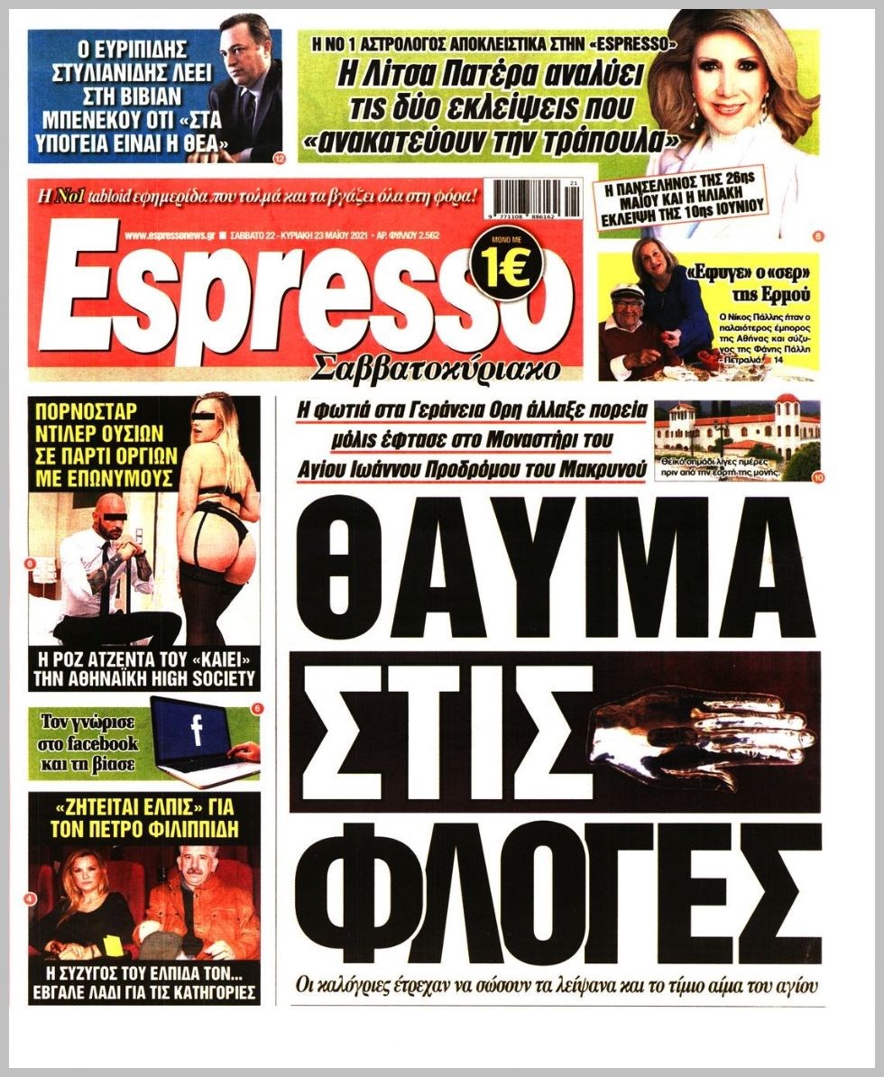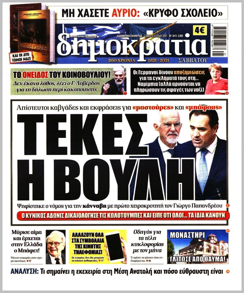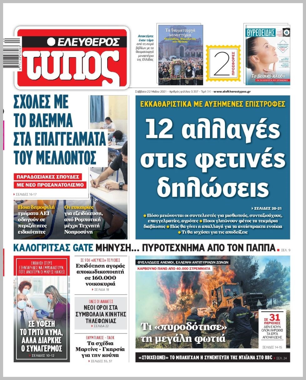 Οι πολιτικές εφημερίδες 22/5/2021 Διονύσης Νίκκας 07:13, Σάββατο 22 Μαΐου 2021 Media Διαβάστε τα πρωτοσέλιδα των πολιτικών εφημερίδων… ΕΦΗΜΕΡΙΔΕΣ ΠΡΩΤΟΣΕΛΙΔΑ Μοιράσου το: σχολίασε κι εσύ (0 σχόλια) Ακολουθήστε το enikos.gr στο Google News και μάθετε πρώτοι όλες τις ειδήσεις Δείτε όλες τις τελευταίες ειδήσεις από την Ελλάδα και τον Κόσμο στο enikos.gr Ειδήσεις Ροή Ειδήσεων 1 ώρα πριν Γιορτές με μπλόκα για τους αγρότες: Ανοίγουν διόδια και μοιράζουν προϊόντα στους ταξιδιώτες 2 ώρες πριν Τα αρχεία του Έπσταϊν αποκαλύπτουν φωτογραφία του έκπτωτου πρίγκιπα Άντριου – Είναι ξαπλωμένος στην αγκαλιά 5 γυναικών 43 λεπτά πριν Νέες ταυτότητες: Μεγάλη αναμονή για ραντεβού στην Αττική – Τέλος τα ταξίδια εκτός Ελλάδος από τον Αύγουστο για όσους δεν έχουν αλλάξει 2 ώρες πριν Εξαφάνιση 33χρονου γιατρού στην Κρήτη: «Άναψα τα φώτα, τρόμαξε και άρχισε να τρέχει στα χωράφια» – Η τελευταία διαδρομή και η μαρτυρία «κλειδί» 3 ώρες πριν Ο «χάρτης» με τις αυξήσεις και τις φοροελαφρύνσεις του 2026 – Ποιοι και πόσα κερδίζουν 2 ώρες πριν Μία νέα «χρυσή» περίοδος αρχίζει για 3 ζώδια από σήμερα – «Μία αναπάντεχη ευκαιρία οδηγεί στην επιτυχία» 6 ώρες πριν Αυγά: Πόσα μπορείτε να τρώτε την ημέρα με ασφάλεια για μέγιστη πρόσληψη πρωτεΐνης 4 ώρες πριν Αρχαιολόγοι ανακάλυψαν σε χωράφι απεικόνιση 600 ετών ενός Αγίου – Τα στοιχεία που δείχνουν ότι μαρτύρησε 3 ώρες πριν Αγχώνεται για το χριστουγεννιάτικο δώρο που πήρε στην πλούσια σύντροφό του – «Φοβάμαι πως θα το βρει φθηνιάρικο, φοράει βραχιόλια Cartier» 4 λεπτά πριν Βούλα: Συνελήφθη 24χρονος με 69 κιλά ακατέργαστης κάνναβης – Κυκλοφορούσε με κλεμμένο αυτοκίνητο 12 λεπτά πριν «Η αγάπη δεν χάνεται ποτέ»: Η μικρού μήκους ταινία κινουμένων σχεδίων που θέτει ερωτήματα για τη ζωή και τον θάνατο 20 λεπτά πριν Στέφανος Παπαδόπουλος: Η συνέντευξη μετά τη μήνυση στον Γιώργο Μαζωνάκη – «Δεν θέλω να τα βρούμε εξωδικαστικά» 27 λεπτά πριν Τραγωδία στην άσφαλτο στα Χανιά: Νεκρός 37χρονος οδηγός ΙΧ – Τον βρήκαν ώρες μετά το τροχαίο 36 λεπτά πριν Τα Labubu «μετακομίζουν» στο Χόλιγουντ: Η Sony Pictures ετοιμάζει live-action ταινία με τον σκηνοθέτη του «Wonka» ENIKOS NETWORK Είστε μόνιμα απρόσεκτοι; 3 σημάδια που δείχνουν ότι μπορεί να είναι σύμπτωμα πάθησης Πόσα κιλά παίρνουμε πραγματικά τα Χριστούγεννα, σύμφωνα με την επιστήμη – Πώς να το αποτρέψουμε; e-ΕΦΚΑ και ΔΥΠΑ: Έρχονται νέες πληρωμές έως τις 24 Δεκεμβρίου – Ποιοι πάνε ταμείο Επίδομα παιδιού: Τι αλλάζει από το 2026 – Το όφελος από τις φορολογικές ελαφρύνσεις Χαρτογραφώντας το «σημείο χωρίς επιστροφή»: Για πρώτη φορά αποκαλύπτεται με λεπτομέρεια το ακανθώδες όριο της ατμόσφαιρας τ... Η Google καταργεί τη λειτουργία «dark web report» – Πώς θα μπορούν οι χρήστες να διαγράφουν τα δεδομένα τους περισσότερα 11:41 , Σάββατο 20 Δεκεμβρίου 2025 «Η αγάπη δεν χάνεται ποτέ»: Η μικρού μήκους ταινία κινουμένων σχεδίων που θέτει ερωτήματα για τη ζωή και τον θάνατο Ο θάνατος είναι ένα από τα πιο σκληρά θέματα που καλείται να διαχειριστεί κάποιος στη διάρκεια... 09:30 , Σάββατο 20 Δεκεμβρίου 2025 «Porto Leone: Στη γειτονιά με τα κόκκινα φανάρια» – Ο Χρόνης αποκαλύπτει στην Αλεξάνδρα το μυστικό για το παιδί της Λένας Η μεγάλη δραματική σειρά του Apha «Porto Leone: Στη γειτονιά με τα κόκκινα φανάρια» μας μεταφέ... 08:14 , Σάββατο 20 Δεκεμβρίου 2025 Τρομεροί γονείς: Η Μαρία Καβογιάννη εισβάλλει στο σπίτι της οικογένειας Στεφανίδη Όσα θα δούμε στο νέο διπλό επεισόδιο της σειράς «Τρομεροί γονείς», σήμερα 