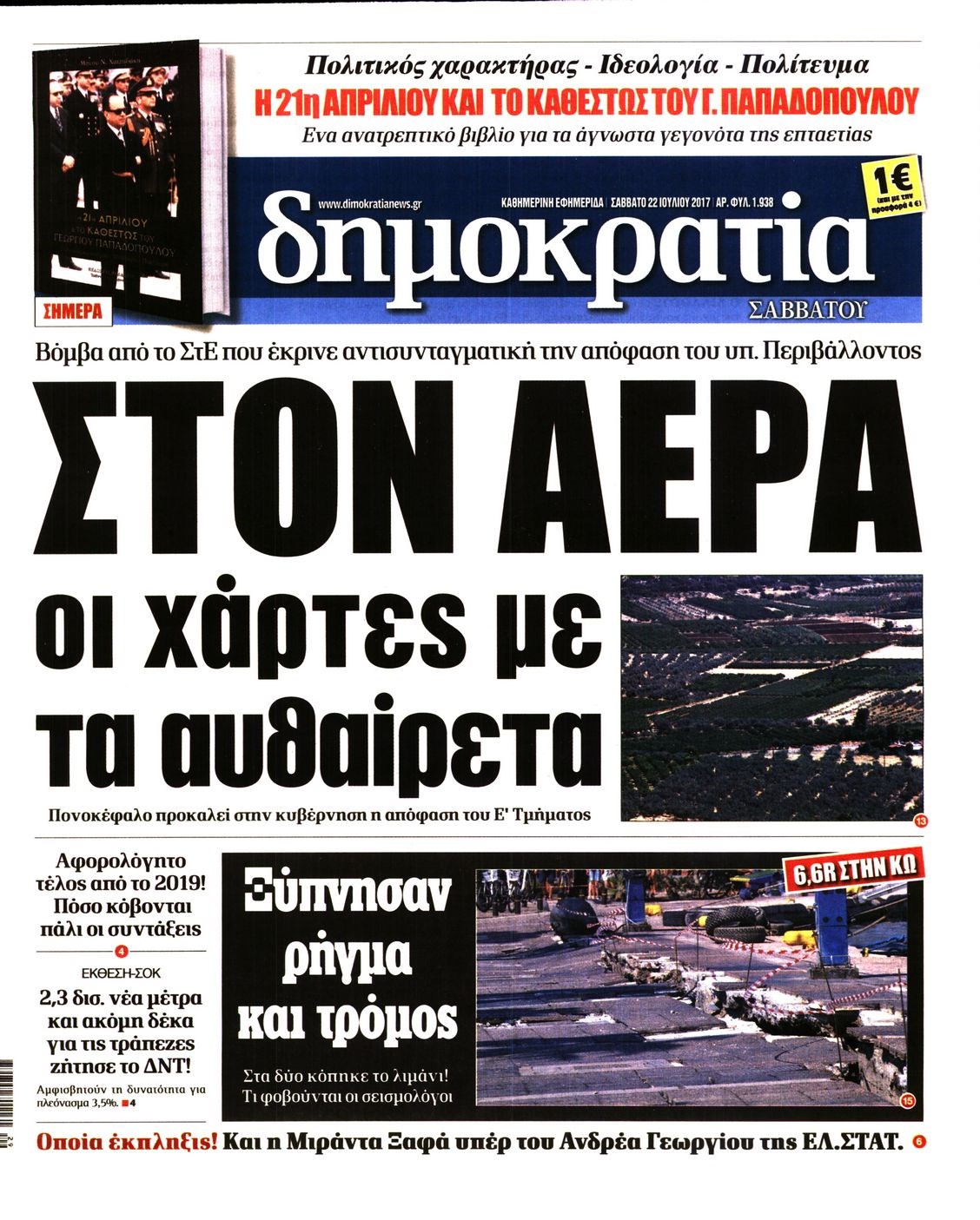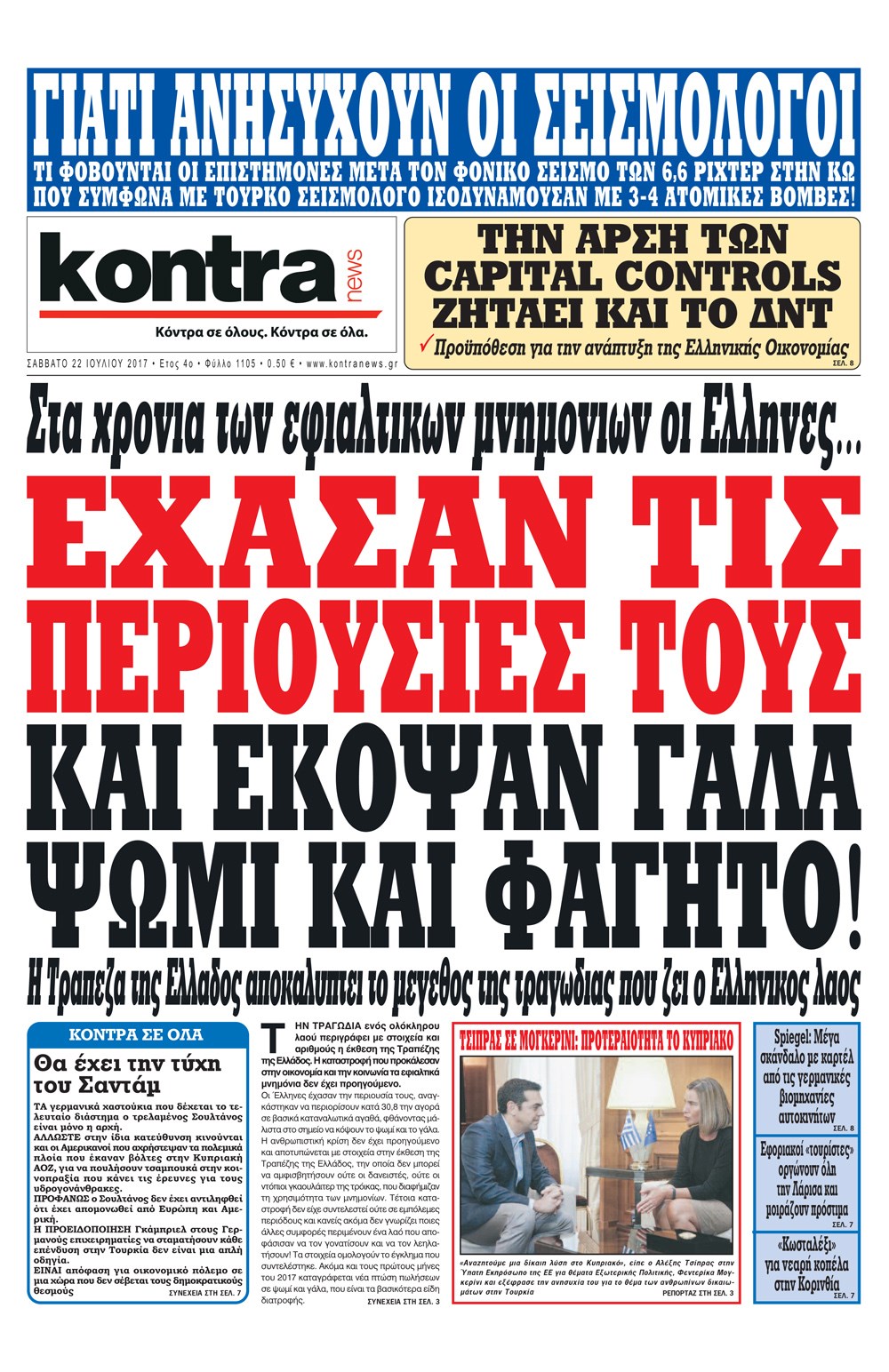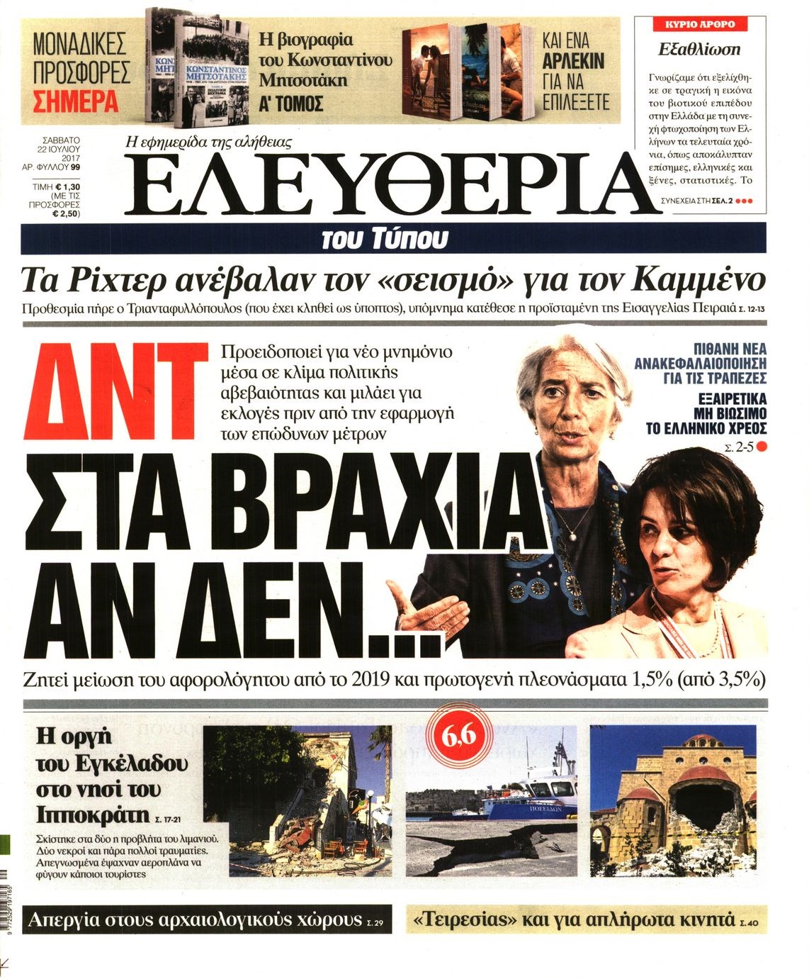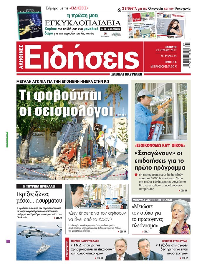 Οι πολιτικές εφημερίδες 22/7/2017 Enikos Newsroom 07:37, Σάββατο 22 Ιουλίου 2017 Media Διαβάστε τα σημερινά πρωτοσέλιδα των πολιτικών εφημερίδων: ΠΟΛΙΤΙΚΕΣ ΕΦΗΜΕΡΙΔΕΣ ΠΡΩΤΟΣΕΛΙΔΑ Μοιράσου το: σχολίασε κι εσύ (0 σχόλια) Ακολουθήστε το enikos.gr στο Google News και μάθετε πρώτοι όλες τις ειδήσεις Δείτε όλες τις τελευταίες ειδήσεις από την Ελλάδα και τον Κόσμο στο enikos.gr Ειδήσεις Ροή Ειδήσεων 39 λεπτά πριν Μπλόκα: Οι αγρότες σηκώνουν τις μπάρες σε διόδια για τους εκδρομείς των Χριστουγέννων και μοιράζουν προϊόντα – Βίντεο 1 ώρα πριν Τσιάρας προς αγρότες: Τα μπλόκα και τα πείσματα δεν ωφελούν – Οι λύσεις περνούν μέσα από τον διάλογο 2 ώρες πριν Αρχεία Έπσταϊν: Οι συγκλονιστικές φωτογραφίες – Ο Μάικλ Τζάκσον, ο Μικ Τζάγκερ και ο Κέβιν Σπέισι ανάμεσα στους διάσημους που απεικονίζονται 3 ώρες πριν Νέες ταυτότητες: Μεγάλη αναμονή για ραντεβού στην Αττική – Τέλος τα ταξίδια εκτός Ελλάδος από τον Αύγουστο για όσους δεν έχουν αλλάξει 3 ώρες πριν Ινδία: Επτά ελέφαντες σκοτώθηκαν κατά τη σύγκρουση επιβατικού τρένου με κοπάδι 4 ώρες πριν Μία νέα «χρυσή» περίοδος αρχίζει για 3 ζώδια από σήμερα – «Μία αναπάντεχη ευκαιρία οδηγεί στην επιτυχία» 5 ώρες πριν Αγχώνεται για το χριστουγεννιάτικο δώρο που πήρε στην πλούσια σύντροφό του – «Φοβάμαι πως θα το βρει φθηνιάρικο, φοράει βραχιόλια Cartier» 3 ώρες πριν Διαιτολόγος αποκαλύπτει 9 πρωινές συνήθειες που «λιώνουν» το κοιλιακό λίπος – «Υποστηρίζουν την υγιεινή απώλεια βάρους» 3 ώρες πριν Οι 7 φράσεις που δεν λένε ποτέ οι συναισθηματικά έξυπνοι άνθρωποι κατά τη διάρκεια ενός καβγά 3 λεπτά πριν Βέλγιο: Άγνωστοι έριξαν κόκκινη μπογιά στο προξενείο της Πολωνίας στις Βρυξέλλες 11 λεπτά πριν Γρηγόρης Δημητριάδης: Χριστουγεννιάτικη συνάντηση με τα παιδιά της ΔΑΠ-ΝΔΦΚ και της ΟΝΝΕΔ 18 λεπτά πριν Στέφανος Παπαδόπουλος: Ξέσπασε σε κλάματα – «Θέλω να έρθει μπροστά μου και να μου πει ότι είμαι ψεύτης» 27 λεπτά πριν Η Realnews αυτής της Κυριακής (21/12/2025) 36 λεπτά πριν Πέτρου Ράλλη: Καρέ – καρέ η κλοπή αυτοκινήτου μέσα σε 2,5 λεπτά ENIKOS NETWORK Η αποχή από την αναπαραγωγή παρατείνει τη ζωή στα ζώα, σύμφωνα με μελέτη – Τι ισχύει για τους ανθρώπους; Σημαντικές επαφές στις ΗΠΑ είχε ο υπουργός Υγείας Άδωνις Γεωργιάδης MyHealth App: Τα στοιχεία για τον Προσωπικό Βοηθό Υγείας Πολίτη – Τι ερωτήματα έγιναν μέσα σε 7 ημέρες Χειμερινές εκπτώσεις 2026: Πρεμιέρα στις 12 Ιανουαρίου – Πόσο θα διαρκέσουν και τι πρέπει να γνωρίζουν οι καταναλωτές Χαρτογραφώντας το «σημείο χωρίς επιστροφή»: Για πρώτη φορά αποκαλύπτεται με λεπτομέρεια το ακανθώδες όριο της ατμόσφαιρας τ... Η Google καταργεί τη λειτουργία «dark web report» – Πώς θα μπορούν οι χρήστες να διαγράφουν τα δεδομένα τους περισσότερα 14:04 , Σάββατο 20 Δεκεμβρίου 2025 Η Realnews αυτής της Κυριακής (21/12/2025) Με τίτλο: «Ασπίδα προστασίας για την Ελλάδα» κυκλοφορεί, αυτήν την Κυριακή, η Realnews. Σημαντ... 12:53 , Σάββατο 20 Δεκεμβρίου 2025 Να μ’ αγαπάς: Το παρελθόν έρχεται στο φως – Καταιγιστικές εξελίξεις στα τελευταία επεισόδια του 2025 Ο Άγγελος αποκαλύπτεται, η Φωτεινή ανησυχεί για τον Λευτέρη και η Ζωή έρχεται αντιμέτωπη με το... 11:41 , Σάββατο 20 Δεκεμβρίου 2025 «Η αγάπη δεν χάνεται ποτέ»: Η μικρού μήκους ταινία κινουμένων σχεδίων που θέτει ερωτήματα για τη ζωή και τον θάνατο Ο θάνατος είναι ένα από τα πιο σκληρά θέματα που καλείται να διαχειριστεί κάποιος στη διάρκεια... 09:30 , Σάββατο 20 Δεκεμβρίου 2025 «Porto Leone: Στη γειτονιά με τα κόκκινα φανάρια» – Ο Χρόνης αποκαλύπτει στην