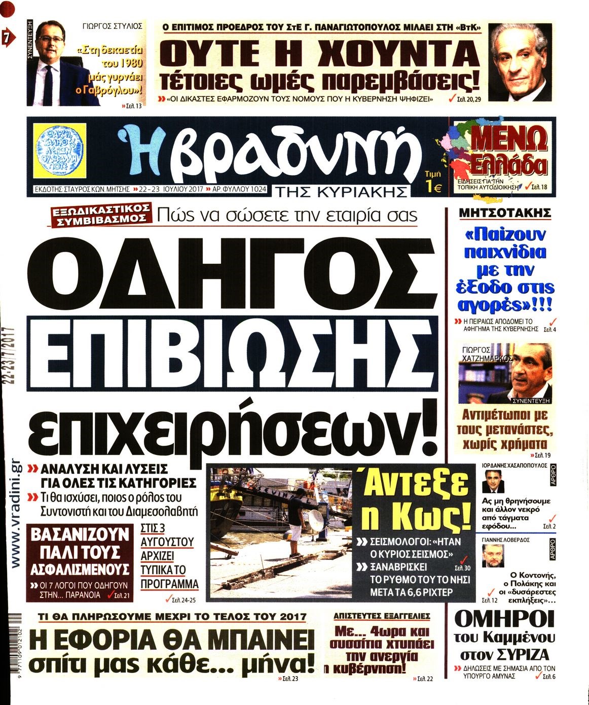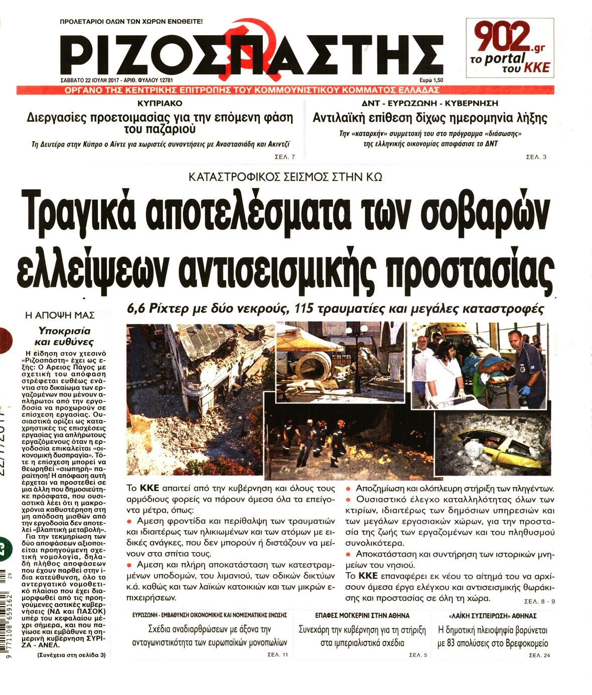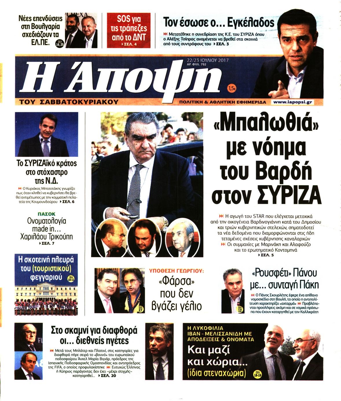 Οι πολιτικές εφημερίδες 22/7/2017 Enikos Newsroom 07:37, Σάββατο 22 Ιουλίου 2017 Media Διαβάστε τα σημερινά πρωτοσέλιδα των πολιτικών εφημερίδων: ΠΟΛΙΤΙΚΕΣ ΕΦΗΜΕΡΙΔΕΣ ΠΡΩΤΟΣΕΛΙΔΑ Μοιράσου το: σχολίασε κι εσύ (0 σχόλια) Ακολουθήστε το enikos.gr στο Google News και μάθετε πρώτοι όλες τις ειδήσεις Δείτε όλες τις τελευταίες ειδήσεις από την Ελλάδα και τον Κόσμο στο enikos.gr Ειδήσεις Ροή Ειδήσεων 39 λεπτά πριν Μπλόκα: Οι αγρότες σηκώνουν τις μπάρες σε διόδια για τους εκδρομείς των Χριστουγέννων και μοιράζουν προϊόντα – Βίντεο 1 ώρα πριν Τσιάρας προς αγρότες: Τα μπλόκα και τα πείσματα δεν ωφελούν – Οι λύσεις περνούν μέσα από τον διάλογο 2 ώρες πριν Αρχεία Έπσταϊν: Οι συγκλονιστικές φωτογραφίες – Ο Μάικλ Τζάκσον, ο Μικ Τζάγκερ και ο Κέβιν Σπέισι ανάμεσα στους διάσημους που απεικονίζονται 3 ώρες πριν Νέες ταυτότητες: Μεγάλη αναμονή για ραντεβού στην Αττική – Τέλος τα ταξίδια εκτός Ελλάδος από τον Αύγουστο για όσους δεν έχουν αλλάξει 3 ώρες πριν Ινδία: Επτά ελέφαντες σκοτώθηκαν κατά τη σύγκρουση επιβατικού τρένου με κοπάδι 4 ώρες πριν Μία νέα «χρυσή» περίοδος αρχίζει για 3 ζώδια από σήμερα – «Μία αναπάντεχη ευκαιρία οδηγεί στην επιτυχία» 5 ώρες πριν Αγχώνεται για το χριστουγεννιάτικο δώρο που πήρε στην πλούσια σύντροφό του – «Φοβάμαι πως θα το βρει φθηνιάρικο, φοράει βραχιόλια Cartier» 3 ώρες πριν Διαιτολόγος αποκαλύπτει 9 πρωινές συνήθειες που «λιώνουν» το κοιλιακό λίπος – «Υποστηρίζουν την υγιεινή απώλεια βάρους» 3 ώρες πριν Οι 7 φράσεις που δεν λένε ποτέ οι συναισθηματικά έξυπνοι άνθρωποι κατά τη διάρκεια ενός καβγά 3 λεπτά πριν Βέλγιο: Άγνωστοι έριξαν κόκκινη μπογιά στο προξενείο της Πολωνίας στις Βρυξέλλες 11 λεπτά πριν Γρηγόρης Δημητριάδης: Χριστουγεννιάτικη συνάντηση με τα παιδιά της ΔΑΠ-ΝΔΦΚ και της ΟΝΝΕΔ 18 λεπτά πριν Στέφανος Παπαδόπουλος: Ξέσπασε σε κλάματα – «Θέλω να έρθει μπροστά μου και να μου πει ότι είμαι ψεύτης» 27 λεπτά πριν Η Realnews αυτής της Κυριακής (21/12/2025) 36 λεπτά πριν Πέτρου Ράλλη: Καρέ – καρέ η κλοπή αυτοκινήτου μέσα σε 2,5 λεπτά ENIKOS NETWORK Η αποχή από την αναπαραγωγή παρατείνει τη ζωή στα ζώα, σύμφωνα με μελέτη – Τι ισχύει για τους ανθρώπους; Σημαντικές επαφές στις ΗΠΑ είχε ο υπουργός Υγείας Άδωνις Γεωργιάδης MyHealth App: Τα στοιχεία για τον Προσωπικό Βοηθό Υγείας Πολίτη – Τι ερωτήματα έγιναν μέσα σε 7 ημέρες Χειμερινές εκπτώσεις 2026: Πρεμιέρα στις 12 Ιανουαρίου – Πόσο θα διαρκέσουν και τι πρέπει να γνωρίζουν οι καταναλωτές Χαρτογραφώντας το «σημείο χωρίς επιστροφή»: Για πρώτη φορά αποκαλύπτεται με λεπτομέρεια το ακανθώδες όριο της ατμόσφαιρας τ... Η Google καταργεί τη λειτουργία «dark web report» – Πώς θα μπορούν οι χρήστες να διαγράφουν τα δεδομένα τους περισσότερα 14:04 , Σάββατο 20 Δεκεμβρίου 2025 Η Realnews αυτής της Κυριακής (21/12/2025) Με τίτλο: «Ασπίδα προστασίας για την Ελλάδα» κυκλοφορεί, αυτήν την Κυριακή, η Realnews. Σημαντ... 12:53 , Σάββατο 20 Δεκεμβρίου 2025 Να μ’ αγαπάς: Το παρελθόν έρχεται στο φως – Καταιγιστικές εξελίξεις στα τελευταία επεισόδια του 2025 Ο Άγγελος αποκαλύπτεται, η Φωτεινή ανησυχεί για τον Λευτέρη και η Ζωή έρχεται αντιμέτωπη με το... 11:41 , Σάββατο 20 Δεκεμβρίου 2025 «Η αγάπη δεν χάνεται ποτέ»: Η μικρού μήκους ταινία κινουμένων σχεδίων που θέτει ερωτήματα για τη ζωή και τον θάνατο Ο θάνατος είναι ένα από τα πιο σκληρά θέματα που καλείται να διαχειριστεί κάποιος στη διάρκεια... 09:30 , Σάββατο 20 Δεκεμβρίου 2025 «Porto Leone: Στη γειτονιά με τα κόκκινα φανάρια» – Ο Χρόνης αποκαλύπτει στην