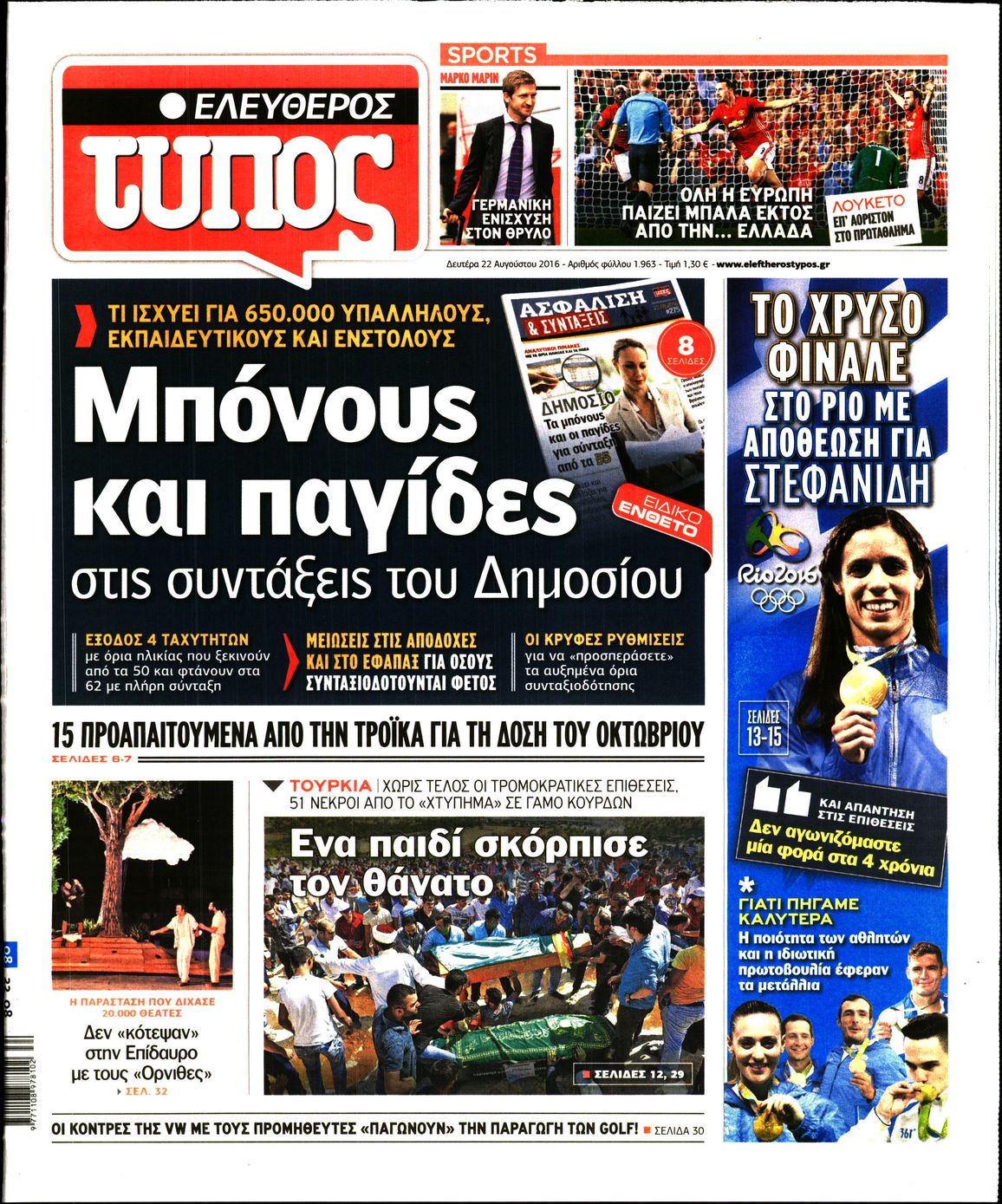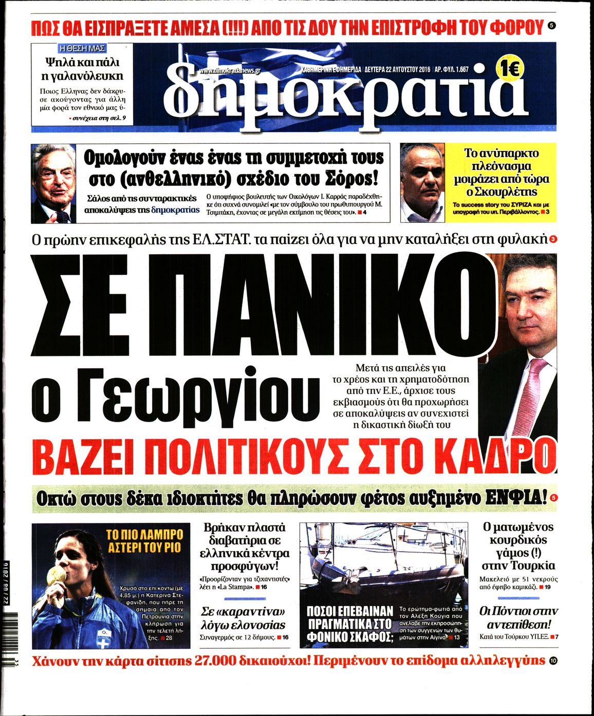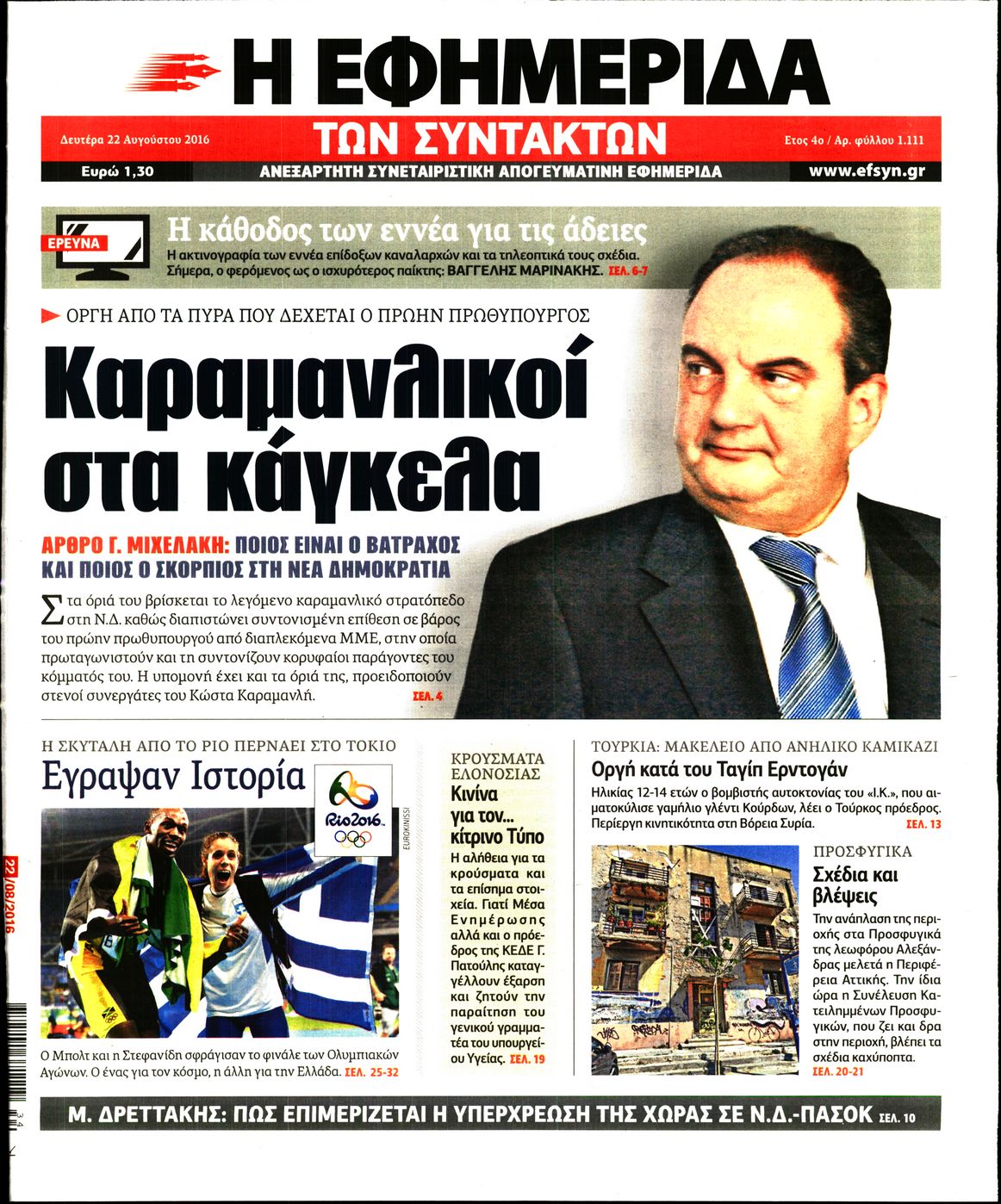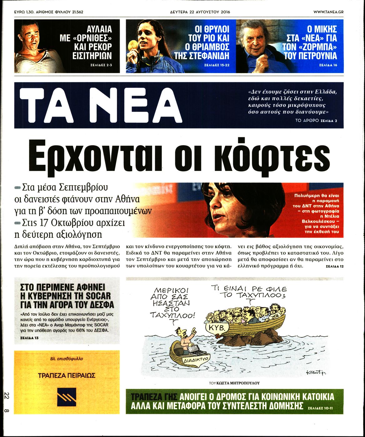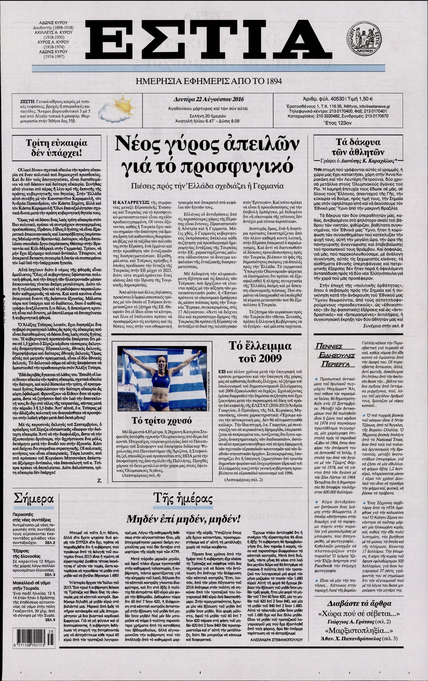 Οι πολιτικές εφημερίδες 22/8/2016 Enikos Newsroom 06:50, Δευτέρα 22 Αυγούστου 2016 Media Διαβάστε τα σημερινά πρωτοσέλιδα των πολιτικών εφημερίδων: \ ΠΟΛΙΤΙΚΕΣ ΕΦΗΜΕΡΙΔΕΣ ΠΡΩΤΟΣΕΛΙΔΑ Μοιράσου το: σχολίασε κι εσύ (0 σχόλια) Ακολουθήστε το enikos.gr στο Google News και μάθετε πρώτοι όλες τις ειδήσεις Δείτε όλες τις τελευταίες ειδήσεις από την Ελλάδα και τον Κόσμο στο enikos.gr Ειδήσεις Ροή Ειδήσεων 2 ώρες πριν Χριστούγεννα στα μπλόκα: Επιμένουν στις κινητοποιήσεις τους οι αγρότες – Ανοίγουν τα διόδια το Σαββατοκύριακο 3 ώρες πριν Ουκρανία: Η άνευ προηγουμένου επίθεση σε ρωσικό τάνκερ στη Μεσόγειο και το μήνυμα προς στον Πούτιν – Το «μακρύ χέρι» του Κιέβου 2 ώρες πριν Πούτιν: Τα μηνύματα σε Ευρώπη και ΝΑΤΟ από το μαραθώνιο «σόου» του – Η απαίτηση για «σεβασμό» και η ειρήνη «με τους όρους» της Μόσχας 3 ώρες πριν Τραμπ: Δεν αποκλείει την πιθανότητα ενός πολέμου στη Βενεζουέλα – «Ο Μαδούρο ξέρει καλύτερα από τον καθένα τι ακριβώς θέλω» 3 ώρες πριν Συνεχίζει να προκαλεί ο Μίτσκοσκι: «Για μένα το όνομα Μακεδονία είναι ιερό» 2 ώρες πριν Ανακαλύφθηκαν αρχαία χρυσά νομίσματα 2.200 ετών που απεικονίζουν τον θεό Απόλλωνα – Η άγνωστη σύνδεση με τον Φίλιππο Β΄ της Μακεδονίας 3 ώρες πριν Ύπνος: Μια κρυφή κατάσταση του εγκεφάλου πριν από τον ύπνο μπορεί να είναι το “κλειδί” για υψηλή ευφυΐα και δημιουργικότητα 4 ώρες πριν Αριθμολογία: Οι άνθρωποι που έχουν γεννηθεί αυτές τις 4 ημερομηνίες, συχνά παρεξηγούνται – «Η καλοσύνη τους κρύβει τεράστια δύναμη» 5 ώρες πριν Ξεχάστε το καθάρισμα το Σαββατοκύριακο: Ο «κανόνας των 20 λεπτών» που θα σας λύσει τα χέρια 18 λεπτά πριν Φαίη Σκορδά: «Παλιότερα τα κομπλιμέντα τα προσπερνούσα, τώρα τα έχω ανάγκη» 34 λεπτά πριν Βασίλης Σπανούλης: Δεν εμφανίστηκε ούτε ένας δημοσιογράφος στην συνέντευξη Τύπου – «Καλησπέρα στον… κανέναν», δείτε βίντεο 45 λεπτά πριν Πόλεμος στην Ουκρανία: Εφτά νεκροί από ρωσική πυραυλική επίθεση στο λιμάνι της Οδησσού 49 λεπτά πριν ΗΠΑ: Η κυβέρνηση του Ντόναλντ Τραμπ άρχισε να δημοσιοποιεί τα αρχεία Έπσταϊν 1 ώρα πριν Σάμος: Άνοιξε το μπλόκο των αγροτών στον κόμβο Κοκκαρίου – Σε νέα συνεδρίαση θα καθορίσουν την στάση τους ENIKOS NETWORK Το ΕΚΑΒ τιμήθηκε από την Ακαδημία Αθηνών για τα 40 χρόνια προσφοράς του Έχετε πραγματικά μεγάλη καρδιά; 10 χαρακτηριστικά όσων έχουν καλοσύνη Αναστολή μέτρων αναγκαστικής εκτέλεσης για κτηνοτρόφους που πλήττονται από την ευλογιά των αιγοπροβάτων Πλήρης επάρκεια προϊόντων στις λαϊκές της Αττικής, παρά τις αγροτικές κινητοποιήσεις – Τι απαντούν οι πωλητές Χαρτογραφώντας το «σημείο χωρίς επιστροφή»: Για πρώτη φορά αποκαλύπτεται με λεπτομέρεια το ακανθώδες όριο της ατμόσφαιρας τ... Η Google καταργεί τη λειτουργία «dark web report» – Πώς θα μπορούν οι χρήστες να διαγράφουν τα δεδομένα τους περισσότερα 22:42 , Παρασκευή 19 Δεκεμβρίου 2025 Γιώργος Γιαννόπουλος για “Το σόι σου”: “Είναι ευτυχία και ευλογία αυτή η σειρά” «Είναι ευτυχία και ευλογία η συγκυρία αυτής της σειράς», θα πει ο Γιώργος Γιαννόπουλος -ο αγαπ... 20:37 , Παρασκευή 19 Δεκεμβρίου 2025 Don’t Forget The Lyrics: Η Έλλη Κοκκίνου υποδέχεται 4 παίκτες που θα κάνουν τα πάντα για να μη χάσουν ούτε… μισή λέξη από τους στίχους Το «Don’t Forget The Lyrics» επιστρέφει απόψε, Παρασκευή 19 Δεκεμβρίου, στις 21:00 με νέο επει... 19:31 , Παρασκευή 19 Δεκεμβρίου 2025 GNTM: Απόψε ο μεγάλος τελικός για τους 4 φιναλίστ Έπειτα από μήνες γεμάτους μόδα, δημιουργία και έντονες αναμετρήσεις, το GNTM 2025 κορυφώνεται,... 18:11 , Παρ