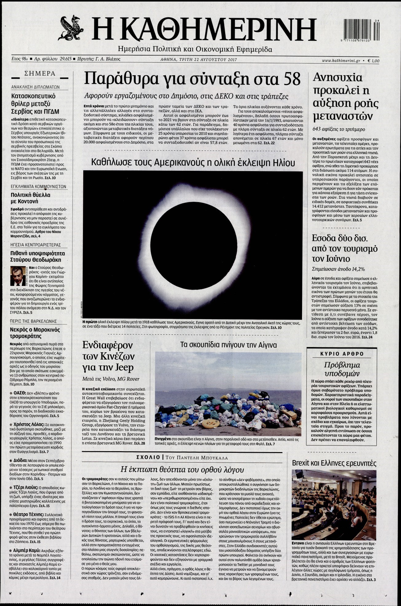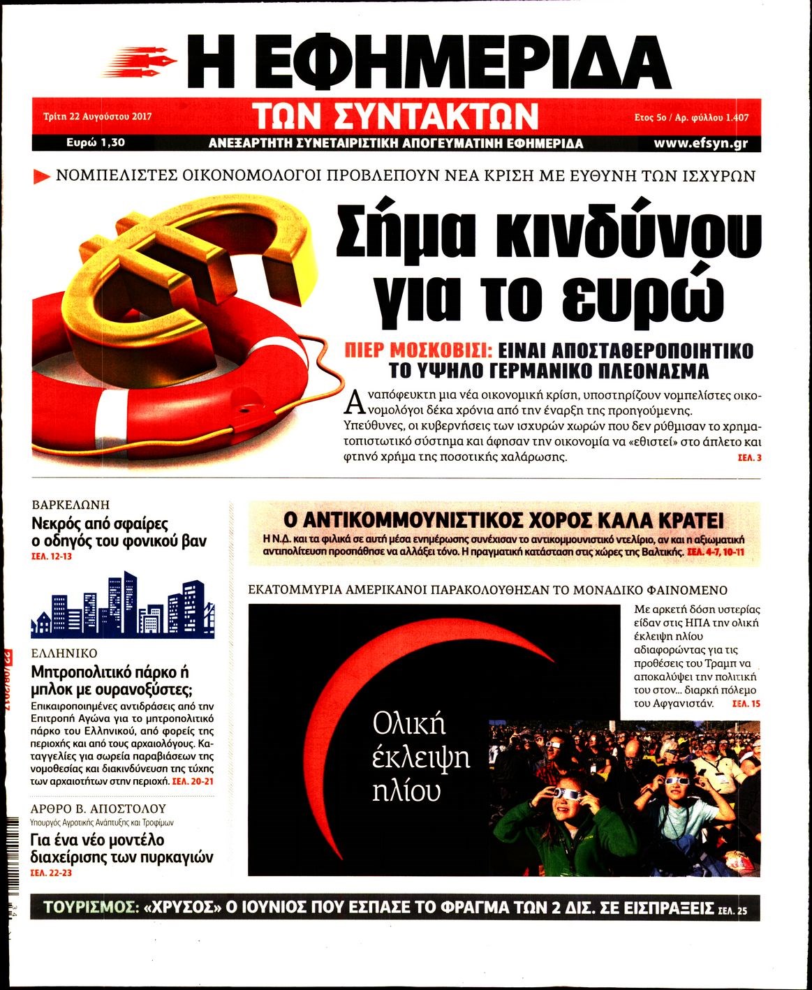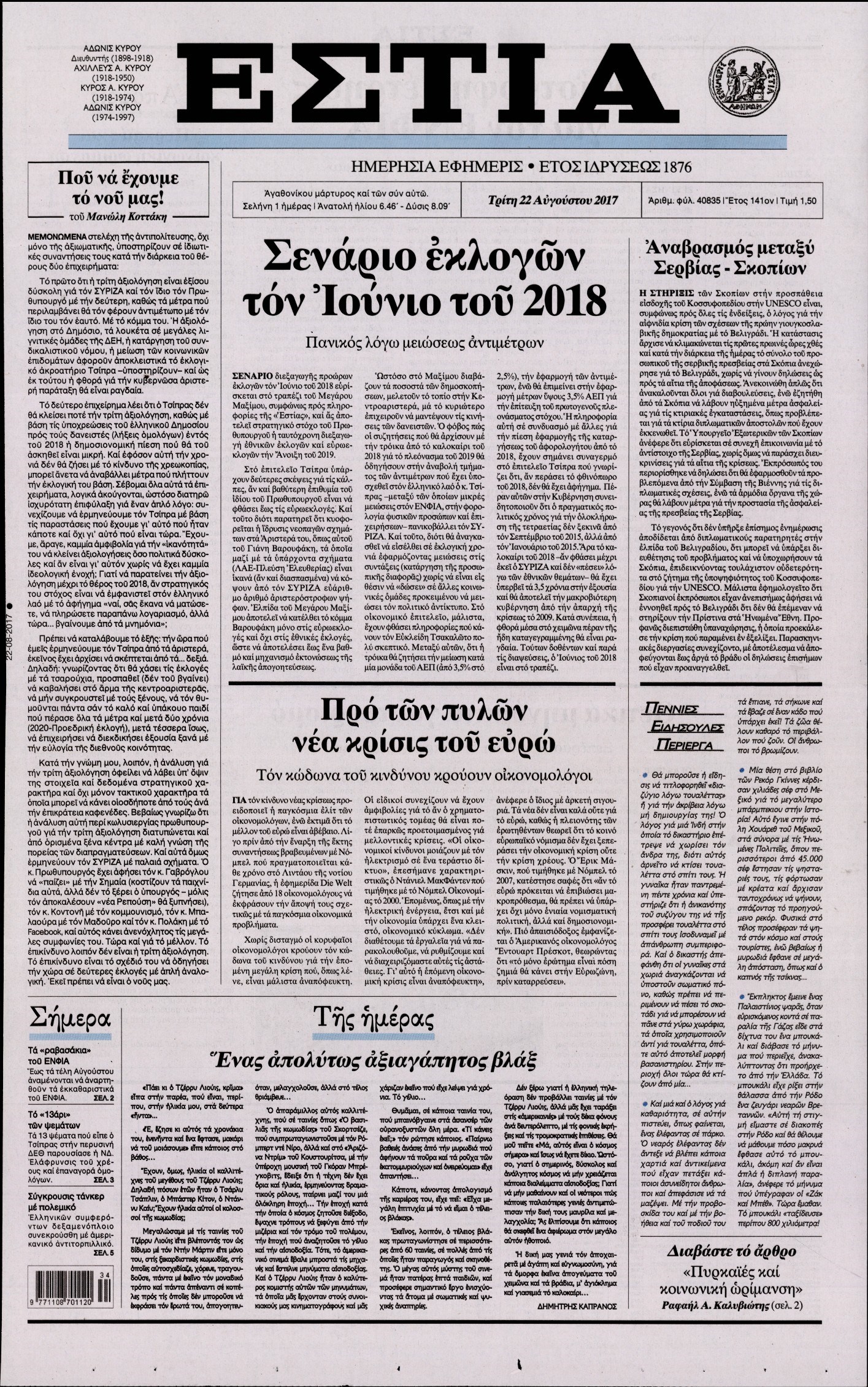 Οι πολιτικές εφημερίδες 22/8/2017 Enikos Newsroom 07:30, Τρίτη 22 Αυγούστου 2017 Media Διαβάστε τα σημερινά πρωτοσέλιδα των πολιτικών εφημερίδων: ΠΟΛΙΤΙΚΕΣ ΕΦΗΜΕΡΙΔΕΣ ΠΡΩΤΟΣΕΛΙΔΑ Μοιράσου το: σχολίασε κι εσύ (0 σχόλια) Ακολουθήστε το enikos.gr στο Google News και μάθετε πρώτοι όλες τις ειδήσεις Δείτε όλες τις τελευταίες ειδήσεις από την Ελλάδα και τον Κόσμο στο enikos.gr Ειδήσεις Ροή Ειδήσεων 1 ώρα πριν Χριστούγεννα στα μπλόκα: Επιμένουν στις κινητοποιήσεις τους οι αγρότες – Ανοίγουν τα διόδια το Σαββατοκύριακο 2 ώρες πριν Ουκρανία: Η άνευ προηγουμένου επίθεση σε ρωσικό τάνκερ στη Μεσόγειο και το μήνυμα προς στον Πούτιν – Το «μακρύ χέρι» του Κιέβου 1 ώρα πριν Πούτιν: Τα μηνύματα σε Ευρώπη και ΝΑΤΟ από το μαραθώνιο «σόου» του – Η απαίτηση για «σεβασμό» και η ειρήνη «με τους όρους» της Μόσχας 2 ώρες πριν Τραμπ: Δεν αποκλείει την πιθανότητα ενός πολέμου στη Βενεζουέλα – «Ο Μαδούρο ξέρει καλύτερα από τον καθένα τι ακριβώς θέλω» 3 ώρες πριν Συνεχίζει να προκαλεί ο Μίτσκοσκι: «Για μένα το όνομα Μακεδονία είναι ιερό» 1 ώρα πριν Ανακαλύφθηκαν αρχαία χρυσά νομίσματα 2.200 ετών που απεικονίζουν τον θεό Απόλλωνα – Η άγνωστη σύνδεση με τον Φίλιππο Β΄ της Μακεδονίας 2 ώρες πριν Ύπνος: Μια κρυφή κατάσταση του εγκεφάλου πριν από τον ύπνο μπορεί να είναι το “κλειδί” για υψηλή ευφυΐα και δημιουργικότητα 3 ώρες πριν Αριθμολογία: Οι άνθρωποι που έχουν γεννηθεί αυτές τις 4 ημερομηνίες, συχνά παρεξηγούνται – «Η καλοσύνη τους κρύβει τεράστια δύναμη» 4 ώρες πριν Ξεχάστε το καθάρισμα το Σαββατοκύριακο: Ο «κανόνας των 20 λεπτών» που θα σας λύσει τα χέρια 4 λεπτά πριν Πόλεμος στην Ουκρανία: Εφτά νεκροί από ρωσική πυραυλική επίθεση στο λιμάνι της Οδησσού 8 λεπτά πριν ΗΠΑ: Η κυβέρνηση του Ντόναλντ Τραμπ άρχισε να δημοσιοποιεί τα αρχεία Έπσταϊν 20 λεπτά πριν Σάμος: Άνοιξε το μπλόκο των αγροτών στον κόμβο Κοκκαρίου – Σε νέα συνεδρίαση θα καθορίσουν την στάση τους 28 λεπτά πριν Άνω Λιόσια: Πυροβολισμοί σε επιχείρηση με χαλιά – Εντοπίστηκαν 10 κάλυκες 35 λεπτά πριν Γάζα: Ισραηλινό πλήγμα σε σχολείο που είχαν καταφύγει εκτοπισμένοι – Τουλάχιστον έξι νεκροί ENIKOS NETWORK Το ΕΚΑΒ τιμήθηκε από την Ακαδημία Αθηνών για τα 40 χρόνια προσφοράς του Έχετε πραγματικά μεγάλη καρδιά; 10 χαρακτηριστικά όσων έχουν καλοσύνη Αναστολή μέτρων αναγκαστικής εκτέλεσης για κτηνοτρόφους που πλήττονται από την ευλογιά των αιγοπροβάτων Πλήρης επάρκεια προϊόντων στις λαϊκές της Αττικής, παρά τις αγροτικές κινητοποιήσεις – Τι απαντούν οι πωλητές Χαρτογραφώντας το «σημείο χωρίς επιστροφή»: Για πρώτη φορά αποκαλύπτεται με λεπτομέρεια το ακανθώδες όριο της ατμόσφαιρας τ... Η Google καταργεί τη λειτουργία «dark web report» – Πώς θα μπορούν οι χρήστες να διαγράφουν τα δεδομένα τους περισσότερα 22:42 , Παρασκευή 19 Δεκεμβρίου 2025 Γιώργος Γιαννόπουλος για “Το σόι σου”: “Είναι ευτυχία και ευλογία αυτή η σειρά” «Είναι ευτυχία και ευλογία η συγκυρία αυτής της σειράς», θα πει ο Γιώργος Γιαννόπουλος -ο αγαπ... 20:37 , Παρασκευή 19 Δεκεμβρίου 2025 Don’t Forget The Lyrics: Η Έλλη Κοκκίνου υποδέχεται 4 παίκτες που θα κάνουν τα πάντα για να μη χάσουν ούτε… μισή λέξη από τους στίχους Το «Don’t Forget The Lyrics» επιστρέφει απόψε, Παρασκευή 19 Δεκεμβρίου, στις 21:00 με νέο επει... 19:31 , Παρασκευή 19 Δεκεμβρίου 2025 GNTM: Απόψε ο μεγάλος τελικός για τους 4 φιναλίστ Έπειτα από μήνες γεμάτους μόδα, δημιουργία και έντονες αναμετρήσεις, το GNTM 2025 κορυφώνεται,... 18:11 , Παρασκευή 19 Δεκεμβρίου 2025 Το σόι σου: Ο Άρης