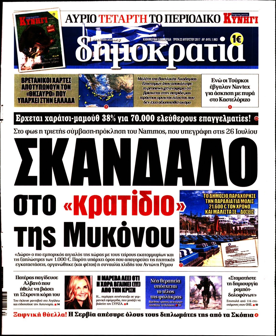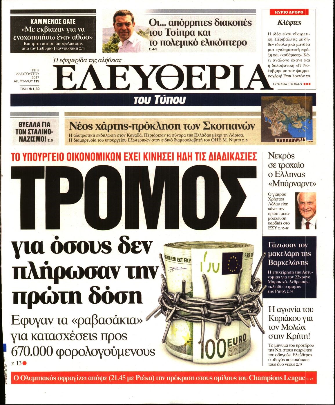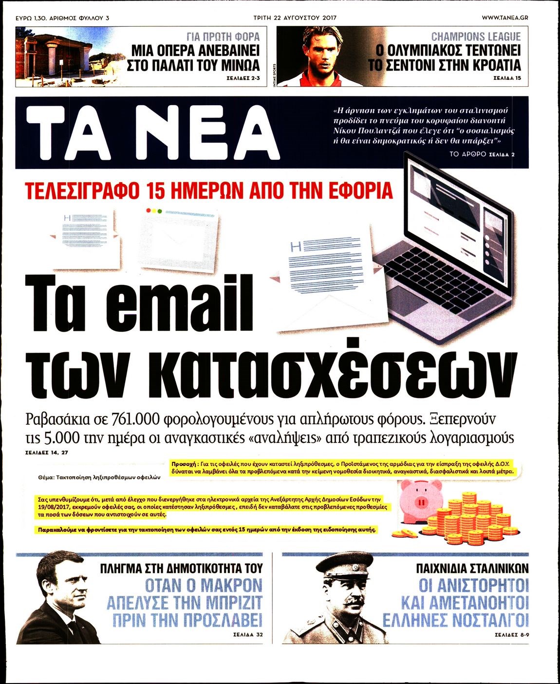 Οι πολιτικές εφημερίδες 22/8/2017 Enikos Newsroom 07:30, Τρίτη 22 Αυγούστου 2017 Media Διαβάστε τα σημερινά πρωτοσέλιδα των πολιτικών εφημερίδων: ΠΟΛΙΤΙΚΕΣ ΕΦΗΜΕΡΙΔΕΣ ΠΡΩΤΟΣΕΛΙΔΑ Μοιράσου το: σχολίασε κι εσύ (0 σχόλια) Ακολουθήστε το enikos.gr στο Google News και μάθετε πρώτοι όλες τις ειδήσεις Δείτε όλες τις τελευταίες ειδήσεις από την Ελλάδα και τον Κόσμο στο enikos.gr Ειδήσεις Ροή Ειδήσεων 1 ώρα πριν Χριστούγεννα στα μπλόκα: Επιμένουν στις κινητοποιήσεις τους οι αγρότες – Ανοίγουν τα διόδια το Σαββατοκύριακο 2 ώρες πριν Ουκρανία: Η άνευ προηγουμένου επίθεση σε ρωσικό τάνκερ στη Μεσόγειο και το μήνυμα προς στον Πούτιν – Το «μακρύ χέρι» του Κιέβου 1 ώρα πριν Πούτιν: Τα μηνύματα σε Ευρώπη και ΝΑΤΟ από το μαραθώνιο «σόου» του – Η απαίτηση για «σεβασμό» και η ειρήνη «με τους όρους» της Μόσχας 2 ώρες πριν Τραμπ: Δεν αποκλείει την πιθανότητα ενός πολέμου στη Βενεζουέλα – «Ο Μαδούρο ξέρει καλύτερα από τον καθένα τι ακριβώς θέλω» 3 ώρες πριν Συνεχίζει να προκαλεί ο Μίτσκοσκι: «Για μένα το όνομα Μακεδονία είναι ιερό» 1 ώρα πριν Ανακαλύφθηκαν αρχαία χρυσά νομίσματα 2.200 ετών που απεικονίζουν τον θεό Απόλλωνα – Η άγνωστη σύνδεση με τον Φίλιππο Β΄ της Μακεδονίας 2 ώρες πριν Ύπνος: Μια κρυφή κατάσταση του εγκεφάλου πριν από τον ύπνο μπορεί να είναι το “κλειδί” για υψηλή ευφυΐα και δημιουργικότητα 3 ώρες πριν Αριθμολογία: Οι άνθρωποι που έχουν γεννηθεί αυτές τις 4 ημερομηνίες, συχνά παρεξηγούνται – «Η καλοσύνη τους κρύβει τεράστια δύναμη» 4 ώρες πριν Ξεχάστε το καθάρισμα το Σαββατοκύριακο: Ο «κανόνας των 20 λεπτών» που θα σας λύσει τα χέρια 4 λεπτά πριν Πόλεμος στην Ουκρανία: Εφτά νεκροί από ρωσική πυραυλική επίθεση στο λιμάνι της Οδησσού 8 λεπτά πριν ΗΠΑ: Η κυβέρνηση του Ντόναλντ Τραμπ άρχισε να δημοσιοποιεί τα αρχεία Έπσταϊν 20 λεπτά πριν Σάμος: Άνοιξε το μπλόκο των αγροτών στον κόμβο Κοκκαρίου – Σε νέα συνεδρίαση θα καθορίσουν την στάση τους 28 λεπτά πριν Άνω Λιόσια: Πυροβολισμοί σε επιχείρηση με χαλιά – Εντοπίστηκαν 10 κάλυκες 35 λεπτά πριν Γάζα: Ισραηλινό πλήγμα σε σχολείο που είχαν καταφύγει εκτοπισμένοι – Τουλάχιστον έξι νεκροί ENIKOS NETWORK Το ΕΚΑΒ τιμήθηκε από την Ακαδημία Αθηνών για τα 40 χρόνια προσφοράς του Έχετε πραγματικά μεγάλη καρδιά; 10 χαρακτηριστικά όσων έχουν καλοσύνη Αναστολή μέτρων αναγκαστικής εκτέλεσης για κτηνοτρόφους που πλήττονται από την ευλογιά των αιγοπροβάτων Πλήρης επάρκεια προϊόντων στις λαϊκές της Αττικής, παρά τις αγροτικές κινητοποιήσεις – Τι απαντούν οι πωλητές Χαρτογραφώντας το «σημείο χωρίς επιστροφή»: Για πρώτη φορά αποκαλύπτεται με λεπτομέρεια το ακανθώδες όριο της ατμόσφαιρας τ... Η Google καταργεί τη λειτουργία «dark web report» – Πώς θα μπορούν οι χρήστες να διαγράφουν τα δεδομένα τους περισσότερα 22:42 , Παρασκευή 19 Δεκεμβρίου 2025 Γιώργος Γιαννόπουλος για “Το σόι σου”: “Είναι ευτυχία και ευλογία αυτή η σειρά” «Είναι ευτυχία και ευλογία η συγκυρία αυτής της σειράς», θα πει ο Γιώργος Γιαννόπουλος -ο αγαπ... 20:37 , Παρασκευή 19 Δεκεμβρίου 2025 Don’t Forget The Lyrics: Η Έλλη Κοκκίνου υποδέχεται 4 παίκτες που θα κάνουν τα πάντα για να μη χάσουν ούτε… μισή λέξη από τους στίχους Το «Don’t Forget The Lyrics» επιστρέφει απόψε, Παρασκευή 19 Δεκεμβρίου, στις 21:00 με νέο επει... 19:31 , Παρασκευή 19 Δεκεμβρίου 2025 GNTM: Απόψε ο μεγάλος τελικός για τους 4 φιναλίστ Έπειτα από μήνες γεμάτους μόδα, δημιουργία και έντονες αναμετρήσεις, το GNTM 2025 κορυφώνεται,... 18:11 , Παρασκευή 19 Δεκεμβρίου 2025 Το σόι σου: Ο Άρης