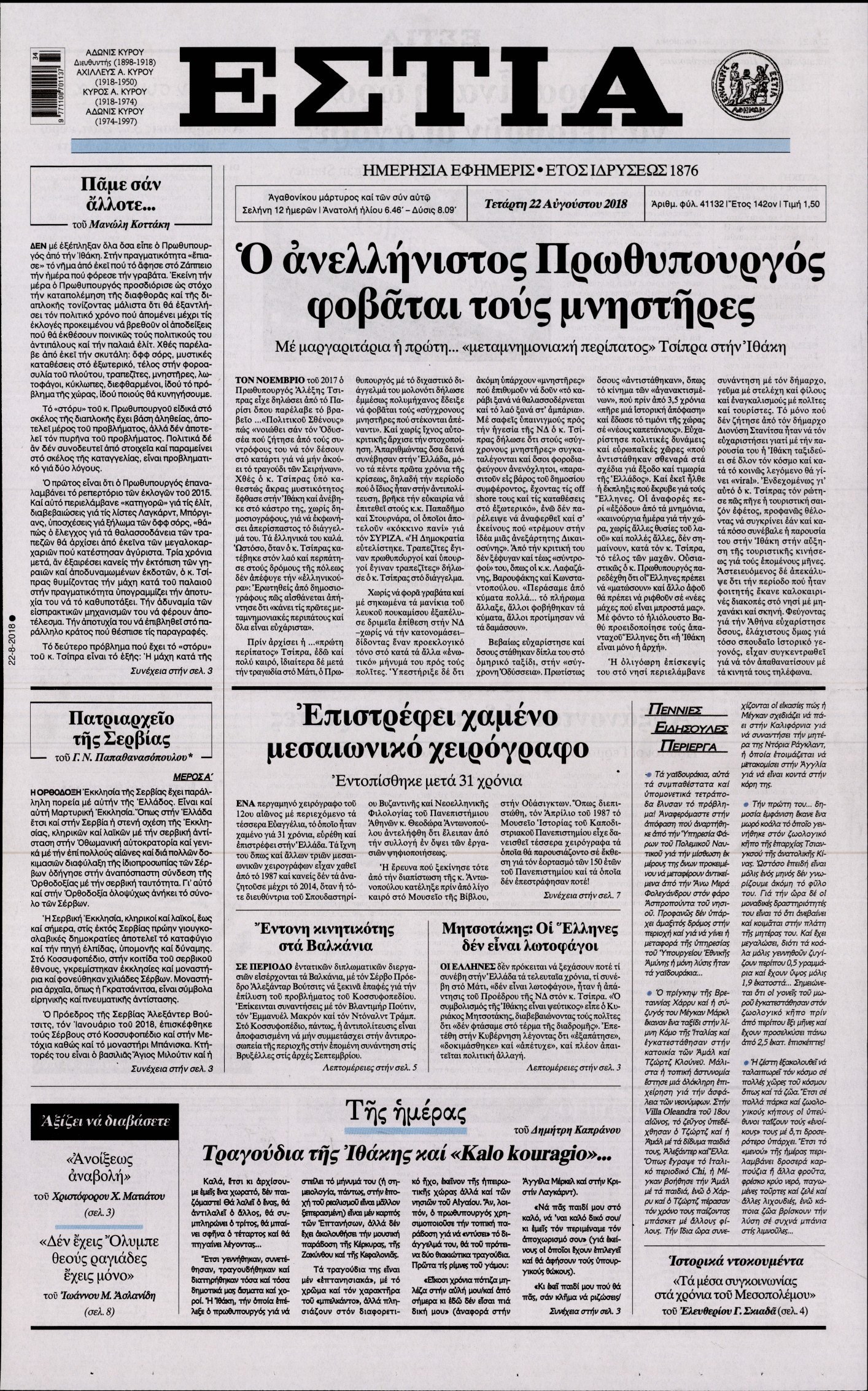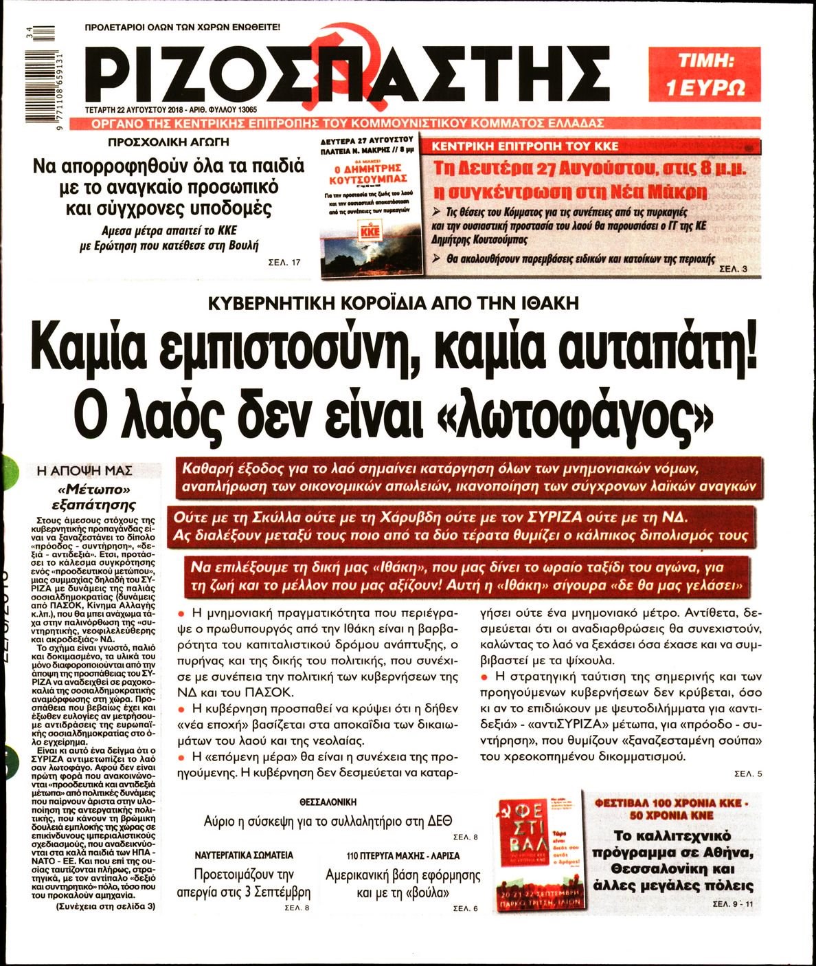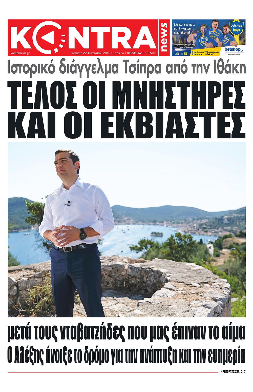 Οι πολιτικές εφημερίδες 22/8/2018 Enikos Newsroom 06:48, Τετάρτη 22 Αυγούστου 2018 Media Διαβάστε τα πρωτοσέλιδα των πολιτικών εφημερίδων. ΠΟΛΙΤΙΚΕΣ ΕΦΗΜΕΡΙΔΕΣ ΠΡΩΤΟΣΕΛΙΔΑ Μοιράσου το: σχολίασε κι εσύ (0 σχόλια) Ακολουθήστε το enikos.gr στο Google News και μάθετε πρώτοι όλες τις ειδήσεις Δείτε όλες τις τελευταίες ειδήσεις από την Ελλάδα και τον Κόσμο στο enikos.gr Ειδήσεις Ροή Ειδήσεων 6 λεπτά πριν Αγρότες από το μπλόκο Νίκαιας κλείνουν τη Δευτέρα τις σήραγγες των Τεμπών για τα φορτηγά – Τι αποφάσισαν 4 ώρες πριν Μητσοτάκης σε αγρότες: Είμαστε ανοιχτοί στον διάλογο, αλλά όχι στο παράλογο – Η διεκδίκηση αιτημάτων οφείλει να γίνεται με σεβασμό στο κοινωνικό σύνολο 3 ώρες πριν Κηφισιά: Δύο συλλήψεις για ληστεία με λεία 180.000 ευρώ – Βίντεο ντοκουμέντα από τη δράση των συλληφθέντων 2 ώρες πριν Ρωσία: Δεν προετοιμάζεται συνάντηση Αμερικανών, Ρώσων και Ουκρανών απεσταλμένων, ανακοίνωσε το Κρεμλίνο 5 ώρες πριν Η οικογενειακή διαμάχη των Μπέκαμ: Το block από τον Μπρούκλιν και η απόφαση να περάσει τα Χριστούγεννα με τους δισεκατομμυριούχους γονείς της συζύγου του 4 ώρες πριν Τα άστρα ευνοούν σκανδαλωδώς 4 ζώδια – «Εμφανίζονται ξαφνικά ευκαιρίες γιατί αποφασίζετε να αφήσετε πίσω το παρελθόν» 3 ώρες πριν Προπονήτρια γυμναστικής που έχασε 9 κιλά αποκαλύπτει: «Αυτοί είναι οι 5 παράγοντες που εμποδίζουν την απώλεια βάρους» 2 ώρες πριν Οι άνθρωποι που στρώνουν το κρεβάτι τους κάθε πρωί, διαθέτουν αυτές τις 8 κρυφές δυνάμεις 1 ημέρα πριν Enerwave: Το νέο «ρεύμα» στη λιανική ενέργειας που αλλάζει την εμπειρία του καταναλωτή 1 λεπτό πριν Ολυμπιακός και Μεντιλίμπαρ «έδωσαν τα χέρια» έως το 2027 6 λεπτά πριν Αγρότες από το μπλόκο Νίκαιας κλείνουν τη Δευτέρα τις σήραγγες των Τεμπών για τα φορτηγά – Τι αποφάσισαν 9 λεπτά πριν Άκης Σκέρτσος: Τι έγινε τελικά με την Έκθεση Πισσαρίδη; 17 λεπτά πριν Αττική: Σε ποια σημεία εγκαταστάθηκαν οι πρώτες «έξυπνες κάμερες» – Πώς θα στέλνονται τα πρόστιμα 25 λεπτά πριν Παρά Πέντε – Κωνσταντινίδου: «Χάσαμε ανθρώπους… θα χαρούν και αυτοί να μας δουν στο reunion» ENIKOS NETWORK Ο εγκέφαλός μας ξεπερνά ακόμα σε εξυπνάδα το ΑΙ – Ποιο είναι αυτό στο οποίο είμαστε καλύτεροι Φοράτε ψηλοτάκουνα παπούτσια; Ποδίατροι συμβουλεύουν πόσο ψηλά επιτρέπεται να είναι και πώς να τα επιλέξετε Η επόμενη ημέρα για τις ελληνικές τράπεζες -Τι λένε κορυφαία στελέχη του κλάδου Χριστουγεννιάτικο τραπέζι: Πόσο θα αγοράσετε φέτος τη γαλοπούλα και το μοσχάρι – Πού κυμαίνονται οι τιμές για μελομακάρονα ... Χαρτογραφώντας το «σημείο χωρίς επιστροφή»: Για πρώτη φορά αποκαλύπτεται με λεπτομέρεια το ακανθώδες όριο της ατμόσφαιρας τ... Η Google καταργεί τη λειτουργία «dark web report» – Πώς θα μπορούν οι χρήστες να διαγράφουν τα δεδομένα τους περισσότερα 09:43 , Κυριακή 21 Δεκεμβρίου 2025 Το λάθος στην ταινία Die Hard που άφησε άναυδους τους θαυμαστές του Μπρους Γουίλις Ένας φανατικός των ταινιών άφησε άναυδους τους θαυμαστές του Die Hard, επισημαίνοντας τρία βασ... 08:13 , Κυριακή 21 Δεκεμβρίου 2025 Άγιος έρωτας: Ένας καταστροφικός σεισμός χτυπά τη Στέρνα Καταιγιστικές είναι οι εξελίξεις στα δυο τελευταία, συγκλονιστικά επεισόδια του 2025 της σειρά... 08:00 , Κυριακή 21 Δεκεμβρίου 2025 Σήμερα με τη Realnews: Ό,τι και αν αγοράσεις, σκανάρεις και κερδίζεις! Σήμερα με τη Realnews: Ό,τι και αν αγοράσεις, σκανάρεις και κερδίζεις! Με το PADU app, το κορυ... 07:00 , Κυριακή 21 Δεκεμβρίου 2025 Σήμερα με τη Realnews: Instyle, μαζί Drive και Realnews Geopolitics Σήμερα με τη Realnews: Instyle, μαζί Drive και 