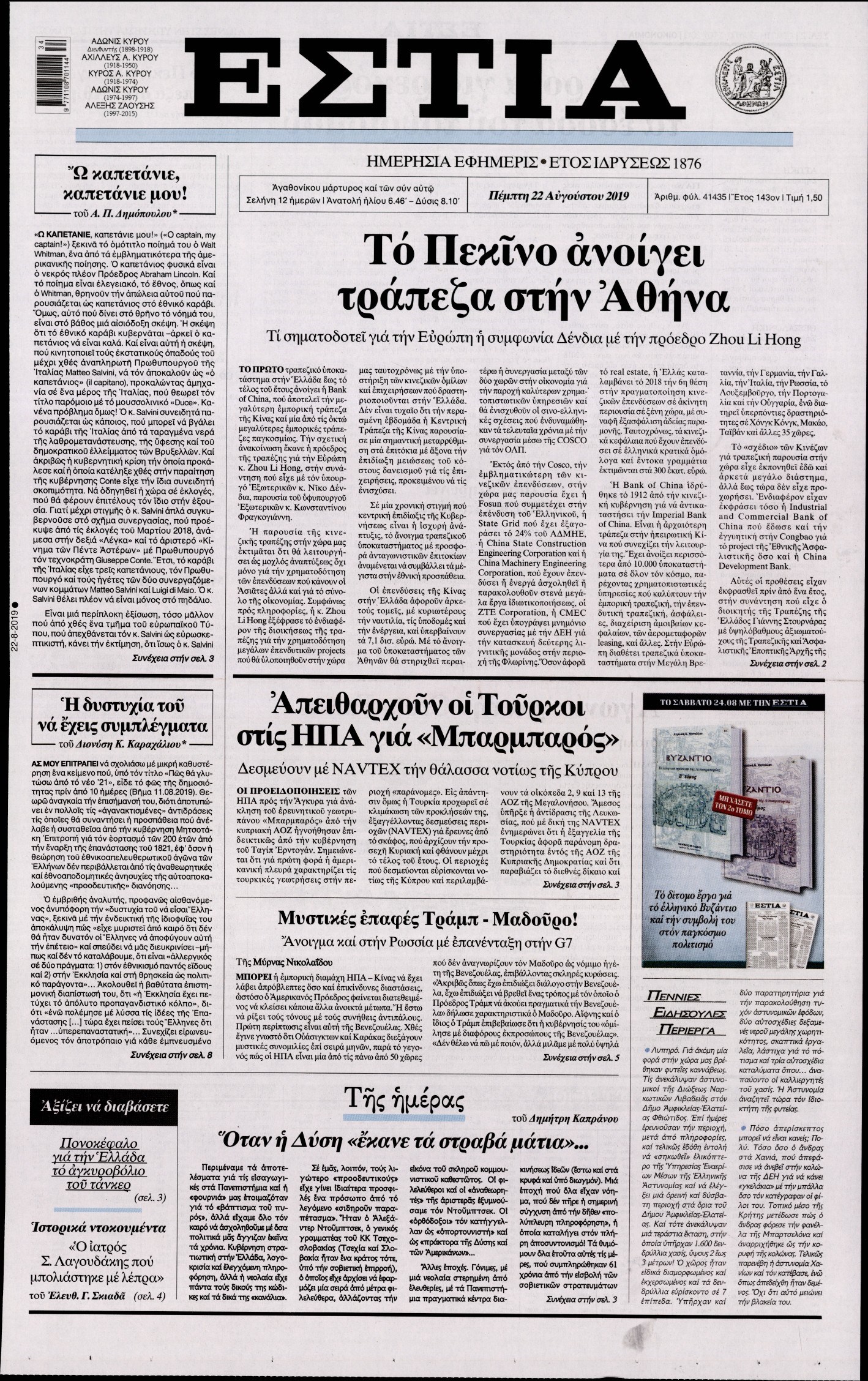 Οι πολιτικές εφημερίδες 22/8/2019 Διονύσης Νίκκας 06:10, Πέμπτη 22 Αυγούστου 2019 Media Διαβάστε τα πρωτοσέλιδα των πολιτικών εφημερίδων… ΕΦΗΜΕΡΙΔΩΝ ΠΟΛΙΤΙΚΩΝ ΠΡΩΤΟΣΕΛΙΔΑ Μοιράσου το: σχολίασε κι εσύ (0 σχόλια) Ακολουθήστε το enikos.gr στο Google News και μάθετε πρώτοι όλες τις ειδήσεις Δείτε όλες τις τελευταίες ειδήσεις από την Ελλάδα και τον Κόσμο στο enikos.gr Ειδήσεις Ροή Ειδήσεων 4 ώρες πριν Τραγωδία στη Χίο: Εισαγγελική εντολή για την σύλληψη του Μαροκινού – Ήταν ο διακινητής, σύμφωνα με καταθέσεις μεταναστών 1 ώρα πριν Axios: Καταρρέουν πριν καν αρχίσουν οι συνομιλίες ΗΠΑ-Ιράν για τα πυρηνικά 28 λεπτά πριν Χίος: «Δεν μπορώ να συνέλθω – Κακώς τα βάζουν με το Λιμενικό» λέει στο enikos.gr δύτης που επιχείρησε στο σημείο της τραγωδίας 3 ώρες πριν Αγρότες: Αποφάσισαν συλλαλητήριο με τρακτέρ στην Αθήνα – Κινητοποιήσεις την επόμενη εβδομάδα σε μεγάλες πόλεις 3 ώρες πριν Καιρός: Έρχεται ραγδαία επιδείνωση με βροχές και καταιγίδες – Πότε θα επηρεαστεί η Αττική 4 ώρες πριν Τα 4 ζώδια που προσελκύουν μεγάλη αφθονία και τύχη σ’ όλη τη διάρκεια του μήνα – «Το σύμπαν σας ευνοεί» 2 ώρες πριν Πετσέτες: Η μέθοδος διπλώματος που εξοικονομεί χώρο στο μπάνιο σας 1 ώρα πριν Καταλαβαίνετε ότι έχετε ξεπεράσει κάποιον όταν αυτές οι 9 ανεπαίσθητες συμπεριφορές αρχίζουν να σας ενοχλούν 5 ώρες πριν Νέα εποχή στα καταστήματα Allwyn με Instant Win και κέρδη στη στιγμή – Χιλιάδες τυχεροί διεκδικούν κέρδη έως 500 ευρώ εντελώς δωρεάν 1 ημέρα πριν Οπτική ψευδαίσθηση: Μόνο το 1% των ανθρώπων θα βρει το ελάφι σε 17 δευτερόλεπτα 12 λεπτά πριν Σίσσυ Χρηστίδου: Η συγκινητική ανάρτηση για τα 4 χρόνια από τον θάνατο της μητέρας της – «Σ’ αγαπώ» 19 λεπτά πριν Σεισμός 3,7 Ρίχτερ στην Φλώρινα 28 λεπτά πριν Χίος: «Δεν μπορώ να συνέλθω – Κακώς τα βάζουν με το Λιμενικό» λέει στο enikos.gr δύτης που επιχείρησε στο σημείο της τραγωδίας 35 λεπτά πριν Σφοδρή αντιπαράθεση στην Βουλή για την τραγωδία στην Χίο ENIKOS NETWORK Το λάθος που κάνουμε με το μαξιλάρι στον ύπνο και αυξάνει τον κίνδυνο για γλαύκωμα και τύφλωση ΕΟΠΕ: Ολιστική στρατηγική απέναντι στον καρκίνο με επίκεντρο τον άνθρωπο Χρηματιστήριο: Κέρδη 1,56% – Σε νέα υψηλά 16 ετών η αγορά ΑΑΔΕ: Νέα ψηφιακή εφαρμογή για την απαλλαγή από τα τέλη κυκλοφορίας για Άτομα με Αναπηρία Ευπάθεια στο moltbook ai αποκαλύπτει email, tokens σύνδεσης και api keys Αυτός είναι ο ρόλος της μικρής τρύπας στους νυχοκόπτες – «Είμαι ο μόνος που δεν το ήξερε;»» περισσότερα 20:19 , Τετάρτη 04 Φεβρουαρίου 2026 Eurovision 2026: Θα το… φέρει το «Ferto» του Akyla; Δείτε ποια θέση κατέχει στα ευρωπαϊκά προγνωστικά Πριν καλά-καλά ανακοινωθούν όλα τα κομμάτια του διαγωνισμού της φετινής Eurovision και πριν ακ... 19:50 , Τετάρτη 04 Φεβρουαρίου 2026 Να μ’ αγαπάς: Ο Άγγελος τινάζει στον αέρα τη συμφωνία πώλησης των επιχειρήσεων Η Άννα φεύγει οριστικά από το σπίτι των Καλλιγάδων στο νέο επεισόδιο της σειράς “Να μ΄αγ... 18:22 , Τετάρτη 04 Φεβρουαρίου 2026 Ο Όμιλος Antenna υπέγραψε Μνημόνιο Συνεργασίας με το Junior Achievement Greece και επενδύει στη νέα γενιά Ο Όμιλος Antenna υπέγραψε Μνημόνιο Συνεργασίας με τον μη κερδοσκοπικό οργανισμό Junior Achieve... 16:20 , Τετάρτη 04 Φεβρουαρίου 2026 Μπαμπά, σ’αγαπώ: Έτσι ξεκινά η περιπέτεια της πατρότητας για τα «3 μπαμπαδάκια» Η νέα οικογενειακή σειρά του Alpha «Μπαμπά, σ’ αγαπώ» κάνει πρεμιέρα αύριο στις 21:00 με διπλό... ΤΕΛΕΥΤΑΙΕΣ ΕΙΔΗΣΕΙΣ 12 λεπτά πριν Σίσσυ Χρηστίδου: Η συγκινητική ανάρτηση για τα 4... 19 λεπτά πριν Σεισμός 3,7 Ρίχτερ στην Φλώρινα 21 λεπτά πριν Αριθμολ