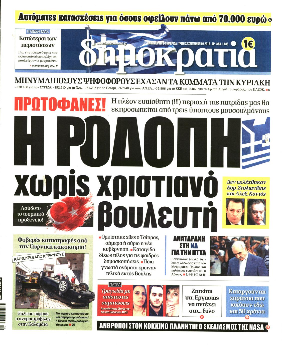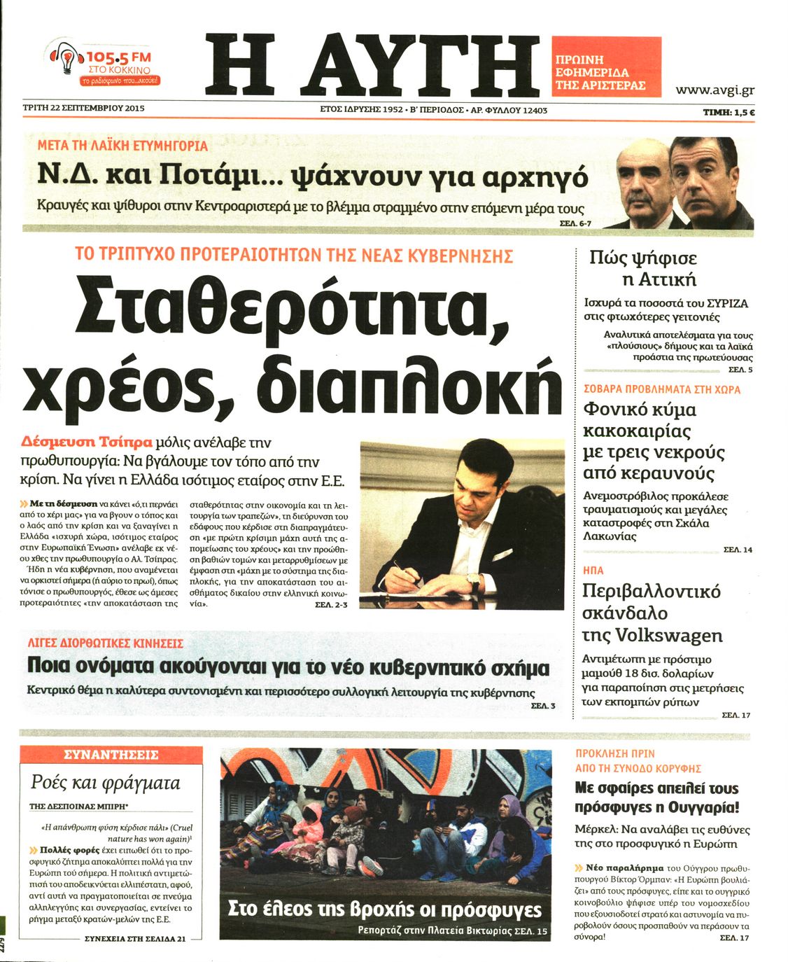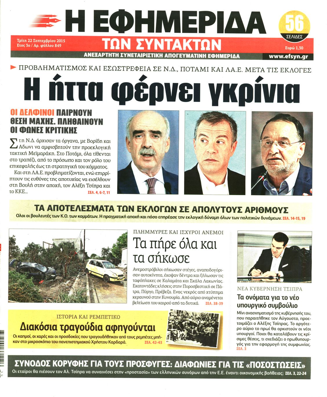 Οι πολιτικές εφημερίδες 22/9/2015 Enikos Newsroom 06:32, Τρίτη 22 Σεπτεμβρίου 2015 Media Διαβάστε τα σημερινά πρωτοσέλιδα των πολιτικών εφημερίδων: ΠΟΛΙΤΙΚΕΣ ΕΦΗΜΕΡΙΔΕΣ ΠΡΩΤΟΣΕΛΙΔΑ Μοιράσου το: σχολίασε κι εσύ (0 σχόλια) Ακολουθήστε το enikos.gr στο Google News και μάθετε πρώτοι όλες τις ειδήσεις Δείτε όλες τις τελευταίες ειδήσεις από την Ελλάδα και τον Κόσμο στο enikos.gr Ειδήσεις Ροή Ειδήσεων 2 ώρες πριν Μεσόγειος: Η διαδρομή του ρωσικού τάνκερ «Qendil» και η στοχευμένη επίθεση της Ουκρανίας με drone – Ο Πούτιν προειδοποίησε για αντίποινα 2 ώρες πριν Αττική: Θρίλερ με νεκρό βρέφος 5 μηνών – Κοιμόταν στο ίδιο κρεβάτι με τους γονείς του 3 ώρες πριν Από το Ορμένιο ως τα Μάλγαρα κι από τη Σιάτιστα μέχρι τη Νίκαια: Μπλόκα σε όλη την Ελλάδα – Το Σάββατο ανοίγουν τα διόδια οι αγρότες 3 ώρες πριν «Έλληνας Εσκομπάρ»: Φωτογραφίες με τους 4 τόνους κοκαΐνης που κατασχέθηκαν από το σκάφος «Ουρανία» 4 ώρες πριν Πούτιν: Σαρκαστικά μηνύματα, παράπονα και απρόοπτα στη συνέντευξη Τύπου – Η πρόταση γάμου on air και οι ερωτήσεις για τα αγγούρια και τους… εξωγήινους 4 ώρες πριν Τα 5 ζώδια που ευνοούνται στην ερωτική ζωή τους την επόμενη εβδομάδα – «Η ενέργεια του Αιγόκερου φέρνει αγάπη και σταθερότητα» 8 ώρες πριν Ειδικός μοιράζεται 6 κόλπα για να διατηρείστε σε φόρμα με πάνω από 40 ώρες εργασίας την εβδομάδα: «Προπονηθείτε πριν από τη δουλειά, όχι μετά» 5 ώρες πριν Αυτό το έξυπνο μαθηματικό κόλπο θα μπορούσε να αλλάξει τον τρόπο με τον οποίο οι επιστήμονες μελετούν τους σεισμούς 3 ώρες πριν Κουίζ για την παλιά Αθήνα: Αναγνωρίζετε την περιοχή; Έχετε περάσει 100% από εκεί 35 δευτερόλεπτα πριν Πούτιν: «Ναι, είμαι ερωτευμένος» – Βίντεο από τη σπάνια προσωπική παραδοχή του 5 λεπτά πριν Γαλλία – Shein: Υποχρεωτικός έλεγχος ηλικίας των πελατών μετά τον σάλο με τις ερωτικές κούκλες 11 λεπτά πριν Εμπλοκή και αερομαχίες με οπλισμένα τουρκικά F-16 στο Αιγαίο 19 λεπτά πριν GNTM: Απόψε ο μεγάλος τελικός για τους 4 φιναλίστ 25 λεπτά πριν Ολυμπιακός: Χωρίς Ποντένσε η αποστολή των Ερυθρόλευκων ενόψει Κηφισιάς ENIKOS NETWORK «Η σούπερ» γρίπη εξαπλώνεται στην Ευρώπη-Στοιχεία από το ECDC για την αποτελεσματικότητα του εμβολίου ΕΛΣΤΑΤ: Αύξηση κατά 1,7% των επαγγελματιών υγείας το 2024 Προκήρυξη ΑΣΕΠ για 397 μόνιμες προσλήψεις στο Δημόσιο: Βγήκαν τα προσωρινά αποτελέσματα – Πότε αρχίζει η υποβολή ενστάσεων Η απάντηση της κυβέρνησης στα αιτήματα των αγροτών: 16 έχουν ικανοποιηθεί, 4 βρίσκονται υπό επεξεργασία και 7 δεν είναι εφι... Χαρτογραφώντας το «σημείο χωρίς επιστροφή»: Για πρώτη φορά αποκαλύπτεται με λεπτομέρεια το ακανθώδες όριο της ατμόσφαιρας τ... Η Google καταργεί τη λειτουργία «dark web report» – Πώς θα μπορούν οι χρήστες να διαγράφουν τα δεδομένα τους περισσότερα 19:31 , Παρασκευή 19 Δεκεμβρίου 2025 GNTM: Απόψε ο μεγάλος τελικός για τους 4 φιναλίστ Έπειτα από μήνες γεμάτους μόδα, δημιουργία και έντονες αναμετρήσεις, το GNTM 2025 κορυφώνεται,... 18:11 , Παρασκευή 19 Δεκεμβρίου 2025 Το σόι σου: Ο Άρης έρχεται στην Ελλάδα για τις γιορτές των Χριστουγέννων – Τι θα δούμε στο αποψινό εορταστικό επεισόδιο Ένα απολαυστικό, εορταστικό επεισόδιο της σειράς “Το σόι σου”, γεμάτο ευτράπελα αλ... 15:15 , Παρασκευή 19 Δεκεμβρίου 2025 Την Κυριακή με τη Realnews: Ό,τι και αν αγοράσεις, σκανάρεις και κερδίζεις! Την Κυριακή με τη Realnews: Ό,τι και αν αγοράσεις, σκανάρεις και κερδίζεις! Με το PADU app, το... 08:00 , Παρασκευή 19 Δεκεμβρίου 2025 Την Κυριακή με τη Realnews: Δωροεπιταγή 10€ Δωροεπιταγή αξίας 10€ για αγο