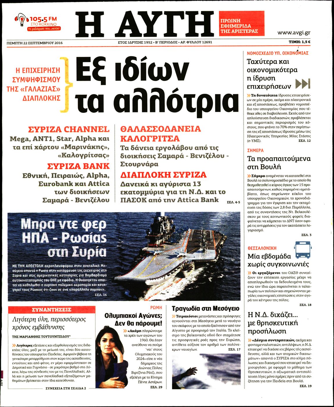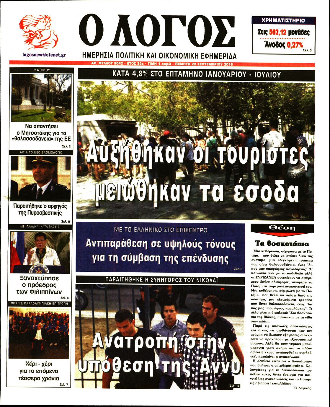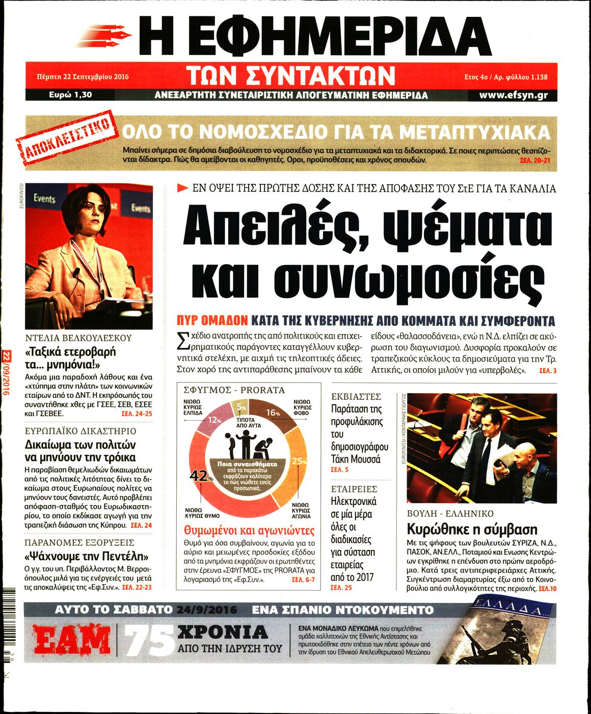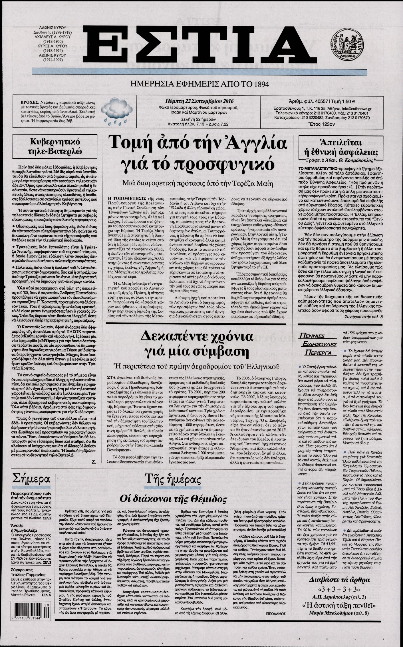 Oι πολιτικές εφημερίδες 22/9/2016 Enikos Newsroom 05:09, Πέμπτη 22 Σεπτεμβρίου 2016 Media Διαβάστε τα σημερινά πρωτοσέλιδα των πολιτικών εφημερίδων: ΠΟΛΙΤΙΚΕΣ ΕΦΗΜΕΡΙΔΕΣ ΠΡΩΤΟΣΕΛΙΔΑ Μοιράσου το: σχολίασε κι εσύ (0 σχόλια) Ακολουθήστε το enikos.gr στο Google News και μάθετε πρώτοι όλες τις ειδήσεις Δείτε όλες τις τελευταίες ειδήσεις από την Ελλάδα και τον Κόσμο στο enikos.gr Ειδήσεις Ροή Ειδήσεων 2 ώρες πριν Δημοσκόπηση Metron Analysis: Στις 10 μονάδες η διαφορά ΝΔ-ΠΑΣΟΚ, στην 3η θέση η Πλεύση Ελευθερίας – 8 στους 10 στηρίζουν τον αγώνα των αγροτών 6 ώρες πριν Αγρότες: «Όχι στον διάλογο, μας εμπαίζει η κυβέρνηση» – Αποφάσισαν κλιμάκωση των κινητοποιήσεων, τι θα γίνει τα Χριστούγεννα 1 ώρα πριν Νίκος Παππάς στον ΑΝΤ1: «Δεν κρύβομαι – Μετά το συμβάν ακολούθησα κανονικά το πρόγραμμά μου» – ΒΙΝΤΕΟ 3 ώρες πριν Αθήνα: Εξαρθρώθηκε εγκληματική οργάνωση που διακινούσε ναρκωτικά σε μορφή σοκολάτας – Δύο τράπερ ανάμεσα στους 4 συλληφθέντες – ΒΙΝΤΕΟ 1 ώρα πριν Διαμαντής Καραναστάσης: Οδηγούσε υπό την επήρεια αλκοόλ – Του αφαιρέθηκε το δίπλωμα και του επιβλήθηκε πρόστιμο 350 ευρώ 2 ώρες πριν Manifesting: Πώς να συναντήσετε τον σύντροφο της ζωής σας, ανάλογα με τον μήνα γέννησής σας 4 ώρες πριν Γάμος: 11 ψυχρές αλλά ευγενικές φράσεις, που λέει ένας άνδρας όταν σκέφτεται τον χωρισμό 3 ώρες πριν Σφουγγάρισμα: Η συνήθεια που θα σας βοηθήσει να διατηρήσετε το σπίτι σας καθαρό και τακτοποιημένο 2 ημέρες πριν 20 χρόνια τα Χριστούγεννα ξεκινούν στα Public με μεγάλη ποικιλία σε δώρα! 7 λεπτά πριν Αυξάνουν την πίεση προς την κυβέρνηση οι αγρότες: Κλείνουν παρακαμπτήριους και ανοίγουν διόδια – Τι θα γίνει τις γιορτές 12 λεπτά πριν Ελισάβετ Κωνσταντινίδου για τον Γεράσιμο Μιχελή και την Πόπη Χριστοδούλου: «Ξέρω ότι έχουν πάει απλώς κάπου αλλού, ότι δεν είναι ο θάνατος έτσι όπως τον έχουμε στο μυαλό μας» 16 λεπτά πριν Κρήτη: Νέες αποκαλύψεις για τον 54χρονο που κατηγορείται ότι εξαπάτησε τους γονείς του 33χρονου – Ζητούσε τρίχες αγνοουμένων 23 λεπτά πριν Τσιάρας: Δεν θα κινδυνέψουν οι πληρωμές των αγροτών – Χρειαζόμαστε μια νέα πολιτική, ένα restart 30 λεπτά πριν Δέσποινα Βανδή: Το βίντεο που δημοσίευσε με τον Γιώργο Νικολαΐδη – «Έχουμε καταστραφεί από τα μελομακάρονά σου» ENIKOS NETWORK Σε περίοδο αυξημένης δραστηριότητας η γρίπη στην Ελλάδα-Μέτρα προστασίας από τον ΕΟΔΥ Σκέφτεστε συνέχεια συζητήσεις που έχετε κάνει; Τι σημαίνει αυτό, σύμφωνα με ειδικό Λαγκάρντ: Αισιόδοξη για την ανάπτυξη της Ευρωζώνης, αβέβαιη για τον πληθωρισμό ΑΣΕΠ 2ΓΒ/2025: Σήμερα αρχίζει η υποβολή ενστάσεων – Πότε θα βγουν τα οριστικά αποτελέσματα Χαρτογραφώντας το «σημείο χωρίς επιστροφή»: Για πρώτη φορά αποκαλύπτεται με λεπτομέρεια το ακανθώδες όριο της ατμόσφαιρας τ... Η Google καταργεί τη λειτουργία «dark web report» – Πώς θα μπορούν οι χρήστες να διαγράφουν τα δεδομένα τους περισσότερα 17:45 , Πέμπτη 18 Δεκεμβρίου 2025 ROUK ZOUK: Εορταστικό επεισόδιο με καλεσμένους τους πρωταγωνιστές του «Γιατί ρε πατέρα» Το Σάββατο 20 Δεκεμβρίου στις 21:00, η Ζέτα Μακρυπούλια υποδέχεται εκλεκτούς ηθοποιούς που όλο... 17:20 , Πέμπτη 18 Δεκεμβρίου 2025 Άγιος έρωτας: Η Χριστίνα εξομολογείται στον πατέρα Νικόλαο, απόψε στις 21:00 στον Alpha Η Νότα αποφασίζει να εκδικηθεί τον Πέτρο και τον Στέφανο, για χάρη του Λούη, όμως τα πράγματα ... 16:50 , Πέμπτη 18 Δεκεμβρίου 2025 Να μ’ αγαπάς: Ζωή και Φωτεινή συμφιλιώνονται ως μάνα με κόρη, απόψε στις 20:00 Η ταυτότητα του Άγγελου αποκαλύπτεται στο νέο επεισόδιο της σειράς “Να