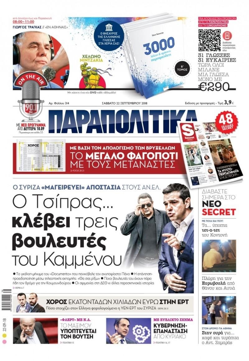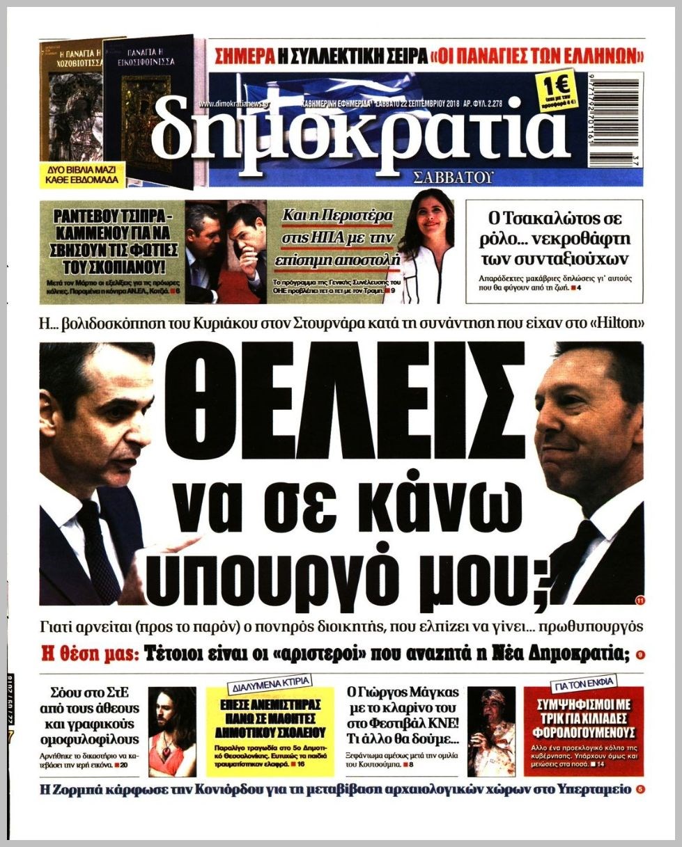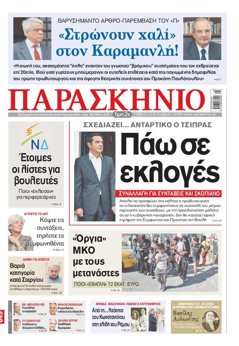 Οι πολιτικές εφημερίδες 22/9/2018 Enikos Newsroom 06:50, Σάββατο 22 Σεπτεμβρίου 2018 Media Διαβάστε τα πρωτοσέλιδα ΠΟΛΙΤΙΚΕΣ ΕΦΗΜΕΡΙΔΕΣ Μοιράσου το: σχολίασε κι εσύ (0 σχόλια) Ακολουθήστε το enikos.gr στο Google News και μάθετε πρώτοι όλες τις ειδήσεις Δείτε όλες τις τελευταίες ειδήσεις από την Ελλάδα και τον Κόσμο στο enikos.gr Ειδήσεις Ροή Ειδήσεων 2 ώρες πριν Κύκλωμα διακίνησης ναρκωτικών σε σχολεία: Βίντεο ντοκουμέντο από τα βασανιστήρια στους ανήλικους – Συζητούσαν για το πώς θα κάνουν «ξέπλυμα χρήματος» 41 λεπτά πριν Κλιμακώνουν τις κινητοποιήσεις τους οι αγρότες: Κλείνουν τη Δευτέρα τις σήραγγες των Τεμπών για τα φορτηγά – Ανοίγουν την Τρίτη τους δρόμους για τους εκδρομείς 2 ώρες πριν Αιματηρό επεισόδιο στον Άγιο Παντελεήμονα – Δύο τραυματίες, αναζητείται ο δράστης 50 λεπτά πριν ΗΠΑ: Αυξάνουν την πίεση στην Βενεζουέλα – Το νέο ρεσάλτο σε τάνκερ και ο στόχος του Τραμπ 1 ώρα πριν Κασσελάκης για παραίτηση Μάλαμα: «Η πορεία μας δεν θα καθοριστεί από μεμονωμένα πρόσωπα, μηχανισμούς και προσωπικές ατζέντες» 2 ώρες πριν Ύπνος: Τι είναι ο «κανόνας 3-3-3» που χρησιμοποιεί ένας γιατρός για να ξεχωρίσει την κόπωση από την αϋπνία 3 ώρες πριν Αριθμολογία: Οι άνθρωποι που έχουν γεννηθεί αυτές τις 4 ημερομηνίες, είναι οι πιο πιστοί και αφοσιωμένοι σύντροφοι 37 λεπτά πριν Αρχαιολογικό θρίλερ στην καρδιά της Ευρώπης: Παράξενο θραύσμα με ανάγλυφα και σφηνοειδή γραφή ανακαλύφθηκε σε μέρος που δεν περίμενε κανείς 2 ημέρες πριν Enerwave: Το νέο «ρεύμα» στη λιανική ενέργειας που αλλάζει την εμπειρία του καταναλωτή 17 λεπτά πριν Super League: Καλά… ΑΕΚούγεννα με «κιτρινόμαυρη» κορυφή, σε απόσταση αναπνοής ο Ολυμπιακός, στο -2 ο ΠΑΟΚ – Τα αποτελέσματα και η βαθμολογία 33 λεπτά πριν ΑΕΚ – ΟΦΗ 2-1: Γιορτές στην κορυφή με… ανατροπή 37 λεπτά πριν Αρχαιολογικό θρίλερ στην καρδιά της Ευρώπης: Παράξενο θραύσμα με ανάγλυφα και σφηνοειδή γραφή ανακαλύφθηκε σε μέρος που δεν περίμενε κανείς 41 λεπτά πριν Κλιμακώνουν τις κινητοποιήσεις τους οι αγρότες: Κλείνουν τη Δευτέρα τις σήραγγες των Τεμπών για τα φορτηγά – Ανοίγουν την Τρίτη τους δρόμους για τους εκδρομείς 42 λεπτά πριν Γουίτκοφ: «Εποικοδομητικές και παραγωγικές» οι συνομιλίες στο Μαϊάμι ENIKOS NETWORK Οι γυναίκες έχουν βρει μια νέα απόλαυση στην κρεβατοκάμαρα που οι περισσότεροι άνδρες αγνοούν Christmas glow: 5 χρυσές συμβουλές για επιδερμίδα που λάμπει από ομορφιά τα Χριστούγεννα Νέο έτος ρεκόρ για τον ελληνικό τουρισμό το 2025: «Είμαστε μέσα στους 10 πλέον επισκέψιμους προορισμούς παγκοσμίως» λέει η ... Τιμές καυσίμων: Πόσο θα πληρώσουν οι εκδρομείς των Χριστουγέννων – Το κόστος μετακινήσεων σε δημοφιλείς προορισμούς Χαρτογραφώντας το «σημείο χωρίς επιστροφή»: Για πρώτη φορά αποκαλύπτεται με λεπτομέρεια το ακανθώδες όριο της ατμόσφαιρας τ... Η Google καταργεί τη λειτουργία «dark web report» – Πώς θα μπορούν οι χρήστες να διαγράφουν τα δεδομένα τους περισσότερα 21:30 , Κυριακή 21 Δεκεμβρίου 2025 Ο Δικαστής: Στα χέρια της Αστυνομίας βίντεο, που ανατρέπει όλα τα δεδομένα – Στενεύει ο κλοιός γύρω από τον Δικαστή Καταιγιστικές εξελίξεις στο τελευταίο επεισόδιο της χρονιάς της σειράς “Ο Δικαστής”... 17:18 , Κυριακή 21 Δεκεμβρίου 2025 «Η Μεγάλη Χίμαιρα»: Μάγεψε το κοινό κατά την avant-première της προβολής της Την Πρωτοχρονιά (Πέμπτη 1η Ιανουαρίου 2026) στο ERTFLIX θα γίνει η πρεμιέρα της πολυαναμενόμεν... 15:08 , Κυριακή 21 Δεκεμβρίου 2025 Μια νύχτα μόνο: Η Αρετή και ο Οδυσσέας έρχονται και πάλι κοντά Το νέο 