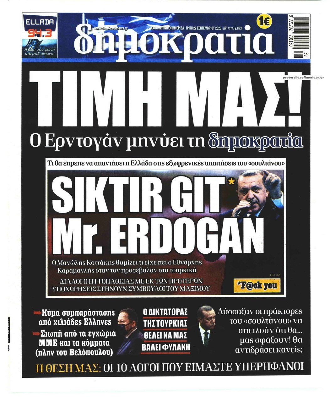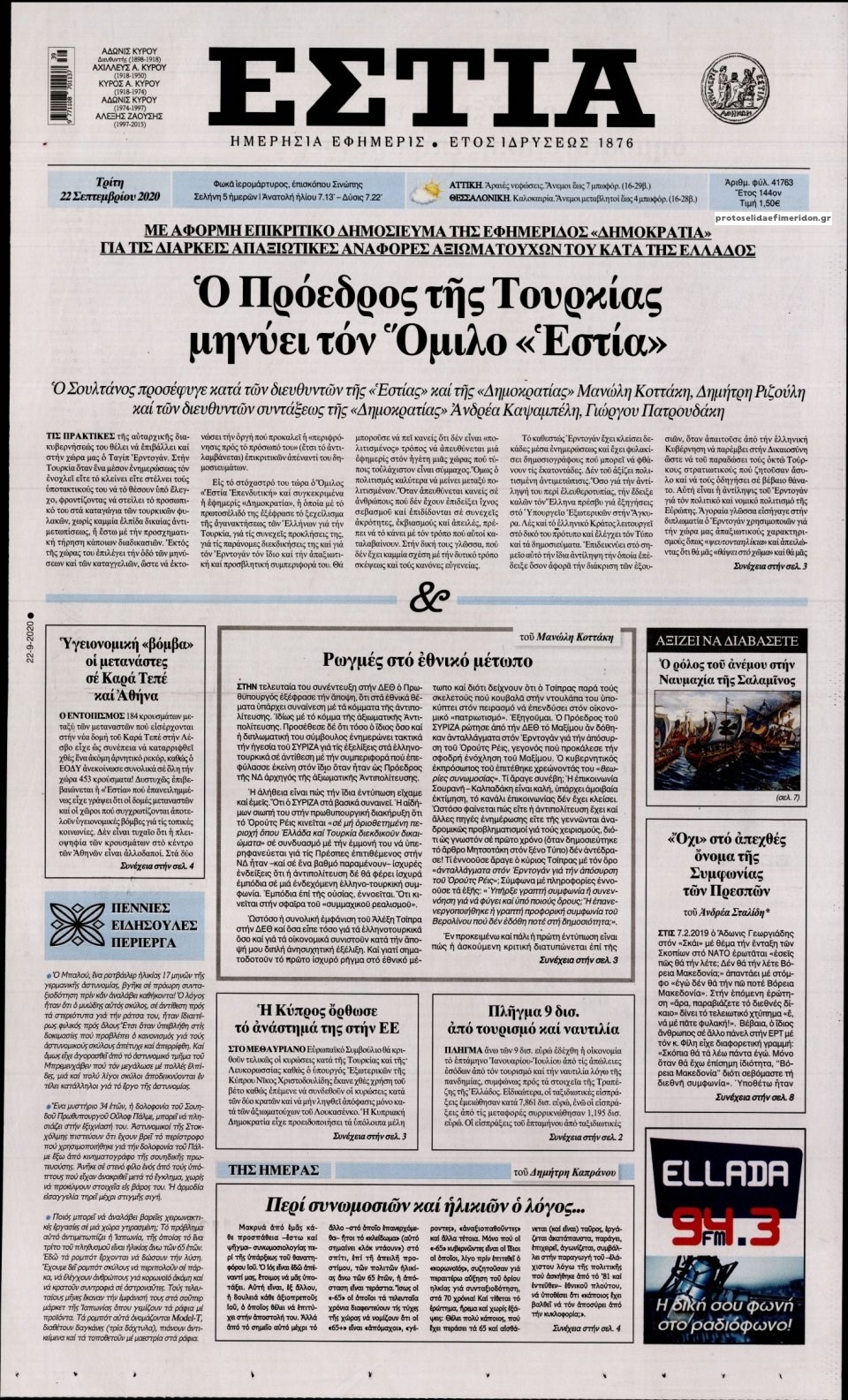 Οι πολιτικές εφημερίδες 22/9/2020 Σήφης Γαρυφαλάκης 06:30, Τρίτη 22 Σεπτεμβρίου 2020 Media Διαβάστε τα πρωτοσέλιδα των πολιτικών εφημερίδων… ΕΦΗΜΕΡΙΔΕΣ ΠΟΛΙΤΙΚΕΣ ΕΦΗΜΕΡΙΔΕΣ ΠΡΩΤΟΣΕΛΙΔΑ ΠΡΩΤΟΣΕΛΙΔΑ ΕΦΗΜΕΡΙΔΩΝ Μοιράσου το: σχολίασε κι εσύ (0 σχόλια) Ακολουθήστε το enikos.gr στο Google News και μάθετε πρώτοι όλες τις ειδήσεις Δείτε όλες τις τελευταίες ειδήσεις από την Ελλάδα και τον Κόσμο στο enikos.gr Ειδήσεις Ροή Ειδήσεων 2 ώρες πριν Χριστούγεννα στα μπλόκα: Επιμένουν στις κινητοποιήσεις τους οι αγρότες – Ανοίγουν τα διόδια το Σαββατοκύριακο 3 ώρες πριν Ουκρανία: Η άνευ προηγουμένου επίθεση σε ρωσικό τάνκερ στη Μεσόγειο και το μήνυμα προς στον Πούτιν – Το «μακρύ χέρι» του Κιέβου 2 ώρες πριν Πούτιν: Τα μηνύματα σε Ευρώπη και ΝΑΤΟ από το μαραθώνιο «σόου» του – Η απαίτηση για «σεβασμό» και η ειρήνη «με τους όρους» της Μόσχας 3 ώρες πριν Τραμπ: Δεν αποκλείει την πιθανότητα ενός πολέμου στη Βενεζουέλα – «Ο Μαδούρο ξέρει καλύτερα από τον καθένα τι ακριβώς θέλω» 3 ώρες πριν Συνεχίζει να προκαλεί ο Μίτσκοσκι: «Για μένα το όνομα Μακεδονία είναι ιερό» 2 ώρες πριν Ανακαλύφθηκαν αρχαία χρυσά νομίσματα 2.200 ετών που απεικονίζουν τον θεό Απόλλωνα – Η άγνωστη σύνδεση με τον Φίλιππο Β΄ της Μακεδονίας 3 ώρες πριν Ύπνος: Μια κρυφή κατάσταση του εγκεφάλου πριν από τον ύπνο μπορεί να είναι το “κλειδί” για υψηλή ευφυΐα και δημιουργικότητα 4 ώρες πριν Αριθμολογία: Οι άνθρωποι που έχουν γεννηθεί αυτές τις 4 ημερομηνίες, συχνά παρεξηγούνται – «Η καλοσύνη τους κρύβει τεράστια δύναμη» 5 ώρες πριν Ξεχάστε το καθάρισμα το Σαββατοκύριακο: Ο «κανόνας των 20 λεπτών» που θα σας λύσει τα χέρια 19 λεπτά πριν Φαίη Σκορδά: «Παλιότερα τα κομπλιμέντα τα προσπερνούσα, τώρα τα έχω ανάγκη» 34 λεπτά πριν Βασίλης Σπανούλης: Δεν εμφανίστηκε ούτε ένας δημοσιογράφος στην συνέντευξη Τύπου – «Καλησπέρα στον… κανέναν», δείτε βίντεο 46 λεπτά πριν Πόλεμος στην Ουκρανία: Εφτά νεκροί από ρωσική πυραυλική επίθεση στο λιμάνι της Οδησσού 49 λεπτά πριν ΗΠΑ: Η κυβέρνηση του Ντόναλντ Τραμπ άρχισε να δημοσιοποιεί τα αρχεία Έπσταϊν 1 ώρα πριν Σάμος: Άνοιξε το μπλόκο των αγροτών στον κόμβο Κοκκαρίου – Σε νέα συνεδρίαση θα καθορίσουν την στάση τους ENIKOS NETWORK Το ΕΚΑΒ τιμήθηκε από την Ακαδημία Αθηνών για τα 40 χρόνια προσφοράς του Έχετε πραγματικά μεγάλη καρδιά; 10 χαρακτηριστικά όσων έχουν καλοσύνη Αναστολή μέτρων αναγκαστικής εκτέλεσης για κτηνοτρόφους που πλήττονται από την ευλογιά των αιγοπροβάτων Πλήρης επάρκεια προϊόντων στις λαϊκές της Αττικής, παρά τις αγροτικές κινητοποιήσεις – Τι απαντούν οι πωλητές Χαρτογραφώντας το «σημείο χωρίς επιστροφή»: Για πρώτη φορά αποκαλύπτεται με λεπτομέρεια το ακανθώδες όριο της ατμόσφαιρας τ... Η Google καταργεί τη λειτουργία «dark web report» – Πώς θα μπορούν οι χρήστες να διαγράφουν τα δεδομένα τους περισσότερα 22:42 , Παρασκευή 19 Δεκεμβρίου 2025 Γιώργος Γιαννόπουλος για “Το σόι σου”: “Είναι ευτυχία και ευλογία αυτή η σειρά” «Είναι ευτυχία και ευλογία η συγκυρία αυτής της σειράς», θα πει ο Γιώργος Γιαννόπουλος -ο αγαπ... 20:37 , Παρασκευή 19 Δεκεμβρίου 2025 Don’t Forget The Lyrics: Η Έλλη Κοκκίνου υποδέχεται 4 παίκτες που θα κάνουν τα πάντα για να μη χάσουν ούτε… μισή λέξη από τους στίχους Το «Don’t Forget The Lyrics» επιστρέφει απόψε, Παρασκευή 19 Δεκεμβρίου, στις 21:00 με νέο επει... 19:31 , Παρασκευή 19 Δεκεμβρίου 2025 GNTM: Απόψε ο μεγάλος τελικός για τους 4 φιναλίστ Έπειτα από μήνες γεμάτους μόδα, δημιουργία και έντονες αναμετρή