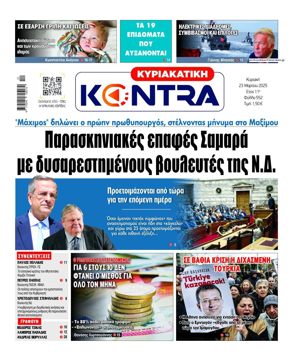 Οι πολιτικές εφημερίδες 23/3/2025 Γρηγόρης Αναγνώστου 05:45, Κυριακή 23 Μαρτίου 2025 Media Διαβάστε τα πρωτοσέλιδα από τις πολιτικές εφημερίδες, σήμερα 23/3/2025. ΕΦΗΜΕΡΙΔΕΣ ΠΟΛΙΤΙΚΕΣ ΕΦΗΜΕΡΙΔΕΣ ΠΡΩΤΟΣΕΛΙΔΑ Μοιράσου το: Κάρμεν Ρουγγέρη: Μετά την απώλεια του συζύγου μου, δεν φοβάμαι πια τον θάνατο Θεσσαλονίκη: Καβγάς μεταξύ γειτόνων – Τρεις γυναίκες νοσηλεύονται φρουρούμενες στο νοσοκομείο Εάν μια γυναίκα χρησιμοποιεί αυτές τις 7 φράσεις, πιθανότατα είναι βαθιά δυσαρεστημένη με τη ζωή της σχολίασε κι εσύ (0 σχόλια) Ακολουθήστε το enikos.gr στο Google News και μάθετε πρώτοι όλες τις ειδήσεις Δείτε όλες τις τελευταίες ειδήσεις από την Ελλάδα και τον Κόσμο στο enikos.gr Ειδήσεις Ροή Ειδήσεων 2 ώρες πριν Πόλεμος στην Ουκρανία: Γιατί η Ρωσία αναμένεται να απορρίψει το νέο ειρηνευτικό σχέδιο – Τα 2 σημεία που δεν κάνει πίσω ο Πούτιν 3 ώρες πριν Τροχαίο στην Ημαθία: Θρήνος για τον θάνατο του 22χρονου – Συγκλονίζουν οι εικόνες από το σημείο της τραγωδίας 5 ώρες πριν Έκρηξη σε υποκατάστημα τράπεζας στη Θεσσαλονίκη: Ερευνάται ο ακριβής στόχος της επίθεσης και αναζητείται βιντεοληπτικό υλικό – Τι αναφέρουν οι κάτοικοι 6 ώρες πριν Μητροπολίτης Κοζάνης: «Μαχαίρωσες έναν άνθρωπο και δεν τρέχει τίποτα, σκότωσες ένα σκυλί, 30.000 εκείνη την ώρα και μετά δικαστήριο – Εκεί κατάντησε η Ελλάδα» 4 ώρες πριν Φρικτός θάνατος για 2χρονη: Έπεσε σε ποτάμι και την κατασπάραξαν πιράνχας 15 λεπτά πριν Τα 5 ζώδια που θα δουν επιτέλους βελτίωση στα ερωτικά τους τον Ιανουάριο του 2026 – «Θα ζήσετε μία ουσιαστική και σταθερή αγάπη» 5 ώρες πριν Νιώθετε περισσότερη μοναξιά τα Χριστούγεννα; Η ψυχολογία αποκαλύπτει τα 7 χαρακτηριστικά που μάλλον διαθέτετε 4 ώρες πριν Γυναίκα που διαγνώστηκε με καρκίνο του παχέος εντέρου προειδοποιεί: «Αυτή είναι η πιο ύπουλη πτυχή της νόσου» 1 ώρα πριν Το μυστικό του Αϊνστάιν σε ένα μικροτσίπ: Ανακαλύφθηκε η κρυφή γεωμετρία που «δαμάζει» τα ηλεκτρόνια όπως η βαρύτητα 7 λεπτά πριν Οργή Πλακιά για την ευχετήρια κάρτα της Hellenic Train – «Αρρωστημένη συμπεριφορά» 15 λεπτά πριν Τα 5 ζώδια που θα δουν επιτέλους βελτίωση στα ερωτικά τους τον Ιανουάριο του 2026 – «Θα ζήσετε μία ουσιαστική και σταθερή αγάπη» 17 λεπτά πριν Ελεύθερος υπό όρους ο πρόεδρος της Φενερμπαχτσέ – «Δεν είμαι τέλειος αλλά δεν έχω διαπράξει έγκλημα» 25 λεπτά πριν Επιδόματα και παροχές από τον ΟΠΕΚΑ: Πότε θα γίνει η νέα πληρωμή 33 λεπτά πριν Τουρκία: Τι υποστηρίζει εμπειρογνώμονας σχετικά με τα αίτια του δυστυχήματος – Σαρώνουν την περιοχή στο σημείο της συντριβής του Falcon ENIKOS NETWORK 12 Χριστουγεννιάτικες υπερτροφές που πρέπει να συμπεριλάβετε στο γιορτινό τραπέζι – Είναι νόστιμες και θα σας χορτάσουν Οι επιστήμονες βρήκαν το μυστικό της μακροζωίας – Ποιοι μπορεί να ξεπεράσουν τα 100, σύμφωνα με μελέτη Κοινοί τραπεζικοί λογαριασμοί: Τα SOS που πρέπει να γνωρίζετε για να μην πληρώσετε έξτρα φόρο στην Εφορία Τέλη κυκλοφορίας 2026: Έως τις 31 Δεκεμβρίου η εξόφληση τους – Τα SOS της τελευταίας στιγμής που πρέπει να γνωρίζετε Ο Google Assistant θα παραμείνει λίγο περισσότερο για ορισμένους χρήστες Android Τεστ προσωπικότητας: Το βάζο που θα επιλέξετε αποκαλύπτει πώς λύνετε προβλήματα στη ζωή σας περισσότερα 14:14 , Πέμπτη 25 Δεκεμβρίου 2025 Την Κυριακή με τη Realnews: Ό,τι και αν αγοράσεις, σκανάρεις και κερδίζεις! Την Κυριακή με τη Realnews: Ό,τι και αν αγοράσεις, σκανάρεις και κερδίζεις! Με το PADU app, το... 11:58 , Πέμπτη 25 Δεκεμβρίου 2025 Ρεκόρ Γκίνες: Το White Christmas 