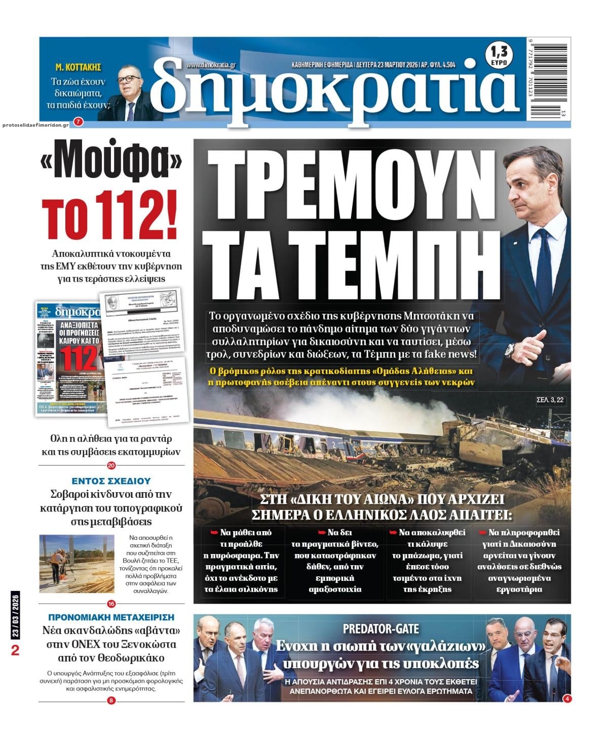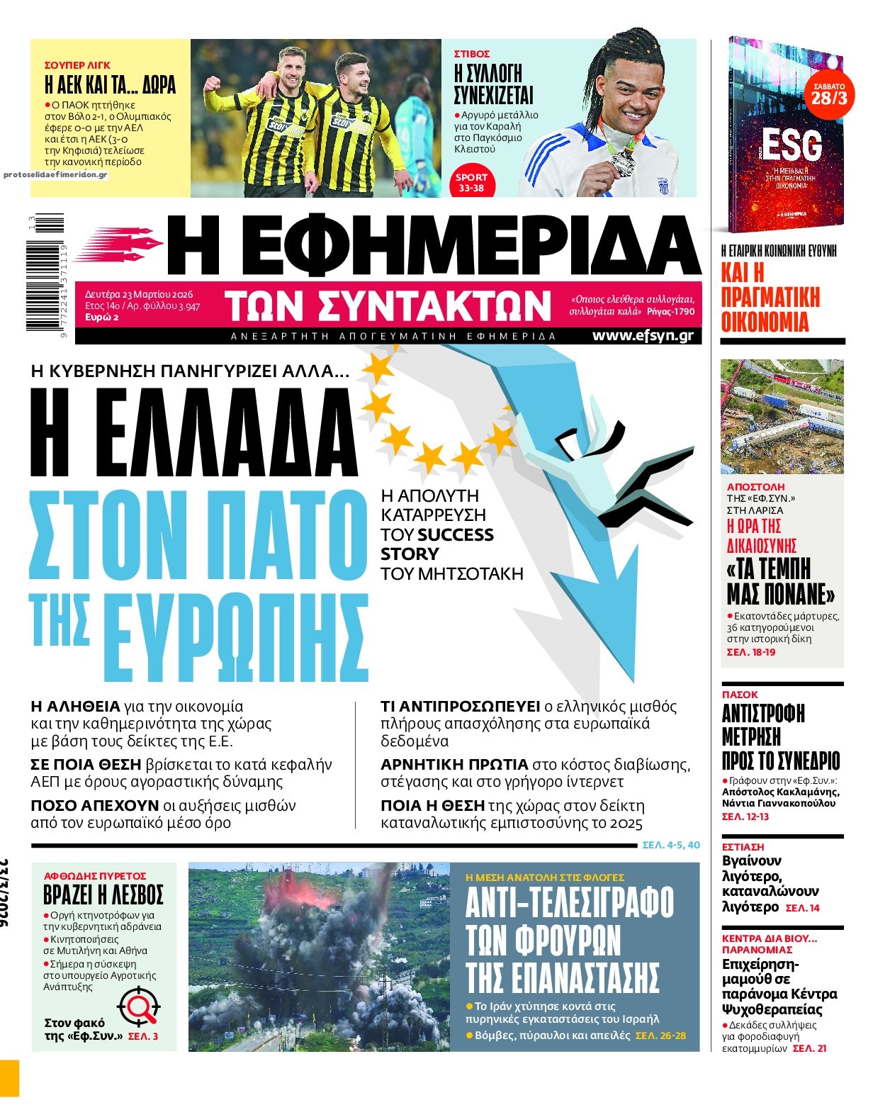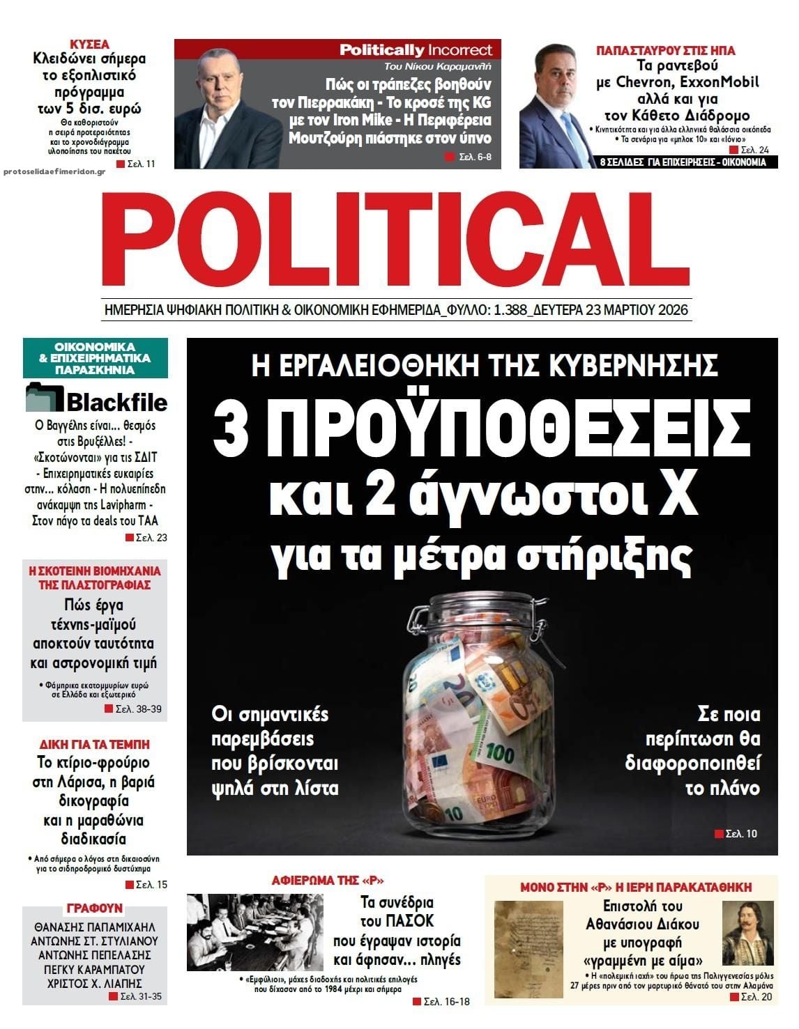 Διαβάστε τα πρωτοσέλιδα από τις πολιτικές εφημερίδες, σήμερα 23/3/2026.