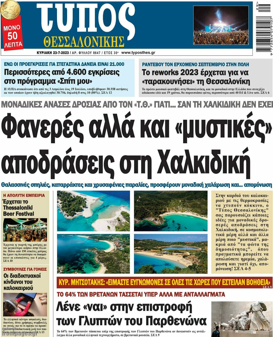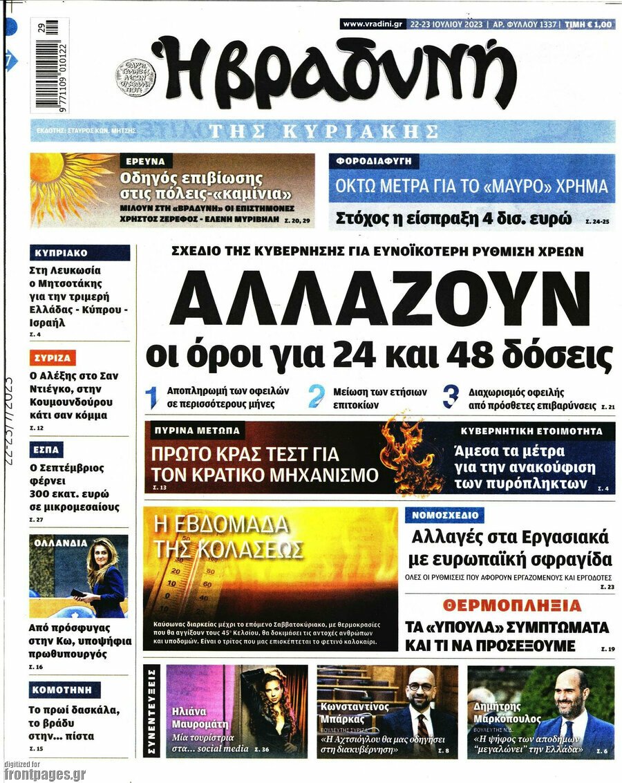 Οι πολιτικές εφημερίδες 23/7/2023 Δημήτρης Καλογερόγιαννης 07:27, Κυριακή 23 Ιουλίου 2023 Media Διαβάστε τα πρωτοσέλιδα από τις πολιτικές εφημερίδες, σήμερα 23/07/2023. ΠΟΛΙΤΙΚΕΣ ΕΦΗΜΕΡΙΔΕΣ ΠΡΩΤΟΣΕΛΙΔΑ ΕΦΗΜΕΡΙΔΩΝ Μοιράσου το: Φωτιά στην Ρόδο – BINTEO από αεροπλάνο δείχνει την έκταση του πύρινου μετώπου Φωτιά στην Ρόδο: Σε γυμναστήρια, σχολεία, και πλοία φιλοξενούνται χιλιάδες τουρίστες – ΦΩΤΟ Φωτιά στην Ρόδο: Η στιγμή που οι φλόγες τυλίγουν την εκκλησία στο χωριό Λάερμα – BINTEO σχολίασε κι εσύ (0 σχόλια) Ακολουθήστε το enikos.gr στο Google News και μάθετε πρώτοι όλες τις ειδήσεις Δείτε όλες τις τελευταίες ειδήσεις από την Ελλάδα και τον Κόσμο στο enikos.gr Ειδήσεις Ροή Ειδήσεων 1 ώρα πριν ΑΑΔΕ: Στον Εισαγγελέα οι πρώτες 50 μαζικές διαγραφές αγρών στο Ε9 – Εξετάζονται συνολικά 3.000 περιπτώσεις 5 ώρες πριν Καιρός: Νέο έκτακτο δελτίο επιδείνωσης από την ΕΜΥ – Ποιες περιοχές θα «χτυπήσει» η κακοκαιρία τα Χριστούγεννα 55 λεπτά πριν Ζελένσκι: Πέρασε στην αντεπίθεση με το σχέδιο ειρήνης – Ζητεί συνάντηση με Τραμπ για το εδαφικό 6 ώρες πριν Live – Έξοδος Χριστουγέννων: Αυξημένη η κίνηση στις Εθνικές Οδούς – Εικόνα αποσυμφόρησης με νέες λωρίδες κυκλοφορίας στα αγροτικά μπλόκα 5 ώρες πριν Αεροπορικό δυστύχημα στην Τουρκία: Στο μικροσκόπιο ο καταγραφέας ήχου και το μαύρο κουτί – Η αεροσυνοδός Maria Pappa ανάμεσα στα θύματα 45 λεπτά πριν Τα 5 ζώδια που έχουν μεγάλες πιθανότητες να πλουτίσουν το 2026 – «Οι οικονομικές δυσκολίες ανήκουν στο παρελθόν» 2 ώρες πριν Επιστήμονες ανακάλυψαν κάτι συγκλονιστικό – Η μάζα μπορεί να προέρχεται από αόρατες διαστάσεις 6 ώρες πριν Γυναίκα που έχασε 30 κιλά αποκαλύπτει τα μυστικά της επιτυχίας της – «Οι υδατάνθρακες είναι καύσιμο του οργανισμού, όχι εχθρός» 5 ώρες πριν Οι άνθρωποι που αποφεύγουν να γιορτάσουν τα Χριστούγεννα με την οικογένειά τους, συνήθως είχαν αυτές τις 8 εμπειρίες στην παιδική ηλικία 28 δευτερόλεπτα πριν Σούπερ προσφορές* για Boxing Day, Super League, NBA και EuroLeague από το Pamestoixima.gr 12 λεπτά πριν Αττική: Έπεσε από πατίνι η 14χρονη που εντοπίστηκε τραυματισμένη – Νοσηλεύεται στη νευροχειρουργική κλινική 19 λεπτά πριν Φωτιά σε αυτοκίνητο στην Αττική Οδό – Πού υπάρχουν καθυστερήσεις – ΦΩΤΟ αναγνώστη 26 λεπτά πριν Τουρκία: Συζητήσεις Φιντάν με αξιωματούχους της Χαμάς για τη δεύτερη φάση της συμφωνίας εκεχειρίας στη Γάζα 33 λεπτά πριν ALPHA: Παραμονή Χριστουγέννων με τον Κωνσταντίνο Αργυρό ENIKOS NETWORK New Year’s Resolutions: Μικρές αποφάσεις για μια καλή χρονιά 14χρονη βγήκε να πει τα κάλαντα και βρέθηκε τραυματισμένη στο δρόμο-Νοσηλεύεται στο Παίδων «Αγία Σοφία» Αλλάζουν οι διατάξεις του Κτιριοδομικού του Κτιριοδομικού Κανονισμού – Τι είπε ο Ταγαράς Επίδομα θέρμανσης: Πότε θα δοθεί η επόμενη δόση Ο Google Assistant θα παραμείνει λίγο περισσότερο για ορισμένους χρήστες Android Τεστ προσωπικότητας: Το βάζο που θα επιλέξετε αποκαλύπτει πώς λύνετε προβλήματα στη ζωή σας περισσότερα 16:12 , Τετάρτη 24 Δεκεμβρίου 2025 ALPHA: Παραμονή Χριστουγέννων με τον Κωνσταντίνο Αργυρό Ο Alpha παρουσιάζει απόψε σε πρώτη τηλεοπτική μετάδοση τη συναρπαστική και sold out εμφάνιση ... 15:51 , Τετάρτη 24 Δεκεμβρίου 2025 ‘Αγιος Έρωτας: Ο σεισμός που έκοψε την ανάσα – Δείτε τις συγκλονιστικές σκηνές Με έναν συγκλονιστικό τρόπο έκλεισε χθες βράδυ το τελευταίο επεισόδιο του 2025 της σειράς R... 13:27 , Τετάρτη 24 Δεκεμβρίου 2025 Ο Χριστουγεννιάτικος Τηλεμαραθώνιος του ΑΝΤ1 ένωσε τους πολιτικούς αρχηγούς – Τα εγκωμιαστικά σχόλια γι