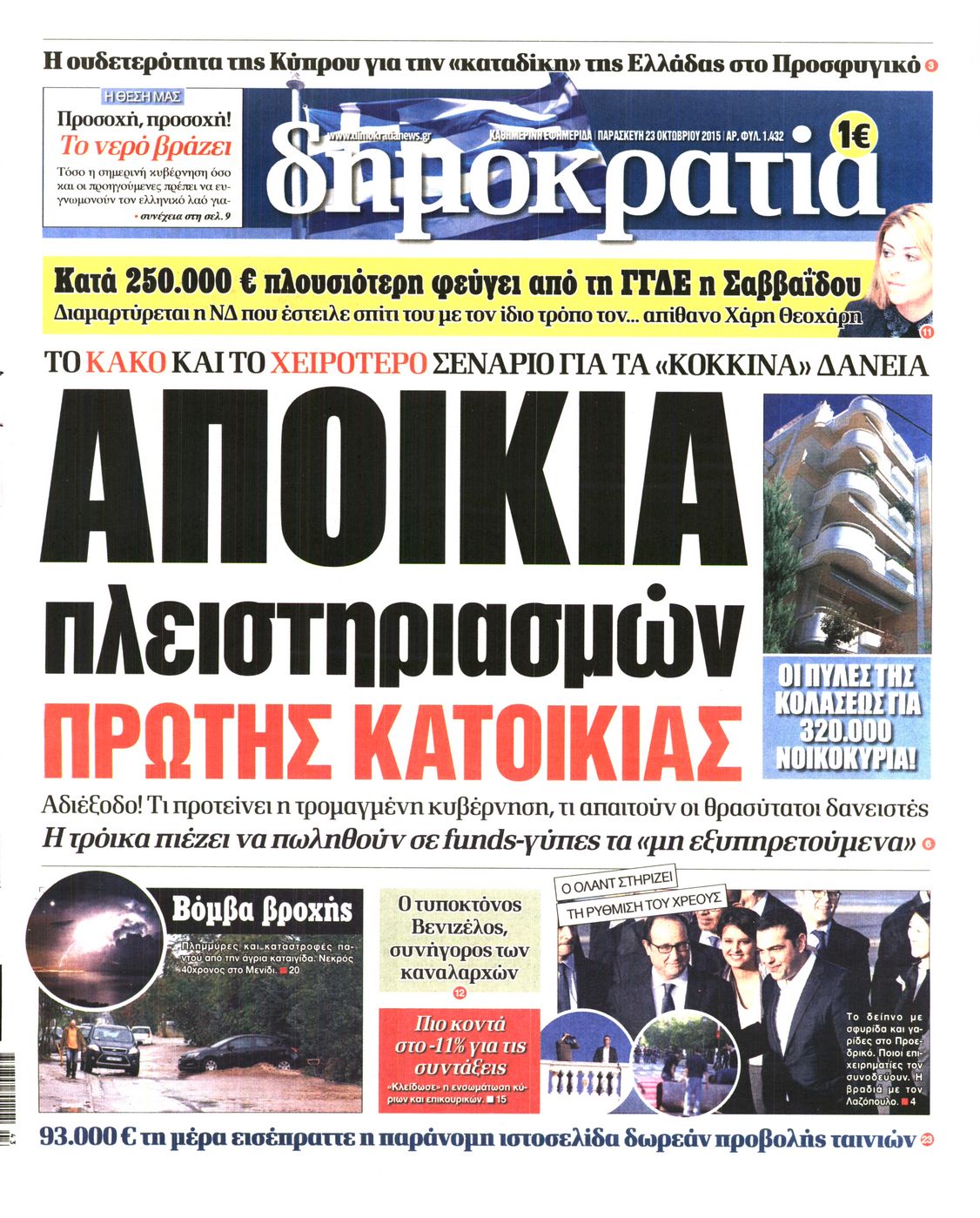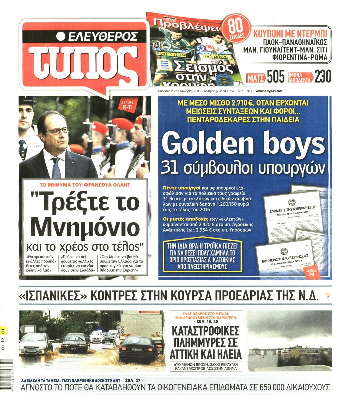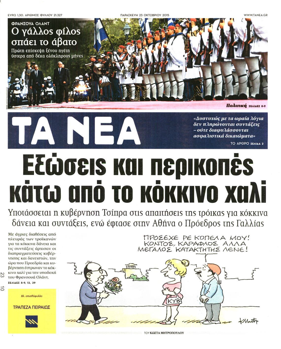 Οι πολιτικές εφημερίδες 23/10/2015 Enikos Newsroom 06:12, Παρασκευή 23 Οκτωβρίου 2015 Media Διαβάστε τα σημερινά πρωτοσέλιδα των πολιτικών εφημερίδων. ΕΦΗΜΕΡΙΔΕΣ ΠΟΛΙΤΙΚΕΣ ΕΦΗΜΕΡΙΔΕΣ ΠΡΩΤΟΣΕΛΙΔΑ Μοιράσου το: σχολίασε κι εσύ (0 σχόλια) Ακολουθήστε το enikos.gr στο Google News και μάθετε πρώτοι όλες τις ειδήσεις Δείτε όλες τις τελευταίες ειδήσεις από την Ελλάδα και τον Κόσμο στο enikos.gr Ειδήσεις Ροή Ειδήσεων 2 ώρες πριν Η Ουκρανία χτύπησε τάνκερ του σκιώδους στόλου της Ρωσίας στη Μεσόγειο – Έπλεε νότια της Κρήτης 4 ώρες πριν Πούτιν: Η Ουκρανία δεν είναι έτοιμη για ειρηνευτικές συνομιλίες – Ο ρωσικός στρατός προελαύνει σε όλα τα μέτωπα 42 λεπτά πριν Θεσσαλονίκη: Στη φυλακή ο 44χρονος που κατηγορείται ότι προσπάθησε να πνίξει με κορδόνι την 34χρονη σύντροφό του 59 λεπτά πριν Εξώδικο επιχειρηματία στον Γιώργο Μαζωνάκη – Τι απαντά στις καταγγελίες του τραγουδιστή 2 ώρες πριν Βουλή: Υπερψηφίστηκε το νομοσχέδιο για την ένταξη του ΟΠΕΚΕΠΕ στην ΑΑΔΕ 6 ώρες πριν Αλλαγή σελίδας για 3 ζώδια – «Μία δύσκολη περίοδος φτάνει στο τέλος της» 2 ημέρες πριν 20 χρόνια τα Χριστούγεννα ξεκινούν στα Public με μεγάλη ποικιλία σε δώρα! 5 ώρες πριν Γεμάτος νεροχύτης; 5 σοβαρές ευθύνες που «φοβίζουν» όσους αφήνουν άπλυτα πιάτα 4 ώρες πριν Ειδικός μοιράζεται 6 κόλπα για να διατηρείστε σε φόρμα με πάνω από 40 ώρες εργασίας την εβδομάδα: «Προπονηθείτε πριν από τη δουλειά, όχι μετά» 4 λεπτά πριν Πούτιν: Σαρκαστικά μηνύματα, παράπονα και απρόοπτα στη συνέντευξη Τύπου – Η πρόταση γάμου on air και οι ερωτήσεις για τα αγγούρια και τους… εξωγήινους 11 λεπτά πριν Κρήτη: Ένοχος ο 54χρονος «ερευνητής» για απάτη στην υπόθεση του 33χρονου γιατρού που αγνοείται 12 λεπτά πριν Νίκος Κούρκουλος: Αυτός ο αλύγιστος και ασυμβίβαστος «Αστραπόγιαννος» 17 λεπτά πριν Παναθηναϊκός: Θα προτείνει στη Λάτσιο 4 εκατ. ευρώ και συνιδιοκτησία για τον Μανδά 23 λεπτά πριν Η απάντηση της κυβέρνησης στα αιτήματα των αγροτών: 16+4 υλοποιούνται ή βρίσκονται υπό επεξεργασία για να βρεθεί λύση – 7 δεν μπορούν να επιλυθούν ENIKOS NETWORK Τάξη στις ιατρικές διαφημίσεις για την προστασία των πολιτών βάζει ο ΙΣΑ Μακροζωία: Τι παίζει πιο σημαντικό ρόλο ακόμα και από την διατροφή και την άσκηση, σύμφωνα με μελέτη Βουλή: Υπερψηφίστηκε το νομοσχέδιο για τη μετάβαση του ΟΠΕΚΕΠΕ στην ΑΑΔΕ ΕΥΔΑΠ: Οδηγός για τις αλλαγές στα τιμολόγια του νερού – 17 ερωτήσεις και απαντήσεις Χαρτογραφώντας το «σημείο χωρίς επιστροφή»: Για πρώτη φορά αποκαλύπτεται με λεπτομέρεια το ακανθώδες όριο της ατμόσφαιρας τ... Η Google καταργεί τη λειτουργία «dark web report» – Πώς θα μπορούν οι χρήστες να διαγράφουν τα δεδομένα τους περισσότερα 15:15 , Παρασκευή 19 Δεκεμβρίου 2025 Την Κυριακή με τη Realnews: Ό,τι και αν αγοράσεις, σκανάρεις και κερδίζεις! Την Κυριακή με τη Realnews: Ό,τι και αν αγοράσεις, σκανάρεις και κερδίζεις! Με το PADU app, το... 08:00 , Παρασκευή 19 Δεκεμβρίου 2025 Την Κυριακή με τη Realnews: Δωροεπιταγή 10€ Δωροεπιταγή αξίας 10€ για αγορές άνω των 60€ από τα πολυκαταστήματα FactoryOutlet H προσφορά ι... 05:48 , Παρασκευή 19 Δεκεμβρίου 2025 Οι οικονομικές εφημερίδες 19/12/2025 Διαβάστε τα πρωτοσέλιδα από τις οικονομικές εφημερίδες, σήμερα 19/12/2025. 05:43 , Παρασκευή 19 Δεκεμβρίου 2025 Οι αθλητικές εφημερίδες 19/12/2025 Διαβάστε τα πρωτοσέλιδα από τις αθλητικές εφημερίδες, σήμερα 19/12/2025. ΤΕΛΕΥΤΑΙΕΣ ΕΙΔΗΣΕΙΣ 4 λεπτά πριν Πούτιν: Σαρκαστικά μηνύματα, παράπονα και απρόοπτα... 11 λεπτά πριν Κρήτη: Ένοχος ο 54χρονος «ερευνητής» για απάτη στην... 12 λεπτά πριν Νί