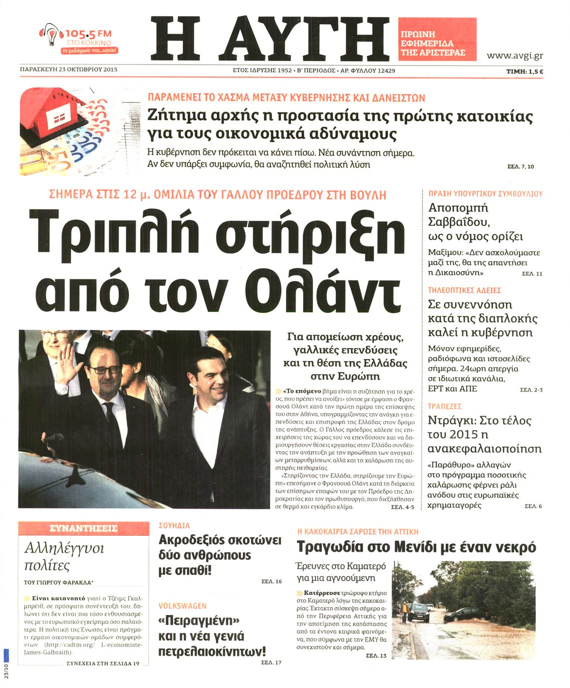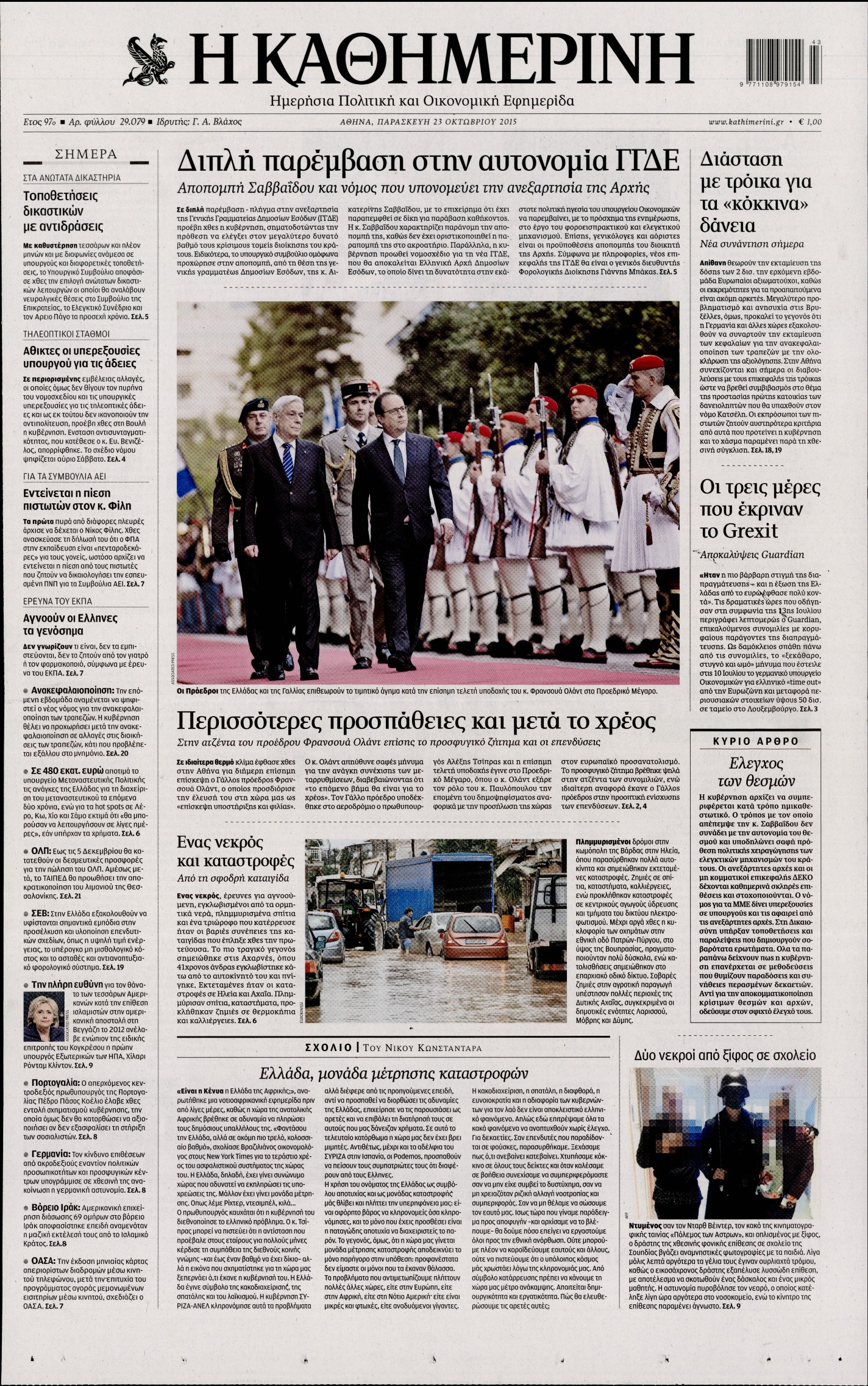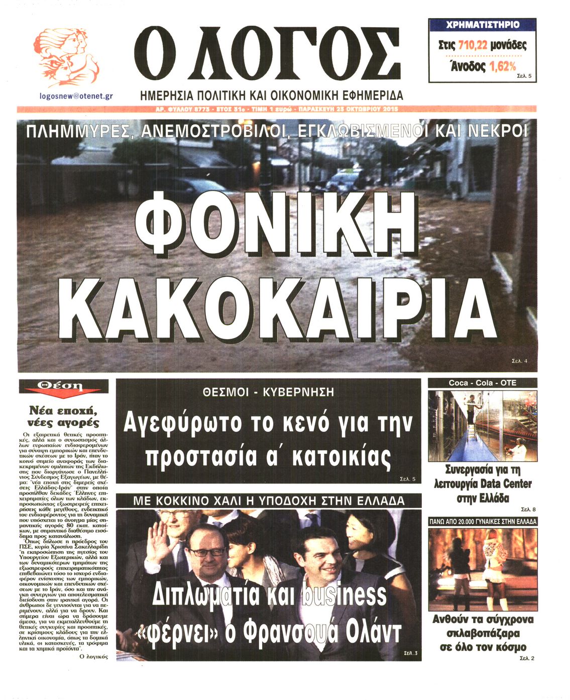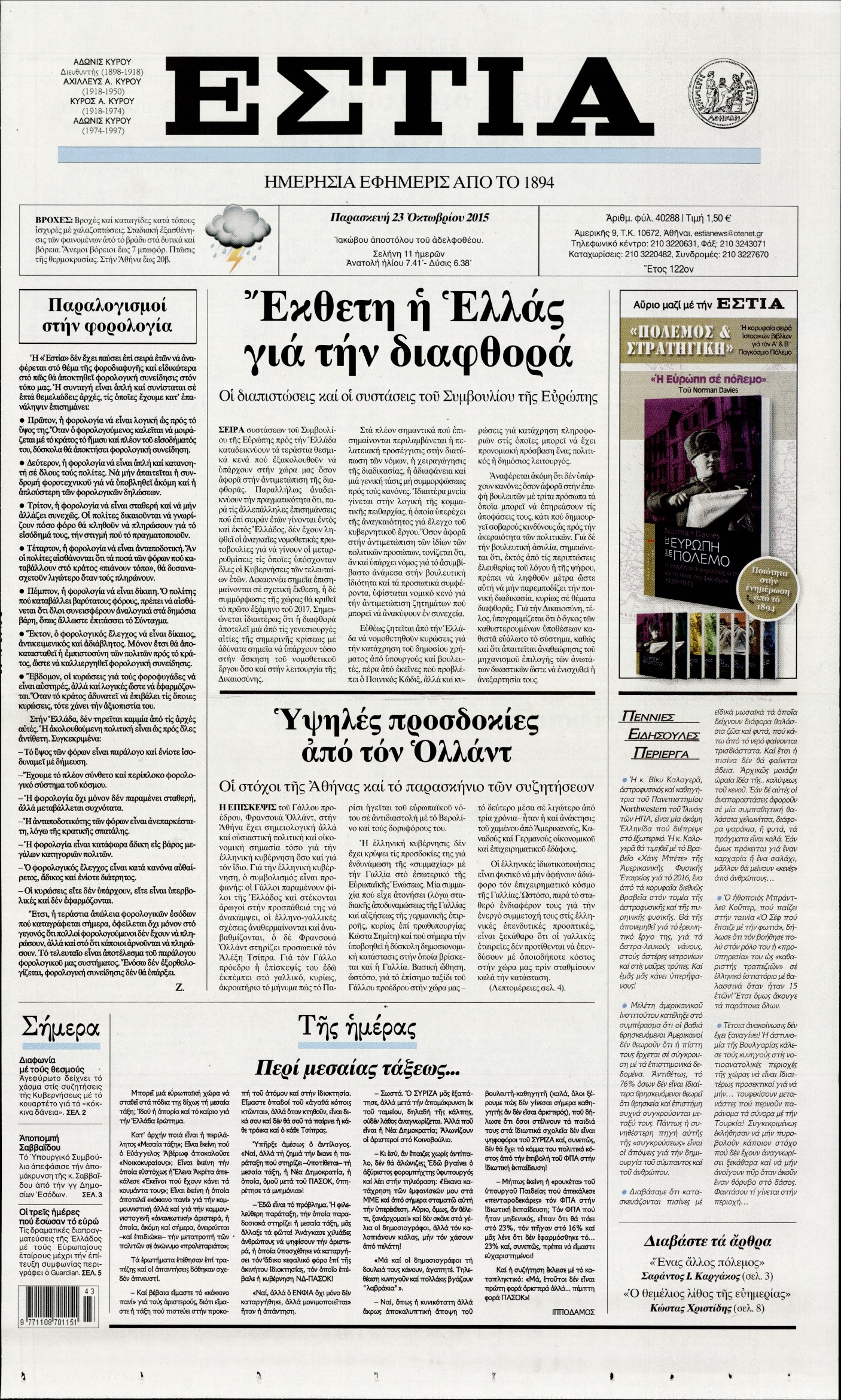 Οι πολιτικές εφημερίδες 23/10/2015 Enikos Newsroom 06:12, Παρασκευή 23 Οκτωβρίου 2015 Media Διαβάστε τα σημερινά πρωτοσέλιδα των πολιτικών εφημερίδων. ΕΦΗΜΕΡΙΔΕΣ ΠΟΛΙΤΙΚΕΣ ΕΦΗΜΕΡΙΔΕΣ ΠΡΩΤΟΣΕΛΙΔΑ Μοιράσου το: σχολίασε κι εσύ (0 σχόλια) Ακολουθήστε το enikos.gr στο Google News και μάθετε πρώτοι όλες τις ειδήσεις Δείτε όλες τις τελευταίες ειδήσεις από την Ελλάδα και τον Κόσμο στο enikos.gr Ειδήσεις Ροή Ειδήσεων 2 ώρες πριν Η Ουκρανία χτύπησε τάνκερ του σκιώδους στόλου της Ρωσίας στη Μεσόγειο – Έπλεε νότια της Κρήτης 4 ώρες πριν Πούτιν: Η Ουκρανία δεν είναι έτοιμη για ειρηνευτικές συνομιλίες – Ο ρωσικός στρατός προελαύνει σε όλα τα μέτωπα 42 λεπτά πριν Θεσσαλονίκη: Στη φυλακή ο 44χρονος που κατηγορείται ότι προσπάθησε να πνίξει με κορδόνι την 34χρονη σύντροφό του 59 λεπτά πριν Εξώδικο επιχειρηματία στον Γιώργο Μαζωνάκη – Τι απαντά στις καταγγελίες του τραγουδιστή 2 ώρες πριν Βουλή: Υπερψηφίστηκε το νομοσχέδιο για την ένταξη του ΟΠΕΚΕΠΕ στην ΑΑΔΕ 6 ώρες πριν Αλλαγή σελίδας για 3 ζώδια – «Μία δύσκολη περίοδος φτάνει στο τέλος της» 2 ημέρες πριν 20 χρόνια τα Χριστούγεννα ξεκινούν στα Public με μεγάλη ποικιλία σε δώρα! 5 ώρες πριν Γεμάτος νεροχύτης; 5 σοβαρές ευθύνες που «φοβίζουν» όσους αφήνουν άπλυτα πιάτα 4 ώρες πριν Ειδικός μοιράζεται 6 κόλπα για να διατηρείστε σε φόρμα με πάνω από 40 ώρες εργασίας την εβδομάδα: «Προπονηθείτε πριν από τη δουλειά, όχι μετά» 4 λεπτά πριν Πούτιν: Σαρκαστικά μηνύματα, παράπονα και απρόοπτα στη συνέντευξη Τύπου – Η πρόταση γάμου on air και οι ερωτήσεις για τα αγγούρια και τους… εξωγήινους 11 λεπτά πριν Κρήτη: Ένοχος ο 54χρονος «ερευνητής» για απάτη στην υπόθεση του 33χρονου γιατρού που αγνοείται 12 λεπτά πριν Νίκος Κούρκουλος: Αυτός ο αλύγιστος και ασυμβίβαστος «Αστραπόγιαννος» 17 λεπτά πριν Παναθηναϊκός: Θα προτείνει στη Λάτσιο 4 εκατ. ευρώ και συνιδιοκτησία για τον Μανδά 23 λεπτά πριν Η απάντηση της κυβέρνησης στα αιτήματα των αγροτών: 16+4 υλοποιούνται ή βρίσκονται υπό επεξεργασία για να βρεθεί λύση – 7 δεν μπορούν να επιλυθούν ENIKOS NETWORK Τάξη στις ιατρικές διαφημίσεις για την προστασία των πολιτών βάζει ο ΙΣΑ Μακροζωία: Τι παίζει πιο σημαντικό ρόλο ακόμα και από την διατροφή και την άσκηση, σύμφωνα με μελέτη Βουλή: Υπερψηφίστηκε το νομοσχέδιο για τη μετάβαση του ΟΠΕΚΕΠΕ στην ΑΑΔΕ ΕΥΔΑΠ: Οδηγός για τις αλλαγές στα τιμολόγια του νερού – 17 ερωτήσεις και απαντήσεις Χαρτογραφώντας το «σημείο χωρίς επιστροφή»: Για πρώτη φορά αποκαλύπτεται με λεπτομέρεια το ακανθώδες όριο της ατμόσφαιρας τ... Η Google καταργεί τη λειτουργία «dark web report» – Πώς θα μπορούν οι χρήστες να διαγράφουν τα δεδομένα τους περισσότερα 15:15 , Παρασκευή 19 Δεκεμβρίου 2025 Την Κυριακή με τη Realnews: Ό,τι και αν αγοράσεις, σκανάρεις και κερδίζεις! Την Κυριακή με τη Realnews: Ό,τι και αν αγοράσεις, σκανάρεις και κερδίζεις! Με το PADU app, το... 08:00 , Παρασκευή 19 Δεκεμβρίου 2025 Την Κυριακή με τη Realnews: Δωροεπιταγή 10€ Δωροεπιταγή αξίας 10€ για αγορές άνω των 60€ από τα πολυκαταστήματα FactoryOutlet H προσφορά ι... 05:48 , Παρασκευή 19 Δεκεμβρίου 2025 Οι οικονομικές εφημερίδες 19/12/2025 Διαβάστε τα πρωτοσέλιδα από τις οικονομικές εφημερίδες, σήμερα 19/12/2025. 05:43 , Παρασκευή 19 Δεκεμβρίου 2025 Οι αθλητικές εφημερίδες 19/12/2025 Διαβάστε τα πρωτοσέλιδα από τις αθλητικές εφημερίδες, σήμερα 19/12/2025. ΤΕΛΕΥΤΑΙΕΣ ΕΙΔΗΣΕΙΣ 4 λεπτά πριν Πούτιν: Σαρκαστικά μηνύματα, παράπονα και απρόοπτα... 11 λεπτά πριν Κρήτη: Ένοχος ο 54χρονος «ερευνητής» για απάτη στην... 12 λεπτά πριν Νί