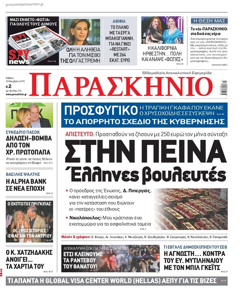 Οι πολιτικές εφημερίδες 23/11/19 Διονύσης Νίκκας 07:09, Σάββατο 23 Νοεμβρίου 2019 Media Διαβάστε τα πρωτοσέλιδα των πολιτικών εφημερίδων… ΕΦΗΜΕΡΙΔΕΣ ΠΟΛΙΤΙΚΕΣ Μοιράσου το: σχολίασε κι εσύ (0 σχόλια) Ακολουθήστε το enikos.gr στο Google News και μάθετε πρώτοι όλες τις ειδήσεις Δείτε όλες τις τελευταίες ειδήσεις από την Ελλάδα και τον Κόσμο στο enikos.gr Ειδήσεις Ροή Ειδήσεων 8 ώρες πριν Χριστούγεννα στα μπλόκα: Επιμένουν στις κινητοποιήσεις τους οι αγρότες – Ανοίγουν τα διόδια το Σαββατοκύριακο 9 ώρες πριν Ουκρανία: Η άνευ προηγουμένου επίθεση σε ρωσικό τάνκερ στη Μεσόγειο και το μήνυμα προς στον Πούτιν – Το «μακρύ χέρι» του Κιέβου 8 ώρες πριν Πούτιν: Τα μηνύματα σε Ευρώπη και ΝΑΤΟ από το μαραθώνιο «σόου» του – Η απαίτηση για «σεβασμό» και η ειρήνη «με τους όρους» της Μόσχας 7 ώρες πριν ΗΠΑ: Η κυβέρνηση του Ντόναλντ Τραμπ άρχισε να δημοσιοποιεί τα αρχεία Έπσταϊν 7 ώρες πριν Άνω Λιόσια: Πυροβολισμοί σε επιχείρηση με χαλιά – Εντοπίστηκαν 10 κάλυκες 55 λεπτά πριν Αυγά: Πόσα μπορείτε να τρώτε την ημέρα με ασφάλεια για μέγιστη πρόσληψη πρωτεΐνης 1 ώρα πριν Τα ζώδια σήμερα, Σάββατο 20 Δεκεμβρίου: Παρθένοι, το σύμπαν σας δίνει το κλειδί 8 ώρες πριν Ανακαλύφθηκαν αρχαία χρυσά νομίσματα 2.200 ετών που απεικονίζουν τον θεό Απόλλωνα – Η άγνωστη σύνδεση με τον Φίλιππο Β΄ της Μακεδονίας 9 ώρες πριν Ύπνος: Μια κρυφή κατάσταση του εγκεφάλου πριν από τον ύπνο μπορεί να είναι το “κλειδί” για υψηλή ευφυΐα και δημιουργικότητα 16 λεπτά πριν Κίριλ Ντμίτριεφ: Στις ΗΠΑ ο απεσταλμένος της Ρωσίας για συνομιλίες με τους ομολόγους του, Γουίτκοφ και Κούσνερ 23 λεπτά πριν ΔΕΔΔΗΕ: Διακοπές ρεύματος σήμερα (20/12) στην Αθήνα και σε άλλες 7 περιοχές της Αττικής 32 λεπτά πριν Κολομβία: Είκοσι χρόνια κάθειρξη σε πρώην ανώτερο αξιωματικό για 72 εκτελέσεις αμάχων 39 λεπτά πριν Οπτική ψευδαίσθηση: Μόνο αν είσαι ο Σέρλοκ Χολμς θα βρεις τον αριθμό «87» σε 7 δευτερόλεπτα 46 λεπτά πριν Σαρωτικοί οι έλεγχοι στους δρόμους ενόψει εορτών – Μπλόκα της τροχαίας σε κεντρικές αρτηρίες της Αττικής ENIKOS NETWORK Πρέπει να αποδέχεστε ή να απορρίπτετε όλα τα cookies; Ένας ειδικός εξηγεί Η αγαπημένη λιχουδιά των πόνι που μπορεί να ενισχύσει όραση, εγκέφαλο και ανοσοποιητικό Αναστολή μέτρων αναγκαστικής εκτέλεσης για κτηνοτρόφους που πλήττονται από την ευλογιά των αιγοπροβάτων Πλήρης επάρκεια προϊόντων στις λαϊκές της Αττικής, παρά τις αγροτικές κινητοποιήσεις – Τι απαντούν οι πωλητές Χαρτογραφώντας το «σημείο χωρίς επιστροφή»: Για πρώτη φορά αποκαλύπτεται με λεπτομέρεια το ακανθώδες όριο της ατμόσφαιρας τ... Η Google καταργεί τη λειτουργία «dark web report» – Πώς θα μπορούν οι χρήστες να διαγράφουν τα δεδομένα τους περισσότερα 05:48 , Σάββατο 20 Δεκεμβρίου 2025 Οι οικονομικές εφημερίδες 20/12/2025 Διαβάστε τα πρωτοσέλιδα από τις οικονομικές εφημερίδες, σήμερα 20/12/2025. 05:43 , Σάββατο 20 Δεκεμβρίου 2025 Οι αθλητικές εφημερίδες 20/12/2025 Διαβάστε τα πρωτοσέλιδα από τις αθλητικές εφημερίδες, σήμερα 20/12/2025. 05:38 , Σάββατο 20 Δεκεμβρίου 2025 Οι πολιτικές εφημερίδες 20/12/2025 Διαβάστε τα πρωτοσέλιδα από τις πολιτικές εφημερίδες, σήμερα 20/12/2025. 04:20 , Σάββατο 20 Δεκεμβρίου 2025 Αγγελική Νικολούλη: Τα συλλυπητήρια για την απώλεια της Ειρήνης Μαρινάκη Τα συλληπητήρια στον πρόεδρο του Mega, τον Βαγγέλη Μαρινάκη, για την απώλεια της μητέρας του Ε... ΤΕΛΕΥΤΑΙΕΣ ΕΙΔΗΣΕΙΣ 16 λεπτά πριν Κίριλ Ντμίτριεφ: Στις ΗΠΑ ο απεσταλμένος της Ρωσίας... 23 λεπτά πριν ΔΕΔΔΗΕ: Διακοπές ρεύματος σήμερα (20/12) στην 