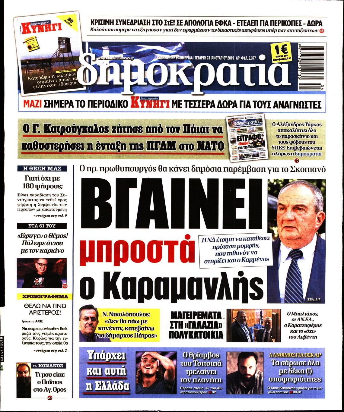 Οι πολιτικές εφημερίδες 23/1/19 Enikos Newsroom 06:25, Τετάρτη 23 Ιανουαρίου 2019 Media Διαβάστε τα πρωτοσέλιδα των πολιτικών εφημερίδων: ΠΟΛΙΤΙΚΕΣ ΕΦΗΜΕΡΙΔΕΣ ΠΡΩΤΟΣΕΛΙΔΑ Μοιράσου το: σχολίασε κι εσύ (0 σχόλια) Ακολουθήστε το enikos.gr στο Google News και μάθετε πρώτοι όλες τις ειδήσεις Δείτε όλες τις τελευταίες ειδήσεις από την Ελλάδα και τον Κόσμο στο enikos.gr Ειδήσεις Ροή Ειδήσεων 1 ώρα πριν Υπόθεση Έπσταϊν: Το Υπουργείο Δικαιοσύνης δημοσιοποίησε μια σειρά από εξαιρετικά επεξεργασμένα αρχεία – «Λείπουν τα πιο σημαντικά έγγραφα», λένε οι Δημοκρατικοί 36 λεπτά πριν Ο «χάρτης» με τις αυξήσεις και τις φοροελαφρύνσεις του 2026 – Ποιοι και πόσα κερδίζουν 11 ώρες πριν Χριστούγεννα στα μπλόκα: Επιμένουν στις κινητοποιήσεις τους οι αγρότες – Ανοίγουν τα διόδια το Σαββατοκύριακο 2 ώρες πριν ΟΝΕΧ – MEGATUGS: Ξεκίνησε η ναυπήγηση ρυμουλκών στην Ελλάδα – Προθάλαμος πολεμικών πλοίων – Δείτε φωτογραφίες και βίντεο 2 ώρες πριν Καιρός: Αλλαγή σκηνικού σήμερα με βροχές και πτώση της θερμοκρασίας – Οι προβλέψεις των μετεωρολόγων για τα Χριστούγεννα 3 ώρες πριν Αυγά: Πόσα μπορείτε να τρώτε την ημέρα με ασφάλεια για μέγιστη πρόσληψη πρωτεΐνης 4 ώρες πριν Τα ζώδια σήμερα, Σάββατο 20 Δεκεμβρίου: Παρθένοι, το σύμπαν σας δίνει το κλειδί 3 ώρες πριν Οπτική ψευδαίσθηση: Μόνο αν είσαι ο Σέρλοκ Χολμς θα βρεις τον αριθμό «87» σε 7 δευτερόλεπτα 1 ώρα πριν Αρχαιολόγοι ανακάλυψαν σε χωράφι απεικόνιση 600 ετών ενός Αγίου – Τα στοιχεία που δείχνουν ότι μαρτύρησε 8 λεπτά πριν Παιδική υπέρταση: Μια σιωπηλή απειλή που αυξάνεται διεθνώς 9 λεπτά πριν Αγχώνεται για το χριστουγεννιάτικο δώρο που πήρε στην πλούσια σύντροφό του – «Φοβάμαι πως θα το βρει φθηνιάρικο, φοράει βραχιόλια Cartier» 16 λεπτά πριν Enerwave: Το νέο «ρεύμα» στη λιανική ενέργειας που αλλάζει την εμπειρία του καταναλωτή 20 λεπτά πριν Γιώργος Μαζωνάκης: Τη Δευτέρα η μήνυση του τραγουδιστή κατά του 22χρονου 29 λεπτά πριν Αμαλία Κωστοπούλου: Το μήνυμα για το χειρουργείο στο γόνατο – «Αυτός ο τραυματισμός μού στέρησε πολλά…» ENIKOS NETWORK Πόσα κιλά παίρνουμε πραγματικά τα Χριστούγεννα, σύμφωνα με την επιστήμη – Πώς να το αποτρέψουμε; Το δημοφιλές ρόφημα που αυξάνει την πίεση πιο γρήγορα και από το αλάτι Mega χριστουγεννιάτικη φορολοταρία: «Κλείδωσε» η ημερομηνία για την κλήρωση – Ερωτήσεις και απαντήσεις Αναστολή μέτρων αναγκαστικής εκτέλεσης για κτηνοτρόφους που πλήττονται από την ευλογιά των αιγοπροβάτων Χαρτογραφώντας το «σημείο χωρίς επιστροφή»: Για πρώτη φορά αποκαλύπτεται με λεπτομέρεια το ακανθώδες όριο της ατμόσφαιρας τ... Η Google καταργεί τη λειτουργία «dark web report» – Πώς θα μπορούν οι χρήστες να διαγράφουν τα δεδομένα τους περισσότερα 08:14 , Σάββατο 20 Δεκεμβρίου 2025 Τρομεροί γονείς: Η Μαρία Καβογιάννη εισβάλλει στο σπίτι της οικογένειας Στεφανίδη Όσα θα δούμε στο νέο διπλό επεισόδιο της σειράς «Τρομεροί γονείς», σήμερα Σάββατο 20 Δεκεμβρίο... 05:48 , Σάββατο 20 Δεκεμβρίου 2025 Οι οικονομικές εφημερίδες 20/12/2025 Διαβάστε τα πρωτοσέλιδα από τις οικονομικές εφημερίδες, σήμερα 20/12/2025. 05:43 , Σάββατο 20 Δεκεμβρίου 2025 Οι αθλητικές εφημερίδες 20/12/2025 Διαβάστε τα πρωτοσέλιδα από τις αθλητικές εφημερίδες, σήμερα 20/12/2025. 05:38 , Σάββατο 20 Δεκεμβρίου 2025 Οι πολιτικές εφημερίδες 20/12/2025 Διαβάστε τα πρωτοσέλιδα από τις πολιτικές εφημερίδες, σήμερα 20/12/2025. ΤΕΛΕΥΤΑΙΕΣ ΕΙΔΗΣΕΙΣ 8 λεπτά πριν Παιδική υπέρταση: Μια σιωπηλή απειλή που αυξάνεται... 9 λεπτά πριν Αγχώνεται για το χριστουγεννιάτικ