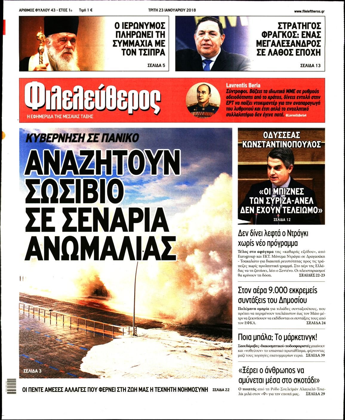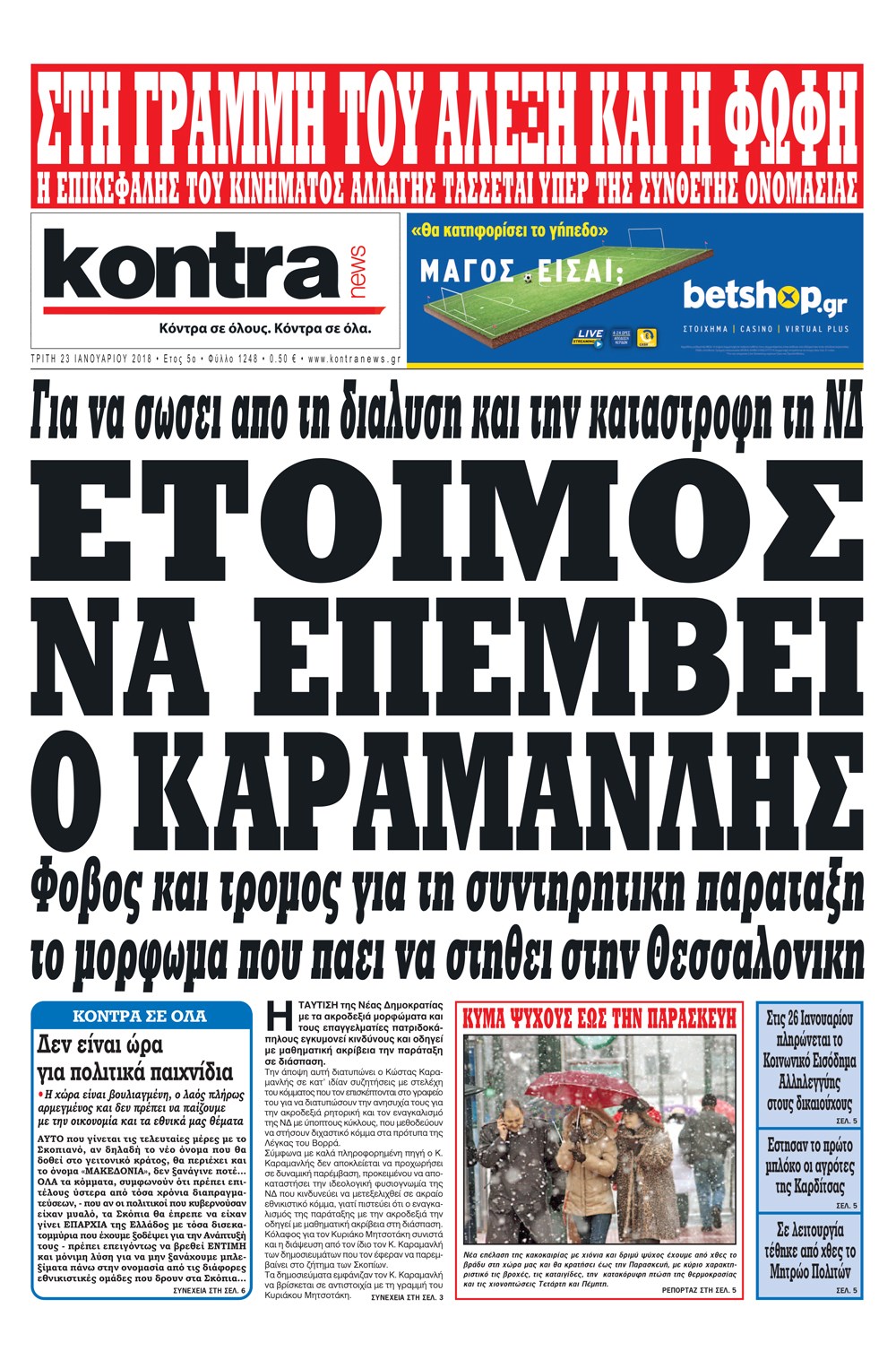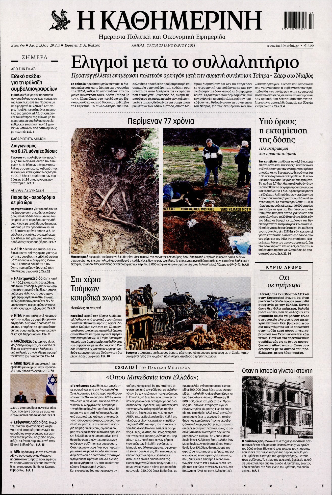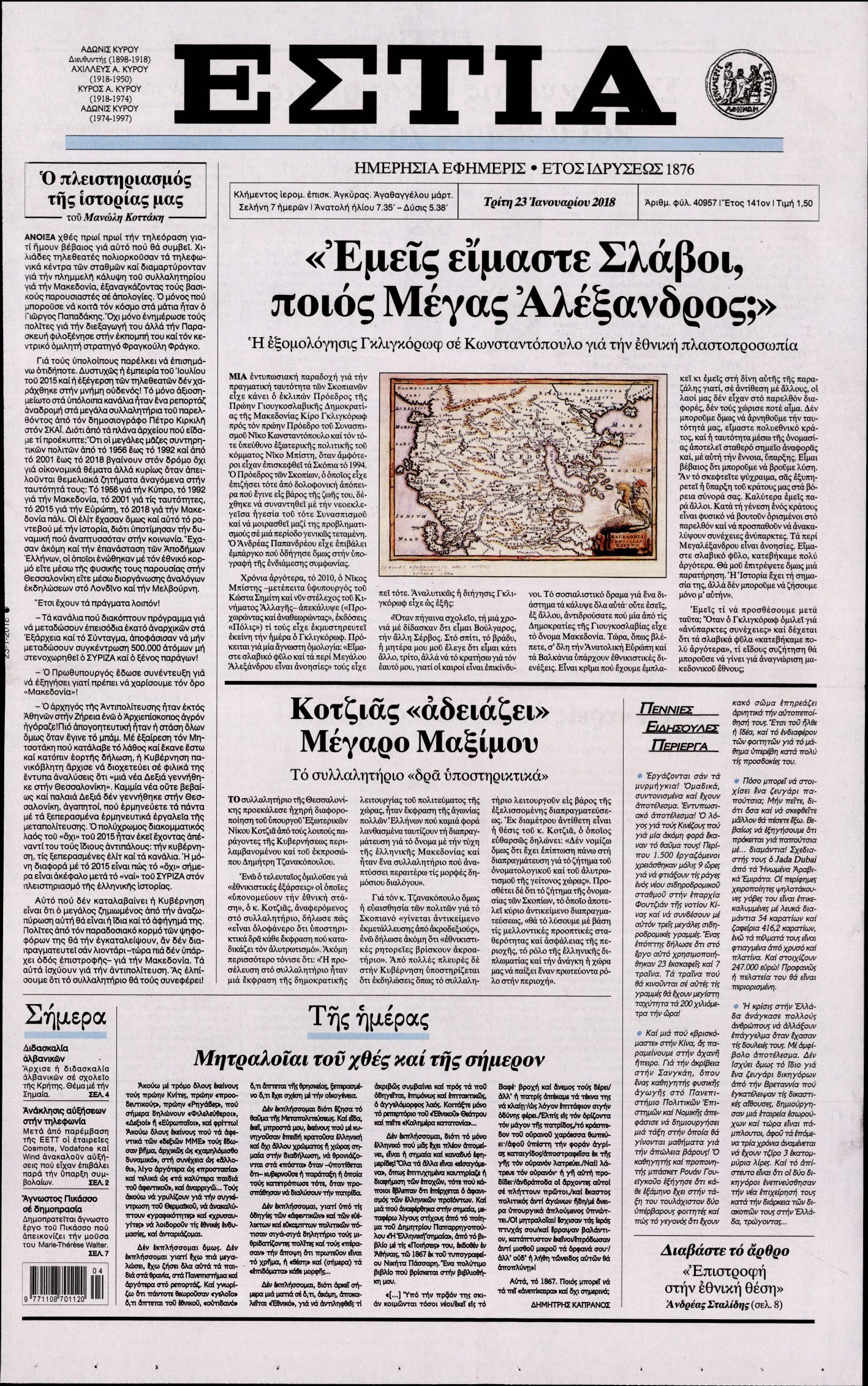 Οι πολιτικές εφημερίδες 23/1/2018 Enikos Newsroom 07:30, Τρίτη 23 Ιανουαρίου 2018 Media Διαβάστε τα σημερινά πρωτοσέλιδα των πολιτικών εφημερίδων: ΠΟΛΙΤΙΚΕΣ ΕΦΗΜΕΡΙΔΕΣ ΠΡΩΤΟΣΕΛΙΔΑ Μοιράσου το: σχολίασε κι εσύ (0 σχόλια) Ακολουθήστε το enikos.gr στο Google News και μάθετε πρώτοι όλες τις ειδήσεις Δείτε όλες τις τελευταίες ειδήσεις από την Ελλάδα και τον Κόσμο στο enikos.gr Ειδήσεις Ροή Ειδήσεων 3 ώρες πριν Χριστούγεννα στα μπλόκα: Επιμένουν στις κινητοποιήσεις τους οι αγρότες – Ανοίγουν τα διόδια το Σαββατοκύριακο 3 ώρες πριν Ουκρανία: Η άνευ προηγουμένου επίθεση σε ρωσικό τάνκερ στη Μεσόγειο και το μήνυμα προς στον Πούτιν – Το «μακρύ χέρι» του Κιέβου 2 ώρες πριν Πούτιν: Τα μηνύματα σε Ευρώπη και ΝΑΤΟ από το μαραθώνιο «σόου» του – Η απαίτηση για «σεβασμό» και η ειρήνη «με τους όρους» της Μόσχας 3 ώρες πριν Τραμπ: Δεν αποκλείει την πιθανότητα ενός πολέμου στη Βενεζουέλα – «Ο Μαδούρο ξέρει καλύτερα από τον καθένα τι ακριβώς θέλω» 4 ώρες πριν Συνεχίζει να προκαλεί ο Μίτσκοσκι: «Για μένα το όνομα Μακεδονία είναι ιερό» 2 ώρες πριν Ανακαλύφθηκαν αρχαία χρυσά νομίσματα 2.200 ετών που απεικονίζουν τον θεό Απόλλωνα – Η άγνωστη σύνδεση με τον Φίλιππο Β΄ της Μακεδονίας 3 ώρες πριν Ύπνος: Μια κρυφή κατάσταση του εγκεφάλου πριν από τον ύπνο μπορεί να είναι το “κλειδί” για υψηλή ευφυΐα και δημιουργικότητα 4 ώρες πριν Αριθμολογία: Οι άνθρωποι που έχουν γεννηθεί αυτές τις 4 ημερομηνίες, συχνά παρεξηγούνται – «Η καλοσύνη τους κρύβει τεράστια δύναμη» 5 ώρες πριν Ξεχάστε το καθάρισμα το Σαββατοκύριακο: Ο «κανόνας των 20 λεπτών» που θα σας λύσει τα χέρια 4 λεπτά πριν Συρία: Μαζικά πλήγματα των ΗΠΑ σε θέσεις του Ισλαμικού Κράτους – Χέγκσεθ: «Δεν είναι αρχή πολέμου, είναι μια δήλωση εκδίκησης» για το θάνατο των στρατιωτών μας 17 λεπτά πριν Ουκρανία: Ολοκληρώθηκαν οι συνομιλίες με τους Αμερικανούς κι Ευρωπαίους διαπραγματευτές 32 λεπτά πριν Μπαρτσελόνα – Μπασκόνια 134-124: Οι «μπλαουγκράνα» πήραν το ματς της χρονιάς ύστερα από τρεις παρατάσεις 47 λεπτά πριν Φαίη Σκορδά: «Παλιότερα τα κομπλιμέντα τα προσπερνούσα, τώρα τα έχω ανάγκη» 1 ώρα πριν Βασίλης Σπανούλης: Δεν εμφανίστηκε ούτε ένας δημοσιογράφος στην συνέντευξη Τύπου – «Καλησπέρα στον… κανέναν», δείτε βίντεο ENIKOS NETWORK Το ΕΚΑΒ τιμήθηκε από την Ακαδημία Αθηνών για τα 40 χρόνια προσφοράς του Έχετε πραγματικά μεγάλη καρδιά; 10 χαρακτηριστικά όσων έχουν καλοσύνη Αναστολή μέτρων αναγκαστικής εκτέλεσης για κτηνοτρόφους που πλήττονται από την ευλογιά των αιγοπροβάτων Πλήρης επάρκεια προϊόντων στις λαϊκές της Αττικής, παρά τις αγροτικές κινητοποιήσεις – Τι απαντούν οι πωλητές Χαρτογραφώντας το «σημείο χωρίς επιστροφή»: Για πρώτη φορά αποκαλύπτεται με λεπτομέρεια το ακανθώδες όριο της ατμόσφαιρας τ... Η Google καταργεί τη λειτουργία «dark web report» – Πώς θα μπορούν οι χρήστες να διαγράφουν τα δεδομένα τους περισσότερα 22:42 , Παρασκευή 19 Δεκεμβρίου 2025 Γιώργος Γιαννόπουλος για “Το σόι σου”: “Είναι ευτυχία και ευλογία αυτή η σειρά” «Είναι ευτυχία και ευλογία η συγκυρία αυτής της σειράς», θα πει ο Γιώργος Γιαννόπουλος -ο αγαπ... 20:37 , Παρασκευή 19 Δεκεμβρίου 2025 Don’t Forget The Lyrics: Η Έλλη Κοκκίνου υποδέχεται 4 παίκτες που θα κάνουν τα πάντα για να μη χάσουν ούτε… μισή λέξη από τους στίχους Το «Don’t Forget The Lyrics» επιστρέφει απόψε, Παρασκευή 19 Δεκεμβρίου, στις 21:00 με νέο επει... 19:31 , Παρασκευή 19 Δεκεμβρίου 2025 GNTM: Απόψε ο μεγάλος τελικός για τους 4 φιναλίστ Έπειτα από μήνες γεμά