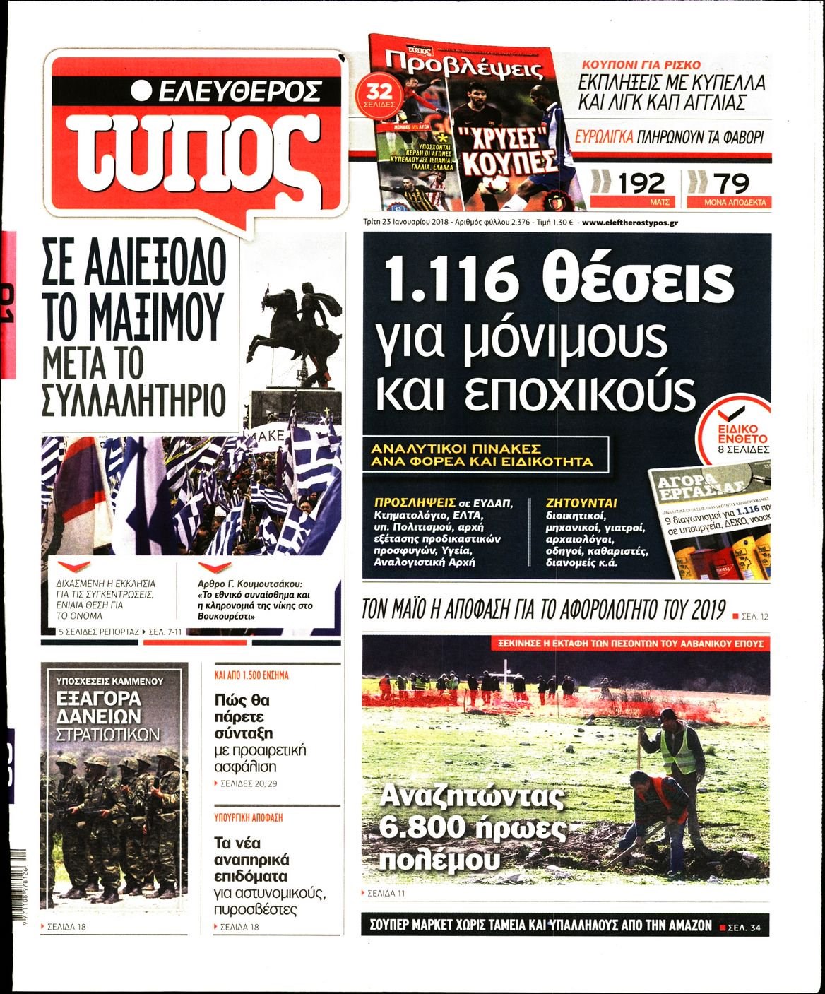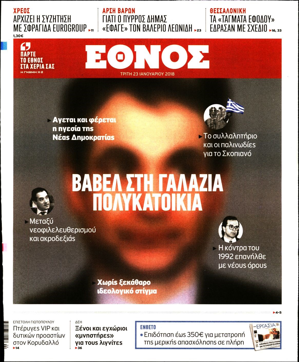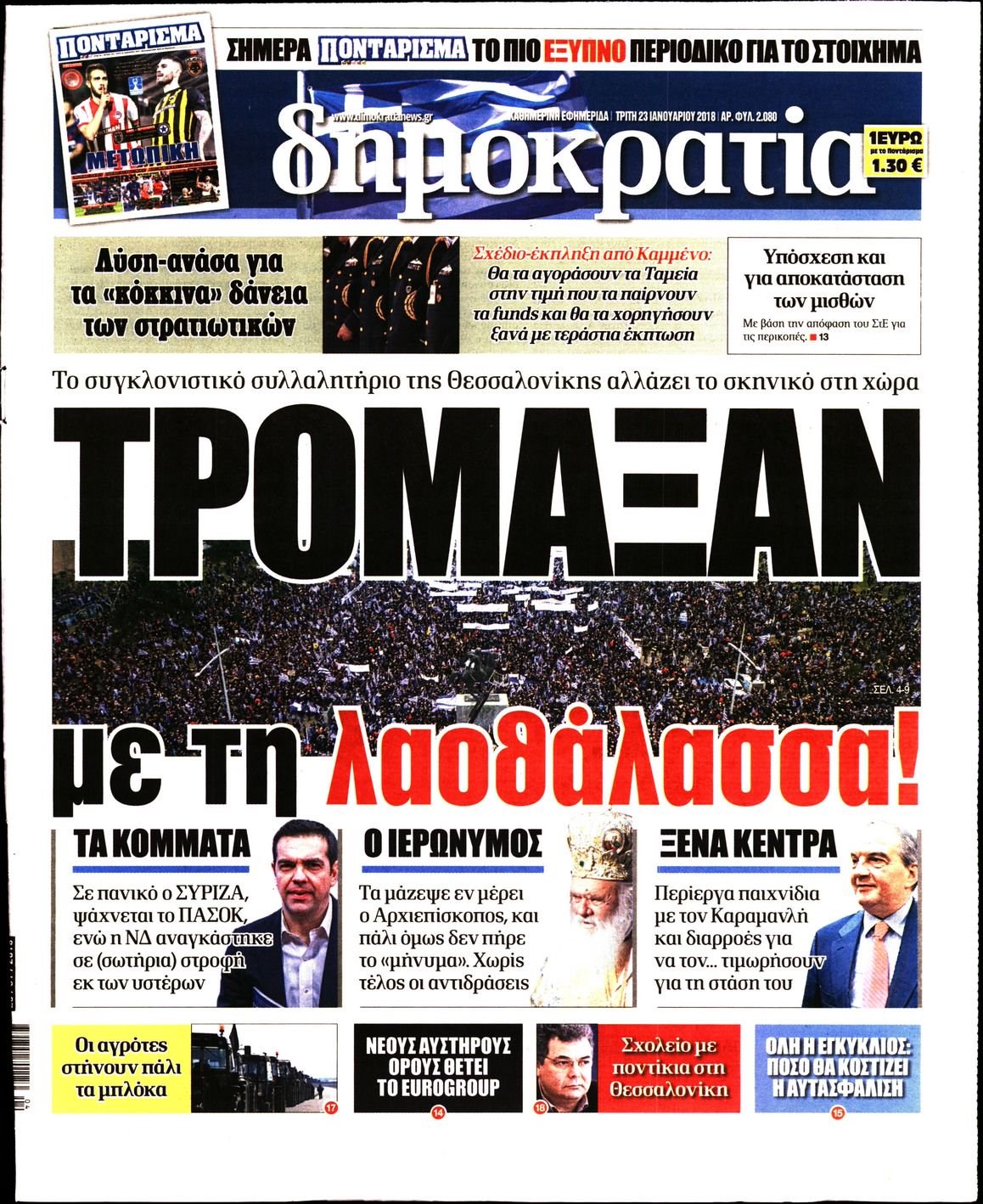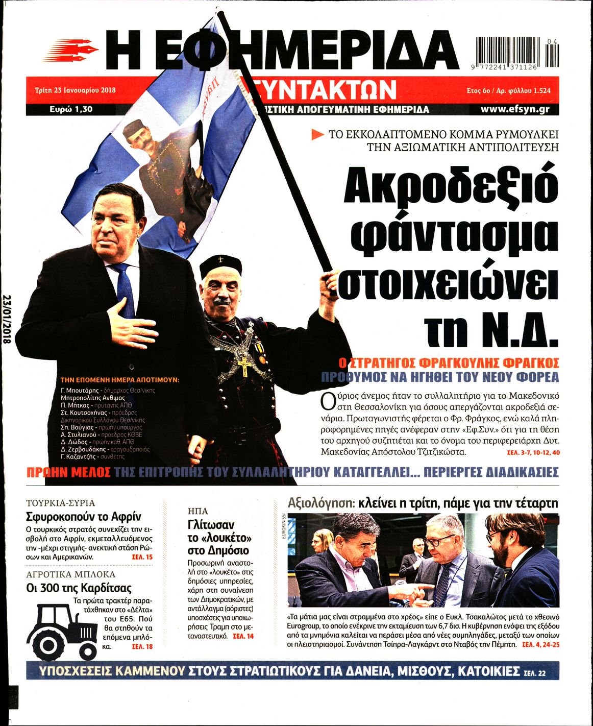 Οι πολιτικές εφημερίδες 23/1/2018 Enikos Newsroom 07:30, Τρίτη 23 Ιανουαρίου 2018 Media Διαβάστε τα σημερινά πρωτοσέλιδα των πολιτικών εφημερίδων: ΠΟΛΙΤΙΚΕΣ ΕΦΗΜΕΡΙΔΕΣ ΠΡΩΤΟΣΕΛΙΔΑ Μοιράσου το: σχολίασε κι εσύ (0 σχόλια) Ακολουθήστε το enikos.gr στο Google News και μάθετε πρώτοι όλες τις ειδήσεις Δείτε όλες τις τελευταίες ειδήσεις από την Ελλάδα και τον Κόσμο στο enikos.gr Ειδήσεις Ροή Ειδήσεων 3 ώρες πριν Χριστούγεννα στα μπλόκα: Επιμένουν στις κινητοποιήσεις τους οι αγρότες – Ανοίγουν τα διόδια το Σαββατοκύριακο 3 ώρες πριν Ουκρανία: Η άνευ προηγουμένου επίθεση σε ρωσικό τάνκερ στη Μεσόγειο και το μήνυμα προς στον Πούτιν – Το «μακρύ χέρι» του Κιέβου 2 ώρες πριν Πούτιν: Τα μηνύματα σε Ευρώπη και ΝΑΤΟ από το μαραθώνιο «σόου» του – Η απαίτηση για «σεβασμό» και η ειρήνη «με τους όρους» της Μόσχας 3 ώρες πριν Τραμπ: Δεν αποκλείει την πιθανότητα ενός πολέμου στη Βενεζουέλα – «Ο Μαδούρο ξέρει καλύτερα από τον καθένα τι ακριβώς θέλω» 4 ώρες πριν Συνεχίζει να προκαλεί ο Μίτσκοσκι: «Για μένα το όνομα Μακεδονία είναι ιερό» 2 ώρες πριν Ανακαλύφθηκαν αρχαία χρυσά νομίσματα 2.200 ετών που απεικονίζουν τον θεό Απόλλωνα – Η άγνωστη σύνδεση με τον Φίλιππο Β΄ της Μακεδονίας 3 ώρες πριν Ύπνος: Μια κρυφή κατάσταση του εγκεφάλου πριν από τον ύπνο μπορεί να είναι το “κλειδί” για υψηλή ευφυΐα και δημιουργικότητα 4 ώρες πριν Αριθμολογία: Οι άνθρωποι που έχουν γεννηθεί αυτές τις 4 ημερομηνίες, συχνά παρεξηγούνται – «Η καλοσύνη τους κρύβει τεράστια δύναμη» 5 ώρες πριν Ξεχάστε το καθάρισμα το Σαββατοκύριακο: Ο «κανόνας των 20 λεπτών» που θα σας λύσει τα χέρια 4 λεπτά πριν Συρία: Μαζικά πλήγματα των ΗΠΑ σε θέσεις του Ισλαμικού Κράτους – Χέγκσεθ: «Δεν είναι αρχή πολέμου, είναι μια δήλωση εκδίκησης» για το θάνατο των στρατιωτών μας 17 λεπτά πριν Ουκρανία: Ολοκληρώθηκαν οι συνομιλίες με τους Αμερικανούς κι Ευρωπαίους διαπραγματευτές 32 λεπτά πριν Μπαρτσελόνα – Μπασκόνια 134-124: Οι «μπλαουγκράνα» πήραν το ματς της χρονιάς ύστερα από τρεις παρατάσεις 47 λεπτά πριν Φαίη Σκορδά: «Παλιότερα τα κομπλιμέντα τα προσπερνούσα, τώρα τα έχω ανάγκη» 1 ώρα πριν Βασίλης Σπανούλης: Δεν εμφανίστηκε ούτε ένας δημοσιογράφος στην συνέντευξη Τύπου – «Καλησπέρα στον… κανέναν», δείτε βίντεο ENIKOS NETWORK Το ΕΚΑΒ τιμήθηκε από την Ακαδημία Αθηνών για τα 40 χρόνια προσφοράς του Έχετε πραγματικά μεγάλη καρδιά; 10 χαρακτηριστικά όσων έχουν καλοσύνη Αναστολή μέτρων αναγκαστικής εκτέλεσης για κτηνοτρόφους που πλήττονται από την ευλογιά των αιγοπροβάτων Πλήρης επάρκεια προϊόντων στις λαϊκές της Αττικής, παρά τις αγροτικές κινητοποιήσεις – Τι απαντούν οι πωλητές Χαρτογραφώντας το «σημείο χωρίς επιστροφή»: Για πρώτη φορά αποκαλύπτεται με λεπτομέρεια το ακανθώδες όριο της ατμόσφαιρας τ... Η Google καταργεί τη λειτουργία «dark web report» – Πώς θα μπορούν οι χρήστες να διαγράφουν τα δεδομένα τους περισσότερα 22:42 , Παρασκευή 19 Δεκεμβρίου 2025 Γιώργος Γιαννόπουλος για “Το σόι σου”: “Είναι ευτυχία και ευλογία αυτή η σειρά” «Είναι ευτυχία και ευλογία η συγκυρία αυτής της σειράς», θα πει ο Γιώργος Γιαννόπουλος -ο αγαπ... 20:37 , Παρασκευή 19 Δεκεμβρίου 2025 Don’t Forget The Lyrics: Η Έλλη Κοκκίνου υποδέχεται 4 παίκτες που θα κάνουν τα πάντα για να μη χάσουν ούτε… μισή λέξη από τους στίχους Το «Don’t Forget The Lyrics» επιστρέφει απόψε, Παρασκευή 19 Δεκεμβρίου, στις 21:00 με νέο επει... 19:31 , Παρασκευή 19 Δεκεμβρίου 2025 GNTM: Απόψε ο μεγάλος τελικός για τους 4 φιναλίστ Έπειτα από μήνες γεμά