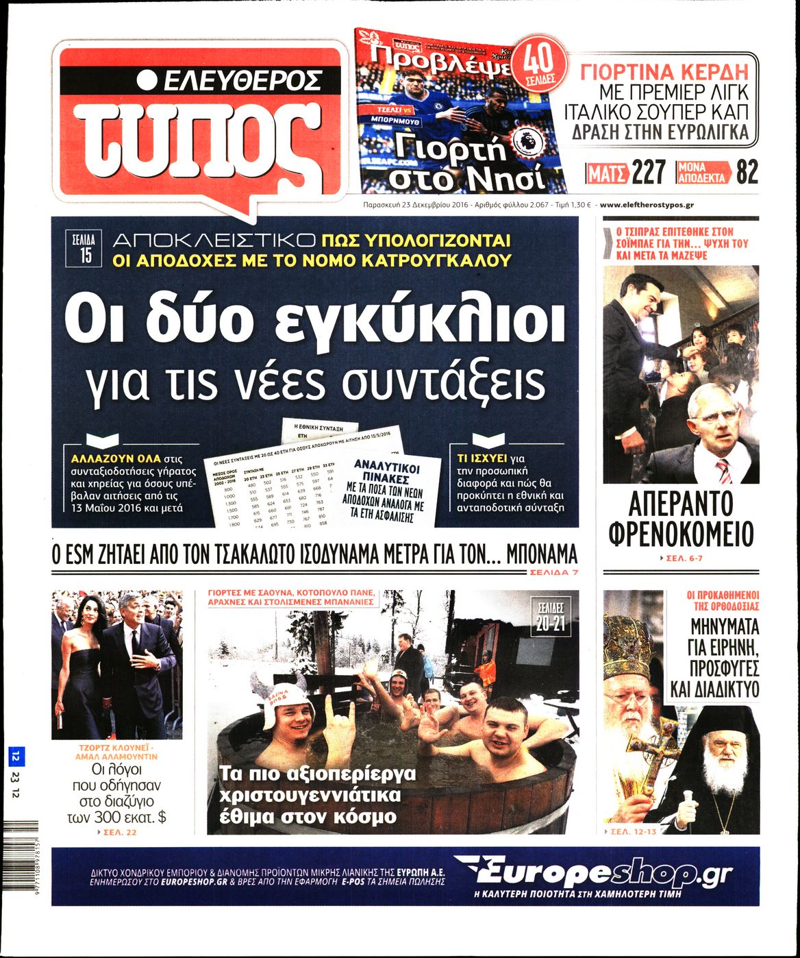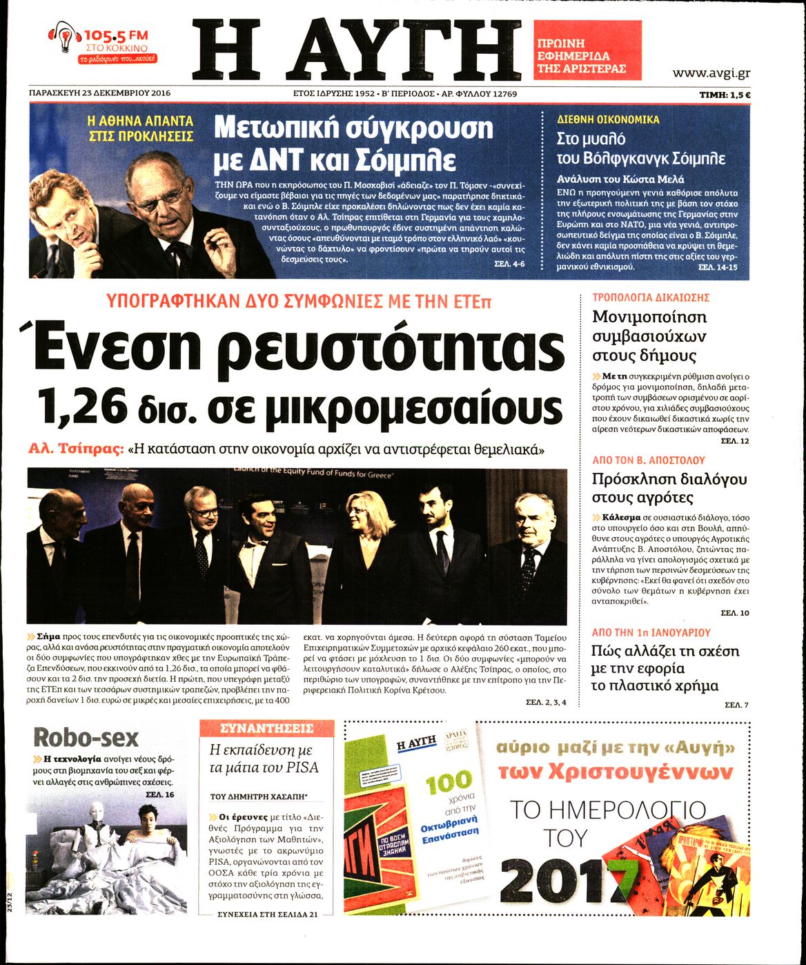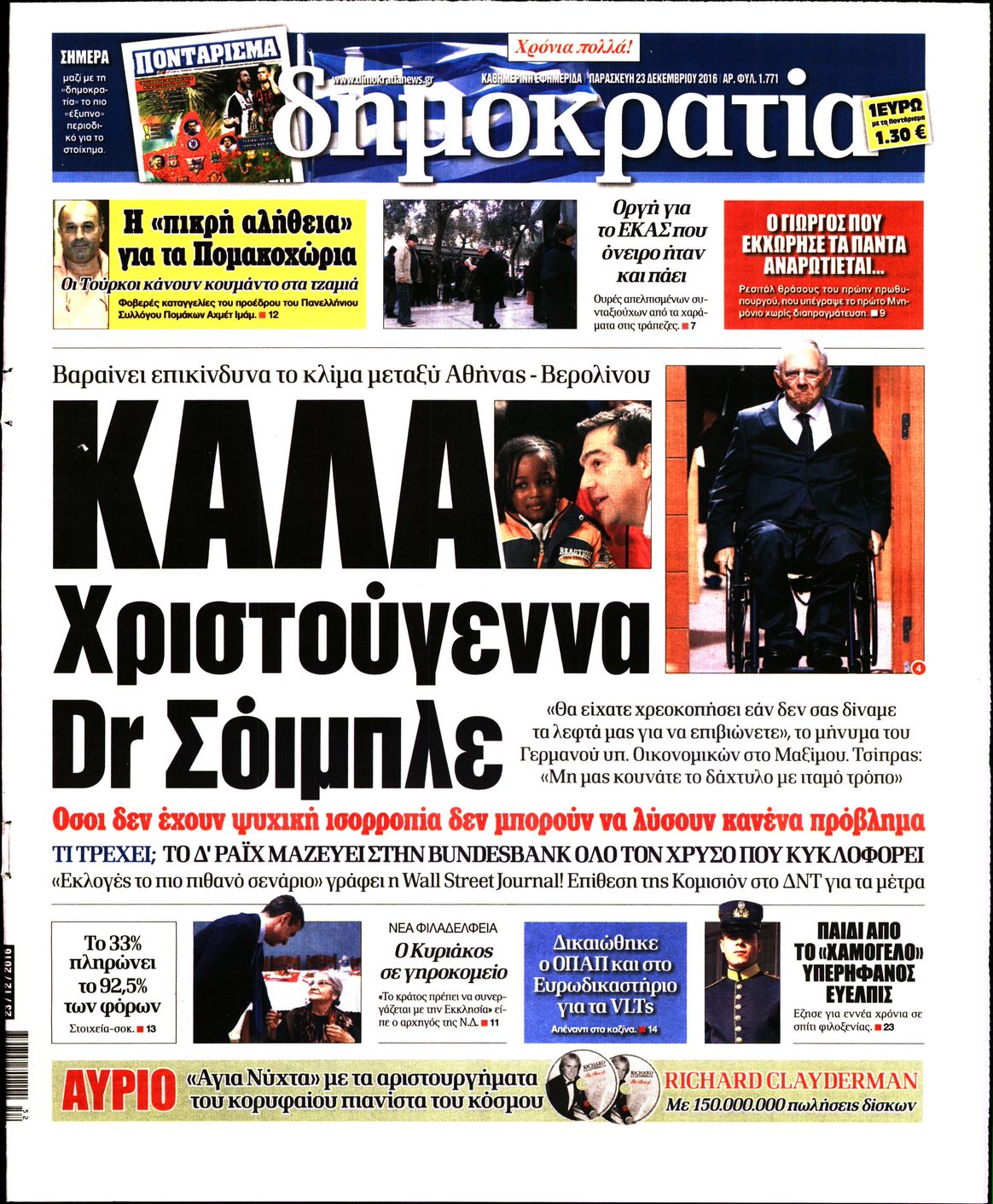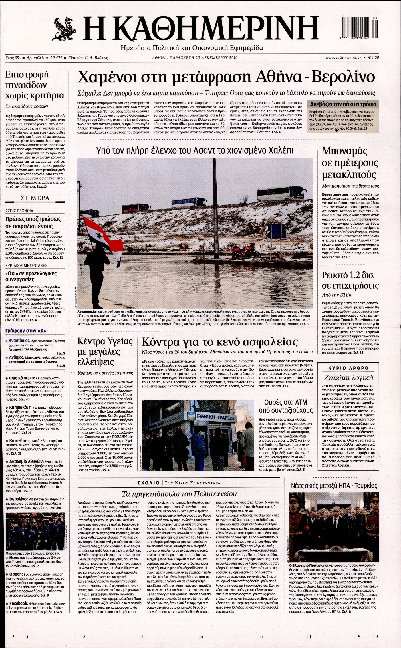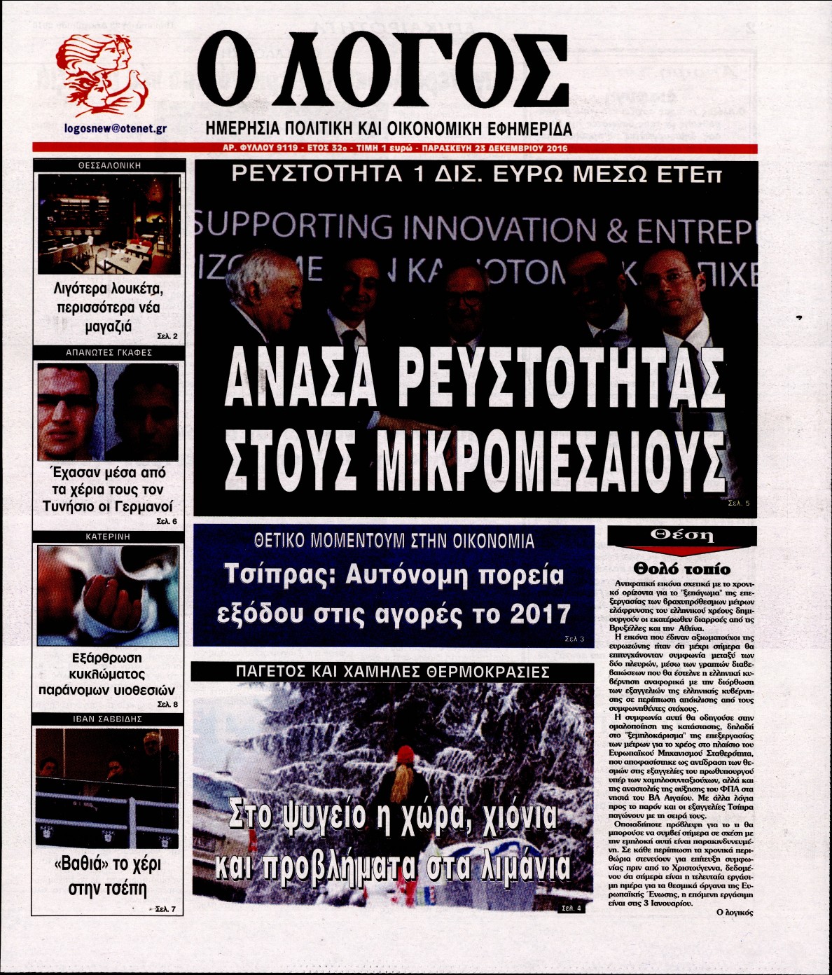 Οι πολιτικές εφημερίδες 23/12/2016 Enikos Newsroom 02:13, Παρασκευή 23 Δεκεμβρίου 2016 Media Διαβάστε τα σημερινά πρωτοσέλιδα των πολιτικών εφημερίδων: ΠΟΛΙΤΙΚΕΣ ΕΦΗΜΕΡΙΔΕΣ ΠΡΩΤΟΣΕΛΙΔΑ Μοιράσου το: σχολίασε κι εσύ (0 σχόλια) Ακολουθήστε το enikos.gr στο Google News και μάθετε πρώτοι όλες τις ειδήσεις Δείτε όλες τις τελευταίες ειδήσεις από την Ελλάδα και τον Κόσμο στο enikos.gr Ειδήσεις Ροή Ειδήσεων 3 ώρες πριν Ακίλα Σάλεχ: «Άκυρο» το τουρκολιβυκό μνημόνιο λέει ο πρόεδρος της λιβυκής Βουλής – Ανοίγει ο διάλογος με Ελλάδα, Αίγυπτο και Τουρκία 8 ώρες πριν Αγρότες: Την Τρίτη η απόφαση για διάλογο ή κλιμάκωση των κινητοποιήσεών τους – Πώς χαρακτηρίζουν τις ανακοινώσεις Τσιάρα και οι επόμενες κινήσεις 7 ώρες πριν Τραμπ για Ουκρανία: «Είμαστε πιο κοντά σε συμφωνία από ποτέ» – «Πολυεθνική δύναμη» προτείνουν οι Ευρωπαίοι 7 ώρες πριν Κυψέλη: Η 16χρονη που μαχαίρωσε την 14χρονη είχε συλληφθεί 3 φορές στο παρελθόν – Έβριζε καθηγητές, έβαζε φωτιές σε κάδους και εκβίαζε συμμαθητές της 7 ώρες πριν Τρομοκρατική επίθεση στο Σίδνεϊ: Θλίψη για τα 15 θύματα – Οργή στην εβραϊκή κοινότητα που προειδοποιούσε επί δύο χρόνια 7 ώρες πριν Επιστήμονες ίσως έλυσαν το μυστήριο γύρω από τα Χόμπιτ – Νέα έρευνα αποκαλύπτει πώς εξαφανίστηκαν 8 ώρες πριν Ύπνος: Η αρχαία μορφή άσκησης που αποδεικνύεται αποτελεσματική στην αντιμετώπιση της αϋπνίας, σύμφωνα με μελέτη 9 ώρες πριν Αριθμολογία: Ο τυχερός σας αριθμός, ανάλογα με τον μήνα γέννησής σας 10 ώρες πριν Πώς να μην μαραίνονται γρήγορα τα κομμένα λουλούδια: Το λάθος στην τοποθέτηση του βάζου που πρέπει να αποφεύγετε 35 δευτερόλεπτα πριν Δώρο Χριστουγέννων 2025: Ποιοι εργαζόμενοι το δικαιούνται – Η online εφαρμογή της ΓΣΕΕ για να το υπολογίσετε 9 λεπτά πριν Υψηλή χοληστερίνη: Γιατρός αποκαλύπτει δύο τρόπους για να την μειώσετε χωρίς φαρμακευτική αγωγή 16 λεπτά πριν Σαν σήμερα 16 Δεκεμβρίου: Τα σημαντικότερα γεγονότα της ημέρας 21 λεπτά πριν Οι οικονομικές εφημερίδες 16/12/2025 26 λεπτά πριν Οι αθλητικές εφημερίδες 16/12/2025 ENIKOS NETWORK Πότε το χρόνιο ροχαλητό να αποτελέσει ένδειξη κινδύνου για την καρδιά; Τι λένε οι ειδικοί Μάριος Θεμιστοκλέους: Το ΕΣΥ ενισχύεται, εκσυγχρονίζεται, αλλάζει ΕΒΕΠ για αγροτικές κινητοποιήσεις: Κάθε επιπλέον εβδομάδα προσθέτει περίπου 200 εκατ. ευρώ ζημιά Τι προβλέπει το νομοσχέδιο του υπουργείου Εθνικής Άμυνας – Oι αλλαγές στους μισθούς Σύγχρονος Νοστράδαμος: Προειδοποιεί για «μεγάλο γεγονός» τους επόμενους μήνες που θα συγκλονίσει τη Βρετανία και τον κόσμο Τεστ παρατηρητικότητας: Μπορείτε να βρείτε τις 3 διαφορές στις εικόνες με έναν πιγκουίνο σε 14 δευτερόλεπτα περισσότερα 05:48 , Τρίτη 16 Δεκεμβρίου 2025 Οι οικονομικές εφημερίδες 16/12/2025 Διαβάστε τα πρωτοσέλιδα από τις οικονομικές εφημερίδες, σήμερα 16/12/2025. 05:43 , Τρίτη 16 Δεκεμβρίου 2025 Οι αθλητικές εφημερίδες 16/12/2025 Διαβάστε τα πρωτοσέλιδα από τις αθλητικές εφημερίδες, σήμερα 16/12/2025. 05:38 , Τρίτη 16 Δεκεμβρίου 2025 Οι πολιτικές εφημερίδες 16/12/2025 Διαβάστε τα πρωτοσέλιδα από τις πολιτικές εφημερίδες, σήμερα 16/12/2025. 21:35 , Δευτέρα 15 Δεκεμβρίου 2025 Το Σπίτι Δίπλα Στο Ποτάμι: Η Ιουλία και ο Φωκάς μετακομίζουν στη Ρόδο – Δύο νέοι χαρακτήρες μπαίνουν στη σειρά Δύο νέοι, κομβικοί χαρακτήρες κάνουν την εμφάνισή τους αυτή την εβδομάδα στην αγαπημένη σειρά ... ΤΕΛΕΥΤΑΙΕΣ ΕΙΔΗΣΕΙΣ 9 λεπτά πριν Υψηλή χοληστερίνη: Γιατρός αποκαλύπτει δύο τρόπους... 16 λεπτά πριν Σαν σήμερα 16 Δεκεμβρίου: Τα σημαντικότερα γεγονότα... 21 λεπτά 