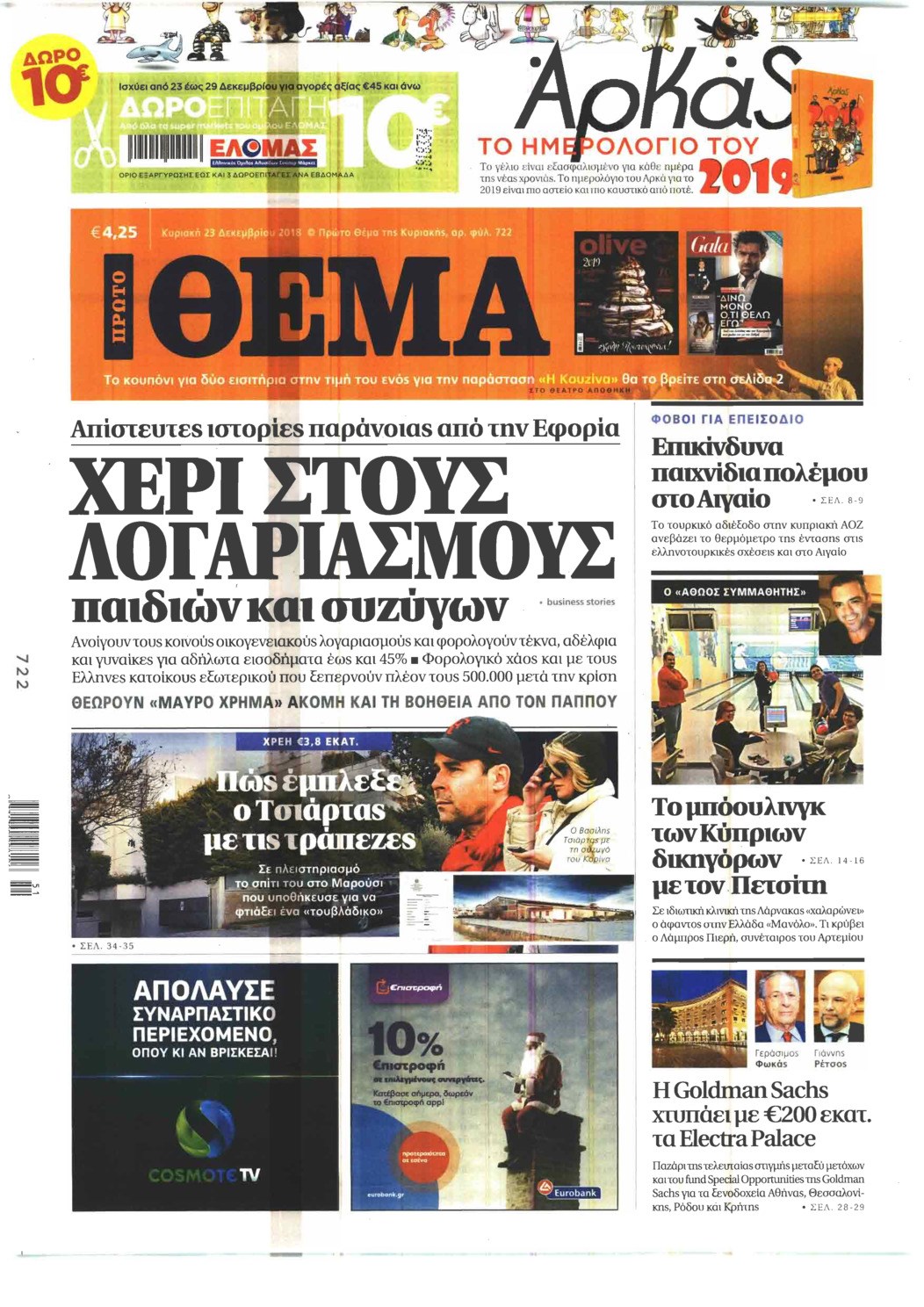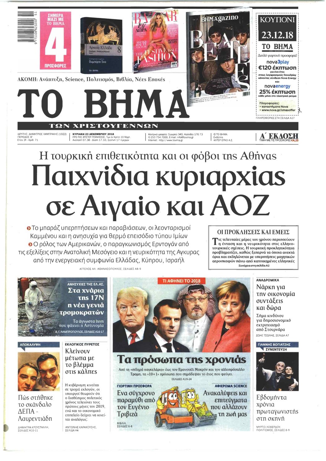 Οι πολιτικές εφημερίδες 23/12/2018 Κώστας Τεό 06:29, Κυριακή 23 Δεκεμβρίου 2018 Media Διαβάστε τα πρωτοσέλιδα των πολιτικών εφημερίδων: ΠΟΛΙΤΙΚΕΣ ΕΦΗΜΕΡΙΔΕΣ ΠΡΩΤΟΣΕΛΙΔΑ Μοιράσου το: σχολίασε κι εσύ (0 σχόλια) Ακολουθήστε το enikos.gr στο Google News και μάθετε πρώτοι όλες τις ειδήσεις Δείτε όλες τις τελευταίες ειδήσεις από την Ελλάδα και τον Κόσμο στο enikos.gr Ειδήσεις Ροή Ειδήσεων 2 ώρες πριν Γιορτές με μπλόκα για τους αγρότες: Ανοίγουν διόδια και μοιράζουν προϊόντα στους ταξιδιώτες 10 λεπτά πριν Τσιάρας για αγρότες: Ικανοποιείται το αίτημα για αφορολόγητο πετρέλαιο στη μάνικα, πρόθεσή μας να μειωθεί ακόμη περισσότερο η τιμή στο ρεύμα 24 λεπτά πριν Αρχεία Έπσταϊν: Οι συγκλονιστικές φωτογραφίες – Ο Μάικλ Τζάκσον, ο Μικ Τζάγκερ και ο Κέβιν Σπέισι ανάμεσα στους διάσημους που απεικονίζονται 2 ώρες πριν Νέες ταυτότητες: Μεγάλη αναμονή για ραντεβού στην Αττική – Τέλος τα ταξίδια εκτός Ελλάδος από τον Αύγουστο για όσους δεν έχουν αλλάξει 56 λεπτά πριν Ινδία: Επτά ελέφαντες σκοτώθηκαν κατά τη σύγκρουση επιβατικού τρένου με κοπάδι 3 ώρες πριν Μία νέα «χρυσή» περίοδος αρχίζει για 3 ζώδια από σήμερα – «Μία αναπάντεχη ευκαιρία οδηγεί στην επιτυχία» 5 ώρες πριν Αρχαιολόγοι ανακάλυψαν σε χωράφι απεικόνιση 600 ετών ενός Αγίου – Τα στοιχεία που δείχνουν ότι μαρτύρησε 4 ώρες πριν Αγχώνεται για το χριστουγεννιάτικο δώρο που πήρε στην πλούσια σύντροφό του – «Φοβάμαι πως θα το βρει φθηνιάρικο, φοράει βραχιόλια Cartier» 53 λεπτά πριν Διαιτολόγος αποκαλύπτει 9 πρωινές συνήθειες που «λιώνουν» το κοιλιακό λίπος – «Υποστηρίζουν την υγιεινή απώλεια βάρους» 10 λεπτά πριν Τσιάρας για αγρότες: Ικανοποιείται το αίτημα για αφορολόγητο πετρέλαιο στη μάνικα, πρόθεσή μας να μειωθεί ακόμη περισσότερο η τιμή στο ρεύμα 17 λεπτά πριν Η Ζιζέλ Μπούντχεν παντρεύτηκε τον δάσκαλο ζίου-ζίτσου, Χοακίμ Βαλέντε 24 λεπτά πριν Αρχεία Έπσταϊν: Οι συγκλονιστικές φωτογραφίες – Ο Μάικλ Τζάκσον, ο Μικ Τζάγκερ και ο Κέβιν Σπέισι ανάμεσα στους διάσημους που απεικονίζονται 33 λεπτά πριν Χρήστος Μάντακας: «Θα μπορούσα να είχα φύγει από τη ζωή, δεν μπορούσα να περπατήσω…» 40 λεπτά πριν Εντυπωσιακό βίντεο από «τσουνάμι» πάγου στη Σιβηρία – Πώς προκαλείται το σπάνιο φαινόμενο ENIKOS NETWORK Είστε μόνιμα απρόσεκτοι; 3 σημάδια που δείχνουν ότι μπορεί να είναι σύμπτωμα πάθησης Πόσα κιλά παίρνουμε πραγματικά τα Χριστούγεννα, σύμφωνα με την επιστήμη – Πώς να το αποτρέψουμε; Χρήστος Δήμας: Στα 2,5 εκατ. ευρώ την ημέρα το κόστος από το άνοιγμα των διοδίων από τους αγρότες – Θα αξιώσουν αποζημίωση ... Χριστούγεννα και Πρωτοχρονιά: Πώς αμείβονται όσοι εργαστούν Χαρτογραφώντας το «σημείο χωρίς επιστροφή»: Για πρώτη φορά αποκαλύπτεται με λεπτομέρεια το ακανθώδες όριο της ατμόσφαιρας τ... Η Google καταργεί τη λειτουργία «dark web report» – Πώς θα μπορούν οι χρήστες να διαγράφουν τα δεδομένα τους περισσότερα 11:41 , Σάββατο 20 Δεκεμβρίου 2025 «Η αγάπη δεν χάνεται ποτέ»: Η μικρού μήκους ταινία κινουμένων σχεδίων που θέτει ερωτήματα για τη ζωή και τον θάνατο Ο θάνατος είναι ένα από τα πιο σκληρά θέματα που καλείται να διαχειριστεί κάποιος στη διάρκεια... 09:30 , Σάββατο 20 Δεκεμβρίου 2025 «Porto Leone: Στη γειτονιά με τα κόκκινα φανάρια» – Ο Χρόνης αποκαλύπτει στην Αλεξάνδρα το μυστικό για το παιδί της Λένας Η μεγάλη δραματική σειρά του Apha «Porto Leone: Στη γειτονιά με τα κόκκινα φανάρια» μας μεταφέ... 08:14 , Σάββατο 20 Δεκεμβρίου 2025 Τρομεροί γονείς: Η Μαρία Καβογιάννη εισβάλλει