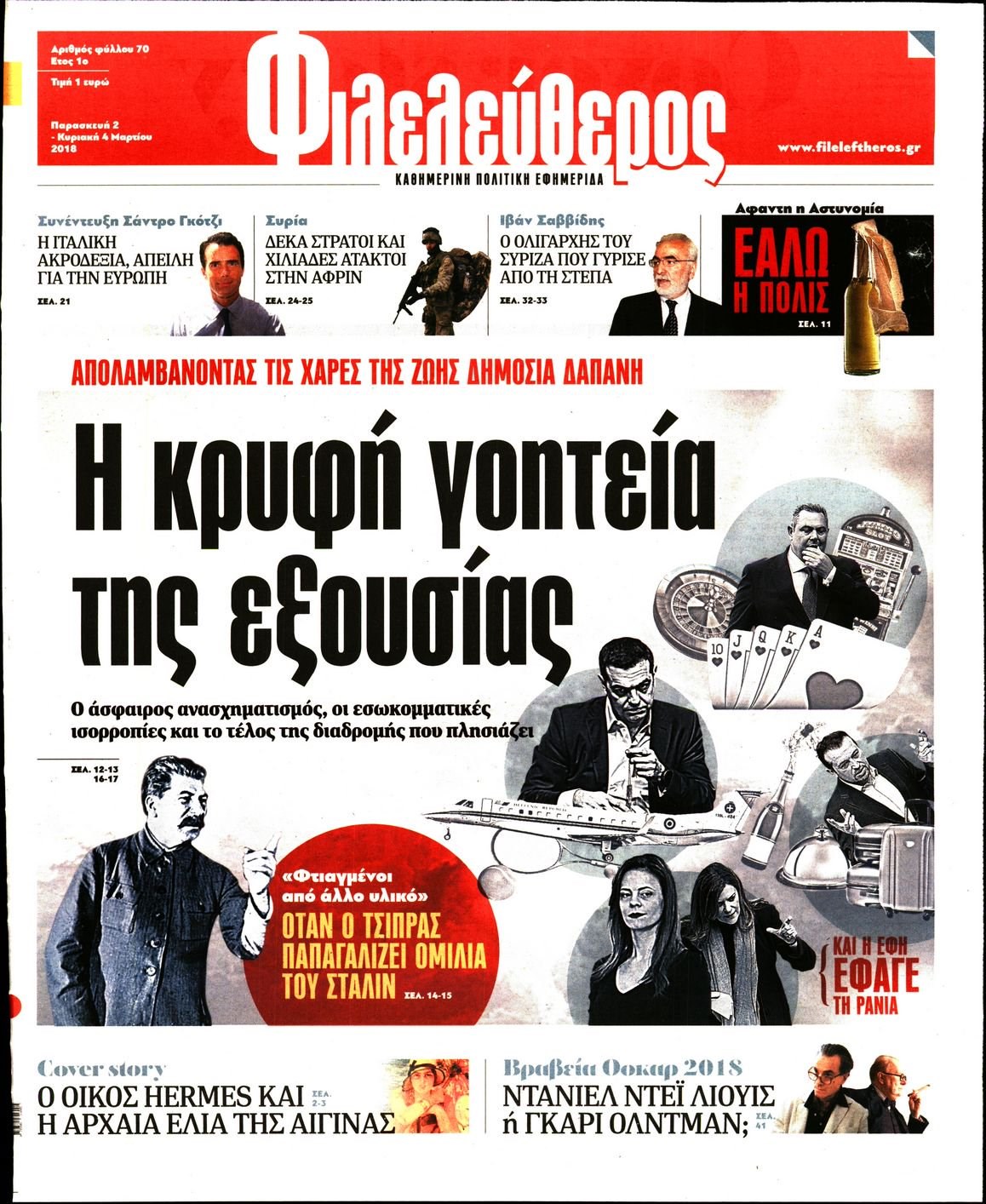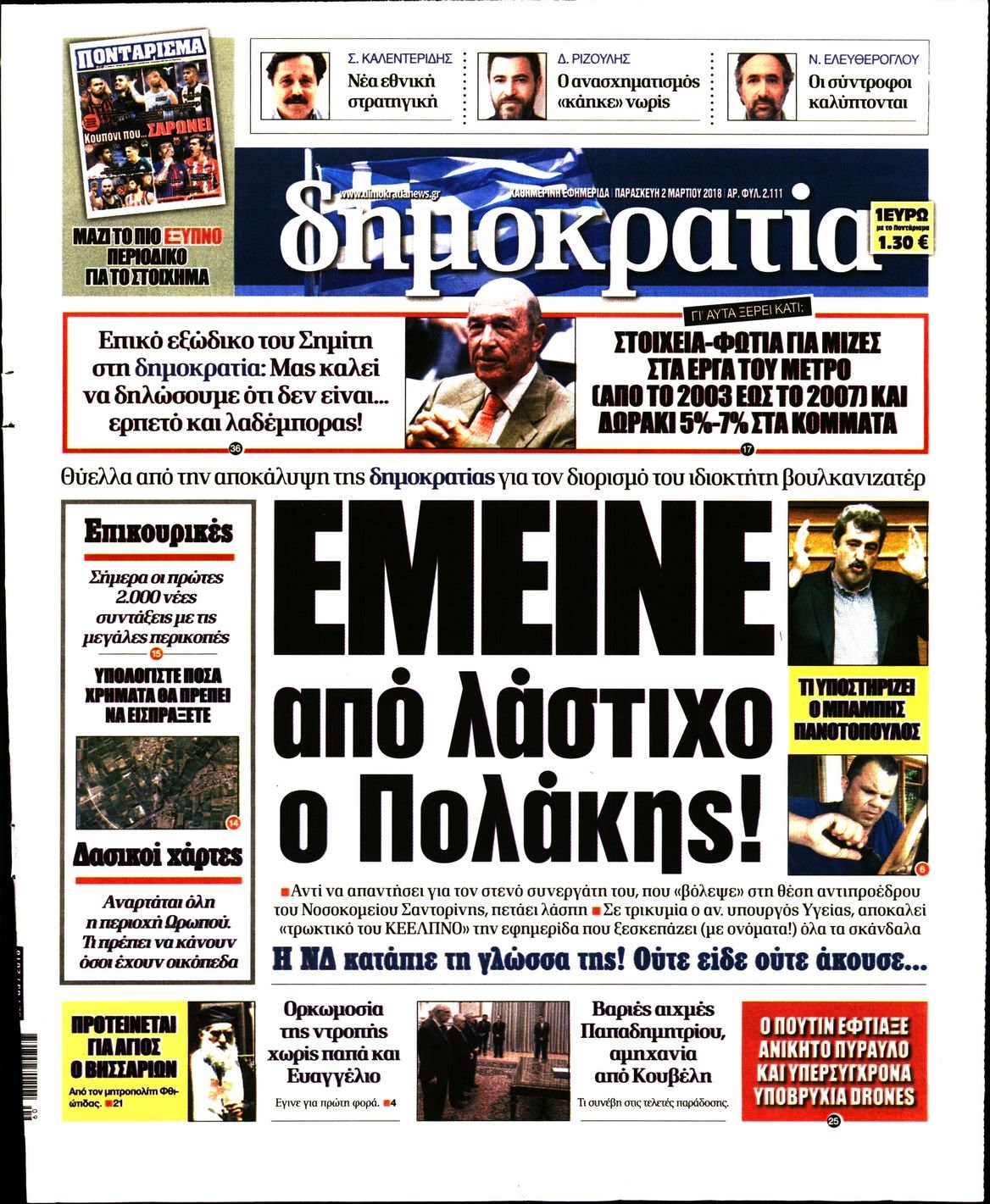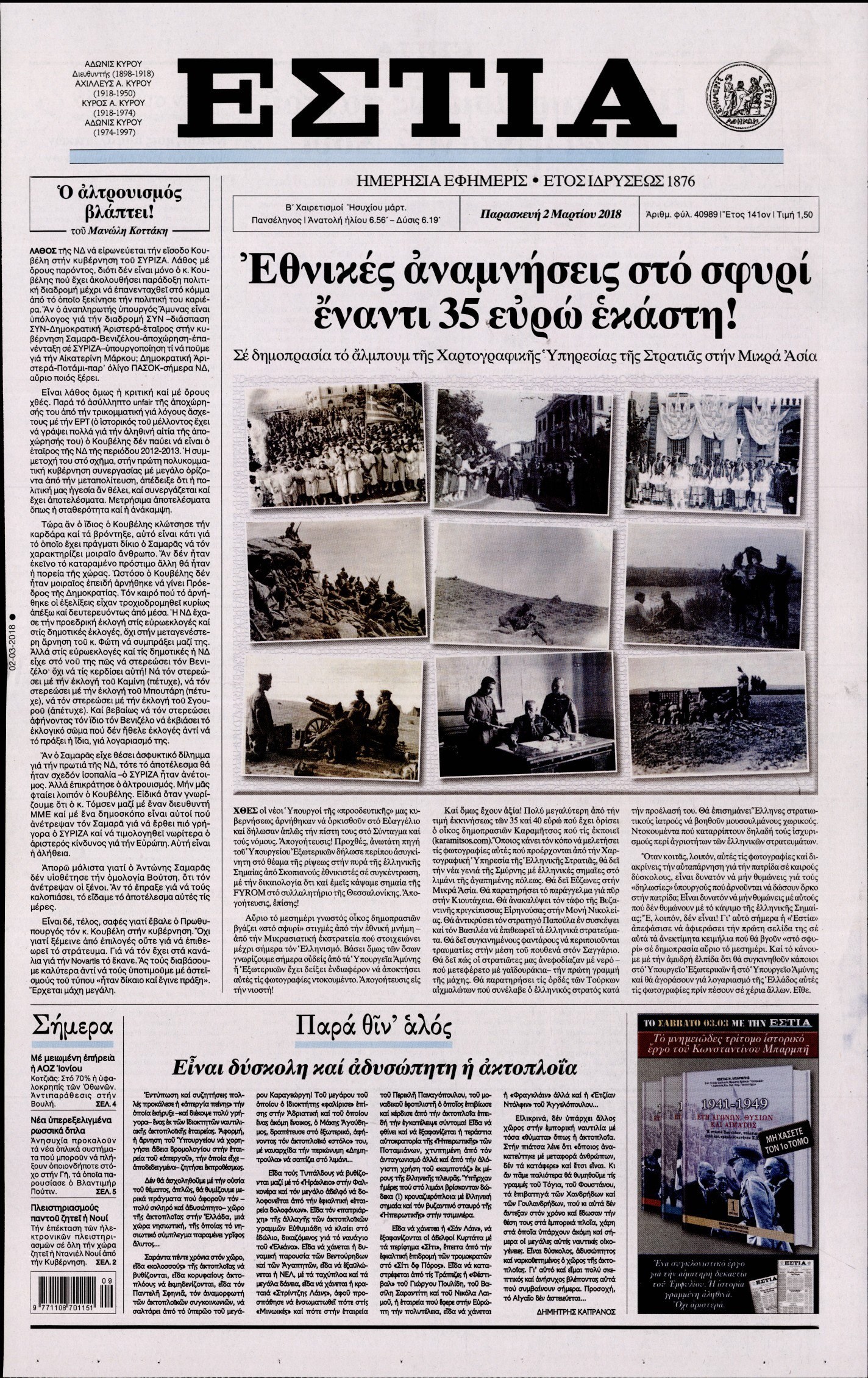 Οι πολιτικές εφημερίδες 2/3/2018 Enikos Newsroom 07:41, Παρασκευή 02 Μαρτίου 2018 Media Διαβάστε τα σημερινά πρωτοσέλιδα των πολιτικών εφημερίδων: ΠΟΛΙΤΙΚΕΣ ΕΦΗΜΕΡΙΔΕΣ ΠΡΩΤΟΣΕΛΙΔΑ Μοιράσου το: σχολίασε κι εσύ (0 σχόλια) Ακολουθήστε το enikos.gr στο Google News και μάθετε πρώτοι όλες τις ειδήσεις Δείτε όλες τις τελευταίες ειδήσεις από την Ελλάδα και τον Κόσμο στο enikos.gr Ειδήσεις Ροή Ειδήσεων 2 ώρες πριν Γιορτές με μπλόκα για τους αγρότες: Ανοίγουν διόδια και μοιράζουν προϊόντα στους ταξιδιώτες 11 λεπτά πριν Τσιάρας για αγρότες: Ικανοποιείται το αίτημα για αφορολόγητο πετρέλαιο στη μάνικα, πρόθεσή μας να μειωθεί ακόμη περισσότερο η τιμή στο ρεύμα 26 λεπτά πριν Αρχεία Έπσταϊν: Οι συγκλονιστικές φωτογραφίες – Ο Μάικλ Τζάκσον, ο Μικ Τζάγκερ και ο Κέβιν Σπέισι ανάμεσα στους διάσημους που απεικονίζονται 2 ώρες πριν Νέες ταυτότητες: Μεγάλη αναμονή για ραντεβού στην Αττική – Τέλος τα ταξίδια εκτός Ελλάδος από τον Αύγουστο για όσους δεν έχουν αλλάξει 58 λεπτά πριν Ινδία: Επτά ελέφαντες σκοτώθηκαν κατά τη σύγκρουση επιβατικού τρένου με κοπάδι 3 ώρες πριν Μία νέα «χρυσή» περίοδος αρχίζει για 3 ζώδια από σήμερα – «Μία αναπάντεχη ευκαιρία οδηγεί στην επιτυχία» 5 ώρες πριν Αρχαιολόγοι ανακάλυψαν σε χωράφι απεικόνιση 600 ετών ενός Αγίου – Τα στοιχεία που δείχνουν ότι μαρτύρησε 4 ώρες πριν Αγχώνεται για το χριστουγεννιάτικο δώρο που πήρε στην πλούσια σύντροφό του – «Φοβάμαι πως θα το βρει φθηνιάρικο, φοράει βραχιόλια Cartier» 55 λεπτά πριν Διαιτολόγος αποκαλύπτει 9 πρωινές συνήθειες που «λιώνουν» το κοιλιακό λίπος – «Υποστηρίζουν την υγιεινή απώλεια βάρους» 11 λεπτά πριν Τσιάρας για αγρότες: Ικανοποιείται το αίτημα για αφορολόγητο πετρέλαιο στη μάνικα, πρόθεσή μας να μειωθεί ακόμη περισσότερο η τιμή στο ρεύμα 18 λεπτά πριν Η Ζιζέλ Μπούντχεν παντρεύτηκε τον δάσκαλο ζίου-ζίτσου, Χοακίμ Βαλέντε 26 λεπτά πριν Αρχεία Έπσταϊν: Οι συγκλονιστικές φωτογραφίες – Ο Μάικλ Τζάκσον, ο Μικ Τζάγκερ και ο Κέβιν Σπέισι ανάμεσα στους διάσημους που απεικονίζονται 34 λεπτά πριν Χρήστος Μάντακας: «Θα μπορούσα να είχα φύγει από τη ζωή, δεν μπορούσα να περπατήσω…» 42 λεπτά πριν Εντυπωσιακό βίντεο από «τσουνάμι» πάγου στη Σιβηρία – Πώς προκαλείται το σπάνιο φαινόμενο ENIKOS NETWORK Γήρανση του εγκεφάλου: Νευροεπιστήμονες ανακάλυψαν τη 10λεπτη δραστηριότητα που μπορεί να τη σταματήσει Είστε μόνιμα απρόσεκτοι; 3 σημάδια που δείχνουν ότι μπορεί να είναι σύμπτωμα πάθησης Χρήστος Δήμας: Στα 2,5 εκατ. ευρώ την ημέρα το κόστος από το άνοιγμα των διοδίων από τους αγρότες – Θα αξιώσουν αποζημίωση ... Χριστούγεννα και Πρωτοχρονιά: Πώς αμείβονται όσοι εργαστούν Χαρτογραφώντας το «σημείο χωρίς επιστροφή»: Για πρώτη φορά αποκαλύπτεται με λεπτομέρεια το ακανθώδες όριο της ατμόσφαιρας τ... Η Google καταργεί τη λειτουργία «dark web report» – Πώς θα μπορούν οι χρήστες να διαγράφουν τα δεδομένα τους περισσότερα 11:41 , Σάββατο 20 Δεκεμβρίου 2025 «Η αγάπη δεν χάνεται ποτέ»: Η μικρού μήκους ταινία κινουμένων σχεδίων που θέτει ερωτήματα για τη ζωή και τον θάνατο Ο θάνατος είναι ένα από τα πιο σκληρά θέματα που καλείται να διαχειριστεί κάποιος στη διάρκεια... 09:30 , Σάββατο 20 Δεκεμβρίου 2025 «Porto Leone: Στη γειτονιά με τα κόκκινα φανάρια» – Ο Χρόνης αποκαλύπτει στην Αλεξάνδρα το μυστικό για το παιδί της Λένας Η μεγάλη δραματική σειρά του Apha «Porto Leone: Στη γειτονιά με τα κόκκινα φανάρια» μας μεταφέ... 08:14 , Σάββατο 20 Δεκεμβρίου 2025 Τρομεροί γονείς: Η Μαρία Καβογιάν