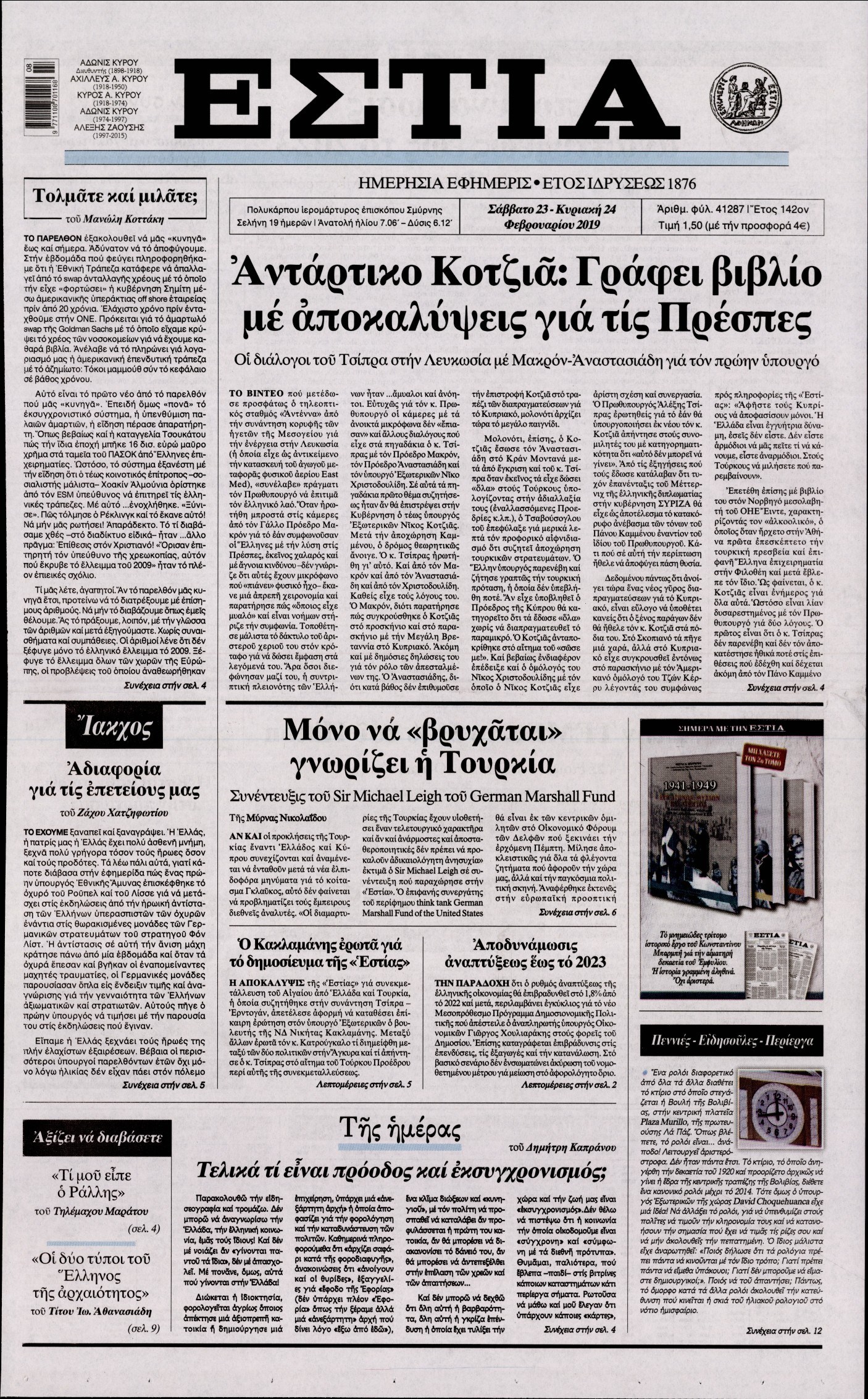 Οι πολιτικές εφημερίδες 23/2/19 Enikos Newsroom 06:21, Σάββατο 23 Φεβρουαρίου 2019 Media Διαβάστε τα πρωτοσέλιδα των πολιτικών εφημερίδων: ΠΟΛΙΤΙΚΕΣ ΕΦΗΜΕΡΙΔΕΣ ΠΡΩΤΟΣΕΛΙΔΑ Μοιράσου το: σχολίασε κι εσύ (0 σχόλια) Ακολουθήστε το enikos.gr στο Google News και μάθετε πρώτοι όλες τις ειδήσεις Δείτε όλες τις τελευταίες ειδήσεις από την Ελλάδα και τον Κόσμο στο enikos.gr Ειδήσεις Ροή Ειδήσεων 7 ώρες πριν Χριστούγεννα στα μπλόκα οι αγρότες: Άνοιξαν στα διόδια και μοίρασαν προϊόντα στους πολίτες – Νέα σύσκεψη την Κυριακή στη Νίκαια 5 ώρες πριν Ρετζέπ Ταγίπ Ερντογάν: Δεν έχουμε καμία βλέψη στα εδάφη ή την κυριαρχία κανενός – Δεν θα επιτρέψουμε να παραβιαστούν τα δικαιώματά μας 6 ώρες πριν H ακτοφυλακή των ΗΠΑ κατάσχεσε και δεύτερο τάνκερ στα ανοιχτά της Βενεζουέλας – Δείτε βίντεο 7 ώρες πριν Κύκλωμα διακίνησης ναρκωτικών σε σχολεία: Τηλεφωνούσαν στους ανηλίκους την ώρα του μαθήματος – Οι διάλογοι-σοκ, τα «ψευδώνυμα» και τα βασανιστήρια 7 ώρες πριν Αρχεία Επστάιν: Οι 500 σελίδες που λείπουν, τα αναπάντητα ερωτήματα και οι επώνυμοι – Τι έπεται 7 ώρες πριν Αποκαλύφθηκε το άγνωστο «GPS» της αρχαιότητας – Πώς οι ναοί «φώτιζαν» τον δρόμο των ναυτικών πριν από την εφεύρεση των φάρων 8 ώρες πριν Ύπνος: Η διατροφή που μπορεί να σας βοηθήσει να κοιμάστε καλύτερα και να ζήσετε περισσότερο 9 ώρες πριν Αριθμολογία: Ο αριθμός του φύλακα αγγέλου σας, με βάση τον μήνα γέννησής σας – «Έτσι σας στέλνει σημάδια το σύμπαν» 21 ώρες πριν Enerwave: Το νέο «ρεύμα» στη λιανική ενέργειας που αλλάζει την εμπειρία του καταναλωτή 2 λεπτά πριν Οι αθλητικές εφημερίδες 21/12/2025 10 λεπτά πριν Οι πολιτικές εφημερίδες 21/12/2025 18 λεπτά πριν Τα ζώδια σήμερα, Κυριακή 21 Δεκεμβρίου: Αιγόκεροι, αποφασίζετε για το επόμενο κεφάλαιο της ζωής σας 26 λεπτά πριν Εφημερεύοντα φαρμακεία σε Αθήνα και Θεσσαλονίκη (21/12) 34 λεπτά πριν Γιαννούλης Λαρεντζάκης: Πρόταση γάμου στην αρραβωνιαστικιά του, Γιώτα Γεωργοπούλου, έκανε ο παίκτης του Ολυμπιακού – Δείτε φωτογραφίες και βίντεο ENIKOS NETWORK Οι γυναίκες αποκαλύπτουν το πιο ελκυστικό πράγμα που μπορεί να κάνει ένας άνδρας Ομορφιά και αντιγήρανση: Ειδικοί μιλούν για συσκευές περιποίησης του δέρματος «Πολεμική» προετοιμασία από την ευρωπαϊκή βιομηχανία ενέργειας – Η Eurelectric ζητεί «ομπρέλα» προστασίας για τις υποδομές Ακύρωση ΑΦΜ για απάτες – Ποιους βάζει στο στόχαστρο η ΑΑΔΕ Χαρτογραφώντας το «σημείο χωρίς επιστροφή»: Για πρώτη φορά αποκαλύπτεται με λεπτομέρεια το ακανθώδες όριο της ατμόσφαιρας τ... Η Google καταργεί τη λειτουργία «dark web report» – Πώς θα μπορούν οι χρήστες να διαγράφουν τα δεδομένα τους περισσότερα 05:46 , Κυριακή 21 Δεκεμβρίου 2025 Οι αθλητικές εφημερίδες 21/12/2025 Διαβάστε τα πρωτοσέλιδα από τις αθλητικές εφημερίδες, σήμερα 21/12/2025. 05:38 , Κυριακή 21 Δεκεμβρίου 2025 Οι πολιτικές εφημερίδες 21/12/2025 Διαβάστε τα πρωτοσέλιδα από τις πολιτικές εφημερίδες, σήμερα 21/12/2025. 05:08 , Κυριακή 21 Δεκεμβρίου 2025 Σήμερα με τη Realnews: Δωροεπιταγή 10€ Δωροεπιταγή αξίας 10€ για αγορές άνω των 60€ από τα πολυκαταστήματα FactoryOutlet H προσφορά ι... 04:08 , Κυριακή 21 Δεκεμβρίου 2025 Σήμερα με τη Realnews: Ό,τι και αν αγοράσεις, σκανάρεις και κερδίζεις! Σήμερα με τη Realnews: Ό,τι και αν αγοράσεις, σκανάρεις και κερδίζεις! Με το PADU app, το κορυ... ΤΕΛΕΥΤΑΙΕΣ ΕΙΔΗΣΕΙΣ 2 λεπτά πριν Οι αθλητικές εφημερίδες 21/12/2025 10 λεπτά πριν Οι πολιτικές εφημερίδες 21/12/2025 18 λεπτά πριν Τα ζώδια σήμερα, Κυριακή 21 Δεκεμβρίου: Αιγόκεροι,... 26 λεπτά πριν Εφημερεύοντα φαρμακεία σε Αθήνα