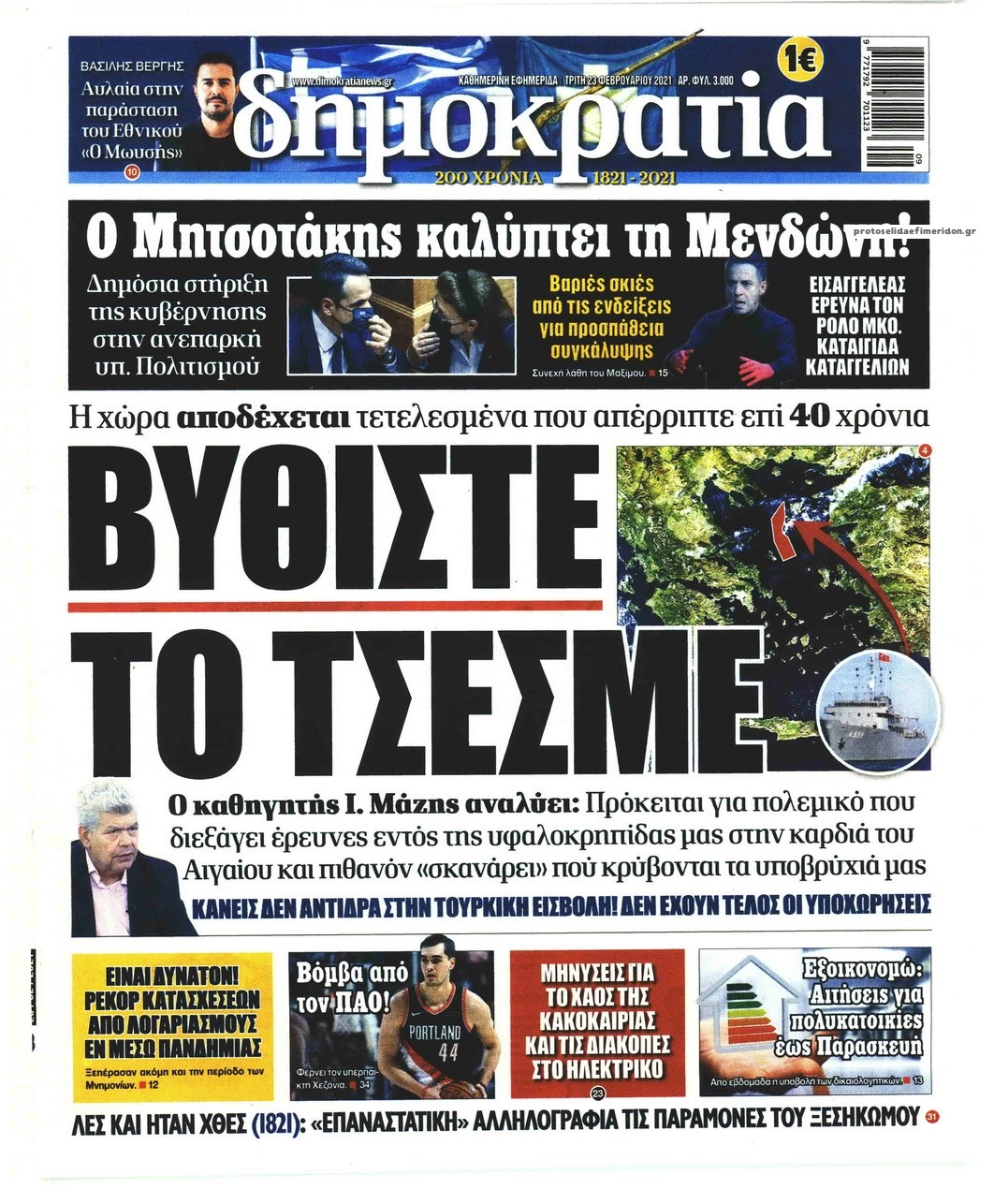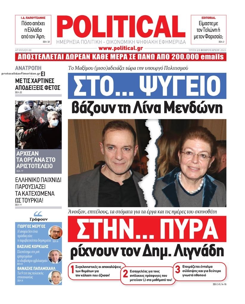 Οι πολιτικές εφημερίδες 23/2/2021 Σήφης Γαρυφαλάκης 06:32, Τρίτη 23 Φεβρουαρίου 2021 Media Διαβάστε τα πρωτοσέλιδα των πολιτικών εφημερίδων … ΕΦΗΜΕΡΙΔΕΣ ΠΟΛΙΤΙΚΕΣ ΕΦΗΜΕΡΙΔΕΣ ΠΡΩΤΟΣΕΛΙΔΑ ΠΡΩΤΟΣΕΛΙΔΑ ΕΦΗΜΕΡΙΔΩΝ Μοιράσου το: σχολίασε κι εσύ (0 σχόλια) Ακολουθήστε το enikos.gr στο Google News και μάθετε πρώτοι όλες τις ειδήσεις Δείτε όλες τις τελευταίες ειδήσεις από την Ελλάδα και τον Κόσμο στο enikos.gr Ειδήσεις Ροή Ειδήσεων 32 λεπτά πριν Ευρωπαϊκή Ένωση: Συμφωνία για δάνειο 90 δισ. ευρώ στην Ουκρανία τη διετία 2026-2027 5 ώρες πριν ΟΠΕΚΕΠΕ: Προφυλακιστέος ο φερόμενος αρχηγός και ο λογιστής της εγκληματικής οργάνωσης 6 ώρες πριν Αυξάνουν την πίεση προς την κυβέρνηση οι αγρότες: Κλείνουν παρακαμπτήριους και ανοίγουν διόδια – Τι θα γίνει τις γιορτές 6 ώρες πριν Φοινικούντα: Το Σάββατο απολογείται ο 30χρονος γιος γνωστού επιχειρηματία της Πλάκας που παραδόθηκε – Όσα είπε στους αστυνομικούς και ο ρόλος του στο έγκλημα 5 ώρες πριν ΑΕΚ – Κραϊόβα 3-2: Επική ανατροπή και πρόκριση στους «16» του Conference League η Ένωση 6 ώρες πριν Αρχαιολόγοι ανακάλυψαν ρωμαϊκά τεχνουργήματα από μια πόλη που δεν υπήρξε ποτέ – Τα τρία εντυπωσιακά κτίρια και ο αμφορέας με τις… σαρδέλες 7 ώρες πριν Ύπνος: Η απλή βραδινή ρουτίνα για να προστατεύσετε τα μαλλιά σας από το κρύο κατά τη διάρκεια του χειμώνα 8 ώρες πριν Manifesting: Πώς να συναντήσετε τον σύντροφο της ζωής σας, ανάλογα με τον μήνα γέννησής σας 2 ημέρες πριν 20 χρόνια τα Χριστούγεννα ξεκινούν στα Public με μεγάλη ποικιλία σε δώρα! 6 λεπτά πριν Ρόδος: Δάσκαλος καράτε καταδικάστηκε για ασέλγεια σε ανήλικες αθλήτριες – Μαρτυρίες για αγγίγματα σε ευαίσθητα σημεία 20 λεπτά πριν Γουατεμάλα: Εξαρθρώθηκε κύκλωμα διακίνησης μεταναστών προς τις ΗΠΑ – Συνελήφθησαν 14 άτομα 25 λεπτά πριν Βουλγαρία: Χιλιάδες πολίτες στους δρόμους κατά της απερχόμενης κυβέρνησης και της διαφθοράς 32 λεπτά πριν Ευρωπαϊκή Ένωση: Συμφωνία για δάνειο 90 δισ. ευρώ στην Ουκρανία τη διετία 2026-2027 55 λεπτά πριν Αιματηρή βομβιστική επίθεση στην Υεμένη: Τουλάχιστον τρεις νεκροί και 13 τραυματίες ENIKOS NETWORK Σε περίοδο αυξημένης δραστηριότητας η γρίπη στην Ελλάδα-Μέτρα προστασίας από τον ΕΟΔΥ Σκέφτεστε συνέχεια συζητήσεις που έχετε κάνει; Τι σημαίνει αυτό, σύμφωνα με ειδικό Στεγαστικό: Τι λέει η ΠΟΜΙΔΑ για τα νέα μέτρα που ανακοίνωσε ο Κυριάκος Μητσοτάκης Λαγκάρντ: Αισιόδοξη για την ανάπτυξη της Ευρωζώνης, αβέβαιη για τον πληθωρισμό Χαρτογραφώντας το «σημείο χωρίς επιστροφή»: Για πρώτη φορά αποκαλύπτεται με λεπτομέρεια το ακανθώδες όριο της ατμόσφαιρας τ... Η Google καταργεί τη λειτουργία «dark web report» – Πώς θα μπορούν οι χρήστες να διαγράφουν τα δεδομένα τους περισσότερα 02:50 , Παρασκευή 19 Δεκεμβρίου 2025 GNTM: «Κλείδωσαν» οι τέσσερις φιναλίστ – Μεγάλη ανατροπή στις τελευταίες αποχωρήσεις Για προτελευταία φορά εμφανίστηκαν στο πλατό του GNTM οι φιναλίστ του φετινού κύκλου, το βράδυ... 17:45 , Πέμπτη 18 Δεκεμβρίου 2025 ROUK ZOUK: Εορταστικό επεισόδιο με καλεσμένους τους πρωταγωνιστές του «Γιατί ρε πατέρα» Το Σάββατο 20 Δεκεμβρίου στις 21:00, η Ζέτα Μακρυπούλια υποδέχεται εκλεκτούς ηθοποιούς που όλο... 17:20 , Πέμπτη 18 Δεκεμβρίου 2025 Άγιος έρωτας: Η Χριστίνα εξομολογείται στον πατέρα Νικόλαο, απόψε στις 21:00 στον Alpha Η Νότα αποφασίζει να εκδικηθεί τον Πέτρο και τον Στέφανο, για χάρη του Λούη, όμως τα πράγματα ... 16:50 , Πέμπτη 18 Δεκεμβρίου 2025 Να μ’ αγαπάς: Ζωή και Φωτεινή συμφιλιώνονται ως μάνα με κόρη, απόψε στις 20:00 Η ταυτότητα του Άγγελ