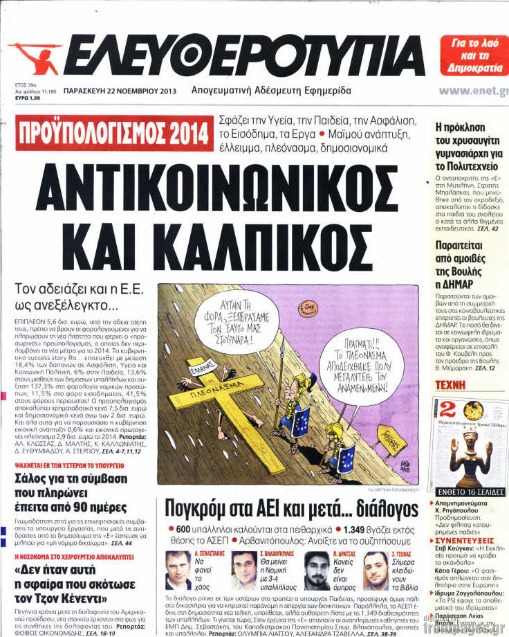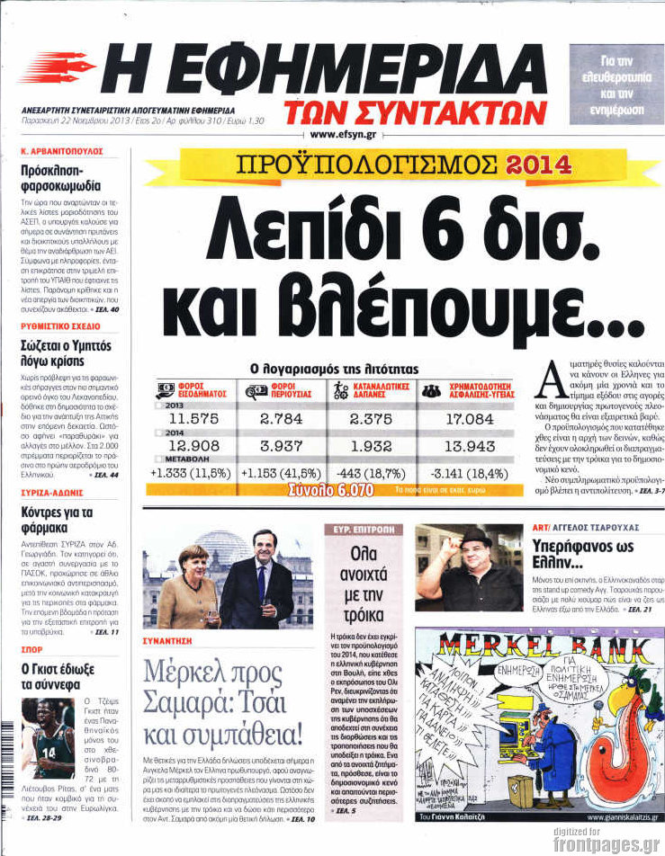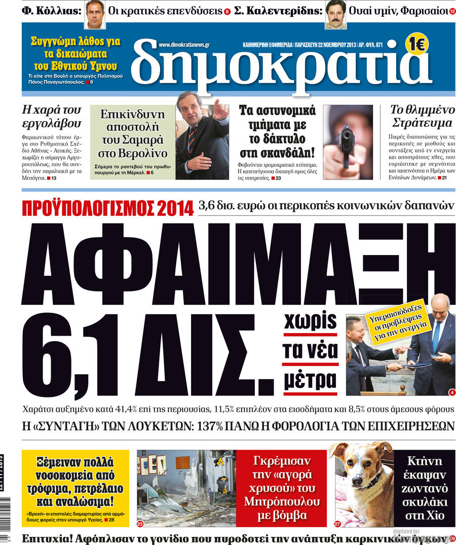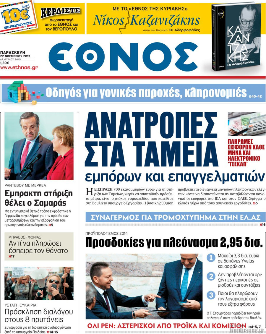 Οι πολιτικές εφημερίδες Enikos Newsroom 08:31, Παρασκευή 22 Νοεμβρίου 2013 Media Οι πολιτικές εφημερίδες Διαβάστε τα πρωτοσέλιδα των πολιτικών εφημερίδων: ΕΦΗΜΕΡΙΔΕΣ ΠΟΛΙΤΙΚΕΣ ΕΦΗΜΕΡΙΔΕΣ ΠΡΩΤΟΣΕΛΙΔΑ Μοιράσου το: σχολίασε κι εσύ (0 σχόλια) Ακολουθήστε το enikos.gr στο Google News και μάθετε πρώτοι όλες τις ειδήσεις Δείτε όλες τις τελευταίες ειδήσεις από την Ελλάδα και τον Κόσμο στο enikos.gr Ειδήσεις Ροή Ειδήσεων 41 λεπτά πριν Μπλόκα: Οι αγρότες σηκώνουν τις μπάρες σε διόδια για τους εκδρομείς των Χριστουγέννων και μοιράζουν προϊόντα – Βίντεο 1 ώρα πριν Τσιάρας προς αγρότες: Τα μπλόκα και τα πείσματα δεν ωφελούν – Οι λύσεις περνούν μέσα από τον διάλογο 2 ώρες πριν Αρχεία Έπσταϊν: Οι συγκλονιστικές φωτογραφίες – Ο Μάικλ Τζάκσον, ο Μικ Τζάγκερ και ο Κέβιν Σπέισι ανάμεσα στους διάσημους που απεικονίζονται 3 ώρες πριν Νέες ταυτότητες: Μεγάλη αναμονή για ραντεβού στην Αττική – Τέλος τα ταξίδια εκτός Ελλάδος από τον Αύγουστο για όσους δεν έχουν αλλάξει 3 ώρες πριν Ινδία: Επτά ελέφαντες σκοτώθηκαν κατά τη σύγκρουση επιβατικού τρένου με κοπάδι 4 ώρες πριν Μία νέα «χρυσή» περίοδος αρχίζει για 3 ζώδια από σήμερα – «Μία αναπάντεχη ευκαιρία οδηγεί στην επιτυχία» 5 ώρες πριν Αγχώνεται για το χριστουγεννιάτικο δώρο που πήρε στην πλούσια σύντροφό του – «Φοβάμαι πως θα το βρει φθηνιάρικο, φοράει βραχιόλια Cartier» 3 ώρες πριν Διαιτολόγος αποκαλύπτει 9 πρωινές συνήθειες που «λιώνουν» το κοιλιακό λίπος – «Υποστηρίζουν την υγιεινή απώλεια βάρους» 4 ώρες πριν Οι 7 φράσεις που δεν λένε ποτέ οι συναισθηματικά έξυπνοι άνθρωποι κατά τη διάρκεια ενός καβγά 6 λεπτά πριν Βέλγιο: Άγνωστοι έριξαν κόκκινη μπογιά στο προξενείο της Πολωνίας στις Βρυξέλλες 13 λεπτά πριν Γρηγόρης Δημητριάδης: Χριστουγεννιάτικη συνάντηση με τα παιδιά της ΔΑΠ-ΝΔΦΚ και της ΟΝΝΕΔ 21 λεπτά πριν Στέφανος Παπαδόπουλος: Ξέσπασε σε κλάματα – «Θέλω να έρθει μπροστά μου και να μου πει ότι είμαι ψεύτης» 29 λεπτά πριν Η Realnews αυτής της Κυριακής (21/12/2025) 38 λεπτά πριν Πέτρου Ράλλη: Καρέ – καρέ η κλοπή αυτοκινήτου μέσα σε 2,5 λεπτά ENIKOS NETWORK Η αποχή από την αναπαραγωγή παρατείνει τη ζωή στα ζώα, σύμφωνα με μελέτη – Τι ισχύει για τους ανθρώπους; Σημαντικές επαφές στις ΗΠΑ είχε ο υπουργός Υγείας Άδωνις Γεωργιάδης MyHealth App: Τα στοιχεία για τον Προσωπικό Βοηθό Υγείας Πολίτη – Τι ερωτήματα έγιναν μέσα σε 7 ημέρες Χειμερινές εκπτώσεις 2026: Πρεμιέρα στις 12 Ιανουαρίου – Πόσο θα διαρκέσουν και τι πρέπει να γνωρίζουν οι καταναλωτές Χαρτογραφώντας το «σημείο χωρίς επιστροφή»: Για πρώτη φορά αποκαλύπτεται με λεπτομέρεια το ακανθώδες όριο της ατμόσφαιρας τ... Η Google καταργεί τη λειτουργία «dark web report» – Πώς θα μπορούν οι χρήστες να διαγράφουν τα δεδομένα τους περισσότερα 14:04 , Σάββατο 20 Δεκεμβρίου 2025 Η Realnews αυτής της Κυριακής (21/12/2025) Με τίτλο: «Ασπίδα προστασίας για την Ελλάδα» κυκλοφορεί, αυτήν την Κυριακή, η Realnews. Σημαντ... 12:53 , Σάββατο 20 Δεκεμβρίου 2025 Να μ’ αγαπάς: Το παρελθόν έρχεται στο φως – Καταιγιστικές εξελίξεις στα τελευταία επεισόδια του 2025 Ο Άγγελος αποκαλύπτεται, η Φωτεινή ανησυχεί για τον Λευτέρη και η Ζωή έρχεται αντιμέτωπη με το... 11:41 , Σάββατο 20 Δεκεμβρίου 2025 «Η αγάπη δεν χάνεται ποτέ»: Η μικρού μήκους ταινία κινουμένων σχεδίων που θέτει ερωτήματα για τη ζωή και τον θάνατο Ο θάνατος είναι ένα από τα πιο σκληρά θέματα που καλείται να διαχειριστεί κάποιος στη διάρκεια... 09:30 , Σάββατο 20 Δεκεμβρίου 2025 «Porto Leone: Στη γειτονιά με τα κόκκινα φανάρια» – 