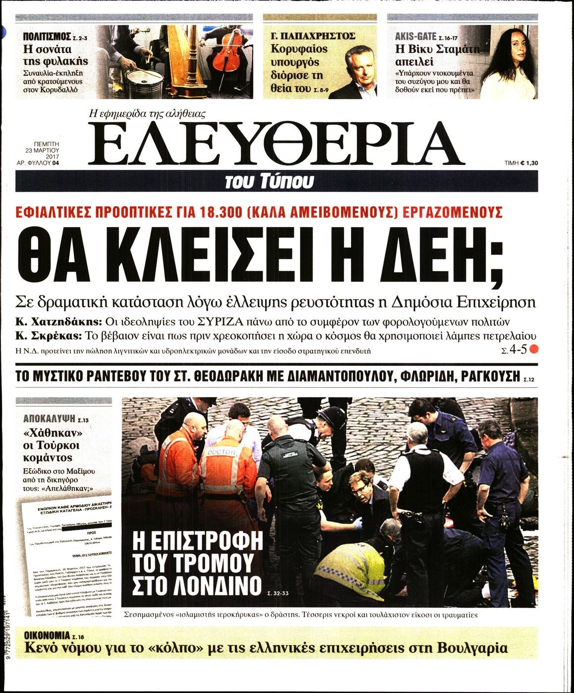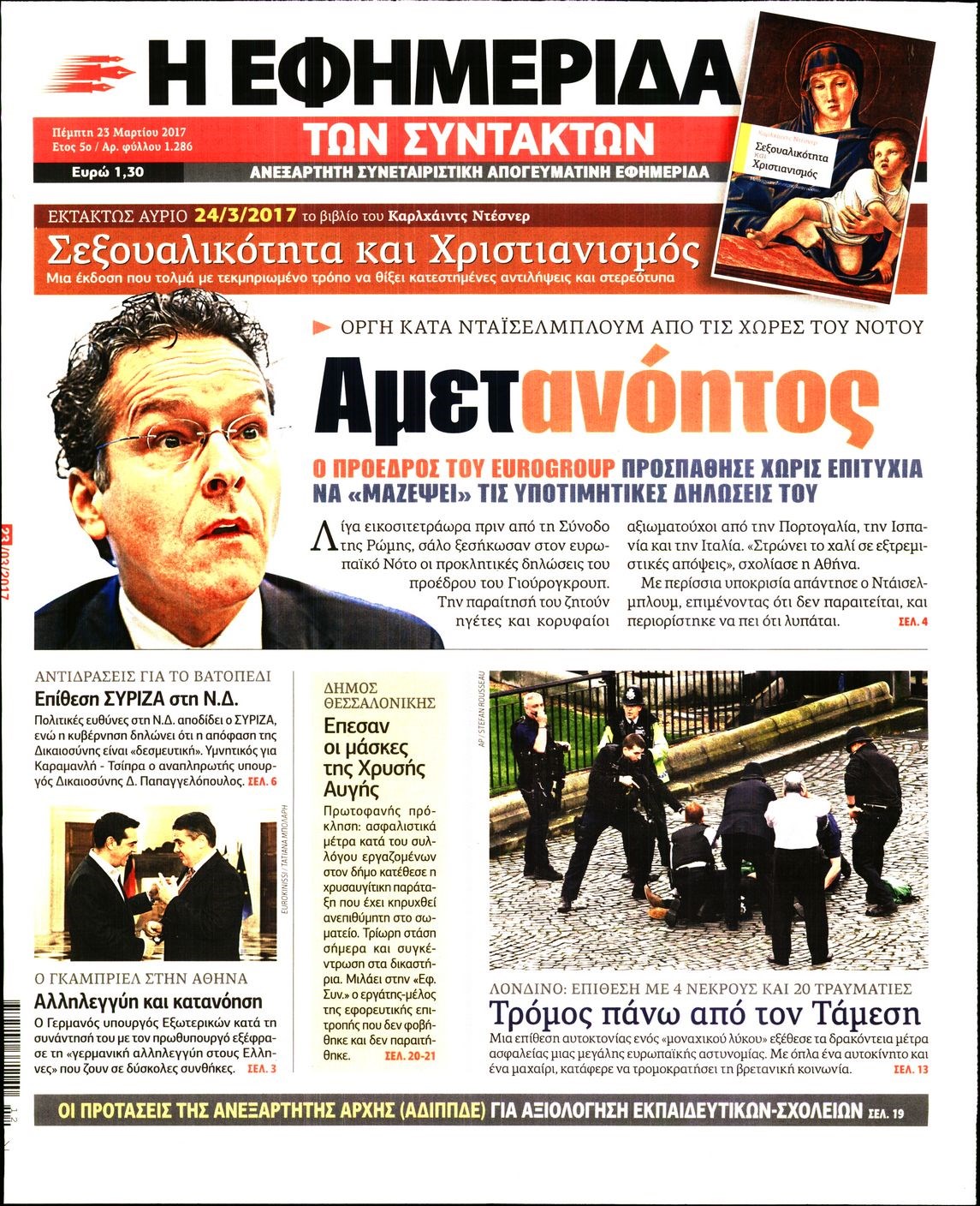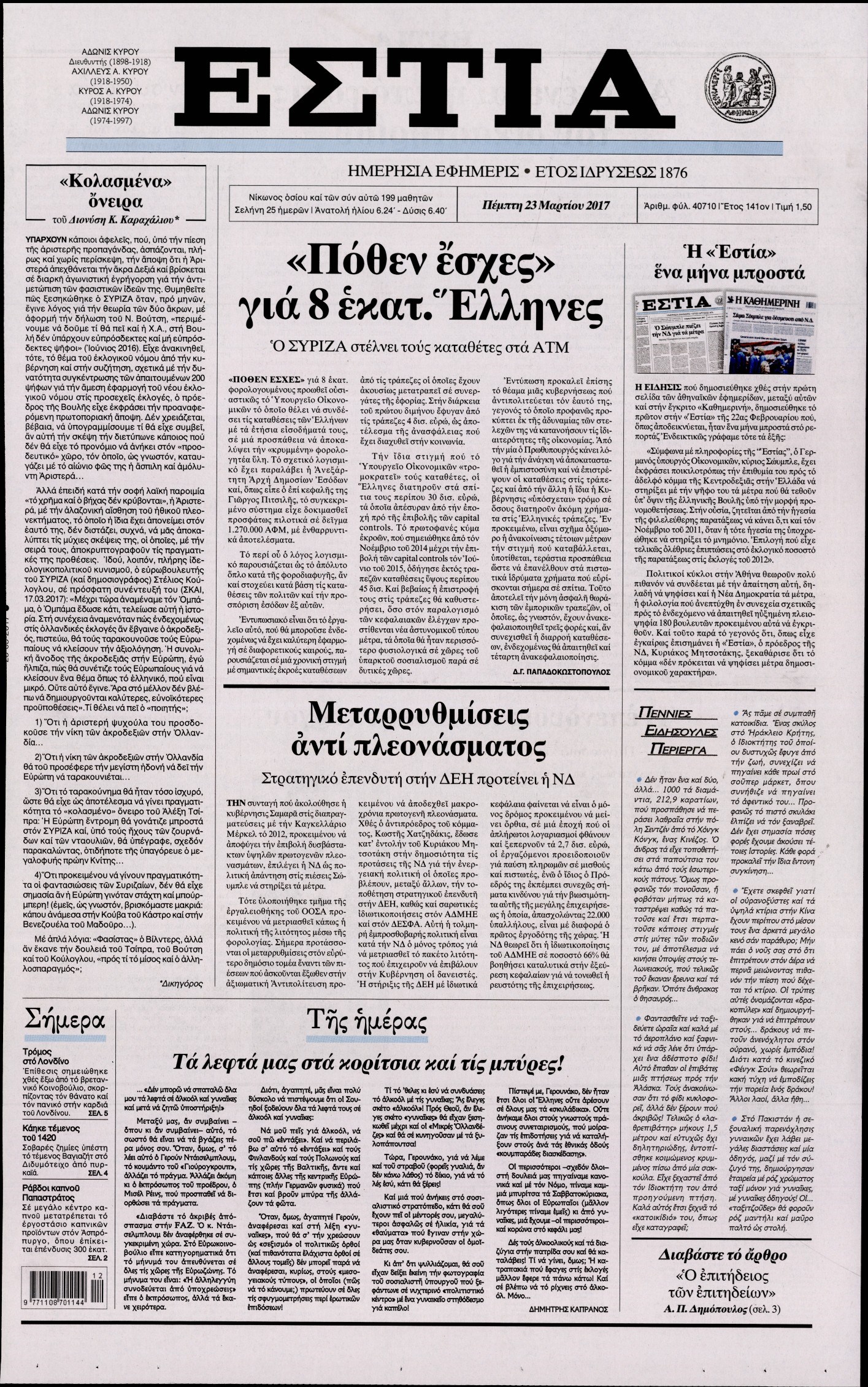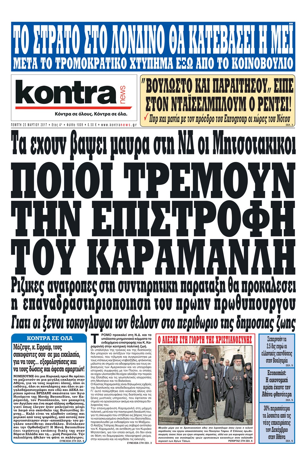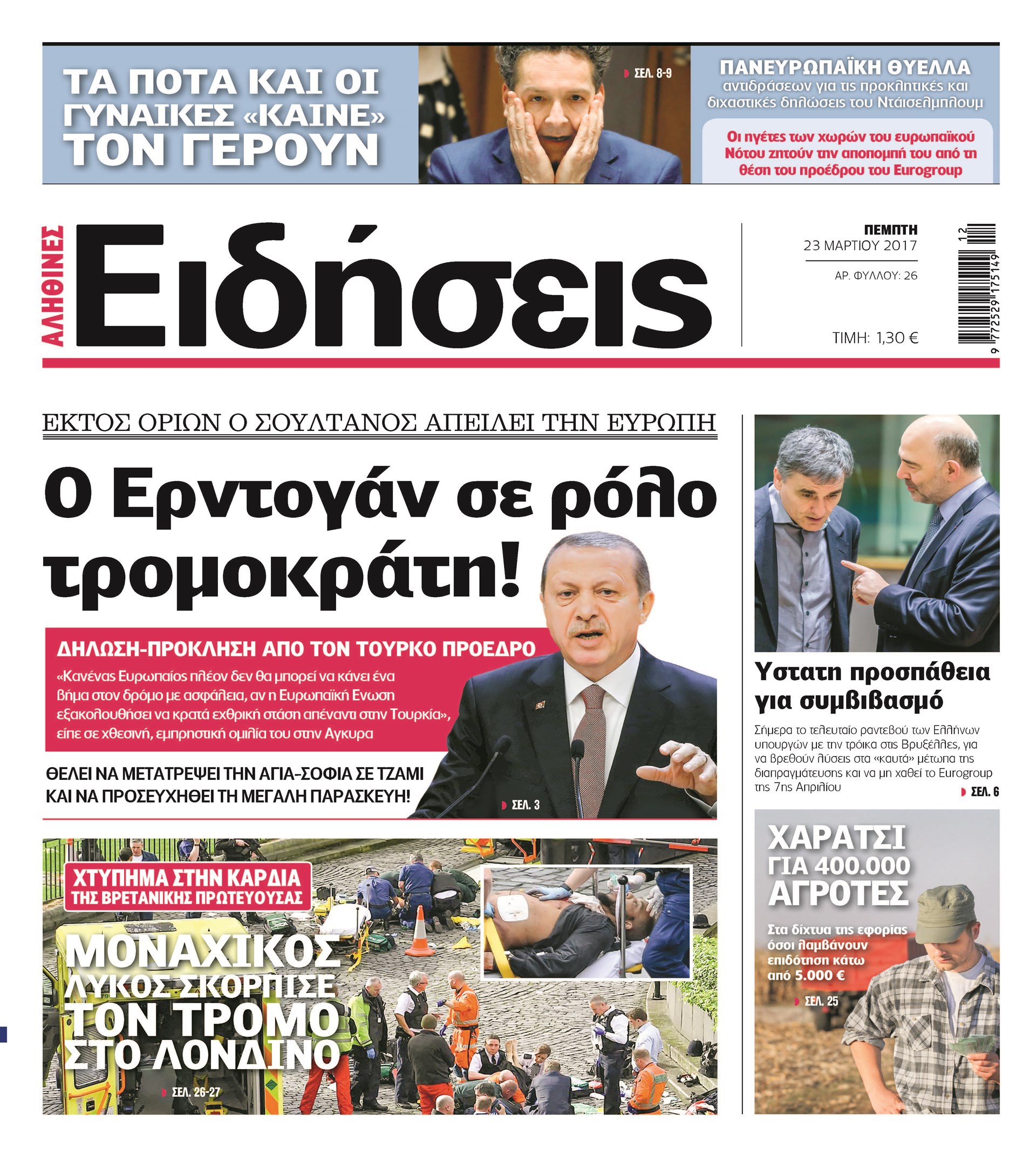 Οι πολιτικές εφημερίδες 23/3/2017 Enikos Newsroom 06:54, Πέμπτη 23 Μαρτίου 2017 Media Διαβάστε τα σημερινά πρωτοσέλιδα των πολιτικών εφημερίδων: ΠΟΛΙΤΙΚΕΣ ΕΦΗΜΕΡΙΔΕΣ ΠΡΩΤΟΣΕΛΙΔΑ Μοιράσου το: σχολίασε κι εσύ (0 σχόλια) Ακολουθήστε το enikos.gr στο Google News και μάθετε πρώτοι όλες τις ειδήσεις Δείτε όλες τις τελευταίες ειδήσεις από την Ελλάδα και τον Κόσμο στο enikos.gr Ειδήσεις Ροή Ειδήσεων 1 ώρα πριν Πούτιν: «Ανοησίες» και «υστερίες» οι ισχυρισμοί της Ευρώπης για πιθανή σύγκρουση με τη Ρωσία – «Κάνουν πλύση εγκεφάλου» 6 ώρες πριν Έρευνα MRB: Η πρόθεση ψήφου και τα σημαντικότερα προβλήματα – Οι «λέξεις» που εκφράζουν τους πολίτες 3 ώρες πριν Αμοργός: «Θα προσπαθήσω να το κάνω κάθε μέρα» – Ποιος είναι ο αγρότης που έστησε μόνος του το πρώτο μπλόκο στο νησί 37 λεπτά πριν Τραγωδία στην Αλεξανδρούπολη: Παιδάκι 3 ετών μεταφέρθηκε νεκρό από τη μητέρα του στο νοσοκομείο 1 ώρα πριν Συνάντηση Μητσοτάκη με την Κ.Ο. της ΝΔ: Οι αφίξεις των βουλευτών, τα γλυκά και τα «πηγαδάκια» 5 ώρες πριν Τα 4 ζώδια που ξαναβρίσκουν τον εαυτό τους – «Μπαίνετε επιτέλους στην ουσία των πραγμάτων» 6 ώρες πριν 20 χρόνια τα Χριστούγεννα ξεκινούν στα Public με μεγάλη ποικιλία σε δώρα! 5 ώρες πριν «Δεν είχα κλάψει από τότε που διαγνώστηκα με καρκίνο, ώσπου ένα τηλεφώνημα με έκανε να λυγίσω» – Η συγκλονιστική εξομολόγηση ενός άνδρα 4 ώρες πριν Τα 7 σπάνια χαρακτηριστικά που κάνουν κάποιους ανθρώπους ακαταμάχητους 4 λεπτά πριν Εξεταστική για ΟΠΕΚΕΠΕ-Μυλωνάκης: Διαχρονικές, διακομματικές οι παθογένειες – Τι είπε για Μπουκώρο και Βάρρα 9 λεπτά πριν Παναθηναϊκός: Θέλει τον Κέπα της Άρσεναλ δανεικό για 6 μήνες 15 λεπτά πριν Το Λαϊκό Λαχείο στον ρυθμό των Χριστουγέννων: Μοιράζει μέχρι και 1.000.000 ευρώ στην ειδική κλήρωση της Παρασκευής 19 Δεκεμβρίου 20 λεπτά πριν Πετράλωνα: Εξαφανίστηκε 13χρονος από χώρο φιλοξενίας ασυνόδευτων ανηλίκων 24 λεπτά πριν Παραμένουν στα μπλόκα οι αγρότες της Μεσσηνίας – Κλειστή η εθνική οδός Καλαμάτας- Αθήνας ENIKOS NETWORK 5 πράγματα που αποφεύγει γαστρεντερολόγος για να μειώσει τον κίνδυνο καρκίνου του εντέρου Ανησυχητική αύξηση της υπέρτασης στα παιδιά – Πώς θα τα προστατέψουμε; ΕΛΕΤΑΕΝ: Πόσα χρήματα θα δοθούν σε δήμους και νοικοκυριά από τις ΑΠΕ «IRIS Παντού»: Στην κορυφή της Ευρώπης η Ελλάδα με 120 εκατ. ευρώ συναλλαγές το 2025 – Η σύγκριση με τις άλλες χώρες της Ευ... Σύγχρονος Νοστράδαμος: Προειδοποιεί για «μεγάλο γεγονός» τους επόμενους μήνες που θα συγκλονίσει τη Βρετανία και τον κόσμο Τεστ παρατηρητικότητας: Μπορείτε να βρείτε τις 3 διαφορές στις εικόνες με έναν πιγκουίνο σε 14 δευτερόλεπτα περισσότερα 12:35 , Τετάρτη 17 Δεκεμβρίου 2025 Μίρκα Παπακωνσταντίνου: «Δεν ήμουν αισιόδοξη για τα νούμερα – Είμαι ρεαλίστρια» Στα γυρίσματα του εορταστικού επεισοδίου της αγαπημένης σειράς “Το Σόι Σου”, βρέθηκε η κάμερα ... 12:12 , Τετάρτη 17 Δεκεμβρίου 2025 Ακούστε την εκπομπή του Νίκου Χατζηνικολάου 17/12/2025 Ακούστε την εκπομπή του Νίκου Χατζηνικολάου στον ραδιοφωνικό σταθμό RealFm 97,8, την Τετάρτη 1... 11:35 , Τετάρτη 17 Δεκεμβρίου 2025 Home Alone: Το σπίτι της ταινίας θα ανακαινιστεί – Επιστροφή στην αισθητική της δεκαετίας του ’90 Οι νέοι ιδιοκτήτες του πραγματικού σπιτιού που παρουσιάζεται στην κλασική ταινία του 1990 «Hom... 11:25 , Τετάρτη 17 Δεκεμβρίου 2025 Grand Hotel: Απόψε το τελευταίο επεισόδιο της χρονιάς – Όλα τα μυστικά μένουν εδώ Το τελευταίο επεισόδιο της χρονιάς της σειράς «Grand Hotel» θα προβληθεί απόψε στις 21:00. Ο Ά... ΤΕΛΕΥΤΑΙΕΣ ΕΙΔΗΣΕΙ
