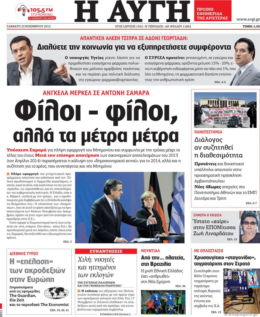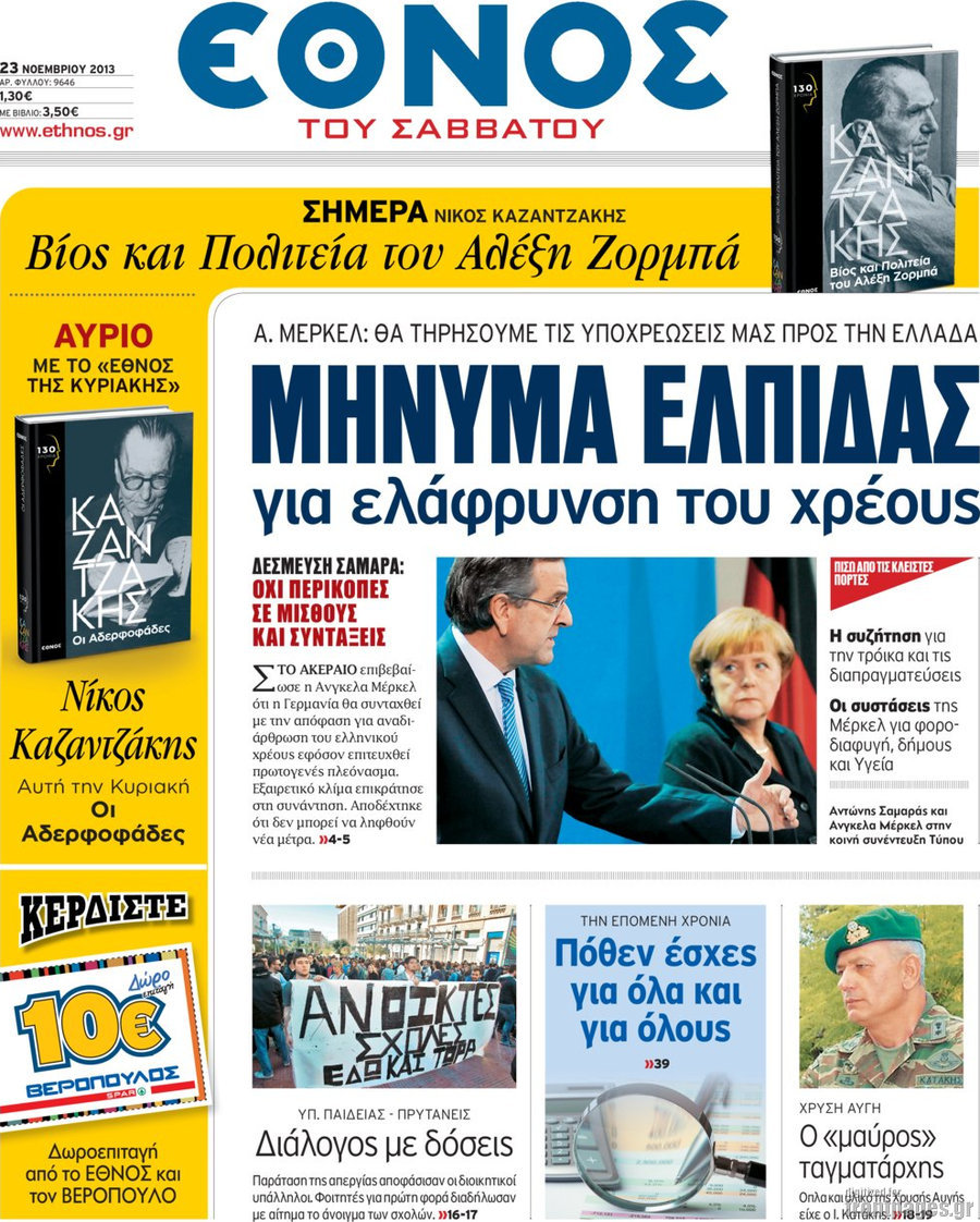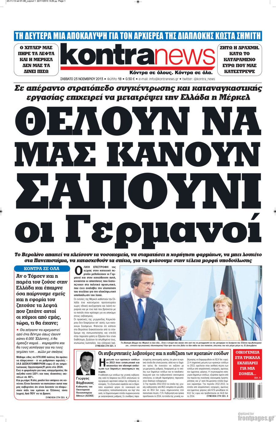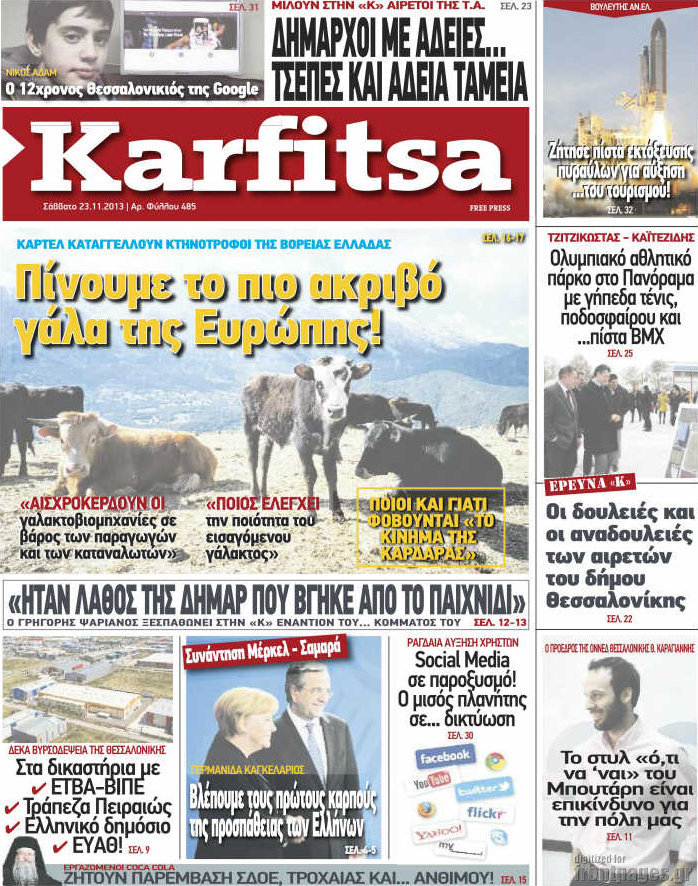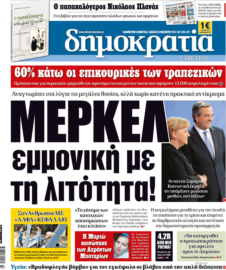 Οι πολιτικές εφημερίδες Enikos Newsroom 08:48, Σάββατο 23 Νοεμβρίου 2013 Media Οι πολιτικές εφημερίδες ΕΦΗΜΕΡΙΔΕΣ ΠΟΛΙΤΙΚΕΣ ΕΦΗΜΕΡΙΔΕΣ Μοιράσου το: σχολίασε κι εσύ (0 σχόλια) Ακολουθήστε το enikos.gr στο Google News και μάθετε πρώτοι όλες τις ειδήσεις Δείτε όλες τις τελευταίες ειδήσεις από την Ελλάδα και τον Κόσμο στο enikos.gr Ειδήσεις Ροή Ειδήσεων 42 λεπτά πριν Πώς δρούσε το κύκλωμα που διακινούσε ναρκωτικά σε σχολεία – Υπέβαλαν σε βασανιστήρια όσους δεν τηρούσαν τους «κανόνες πειθαρχίας» 1 ώρα πριν Αγρότες: Γιορτές στα μπλόκα με ανοιχτά διόδια – Δικογραφία στα Ιωάννινα για το σήκωμα των μπαρών 5 ώρες πριν Αρχεία Έπσταϊν: Οι συγκλονιστικές φωτογραφίες – Ο Μάικλ Τζάκσον, ο Μικ Τζάγκερ και ο Κέβιν Σπέισι ανάμεσα στους διάσημους που απεικονίζονται 3 ώρες πριν Βέλγιο: Άγνωστοι έριξαν κόκκινη μπογιά στο προξενείο της Πολωνίας στις Βρυξέλλες 2 ώρες πριν ΕΛΑΣ: Συνελήφθησαν Υπαρχιπυροσβέστης και δύο ακόμη άτομα για κατοχή και διακίνηση ναρκωτικών ουσιών – Η καταγγελία και ο τιμοκατάλογος 1 ώρα πριν Η τύχη χαμογελά σε 3 ζώδια έως τις 28 Δεκεμβρίου – «Προσέξτε τις επιλογές σας και η επιμονή σας θα ανταμειφθεί» 5 ώρες πριν Διαιτολόγος αποκαλύπτει 9 πρωινές συνήθειες που «λιώνουν» το κοιλιακό λίπος – «Υποστηρίζουν την υγιεινή απώλεια βάρους» 6 ώρες πριν Οι 7 φράσεις που δεν λένε ποτέ οι συναισθηματικά έξυπνοι άνθρωποι κατά τη διάρκεια ενός καβγά 8 ώρες πριν Enerwave: Το νέο «ρεύμα» στη λιανική ενέργειας που αλλάζει την εμπειρία του καταναλωτή 3 λεπτά πριν Αττική: Εξαρθρώθηκε εγκληματική οργάνωση που έκλεβε οχήματα, τα παραποιούσε και τα μεταπωλούσε σε πολίτες – Πώς δρούσε το κύκλωμα 11 λεπτά πριν Κωνσταντίνος Αργυρός: «Δεν θέλω να ασχοληθώ με την πολιτική σε αυτή τη φάση – Μου έχουν γίνει προτάσεις» 20 λεπτά πριν Σέρρες: Διέρρηξαν διαμέρισμα και «βούτηξαν» ρολόγια συνολικής αξίας 15.000 ευρώ – 3 συλλήψεις 28 λεπτά πριν Κουίζ για την παλιά Αθήνα: Αναγνωρίζετε την συνοικία; Είναι από τις πιο γνωστές 36 λεπτά πριν Ζελένσκι: Οι Αμερικανοί πρότειναν συνάντηση Ουκρανίας, ΗΠΑ, Ρωσίας στο Μαϊάμι ENIKOS NETWORK Η αποχή από την αναπαραγωγή παρατείνει τη ζωή στα ζώα, σύμφωνα με μελέτη – Τι ισχύει για τους ανθρώπους; Σημαντικές επαφές στις ΗΠΑ είχε ο υπουργός Υγείας Άδωνις Γεωργιάδης Στα ύψη ο χρυσός – Νέο ρεκόρ στην τιμή της λίρας, πόσο πωλείται Τέλη κυκλοφορίας 2026: Προσοχή στην προθεσμία εξόφλησής τους – Πώς διαμορφώνονται τα πρόστιμα σε περίπτωση καθυστέρησης Χαρτογραφώντας το «σημείο χωρίς επιστροφή»: Για πρώτη φορά αποκαλύπτεται με λεπτομέρεια το ακανθώδες όριο της ατμόσφαιρας τ... Η Google καταργεί τη λειτουργία «dark web report» – Πώς θα μπορούν οι χρήστες να διαγράφουν τα δεδομένα τους περισσότερα 14:04 , Σάββατο 20 Δεκεμβρίου 2025 Η Realnews αυτής της Κυριακής (21/12/2025) Με τίτλο: «Ασπίδα προστασίας για την Ελλάδα» κυκλοφορεί, αυτήν την Κυριακή, η Realnews. Σημαντ... 12:53 , Σάββατο 20 Δεκεμβρίου 2025 Να μ’ αγαπάς: Το παρελθόν έρχεται στο φως – Καταιγιστικές εξελίξεις στα τελευταία επεισόδια του 2025 Ο Άγγελος αποκαλύπτεται, η Φωτεινή ανησυχεί για τον Λευτέρη και η Ζωή έρχεται αντιμέτωπη με το... 11:41 , Σάββατο 20 Δεκεμβρίου 2025 «Η αγάπη δεν χάνεται ποτέ»: Η μικρού μήκους ταινία κινουμένων σχεδίων που θέτει ερωτήματα για τη ζωή και τον θάνατο Ο θάνατος είναι ένα από τα πιο σκληρά θέματα που καλείται να διαχειριστεί κάποιος στη διάρκεια... 09:30 , Σάββατο 20 Δεκεμβρίου 2025 «Porto Leone: Στη γειτονιά με τα κόκκινα φανάρια» – Ο Χρόνης αποκαλύ