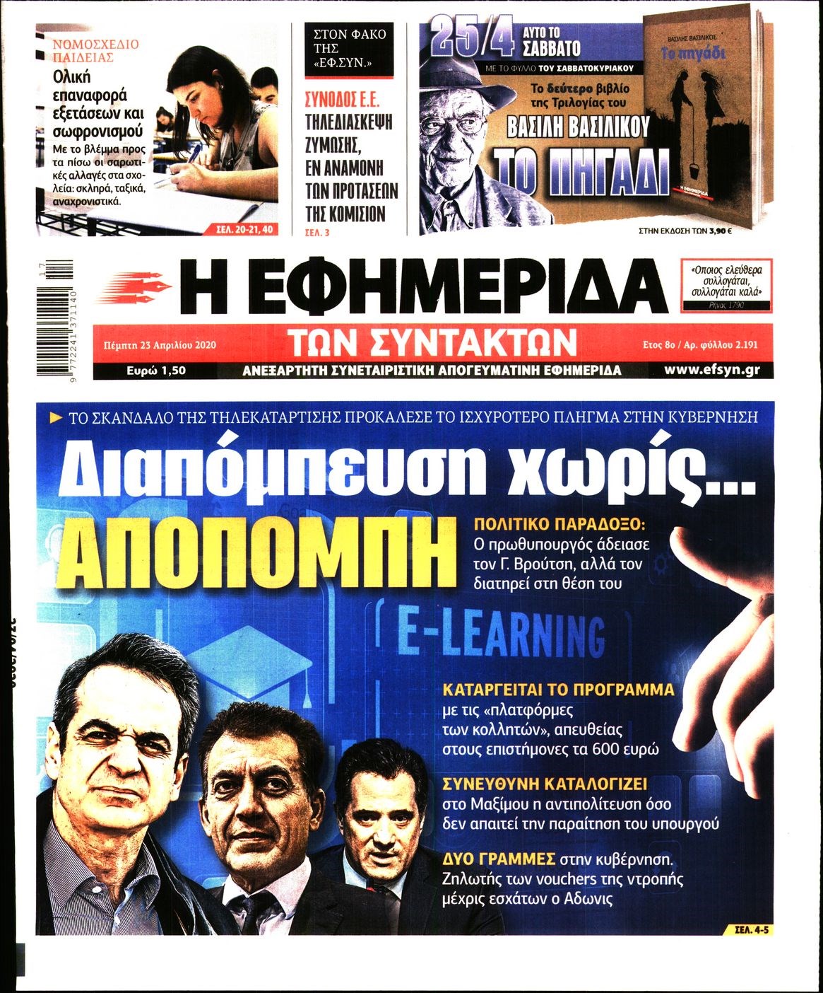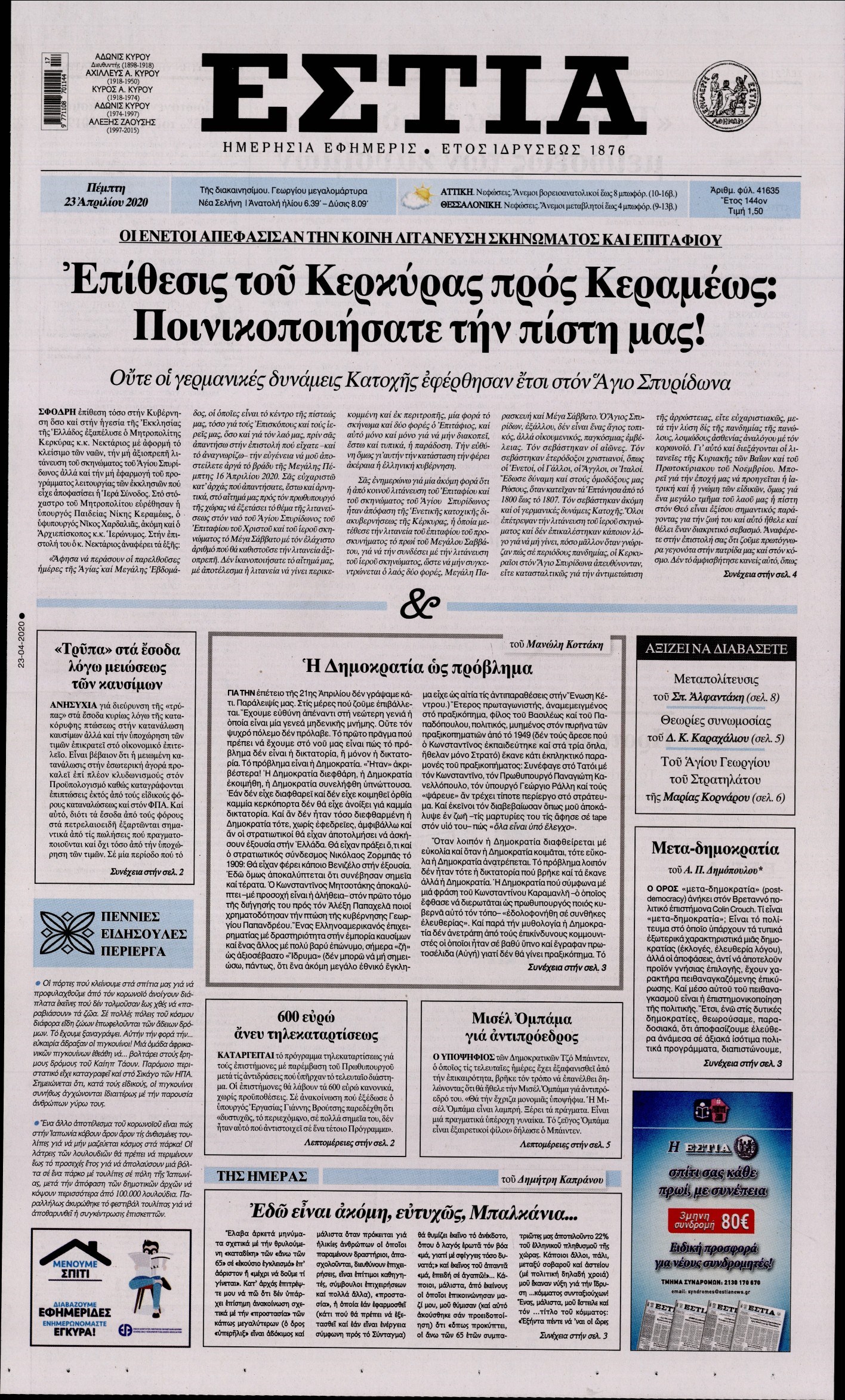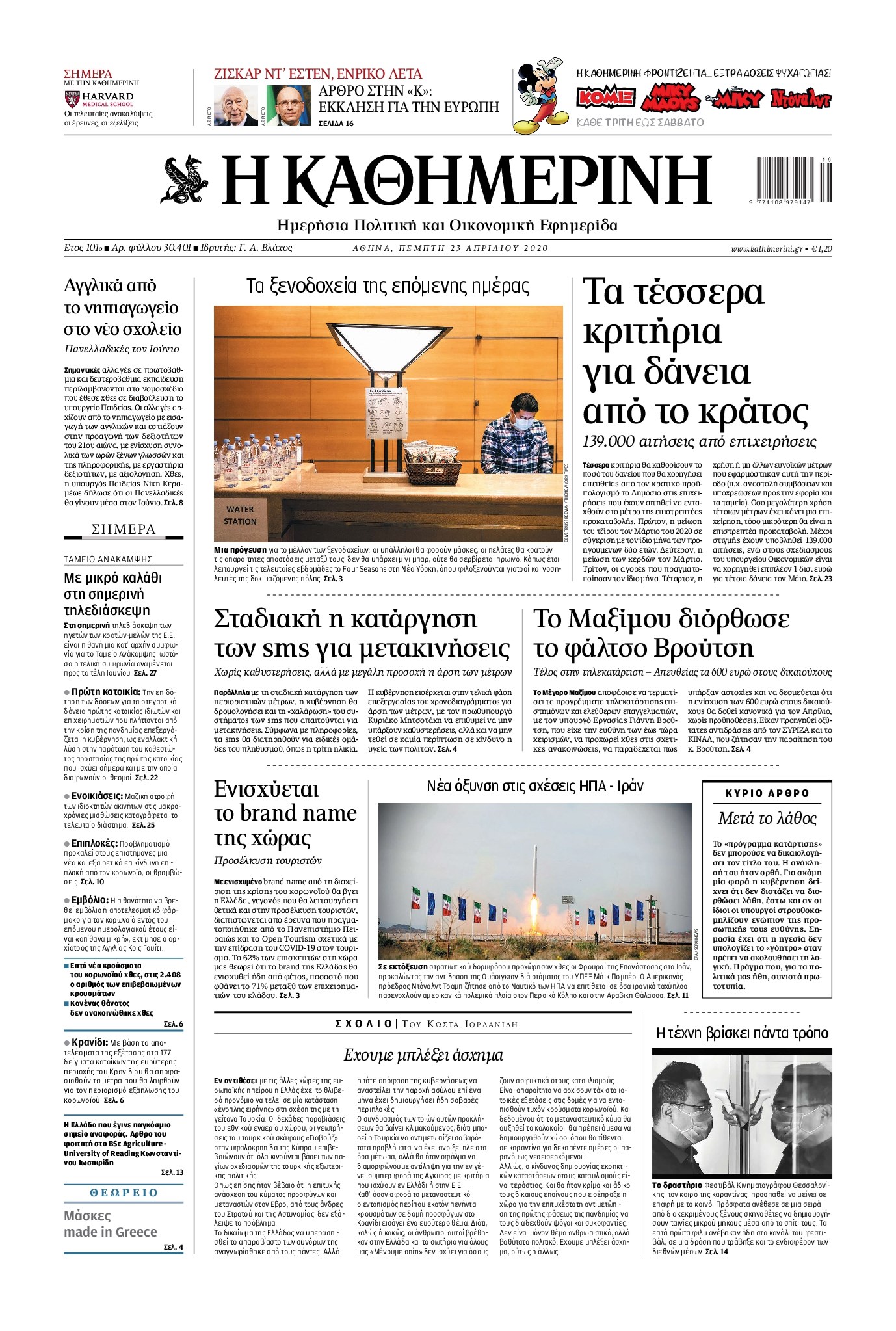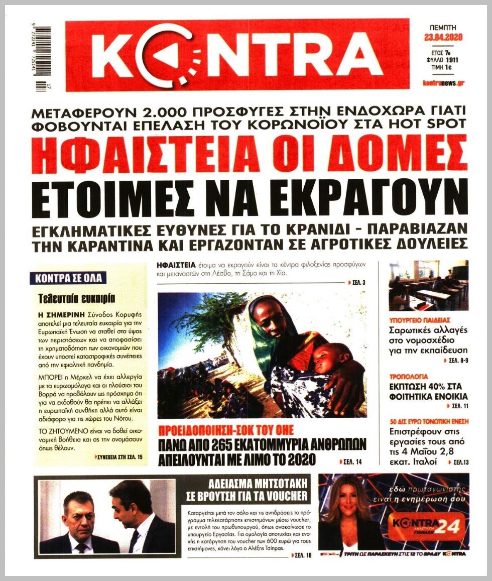 Οι πολιτικές εφημερίδες 23/4/2020 Διονύσης Νίκκας 06:09, Πέμπτη 23 Απριλίου 2020 Media Διαβάστε τα πρωτοσέλιδα των πολιτικών εφημερίδων… ΠΟΛΙΤΙΚΕΣ ΕΦΗΜΕΡΙΔΕΣ ΠΡΩΤΟΣΕΛΙΔΑ Μοιράσου το: σχολίασε κι εσύ (0 σχόλια) Ακολουθήστε το enikos.gr στο Google News και μάθετε πρώτοι όλες τις ειδήσεις Δείτε όλες τις τελευταίες ειδήσεις από την Ελλάδα και τον Κόσμο στο enikos.gr Ειδήσεις Ροή Ειδήσεων 4 ώρες πριν Χριστούγεννα στα μπλόκα: Επιμένουν στις κινητοποιήσεις τους οι αγρότες – Ανοίγουν τα διόδια το Σαββατοκύριακο 4 ώρες πριν Ουκρανία: Η άνευ προηγουμένου επίθεση σε ρωσικό τάνκερ στη Μεσόγειο και το μήνυμα προς στον Πούτιν – Το «μακρύ χέρι» του Κιέβου 3 ώρες πριν Πούτιν: Τα μηνύματα σε Ευρώπη και ΝΑΤΟ από το μαραθώνιο «σόου» του – Η απαίτηση για «σεβασμό» και η ειρήνη «με τους όρους» της Μόσχας 4 ώρες πριν Τραμπ: Δεν αποκλείει την πιθανότητα ενός πολέμου στη Βενεζουέλα – «Ο Μαδούρο ξέρει καλύτερα από τον καθένα τι ακριβώς θέλω» 5 ώρες πριν Συνεχίζει να προκαλεί ο Μίτσκοσκι: «Για μένα το όνομα Μακεδονία είναι ιερό» 3 ώρες πριν Ανακαλύφθηκαν αρχαία χρυσά νομίσματα 2.200 ετών που απεικονίζουν τον θεό Απόλλωνα – Η άγνωστη σύνδεση με τον Φίλιππο Β΄ της Μακεδονίας 4 ώρες πριν Ύπνος: Μια κρυφή κατάσταση του εγκεφάλου πριν από τον ύπνο μπορεί να είναι το “κλειδί” για υψηλή ευφυΐα και δημιουργικότητα 5 ώρες πριν Αριθμολογία: Οι άνθρωποι που έχουν γεννηθεί αυτές τις 4 ημερομηνίες, συχνά παρεξηγούνται – «Η καλοσύνη τους κρύβει τεράστια δύναμη» 6 ώρες πριν Ξεχάστε το καθάρισμα το Σαββατοκύριακο: Ο «κανόνας των 20 λεπτών» που θα σας λύσει τα χέρια 14 λεπτά πριν ΗΠΑ: Τραγωδία στην Αλαμπάμα – Σκότωσε την δημοσιογράφο σύζυγό του και αυτοκτόνησε μπροστά στον 3χρονο γιο τους 29 λεπτά πριν Πρόταση γάμου στο ΣΕΦ κατά την διάρκεια του αγώνα Ολυμπιακός-Βιλερμπάν – Δείτε βίντεο 44 λεπτά πριν Euroleague: Επέστρεψε στις νίκες ο Ολυμπιακός, πήρε την ματσάρα της χρονιάς η Μπάρτσα – Τα αποτελέσματα και η βαθμολογία 59 λεπτά πριν Συρία: Μαζικά πλήγματα των ΗΠΑ σε θέσεις του Ισλαμικού Κράτους – Χέγκσεθ: «Δεν είναι αρχή πολέμου, είναι μια δήλωση εκδίκησης» για το θάνατο των στρατιωτών μας 1 ώρα πριν Ουκρανία: Ολοκληρώθηκαν οι συνομιλίες με τους Αμερικανούς κι Ευρωπαίους διαπραγματευτές ENIKOS NETWORK Το ΕΚΑΒ τιμήθηκε από την Ακαδημία Αθηνών για τα 40 χρόνια προσφοράς του Έχετε πραγματικά μεγάλη καρδιά; 10 χαρακτηριστικά όσων έχουν καλοσύνη Αναστολή μέτρων αναγκαστικής εκτέλεσης για κτηνοτρόφους που πλήττονται από την ευλογιά των αιγοπροβάτων Πλήρης επάρκεια προϊόντων στις λαϊκές της Αττικής, παρά τις αγροτικές κινητοποιήσεις – Τι απαντούν οι πωλητές Χαρτογραφώντας το «σημείο χωρίς επιστροφή»: Για πρώτη φορά αποκαλύπτεται με λεπτομέρεια το ακανθώδες όριο της ατμόσφαιρας τ... Η Google καταργεί τη λειτουργία «dark web report» – Πώς θα μπορούν οι χρήστες να διαγράφουν τα δεδομένα τους περισσότερα 22:42 , Παρασκευή 19 Δεκεμβρίου 2025 Γιώργος Γιαννόπουλος για “Το σόι σου”: “Είναι ευτυχία και ευλογία αυτή η σειρά” «Είναι ευτυχία και ευλογία η συγκυρία αυτής της σειράς», θα πει ο Γιώργος Γιαννόπουλος -ο αγαπ... 20:37 , Παρασκευή 19 Δεκεμβρίου 2025 Don’t Forget The Lyrics: Η Έλλη Κοκκίνου υποδέχεται 4 παίκτες που θα κάνουν τα πάντα για να μη χάσουν ούτε… μισή λέξη από τους στίχους Το «Don’t Forget The Lyrics» επιστρέφει απόψε, Παρασκευή 19 Δεκεμβρίου, στις 21:00 με νέο επει... 19:31 , Παρασκευή 19 Δεκεμβρίου 2025 GNTM: Απόψε ο μεγάλος τελικός για τους 4 φιναλίστ Έπειτα από μ