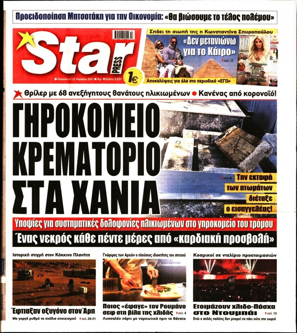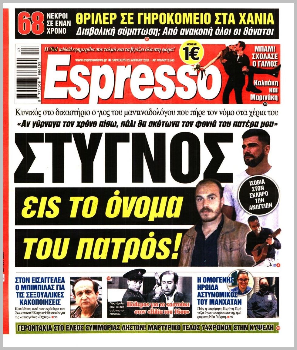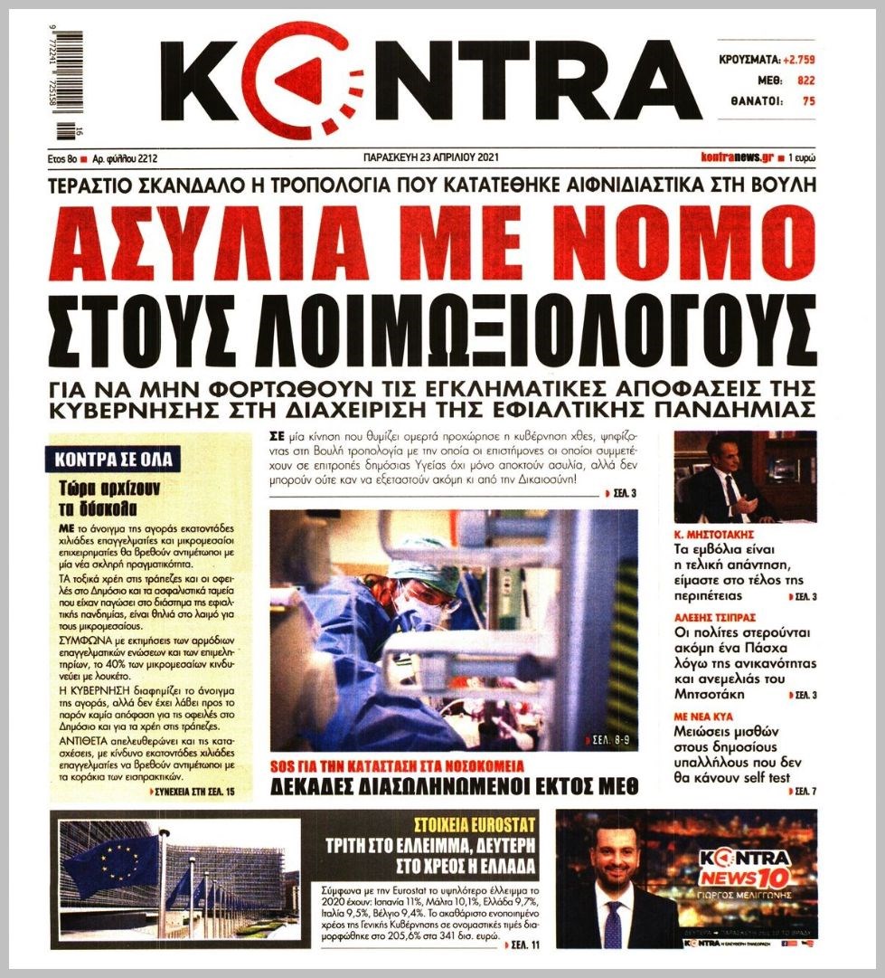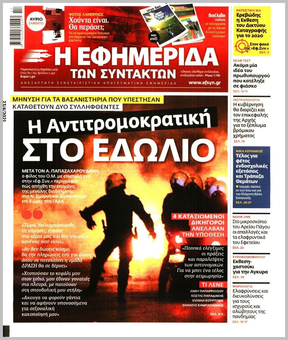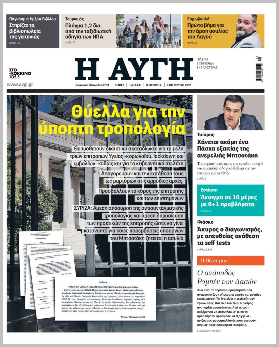 Οι πολιτικές εφημερίδες 23/4/2021 Διονύσης Νίκκας 06:07, Παρασκευή 23 Απριλίου 2021 Media Διαβάστε τα πρωτοσέλιδα των πολιτικών εφημερίδων… ΕΦΗΜΕΡΙΔΕΣ ΠΡΩΤΟΣΕΛΙΔΑ Μοιράσου το: σχολίασε κι εσύ (0 σχόλια) Ακολουθήστε το enikos.gr στο Google News και μάθετε πρώτοι όλες τις ειδήσεις Δείτε όλες τις τελευταίες ειδήσεις από την Ελλάδα και τον Κόσμο στο enikos.gr Ειδήσεις Ροή Ειδήσεων 4 ώρες πριν Υπόθεση Έπσταϊν: Το Υπουργείο Δικαιοσύνης δημοσιοποίησε μια σειρά από εξαιρετικά επεξεργασμένα αρχεία – «Λείπουν τα πιο σημαντικά έγγραφα», λένε οι Δημοκρατικοί 1 ώρα πριν Γιορτές με μπλόκα για τους αγρότες: Ανοίγουν διόδια και μοιράζουν προϊόντα στους ταξιδιώτες 2 ώρες πριν Εξαφάνιση 33χρονου γιατρού στην Κρήτη: «Άναψα τα φώτα, τρόμαξε και άρχισε να τρέχει στα χωράφια» – Η τελευταία διαδρομή και η μαρτυρία «κλειδί» 3 ώρες πριν Ο «χάρτης» με τις αυξήσεις και τις φοροελαφρύνσεις του 2026 – Ποιοι και πόσα κερδίζουν 1 ώρα πριν Τα αρχεία του Έπσταϊν αποκαλύπτουν φωτογραφία του έκπτωτου πρίγκιπα Άντριου – Είναι ξαπλωμένος στην αγκαλιά 5 γυναικών 1 ώρα πριν Μία νέα «χρυσή» περίοδος αρχίζει για 3 ζώδια από σήμερα – «Μία αναπάντεχη ευκαιρία οδηγεί στην επιτυχία» 6 ώρες πριν Αυγά: Πόσα μπορείτε να τρώτε την ημέρα με ασφάλεια για μέγιστη πρόσληψη πρωτεΐνης 4 ώρες πριν Αρχαιολόγοι ανακάλυψαν σε χωράφι απεικόνιση 600 ετών ενός Αγίου – Τα στοιχεία που δείχνουν ότι μαρτύρησε 3 ώρες πριν Αγχώνεται για το χριστουγεννιάτικο δώρο που πήρε στην πλούσια σύντροφό του – «Φοβάμαι πως θα το βρει φθηνιάρικο, φοράει βραχιόλια Cartier» 5 λεπτά πριν Στέφανος Παπαδόπουλος: Η συνέντευξη μετά τη μήνυση στον Γιώργο Μαζωνάκη – «Δεν θέλω να τα βρούμε εξωδικαστικά» 12 λεπτά πριν Τραγωδία στην άσφαλτο στα Χανιά: Νεκρός 37χρονος οδηγός ΙΧ – Τον βρήκαν ώρες μετά το τροχαίο 20 λεπτά πριν Τα Labubu «μετακομίζουν» στο Χόλιγουντ: Η Sony Pictures ετοιμάζει live-action ταινία με τον σκηνοθέτη του «Wonka» 28 λεπτά πριν Νέες ταυτότητες: Μεγάλη αναμονή για ραντεβού στην Αττική – Τέλος τα ταξίδια εκτός Ελλάδος από τον Αύγουστο για όσους δεν έχουν αλλάξει 36 λεπτά πριν Οι 7 φράσεις που δεν λένε ποτέ οι συναισθηματικά έξυπνοι άνθρωποι κατά τη διάρκεια ενός καβγά ENIKOS NETWORK Είστε μόνιμα απρόσεκτοι; 3 σημάδια που δείχνουν ότι μπορεί να είναι σύμπτωμα πάθησης Πόσα κιλά παίρνουμε πραγματικά τα Χριστούγεννα, σύμφωνα με την επιστήμη – Πώς να το αποτρέψουμε; e-ΕΦΚΑ και ΔΥΠΑ: Έρχονται νέες πληρωμές έως τις 24 Δεκεμβρίου – Ποιοι πάνε ταμείο Επίδομα παιδιού: Τι αλλάζει από το 2026 – Το όφελος από τις φορολογικές ελαφρύνσεις Χαρτογραφώντας το «σημείο χωρίς επιστροφή»: Για πρώτη φορά αποκαλύπτεται με λεπτομέρεια το ακανθώδες όριο της ατμόσφαιρας τ... Η Google καταργεί τη λειτουργία «dark web report» – Πώς θα μπορούν οι χρήστες να διαγράφουν τα δεδομένα τους περισσότερα 09:30 , Σάββατο 20 Δεκεμβρίου 2025 «Porto Leone: Στη γειτονιά με τα κόκκινα φανάρια» – Ο Χρόνης αποκαλύπτει στην Αλεξάνδρα το μυστικό για το παιδί της Λένας Η μεγάλη δραματική σειρά του Apha «Porto Leone: Στη γειτονιά με τα κόκκινα φανάρια» μας μεταφέ... 08:14 , Σάββατο 20 Δεκεμβρίου 2025 Τρομεροί γονείς: Η Μαρία Καβογιάννη εισβάλλει στο σπίτι της οικογένειας Στεφανίδη Όσα θα δούμε στο νέο διπλό επεισόδιο της σειράς «Τρομεροί γονείς», σήμερα Σάββατο 20 Δεκεμβρίο... 05:48 , Σάββατο 20 Δεκεμβρίου 2025 Οι οικονομικές εφημερίδες 20/12/2025 Διαβάστε τα πρωτοσέλιδα από τις οικονομικές εφημερίδες, σήμερα 20/12/2025. 05:43 , Σάββατο 20 Δεκεμβρίου 2025 Οι αθλητικέ