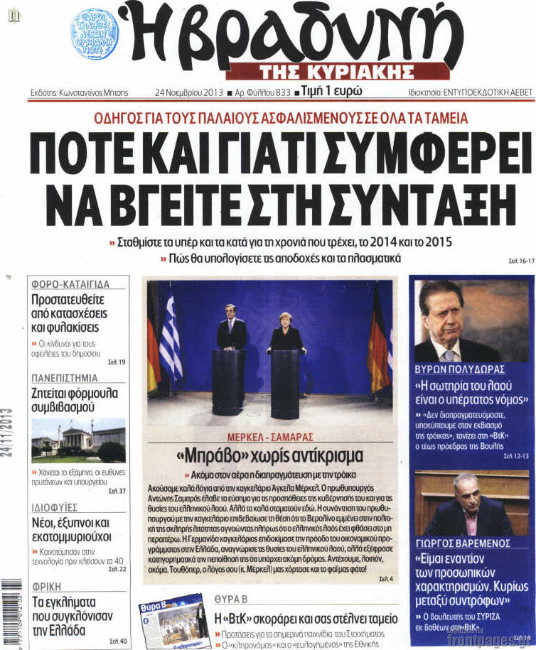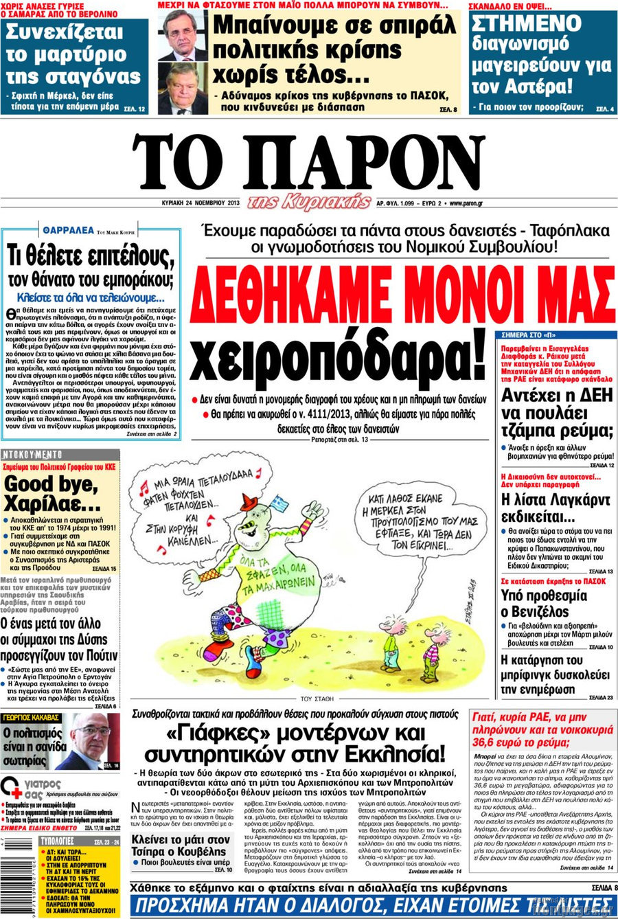 Οι πολιτικές εφημερίδες Enikos Newsroom 08:22, Κυριακή 24 Νοεμβρίου 2013 Media Οι πολιτικές εφημερίδες Διαβάστε τα πρωτοσέλιδα των πολιτικών εφημερίδων: ΕΦΗΜΕΡΙΔΕΣ ΠΟΛΙΤΙΚΕΣ ΕΦΗΜΕΡΙΔΕΣ ΠΡΩΤΟΣΕΛΙΔΑ Μοιράσου το: σχολίασε κι εσύ (0 σχόλια) Ακολουθήστε το enikos.gr στο Google News και μάθετε πρώτοι όλες τις ειδήσεις Δείτε όλες τις τελευταίες ειδήσεις από την Ελλάδα και τον Κόσμο στο enikos.gr Ειδήσεις Ροή Ειδήσεων 4 ώρες πριν Εκτός ευρωομάδας ΣΥΡΙΖΑ ο Νίκος Παππάς μετά την επίθεση στον δημοσιογράφο Νίκο Γιαννόπουλο – Η μήνυση και οι νέες δηλώσεις 5 ώρες πριν «Αγριεύουν» οι αγρότες: «Δεν συντρέχει λόγος συνάντησης με τον πρωθυπουργό» – Ώρα αποφάσεων στη σύσκεψη της Πέμπτης 5 ώρες πριν Κυψέλη: Χωρίς την οικογένειά της δίπλα της απολογήθηκε η 16χρονη – «Της είχε επιτεθεί κάποιος για να την βιάσει, φοβήθηκε και κυκλοφορούσε με μαχαίρι» 4 ώρες πριν Politico: Το πρόβλημα της Ευρώπης δεν είναι το Βέλγιο αλλά ο Ντόναλντ Τραμπ 6 ώρες πριν Αλεξανδρούπολη: Πολυοργανική ανεπάρκεια λόγω υποσιτισμού η αιτία θανάτου του 3χρονου αγοριού 5 ώρες πριν Μυστήριο με τεράστιες κυκλικές πέτρες 200 κιλών – Ανακαλύφθηκαν τυχαία κατά τη διάρκεια οδικών έργων και κανείς δεν ξέρει από πού προέρχονται 6 ώρες πριν Ύπνος: Ειδικός εξηγεί τον πραγματικό λόγο που ξυπνάτε στις 4 τα ξημερώματα – Ο ρόλος των ορμονών και του κιρκάδιου ρυθμού 7 ώρες πριν Αριθμολογία: Οι άνθρωποι που έχουν γεννηθεί αυτές τις 4 ημερομηνίες, είναι τρυφεροί και αγαπούν ανιδιοτελώς 18 ώρες πριν 20 χρόνια τα Χριστούγεννα ξεκινούν στα Public με μεγάλη ποικιλία σε δώρα! 3 λεπτά πριν Αμερικανικά στρατεύματα στον Ισημερινό για «προσωρινή» επιχείρηση κατά των ναρκωτικών 19 λεπτά πριν Βραζιλία: Το Κογκρέσο ενέκρινε σχέδιο νόμου για τη μείωση της ποινής του πρώην προέδρου Μπολσονάρου 33 λεπτά πριν Ένταση στο περιφερειακό συμβούλιο Δυτικής Μακεδονίας: Φωνές, σπρωξιές και διακοπή – Δείτε βίντεο 48 λεπτά πριν Σουδάν: Επιδρομή drone σε χωριό του Νότιου Κορντοφάν – Οκτώ νεκροί 1 ώρα πριν Αλ Τσαντίρι Νιουζ: Η κόρη της Πάολα στο κοινό – Η ατάκα Λαζόπουλου που την έκανε να «κοκκινήσει» ENIKOS NETWORK Αϋπνία: Το κόλπο που θα σας βοηθήσει να κοιμηθείτε απόψε – Είναι απλό και έχει αποτέλεσμα 2,6 εκατομμύρια πολίτες έχουν ήδη εμβολιαστεί κατά της γρίπης ΕΛΣΤΑΤ: Τι δείχνουν τα νέα στοιχεία για τις ηλεκτρονικές παραγγελίες των επιχειρήσεων ΚΕΠΕ: Οι 3 διακριτές συμβολές των ΜμΕ και της μεταποίησης στην ελληνική οικονομία Χαρτογραφώντας το «σημείο χωρίς επιστροφή»: Για πρώτη φορά αποκαλύπτεται με λεπτομέρεια το ακανθώδες όριο της ατμόσφαιρας τ... Η Google καταργεί τη λειτουργία «dark web report» – Πώς θα μπορούν οι χρήστες να διαγράφουν τα δεδομένα τους περισσότερα 02:30 , Πέμπτη 18 Δεκεμβρίου 2025 Αλ Τσαντίρι Νιουζ: Η κόρη της Πάολα στο κοινό – Η ατάκα Λαζόπουλου που την έκανε να «κοκκινήσει» Γιορτινή διάθεση και ευχάριστες στιγμές γέμισε η αποψινή, τελευταία για το 2025, εκπομπή του «... 22:24 , Τετάρτη 17 Δεκεμβρίου 2025 Το Σπίτι Δίπλα Στο Ποτάμι: Σε κίνδυνο η υγεία του Απόστολου – Τι θα δούμε απόψε “Το Σπίτι Δίπλα στο Ποτάμι” ξετυλίγει το νήμα της ζωής των πέντε αδελφών με καταισ... 21:14 , Τετάρτη 17 Δεκεμβρίου 2025 Παιχνίδια Εκδίκησης: Θα καταφέρει ο Χρήστος να κλονίσει την εμπιστοσύνη της Μάγιας απέναντι στον Άγη; Τα «Παιχνίδια Εκδίκησης» έρχονται απόψε στις 22:30, στον Αντ1, με το τελευταίο επεισόδιο της χ... 20:57 , Τετάρτη 17 Δεκεμβρίου 2025 Άγιος Έρωτας: Η Χλόη καταθέτει εναντίον του πατέρα της και ο 