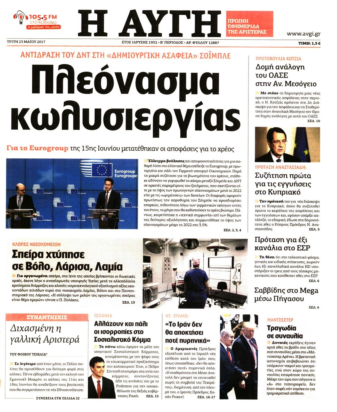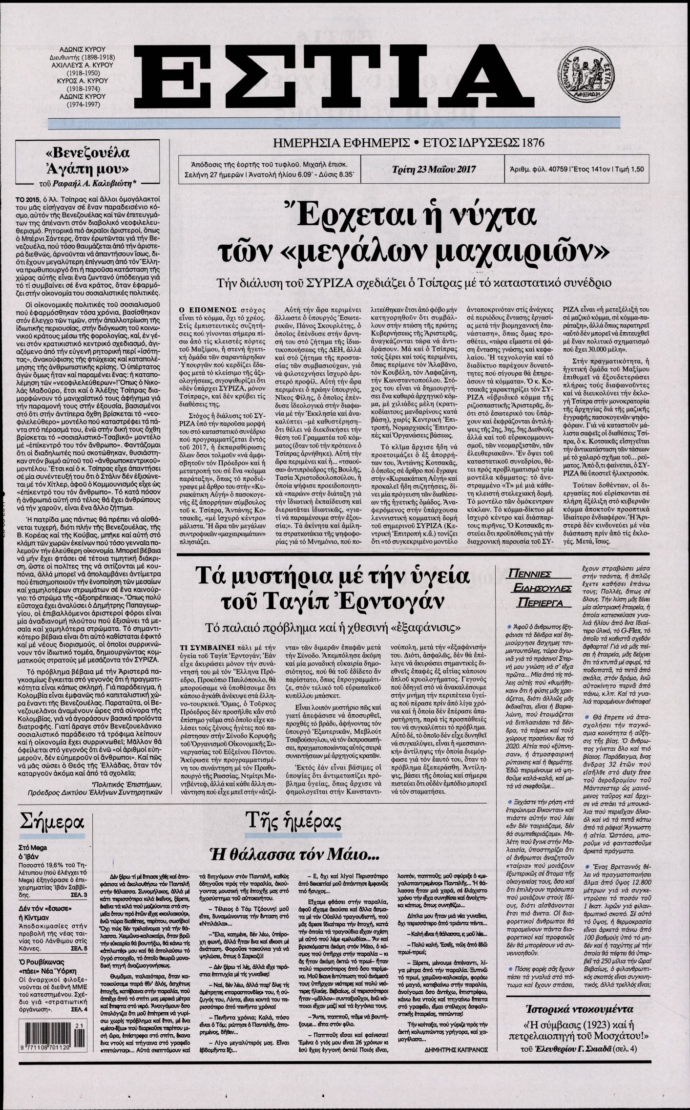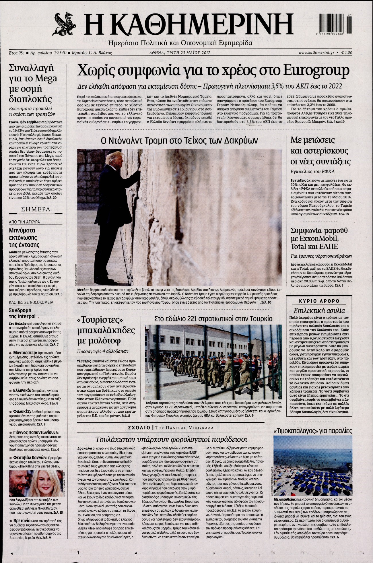 Οι πολιτικές εφημερίδες 23/5/2017 Enikos Newsroom 00:00, Δευτέρα 01 Ιανουαρίου 0001 Media Διαβάστε τα σημερινά πρωτοσέλιδα των πολιτικών εφημερίδων: ΠΟΛΙΤΙΚΕΣ ΕΦΗΜΕΡΙΔΕΣ ΠΡΩΤΟΣΕΛΙΔΑ Μοιράσου το: σχολίασε κι εσύ (0 σχόλια) Ακολουθήστε το enikos.gr στο Google News και μάθετε πρώτοι όλες τις ειδήσεις Δείτε όλες τις τελευταίες ειδήσεις από την Ελλάδα και τον Κόσμο στο enikos.gr Ειδήσεις Ροή Ειδήσεων 4 ώρες πριν «Τεστ» υπομονής η χριστουγεννιάτικη έξοδος: Οι ουρές χιλιομέτρων και η απόφαση να ανοίξουν επιπλέον λωρίδες – Εν αναμονή των επόμενων κινήσεων των αγροτών 4 ώρες πριν Τραγωδία στην Τουρκία: Νεκρός ο αρχηγός του Γενικού Επιτελείου της Λιβύης – Συνετρίβη λίγο μετά την απογείωση το ιδιωτικό τζετ που τον μετέφερε – ΦΩΤΟ και ΒΙΝΤΕΟ 4 ώρες πριν Θάνατος 3χρονου στην Αλεξανδρούπολη: «Το παιδί είχε φάει το προηγούμενο βράδυ» υποστηρίζει η μητέρα του – Στο νοσοκομείο τα αδελφάκια του 5 ώρες πριν Σύλληψη 35χρονου στα Καλύβια: Πιθανή σχέση του με τον σεσημασμένο 37χρονο Κρητικό αναζητούν οι Αρχές – Τα συμβόλαια θανάτου και το σενάριο για νέο χτύπημα 8 ώρες πριν Ιλίσια: Διασωληνωμένος και σε σοβαρή κατάσταση ο συντηρητής του ασανσέρ – Πώς έγινε το ατύχημα στο σούπερ μάρκετ 4 ώρες πριν Ανακαλύφθηκε τεράστιος κυκλικός λαβύρινθος που «οδηγεί» στην… Αρχαία Ρώμη – Τα ευρήματα με «άρωμα« Κρήτης 5 ώρες πριν Ύπνος: Ειδικός μοιράζεται 6 απλές συνήθειες που θα σας βοηθήσουν να κοιμάστε πιο γρήγορα κάθε βράδυ 6 ώρες πριν Αριθμολογία: Οι άνθρωποι με αυτές τις 4 ημερομηνίες γέννησης, διαθέτουν ένα σπάνιο χάρισμα -«Διαβάζουν τις ψυχές των άλλων» 18 ώρες πριν Η Coca-Cola και ο Ελληνικός Ερυθρός Σταυρός μαζί αυτά τα Χριστούγεννα: Μια μεγάλη αγκαλιά για τους συνανθρώπους μας που έχουν ανάγκη 26 λεπτά πριν Φάμελλος: «Αποχαιρετούμε με θλίψη τη Σύλβα Ακρίτα – Μια σπουδαία Ελληνίδα που αφήνει ανεξίτηλο σημάδι στην ιστορία του τόπου μας» 43 λεπτά πριν ΗΠΑ: Κυρώσεις σε πέντε Ευρωπαίους αξιωματούχους για τη ρύθμιση των ψηφιακών υπηρεσιών – Σφοδρές αντιδράσεις 1 ώρα πριν Νίκος Ανδρουλάκης: Η Σύλβα Ακρίτα ήταν μια σπουδαία προσωπικότητα της Δημοκρατικής Παράταξης 1 ώρα πριν Επική στιγμή στο reunion του Παρά Πέντε: Η Ελισάβετ Κωνσταντινίδου τραγούδησε ξανά Τάμτα πάνω σε… σκάλα – ΒΙΝΤΕΟ 2 ώρες πριν Λιόν: Ανακοινώθηκε ο δανεισμός του Έντρικ από την Ρεάλ Μαδρίτης ENIKOS NETWORK Πώς μας επηρεάζει η Χριστουγεννιάτικη μουσική; Τι μπορεί να σημαίνει αν δεν σας αρέσει Συμβουλές για να αποφευχθούν παιδικά ατυχήματα τα Χριστούγεννα Εορταστικό ωράριο: Ανοιχτά τα καταστήματα την τελευταία Κυριακή του χρόνου Αυξήσεις στις συντάξεις: Πόσα θα κερδίσετε από τον Ιανουάριο Ο Google Assistant θα παραμείνει λίγο περισσότερο για ορισμένους χρήστες Android Τεστ προσωπικότητας: Το βάζο που θα επιλέξετε αποκαλύπτει πώς λύνετε προβλήματα στη ζωή σας περισσότερα 01:55 , Τετάρτη 24 Δεκεμβρίου 2025 Επική στιγμή στο reunion του Παρά Πέντε: Η Ελισάβετ Κωνσταντινίδου τραγούδησε ξανά Τάμτα πάνω σε… σκάλα – ΒΙΝΤΕΟ Το cast και η παραγωγή του Παρά Πέντε επανενώθηκαν το βράδυ της Τρίτης για μοναδικό επετειακό ... 23:21 , Τρίτη 23 Δεκεμβρίου 2025 Παρά Πέντε: Συγκίνηση και ενθουσιασμός στο «X» με το reunion – «Σαν να μην πέρασε μια μέρα…» Το «Παρά Πέντε» επέστρεψε το βράδυ της Τρίτης (23/12) με ένα επετειακό επεισόδιο. Η θρυλική σε... 23:12 , Τρίτη 23 Δεκεμβρίου 2025 Ο Χριστουγεννιάτικος Τηλεμαραθώνιος του ΑΝΤ1 συγκέντρωσε 3.330.000 ευρώ και θα στηρίξει 300.000 παιδιά Με μεγάλη επιτυχία, πραγματο