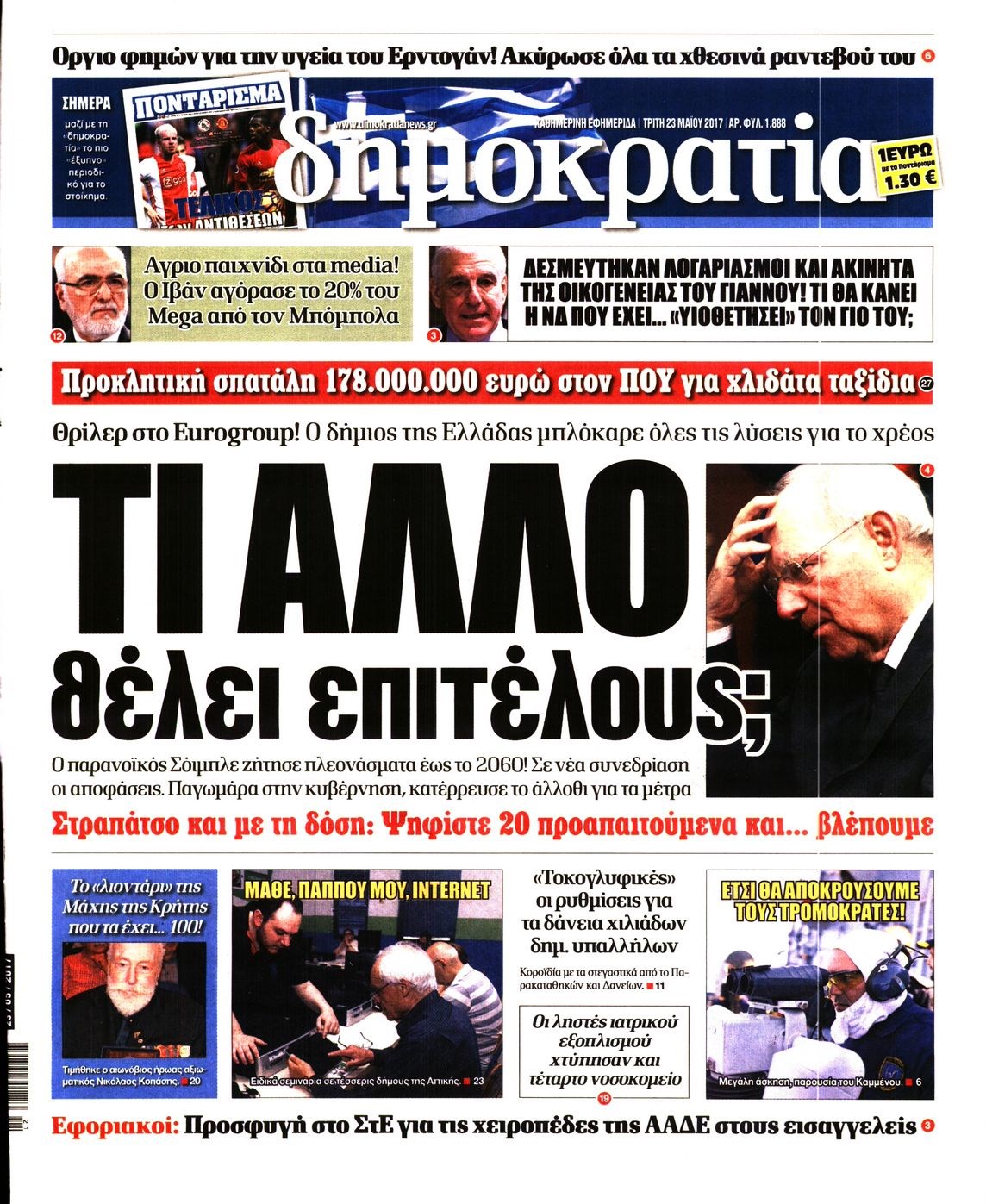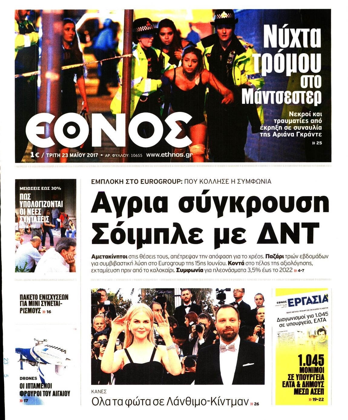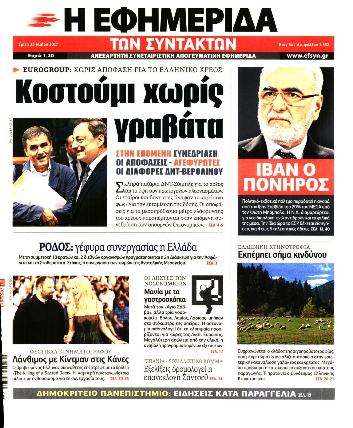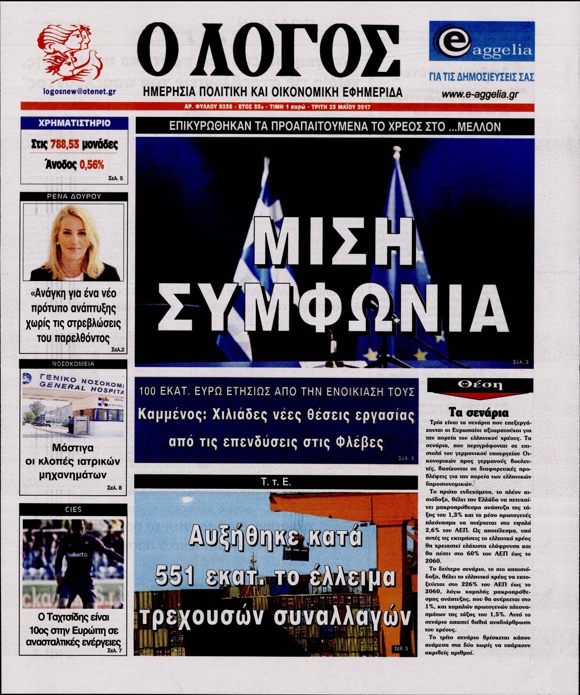Οι πολιτικές εφημερίδες 23/5/2017 Enikos Newsroom 00:00, Δευτέρα 01 Ιανουαρίου 0001 Media Διαβάστε τα σημερινά πρωτοσέλιδα των πολιτικών εφημερίδων: ΠΟΛΙΤΙΚΕΣ ΕΦΗΜΕΡΙΔΕΣ ΠΡΩΤΟΣΕΛΙΔΑ Μοιράσου το: σχολίασε κι εσύ (0 σχόλια) Ακολουθήστε το enikos.gr στο Google News και μάθετε πρώτοι όλες τις ειδήσεις Δείτε όλες τις τελευταίες ειδήσεις από την Ελλάδα και τον Κόσμο στο enikos.gr Ειδήσεις Ροή Ειδήσεων 4 ώρες πριν «Τεστ» υπομονής η χριστουγεννιάτικη έξοδος: Οι ουρές χιλιομέτρων και η απόφαση να ανοίξουν επιπλέον λωρίδες – Εν αναμονή των επόμενων κινήσεων των αγροτών 4 ώρες πριν Τραγωδία στην Τουρκία: Νεκρός ο αρχηγός του Γενικού Επιτελείου της Λιβύης – Συνετρίβη λίγο μετά την απογείωση το ιδιωτικό τζετ που τον μετέφερε – ΦΩΤΟ και ΒΙΝΤΕΟ 4 ώρες πριν Θάνατος 3χρονου στην Αλεξανδρούπολη: «Το παιδί είχε φάει το προηγούμενο βράδυ» υποστηρίζει η μητέρα του – Στο νοσοκομείο τα αδελφάκια του 5 ώρες πριν Σύλληψη 35χρονου στα Καλύβια: Πιθανή σχέση του με τον σεσημασμένο 37χρονο Κρητικό αναζητούν οι Αρχές – Τα συμβόλαια θανάτου και το σενάριο για νέο χτύπημα 8 ώρες πριν Ιλίσια: Διασωληνωμένος και σε σοβαρή κατάσταση ο συντηρητής του ασανσέρ – Πώς έγινε το ατύχημα στο σούπερ μάρκετ 4 ώρες πριν Ανακαλύφθηκε τεράστιος κυκλικός λαβύρινθος που «οδηγεί» στην… Αρχαία Ρώμη – Τα ευρήματα με «άρωμα« Κρήτης 5 ώρες πριν Ύπνος: Ειδικός μοιράζεται 6 απλές συνήθειες που θα σας βοηθήσουν να κοιμάστε πιο γρήγορα κάθε βράδυ 6 ώρες πριν Αριθμολογία: Οι άνθρωποι με αυτές τις 4 ημερομηνίες γέννησης, διαθέτουν ένα σπάνιο χάρισμα -«Διαβάζουν τις ψυχές των άλλων» 18 ώρες πριν Η Coca-Cola και ο Ελληνικός Ερυθρός Σταυρός μαζί αυτά τα Χριστούγεννα: Μια μεγάλη αγκαλιά για τους συνανθρώπους μας που έχουν ανάγκη 26 λεπτά πριν Φάμελλος: «Αποχαιρετούμε με θλίψη τη Σύλβα Ακρίτα – Μια σπουδαία Ελληνίδα που αφήνει ανεξίτηλο σημάδι στην ιστορία του τόπου μας» 43 λεπτά πριν ΗΠΑ: Κυρώσεις σε πέντε Ευρωπαίους αξιωματούχους για τη ρύθμιση των ψηφιακών υπηρεσιών – Σφοδρές αντιδράσεις 1 ώρα πριν Νίκος Ανδρουλάκης: Η Σύλβα Ακρίτα ήταν μια σπουδαία προσωπικότητα της Δημοκρατικής Παράταξης 1 ώρα πριν Επική στιγμή στο reunion του Παρά Πέντε: Η Ελισάβετ Κωνσταντινίδου τραγούδησε ξανά Τάμτα πάνω σε… σκάλα – ΒΙΝΤΕΟ 2 ώρες πριν Λιόν: Ανακοινώθηκε ο δανεισμός του Έντρικ από την Ρεάλ Μαδρίτης ENIKOS NETWORK Πώς μας επηρεάζει η Χριστουγεννιάτικη μουσική; Τι μπορεί να σημαίνει αν δεν σας αρέσει Συμβουλές για να αποφευχθούν παιδικά ατυχήματα τα Χριστούγεννα Εορταστικό ωράριο: Ανοιχτά τα καταστήματα την τελευταία Κυριακή του χρόνου Αυξήσεις στις συντάξεις: Πόσα θα κερδίσετε από τον Ιανουάριο Ο Google Assistant θα παραμείνει λίγο περισσότερο για ορισμένους χρήστες Android Τεστ προσωπικότητας: Το βάζο που θα επιλέξετε αποκαλύπτει πώς λύνετε προβλήματα στη ζωή σας περισσότερα 01:55 , Τετάρτη 24 Δεκεμβρίου 2025 Επική στιγμή στο reunion του Παρά Πέντε: Η Ελισάβετ Κωνσταντινίδου τραγούδησε ξανά Τάμτα πάνω σε… σκάλα – ΒΙΝΤΕΟ Το cast και η παραγωγή του Παρά Πέντε επανενώθηκαν το βράδυ της Τρίτης για μοναδικό επετειακό ... 23:21 , Τρίτη 23 Δεκεμβρίου 2025 Παρά Πέντε: Συγκίνηση και ενθουσιασμός στο «X» με το reunion – «Σαν να μην πέρασε μια μέρα…» Το «Παρά Πέντε» επέστρεψε το βράδυ της Τρίτης (23/12) με ένα επετειακό επεισόδιο. Η θρυλική σε... 23:12 , Τρίτη 23 Δεκεμβρίου 2025 Ο Χριστουγεννιάτικος Τηλεμαραθώνιος του ΑΝΤ1 συγκέντρωσε 3.330.000 ευρώ και θα στηρίξει 300.000 παιδιά Με μεγάλη επιτυχία, πραγματο