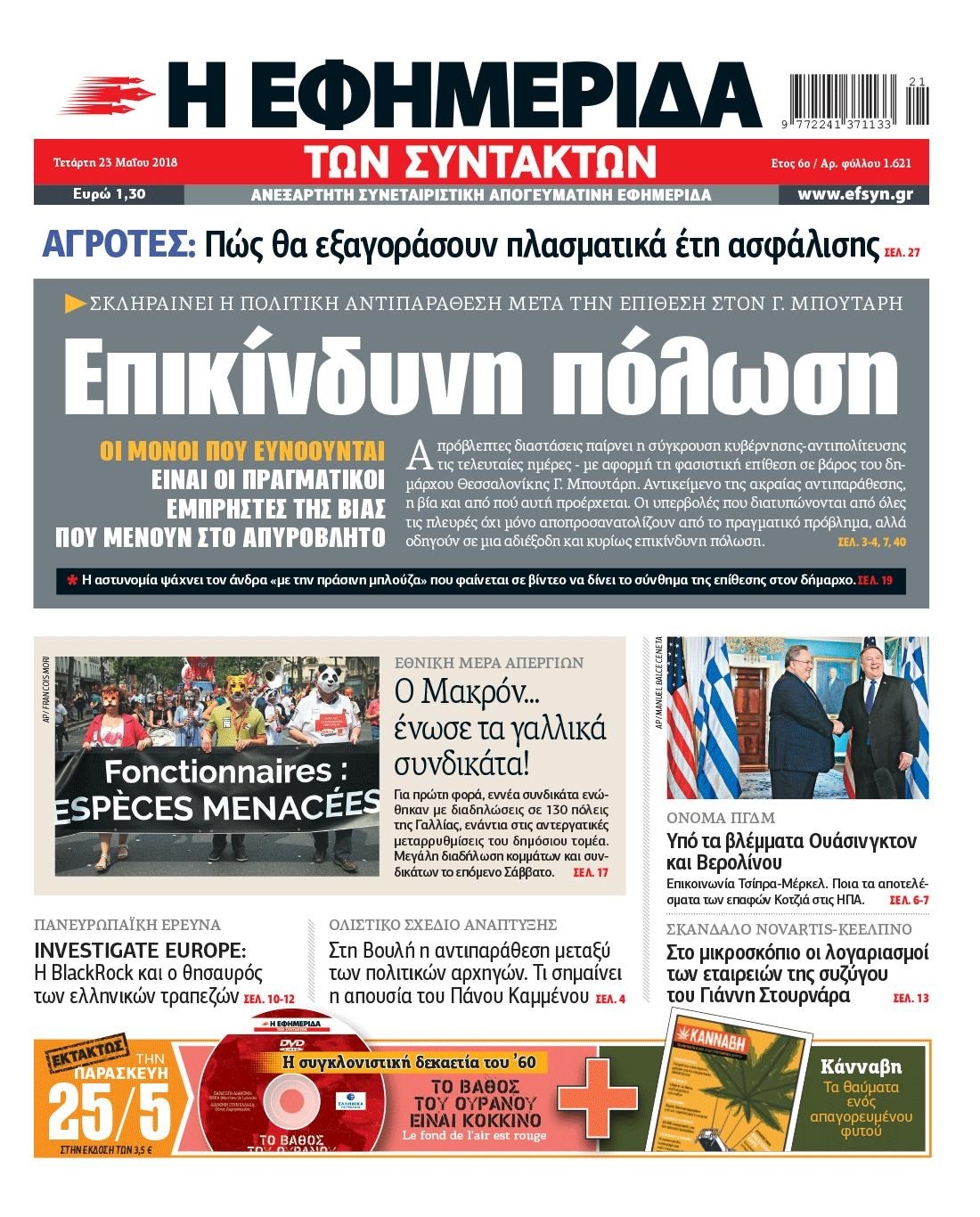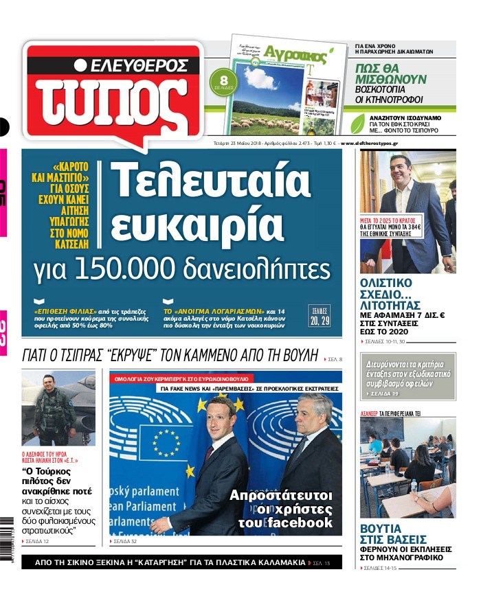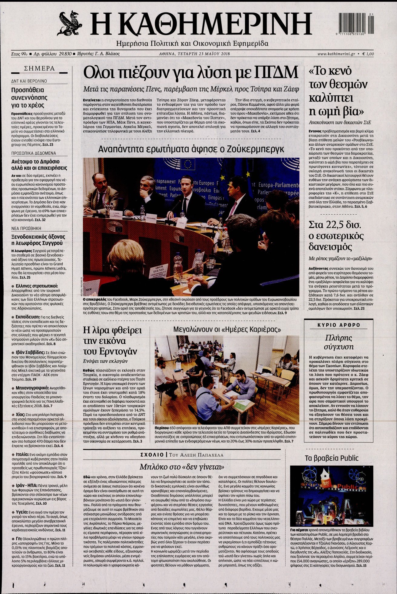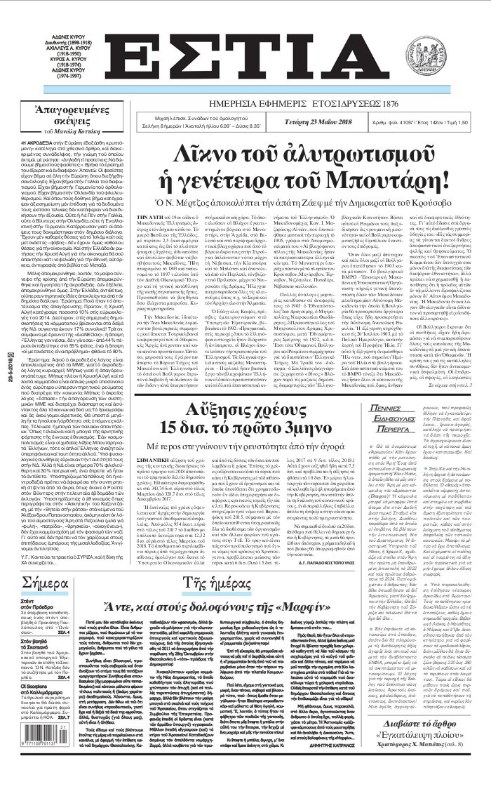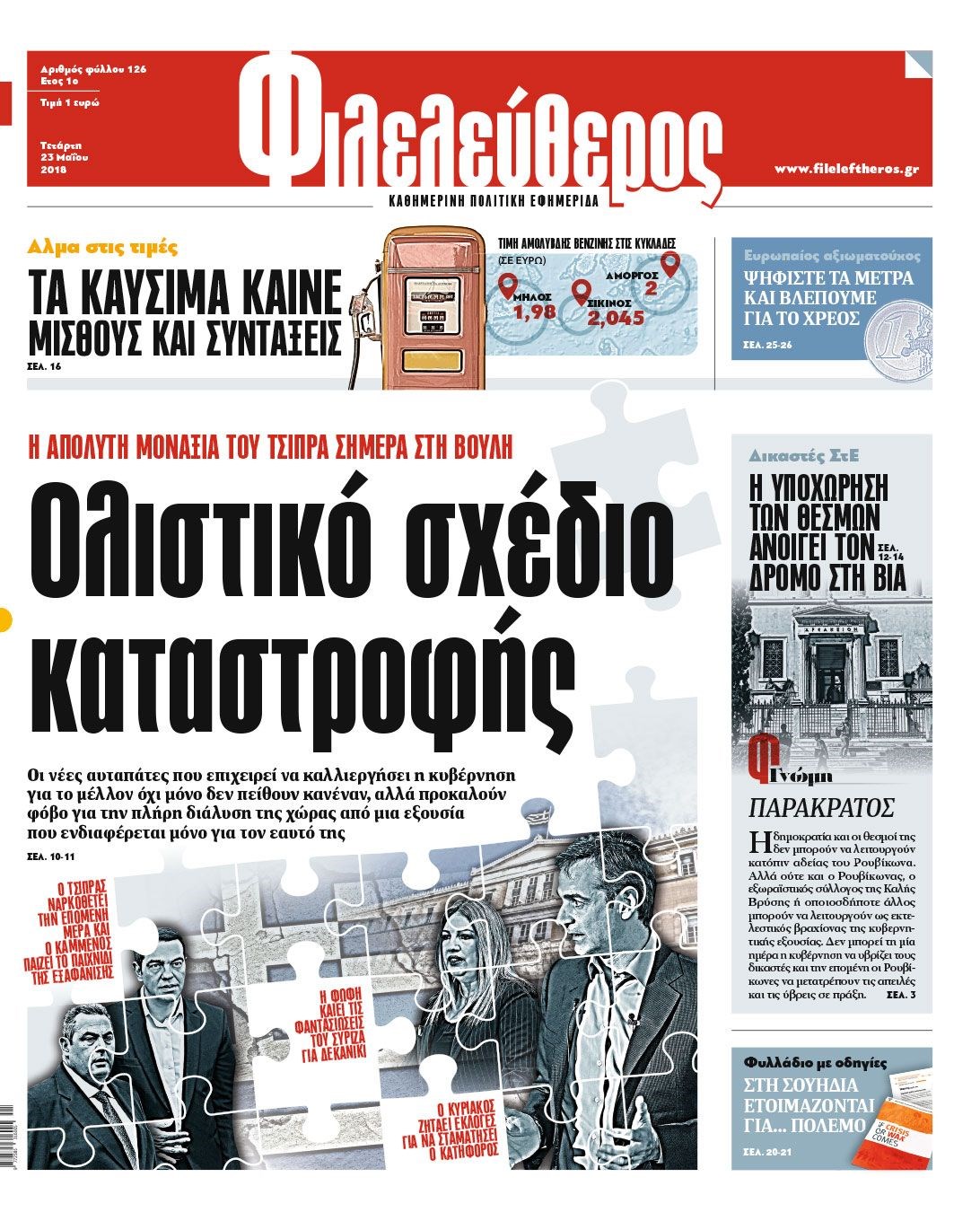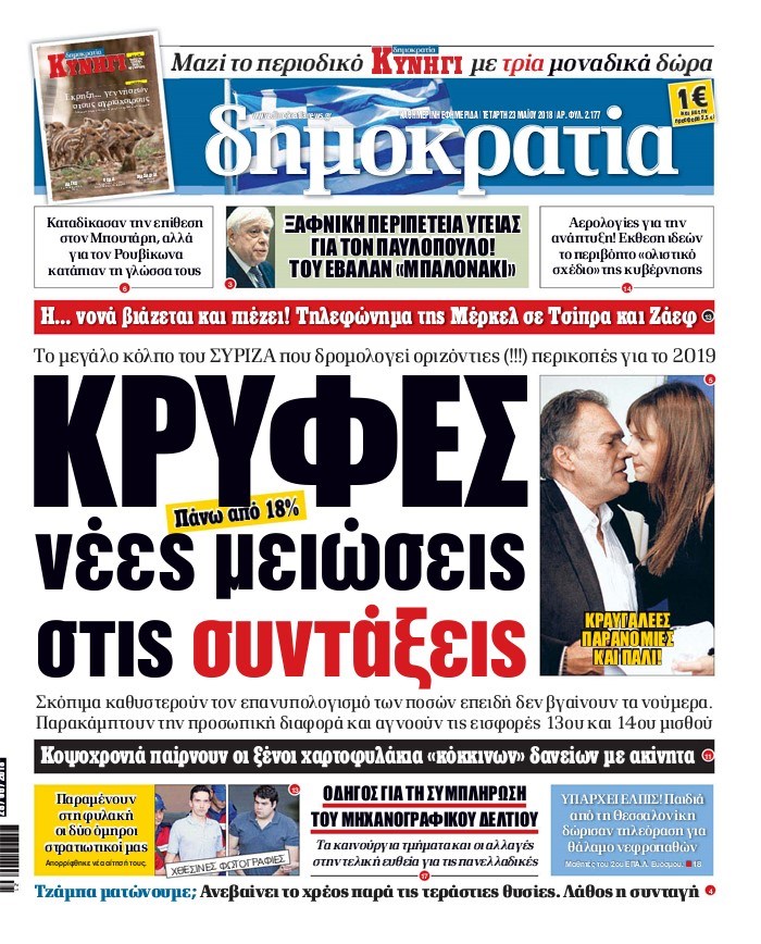 Οι πολιτικές εφημερίδες 23/5/2018 Κώστας Τεό 06:14, Τετάρτη 23 Μαΐου 2018 Media Διαβάστε τα σημερινά πρωτοσέλιδα των πολιτικών εφημερίδων: ΠΟΛΙΤΙΚΕΣ ΕΦΗΜΕΡΙΔΕΣ ΠΡΩΤΟΣΕΛΙΔΑ Μοιράσου το: σχολίασε κι εσύ (0 σχόλια) Ακολουθήστε το enikos.gr στο Google News και μάθετε πρώτοι όλες τις ειδήσεις Δείτε όλες τις τελευταίες ειδήσεις από την Ελλάδα και τον Κόσμο στο enikos.gr Ειδήσεις Ροή Ειδήσεων 7 ώρες πριν Κύκλωμα διακίνησης ναρκωτικών σε σχολεία: Βίντεο ντοκουμέντο από τα βασανιστήρια στους ανήλικους – Συζητούσαν για το πώς θα κάνουν «ξέπλυμα χρήματος» 6 ώρες πριν Κλιμακώνουν τις κινητοποιήσεις τους οι αγρότες: Κλείνουν τη Δευτέρα τις σήραγγες των Τεμπών για τα φορτηγά – Ανοίγουν την Τρίτη τους δρόμους για τους εκδρομείς 7 ώρες πριν Αιματηρό επεισόδιο στον Άγιο Παντελεήμονα – Δύο τραυματίες, αναζητείται ο δράστης 6 ώρες πριν ΗΠΑ: Αυξάνουν την πίεση στην Βενεζουέλα – Το νέο ρεσάλτο σε τάνκερ και ο στόχος του Τραμπ 6 ώρες πριν Κασσελάκης για παραίτηση Μάλαμα: «Η πορεία μας δεν θα καθοριστεί από μεμονωμένα πρόσωπα, μηχανισμούς και προσωπικές ατζέντες» 5 ώρες πριν Αρχαιολογικό θρίλερ στην καρδιά της Ευρώπης: Παράξενο θραύσμα με ανάγλυφα και σφηνοειδή γραφή ανακαλύφθηκε σε μέρος που δεν περίμενε κανείς 6 ώρες πριν Ύπνος: Τι είναι ο «κανόνας 3-3-3» που χρησιμοποιεί ένας γιατρός για να ξεχωρίσει την κόπωση από την αϋπνία 7 ώρες πριν Αριθμολογία: Οι άνθρωποι που έχουν γεννηθεί αυτές τις 4 ημερομηνίες, είναι οι πιο πιστοί και αφοσιωμένοι σύντροφοι 2 ημέρες πριν Enerwave: Το νέο «ρεύμα» στη λιανική ενέργειας που αλλάζει την εμπειρία του καταναλωτή 12 λεπτά πριν Σε ύψη ρεκόρ ο χρυσός λόγω των προσδοκιών για μειώσεις επιτοκίων από τη FED 28 λεπτά πριν Βαριά ήττα για τους Σοσιαλιστές στη δυτική Ισπανία – Το PP αύξησε τις έδρες του 42 λεπτά πριν Οργή του ιδιοκτήτη του ΟΦΗ για τη διαιτησία στον αγώνα με την ΑΕΚ 58 λεπτά πριν Ρωσία: Ουκρανική επίθεση με drone σε δύο πλοία στο Κρασνοντάρ της Ρωσίας 1 ώρα πριν Συνοικισμός Κορίνθου: Αυτοκίνητο τυλίχτηκε στις φλόγες – Συναγερμός στην Πυροσβεστική ENIKOS NETWORK Οι γυναίκες έχουν βρει μια νέα απόλαυση στην κρεβατοκάμαρα που οι περισσότεροι άνδρες αγνοούν Christmas glow: 5 χρυσές συμβουλές για επιδερμίδα που λάμπει από ομορφιά τα Χριστούγεννα Νέο έτος ρεκόρ για τον ελληνικό τουρισμό το 2025: «Είμαστε μέσα στους 10 πλέον επισκέψιμους προορισμούς παγκοσμίως» λέει η ... Τιμές καυσίμων: Πόσο θα πληρώσουν οι εκδρομείς των Χριστουγέννων – Το κόστος μετακινήσεων σε δημοφιλείς προορισμούς Χαρτογραφώντας το «σημείο χωρίς επιστροφή»: Για πρώτη φορά αποκαλύπτεται με λεπτομέρεια το ακανθώδες όριο της ατμόσφαιρας τ... Η Google καταργεί τη λειτουργία «dark web report» – Πώς θα μπορούν οι χρήστες να διαγράφουν τα δεδομένα τους περισσότερα 02:45 , Δευτέρα 22 Δεκεμβρίου 2025 Ξέσπασε ο Γιώργος Μαζωνάκης μετά τις καταγγελίες: «Εκπομπές στην τηλεόραση ξεφτιλίζουν ανθρώπους» Στο προσκήνιο της επικαιρότητας βρέθηκε ξανά ο Γιώργος Μαζωνάκης, για δεύτερη φορά μέσα σε λίγ... 00:13 , Δευτέρα 22 Δεκεμβρίου 2025 MasterChef: Στον… αέρα το τρέιλερ του 10ου κύκλου – ΒΙΝΤΕΟ Κυκλοφόρησε το τρέιλερ για τον 10ο κύκλο του MasterChef, σηματοδοτώντας την επιστροφή του δημο... 21:30 , Κυριακή 21 Δεκεμβρίου 2025 Ο Δικαστής: Στα χέρια της Αστυνομίας βίντεο, που ανατρέπει όλα τα δεδομένα – Στενεύει ο κλοιός γύρω από τον Δικαστή Καταιγιστικές εξελίξεις στο τελευταίο επεισόδιο της χρονιάς της σειράς “Ο Δικαστής”... 17:18 , Κυριακή 21 Δεκεμβρίου 2025 «