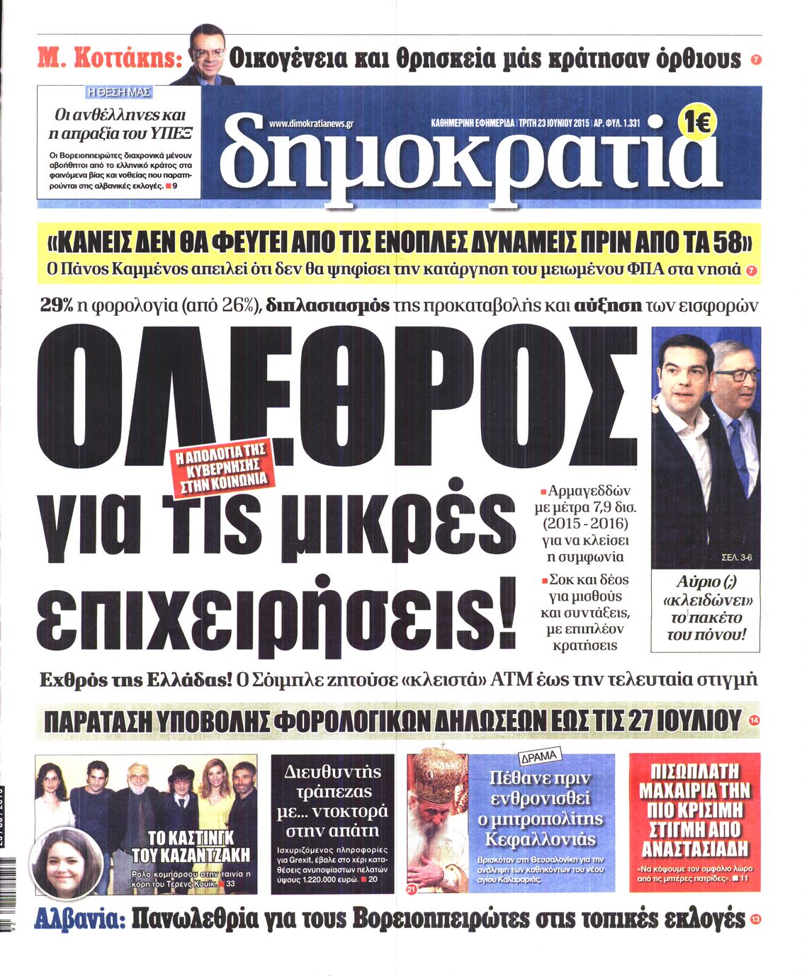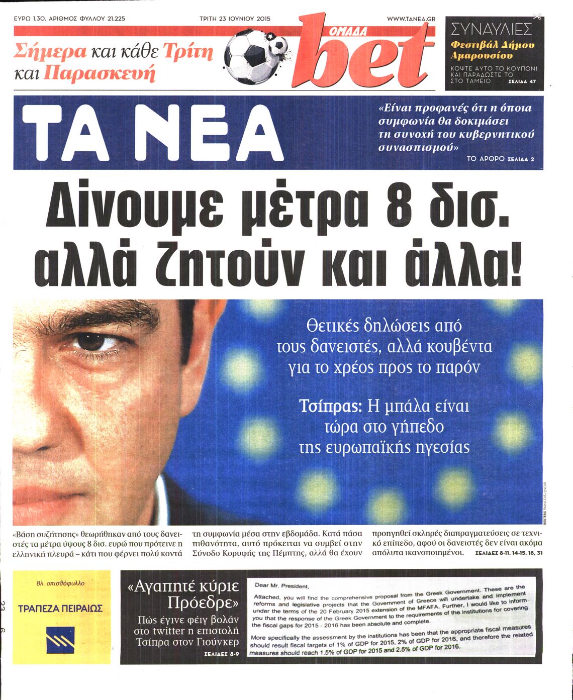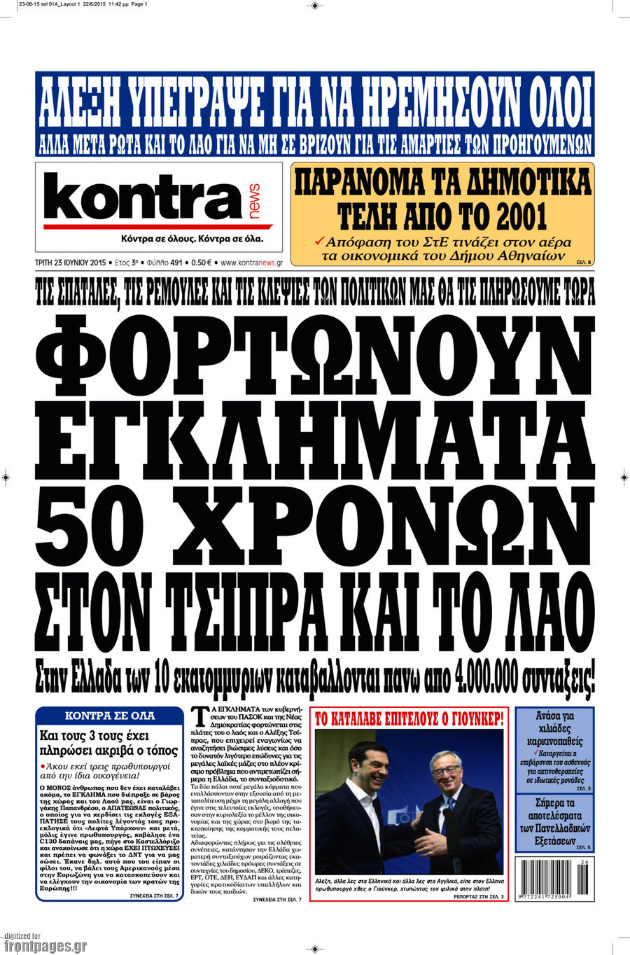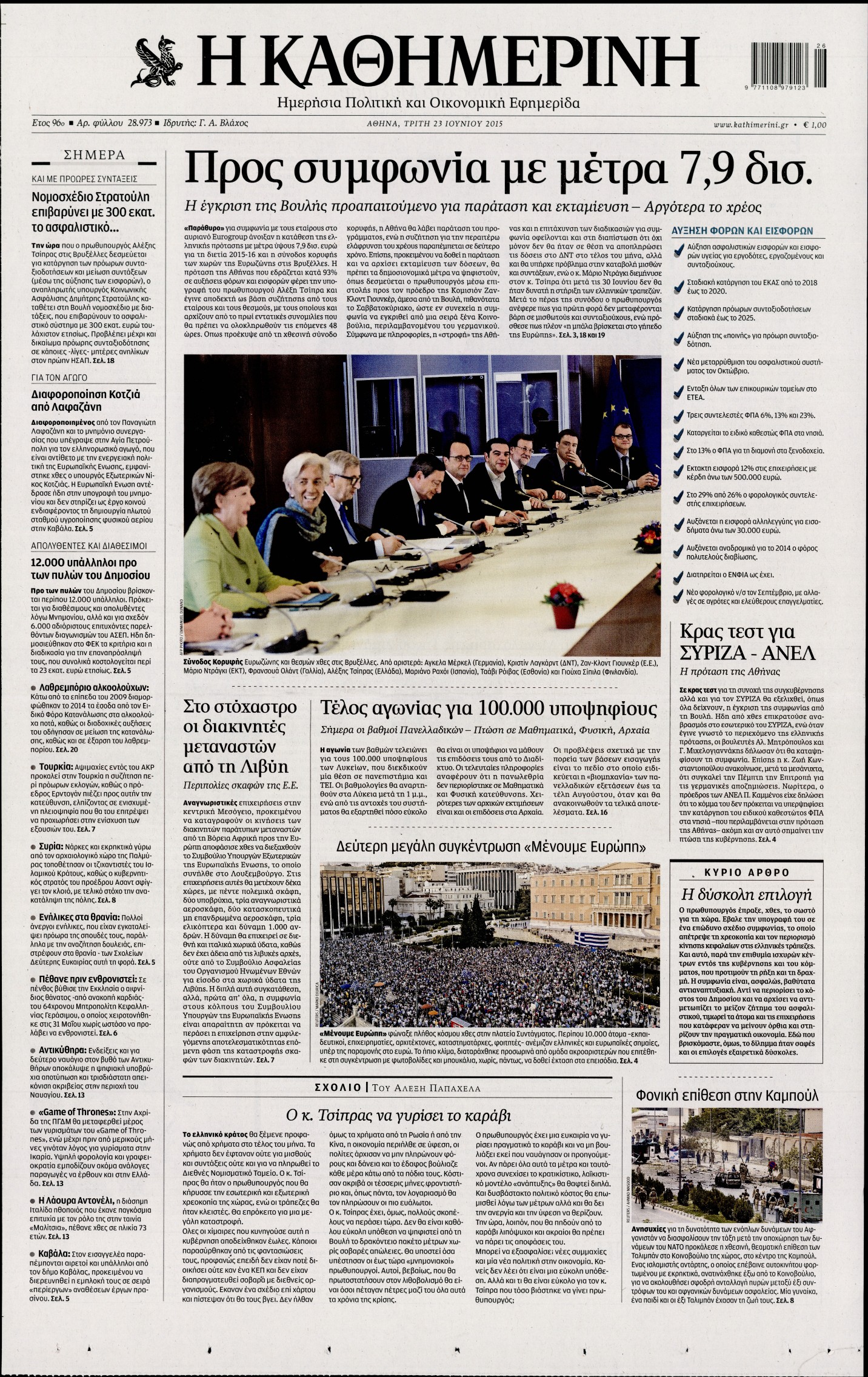 Οι πολιτικές εφημερίδες 23/6/2015 Enikos Newsroom 06:53, Τρίτη 23 Ιουνίου 2015 Media Διαβάστε τα σημερινά πρωτοσέλιδα των πολιτικών εφημερίδων: ΠΟΛΙΤΙΚΕΣ ΕΦΗΜΕΡΙΔΕΣ ΠΡΩΤΟΣΕΛΙΔΑ Μοιράσου το: σχολίασε κι εσύ (0 σχόλια) Ακολουθήστε το enikos.gr στο Google News και μάθετε πρώτοι όλες τις ειδήσεις Δείτε όλες τις τελευταίες ειδήσεις από την Ελλάδα και τον Κόσμο στο enikos.gr Ειδήσεις Ροή Ειδήσεων 2 ώρες πριν Γιορτές με μπλόκα για τους αγρότες: Ανοίγουν διόδια και μοιράζουν προϊόντα στους ταξιδιώτες 8 λεπτά πριν Τσιάρας για αγρότες: Ικανοποιείται το αίτημα για αφορολόγητο πετρέλαιο στη μάνικα, πρόθεσή μας να μειωθεί ακόμη περισσότερο η τιμή στο ρεύμα 22 λεπτά πριν Αρχεία Έπσταϊν: Οι συγκλονιστικές φωτογραφίες – Ο Μάικλ Τζάκσον, ο Μικ Τζάγκερ και ο Κέβιν Σπέισι ανάμεσα στους διάσημους που απεικονίζονται 2 ώρες πριν Νέες ταυτότητες: Μεγάλη αναμονή για ραντεβού στην Αττική – Τέλος τα ταξίδια εκτός Ελλάδος από τον Αύγουστο για όσους δεν έχουν αλλάξει 54 λεπτά πριν Ινδία: Επτά ελέφαντες σκοτώθηκαν κατά τη σύγκρουση επιβατικού τρένου με κοπάδι 3 ώρες πριν Μία νέα «χρυσή» περίοδος αρχίζει για 3 ζώδια από σήμερα – «Μία αναπάντεχη ευκαιρία οδηγεί στην επιτυχία» 5 ώρες πριν Αρχαιολόγοι ανακάλυψαν σε χωράφι απεικόνιση 600 ετών ενός Αγίου – Τα στοιχεία που δείχνουν ότι μαρτύρησε 4 ώρες πριν Αγχώνεται για το χριστουγεννιάτικο δώρο που πήρε στην πλούσια σύντροφό του – «Φοβάμαι πως θα το βρει φθηνιάρικο, φοράει βραχιόλια Cartier» 52 λεπτά πριν Διαιτολόγος αποκαλύπτει 9 πρωινές συνήθειες που «λιώνουν» το κοιλιακό λίπος – «Υποστηρίζουν την υγιεινή απώλεια βάρους» 8 λεπτά πριν Τσιάρας για αγρότες: Ικανοποιείται το αίτημα για αφορολόγητο πετρέλαιο στη μάνικα, πρόθεσή μας να μειωθεί ακόμη περισσότερο η τιμή στο ρεύμα 15 λεπτά πριν Η Ζιζέλ Μπούντχεν παντρεύτηκε τον δάσκαλο ζίου-ζίτσου, Χοακίμ Βαλέντε 22 λεπτά πριν Αρχεία Έπσταϊν: Οι συγκλονιστικές φωτογραφίες – Ο Μάικλ Τζάκσον, ο Μικ Τζάγκερ και ο Κέβιν Σπέισι ανάμεσα στους διάσημους που απεικονίζονται 31 λεπτά πριν Χρήστος Μάντακας: «Θα μπορούσα να είχα φύγει από τη ζωή, δεν μπορούσα να περπατήσω…» 38 λεπτά πριν Εντυπωσιακό βίντεο από «τσουνάμι» πάγου στη Σιβηρία – Πώς προκαλείται το σπάνιο φαινόμενο ENIKOS NETWORK Είστε μόνιμα απρόσεκτοι; 3 σημάδια που δείχνουν ότι μπορεί να είναι σύμπτωμα πάθησης Πόσα κιλά παίρνουμε πραγματικά τα Χριστούγεννα, σύμφωνα με την επιστήμη – Πώς να το αποτρέψουμε; Χρήστος Δήμας: Στα 2,5 εκατ. ευρώ την ημέρα το κόστος από το άνοιγμα των διοδίων από τους αγρότες – Θα αξιώσουν αποζημίωση ... Χριστούγεννα και Πρωτοχρονιά: Πώς αμείβονται όσοι εργαστούν Χαρτογραφώντας το «σημείο χωρίς επιστροφή»: Για πρώτη φορά αποκαλύπτεται με λεπτομέρεια το ακανθώδες όριο της ατμόσφαιρας τ... Η Google καταργεί τη λειτουργία «dark web report» – Πώς θα μπορούν οι χρήστες να διαγράφουν τα δεδομένα τους περισσότερα 11:41 , Σάββατο 20 Δεκεμβρίου 2025 «Η αγάπη δεν χάνεται ποτέ»: Η μικρού μήκους ταινία κινουμένων σχεδίων που θέτει ερωτήματα για τη ζωή και τον θάνατο Ο θάνατος είναι ένα από τα πιο σκληρά θέματα που καλείται να διαχειριστεί κάποιος στη διάρκεια... 09:30 , Σάββατο 20 Δεκεμβρίου 2025 «Porto Leone: Στη γειτονιά με τα κόκκινα φανάρια» – Ο Χρόνης αποκαλύπτει στην Αλεξάνδρα το μυστικό για το παιδί της Λένας Η μεγάλη δραματική σειρά του Apha «Porto Leone: Στη γειτονιά με τα κόκκινα φανάρια» μας μεταφέ... 08:14 , Σάββατο 20 Δεκεμβρίου 2025 Τρομεροί γονείς: Η Μαρία Καβογιάννη εισβάλλει