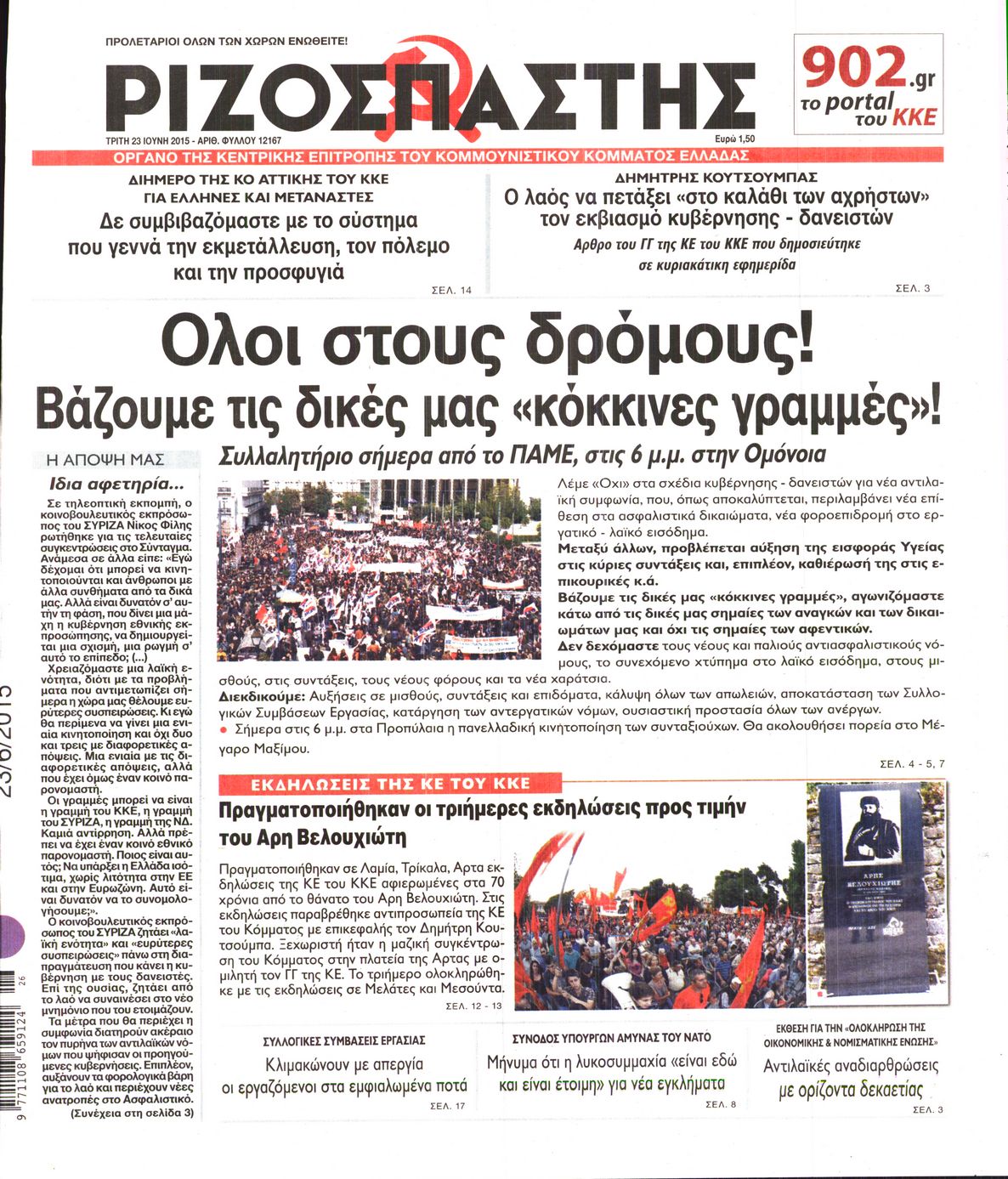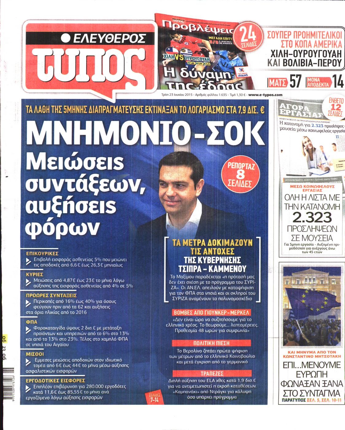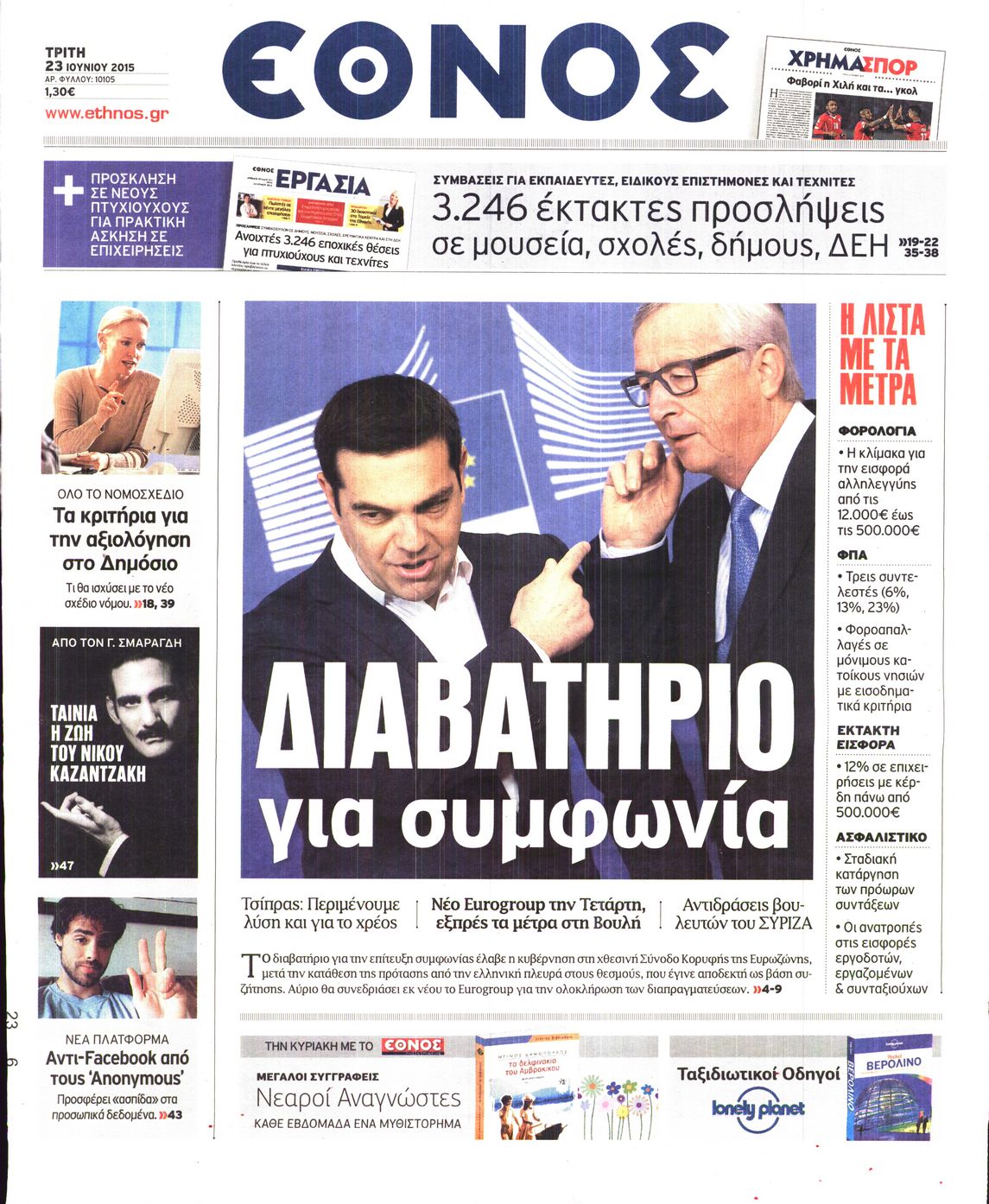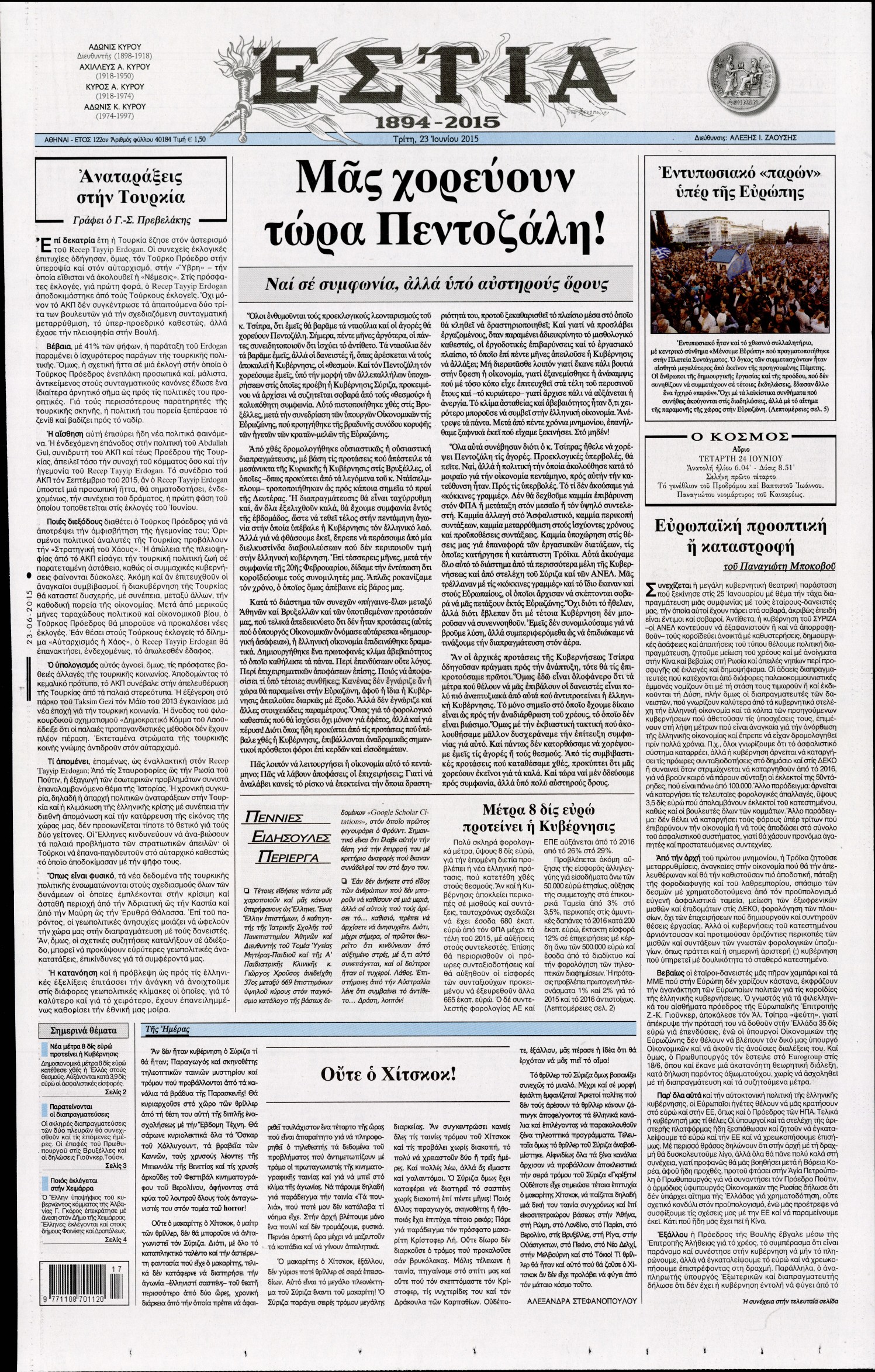 Οι πολιτικές εφημερίδες 23/6/2015 Enikos Newsroom 06:53, Τρίτη 23 Ιουνίου 2015 Media Διαβάστε τα σημερινά πρωτοσέλιδα των πολιτικών εφημερίδων: ΠΟΛΙΤΙΚΕΣ ΕΦΗΜΕΡΙΔΕΣ ΠΡΩΤΟΣΕΛΙΔΑ Μοιράσου το: σχολίασε κι εσύ (0 σχόλια) Ακολουθήστε το enikos.gr στο Google News και μάθετε πρώτοι όλες τις ειδήσεις Δείτε όλες τις τελευταίες ειδήσεις από την Ελλάδα και τον Κόσμο στο enikos.gr Ειδήσεις Ροή Ειδήσεων 2 ώρες πριν Γιορτές με μπλόκα για τους αγρότες: Ανοίγουν διόδια και μοιράζουν προϊόντα στους ταξιδιώτες 8 λεπτά πριν Τσιάρας για αγρότες: Ικανοποιείται το αίτημα για αφορολόγητο πετρέλαιο στη μάνικα, πρόθεσή μας να μειωθεί ακόμη περισσότερο η τιμή στο ρεύμα 22 λεπτά πριν Αρχεία Έπσταϊν: Οι συγκλονιστικές φωτογραφίες – Ο Μάικλ Τζάκσον, ο Μικ Τζάγκερ και ο Κέβιν Σπέισι ανάμεσα στους διάσημους που απεικονίζονται 2 ώρες πριν Νέες ταυτότητες: Μεγάλη αναμονή για ραντεβού στην Αττική – Τέλος τα ταξίδια εκτός Ελλάδος από τον Αύγουστο για όσους δεν έχουν αλλάξει 54 λεπτά πριν Ινδία: Επτά ελέφαντες σκοτώθηκαν κατά τη σύγκρουση επιβατικού τρένου με κοπάδι 3 ώρες πριν Μία νέα «χρυσή» περίοδος αρχίζει για 3 ζώδια από σήμερα – «Μία αναπάντεχη ευκαιρία οδηγεί στην επιτυχία» 5 ώρες πριν Αρχαιολόγοι ανακάλυψαν σε χωράφι απεικόνιση 600 ετών ενός Αγίου – Τα στοιχεία που δείχνουν ότι μαρτύρησε 4 ώρες πριν Αγχώνεται για το χριστουγεννιάτικο δώρο που πήρε στην πλούσια σύντροφό του – «Φοβάμαι πως θα το βρει φθηνιάρικο, φοράει βραχιόλια Cartier» 52 λεπτά πριν Διαιτολόγος αποκαλύπτει 9 πρωινές συνήθειες που «λιώνουν» το κοιλιακό λίπος – «Υποστηρίζουν την υγιεινή απώλεια βάρους» 8 λεπτά πριν Τσιάρας για αγρότες: Ικανοποιείται το αίτημα για αφορολόγητο πετρέλαιο στη μάνικα, πρόθεσή μας να μειωθεί ακόμη περισσότερο η τιμή στο ρεύμα 15 λεπτά πριν Η Ζιζέλ Μπούντχεν παντρεύτηκε τον δάσκαλο ζίου-ζίτσου, Χοακίμ Βαλέντε 22 λεπτά πριν Αρχεία Έπσταϊν: Οι συγκλονιστικές φωτογραφίες – Ο Μάικλ Τζάκσον, ο Μικ Τζάγκερ και ο Κέβιν Σπέισι ανάμεσα στους διάσημους που απεικονίζονται 31 λεπτά πριν Χρήστος Μάντακας: «Θα μπορούσα να είχα φύγει από τη ζωή, δεν μπορούσα να περπατήσω…» 38 λεπτά πριν Εντυπωσιακό βίντεο από «τσουνάμι» πάγου στη Σιβηρία – Πώς προκαλείται το σπάνιο φαινόμενο ENIKOS NETWORK Είστε μόνιμα απρόσεκτοι; 3 σημάδια που δείχνουν ότι μπορεί να είναι σύμπτωμα πάθησης Πόσα κιλά παίρνουμε πραγματικά τα Χριστούγεννα, σύμφωνα με την επιστήμη – Πώς να το αποτρέψουμε; Χρήστος Δήμας: Στα 2,5 εκατ. ευρώ την ημέρα το κόστος από το άνοιγμα των διοδίων από τους αγρότες – Θα αξιώσουν αποζημίωση ... Χριστούγεννα και Πρωτοχρονιά: Πώς αμείβονται όσοι εργαστούν Χαρτογραφώντας το «σημείο χωρίς επιστροφή»: Για πρώτη φορά αποκαλύπτεται με λεπτομέρεια το ακανθώδες όριο της ατμόσφαιρας τ... Η Google καταργεί τη λειτουργία «dark web report» – Πώς θα μπορούν οι χρήστες να διαγράφουν τα δεδομένα τους περισσότερα 11:41 , Σάββατο 20 Δεκεμβρίου 2025 «Η αγάπη δεν χάνεται ποτέ»: Η μικρού μήκους ταινία κινουμένων σχεδίων που θέτει ερωτήματα για τη ζωή και τον θάνατο Ο θάνατος είναι ένα από τα πιο σκληρά θέματα που καλείται να διαχειριστεί κάποιος στη διάρκεια... 09:30 , Σάββατο 20 Δεκεμβρίου 2025 «Porto Leone: Στη γειτονιά με τα κόκκινα φανάρια» – Ο Χρόνης αποκαλύπτει στην Αλεξάνδρα το μυστικό για το παιδί της Λένας Η μεγάλη δραματική σειρά του Apha «Porto Leone: Στη γειτονιά με τα κόκκινα φανάρια» μας μεταφέ... 08:14 , Σάββατο 20 Δεκεμβρίου 2025 Τρομεροί γονείς: Η Μαρία Καβογιάννη εισβάλλει