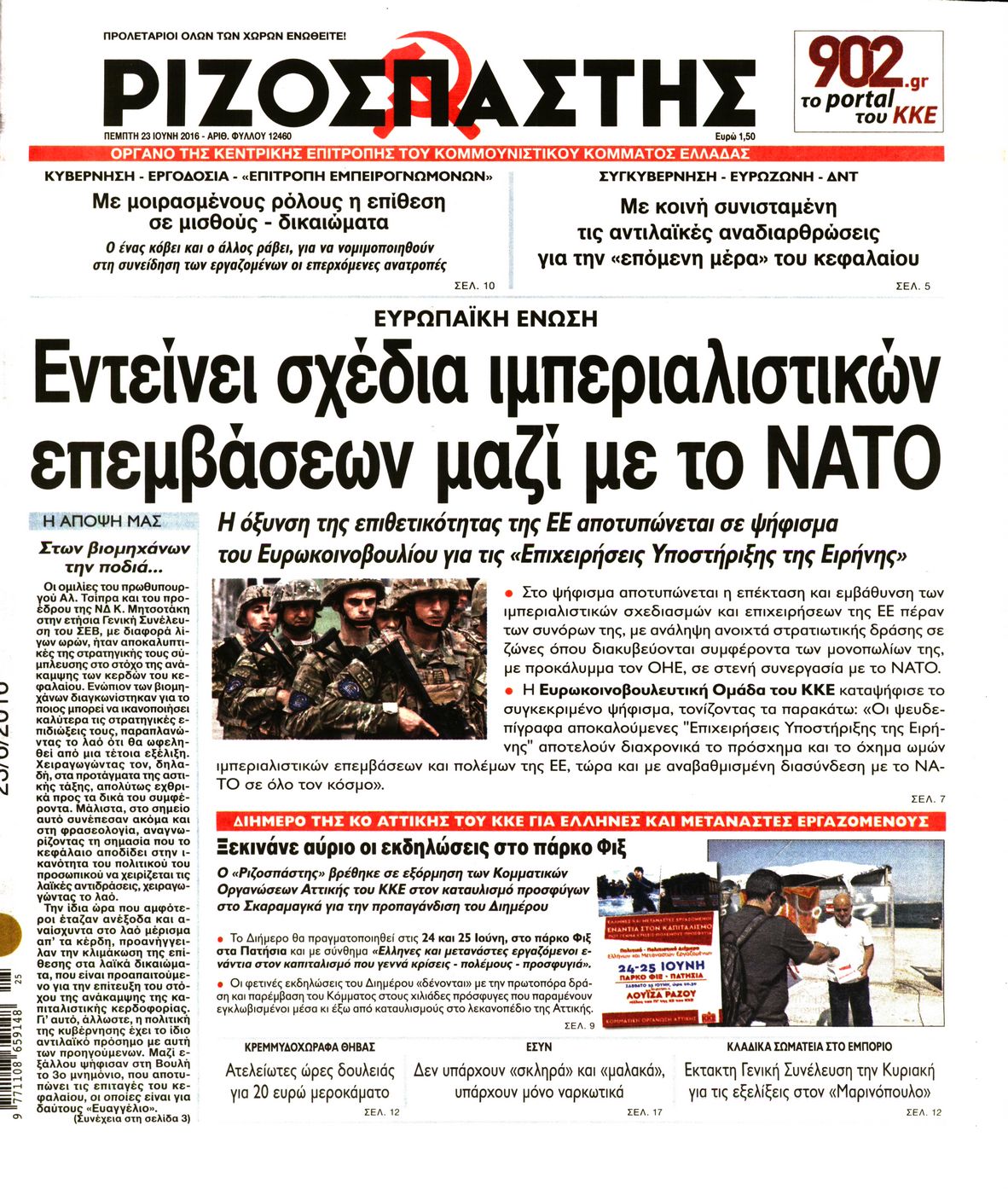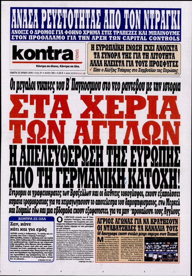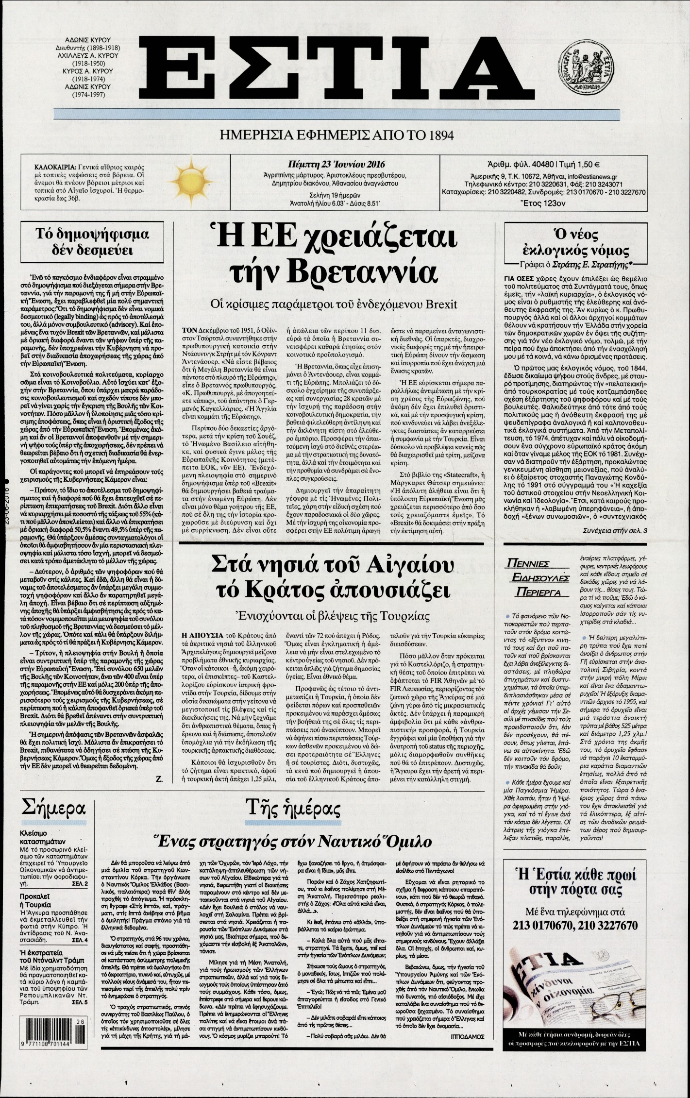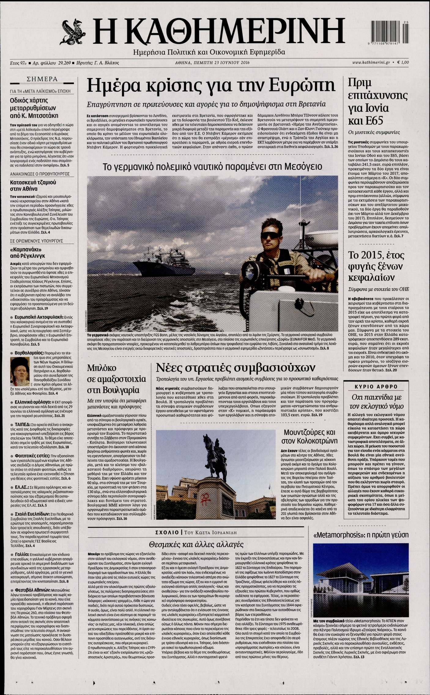 Οι πολιτικές εφημερίδες 23/6/2016 Enikos Newsroom 05:02, Πέμπτη 23 Ιουνίου 2016 Media Διαβάστε τα σημερινά πρωτοσέλιδα των πολιτικών εφημερίδων: ΠΟΛΙΤΙΚΕΣ ΕΦΗΜΕΡΙΔΕΣ ΠΡΩΤΟΣΕΛΙΔΑ Μοιράσου το: σχολίασε κι εσύ (0 σχόλια) Ακολουθήστε το enikos.gr στο Google News και μάθετε πρώτοι όλες τις ειδήσεις Δείτε όλες τις τελευταίες ειδήσεις από την Ελλάδα και τον Κόσμο στο enikos.gr Ειδήσεις Ροή Ειδήσεων 4 ώρες πριν Αυξάνουν την πίεση προς την κυβέρνηση οι αγρότες: Κλείνουν παρακαμπτήριους και ανοίγουν διόδια – Τι θα γίνει τις γιορτές 2 ώρες πριν ΟΠΕΚΕΠΕ: Προφυλακιστέος ο φερόμενος αρχηγός και ο λογιστής της εγκληματικής οργάνωσης 3 ώρες πριν Φοινικούντα: Το Σάββατο απολογείται ο 30χρονος γιος γνωστού επιχειρηματία της Πλάκας που παραδόθηκε – Όσα είπε στους αστυνομικούς και ο ρόλος του στο έγκλημα 3 ώρες πριν Μπορεί ο Μαδούρο να αντέξει τον αποκλεισμό του Τραμπ; Τι θα χρειαστεί η Ουάσινγκτον για να τον ανατρέψει 5 ώρες πριν Πρίγκιπας Ουίλιαμ – Κέιτ: Η νέα οικογενειακή φωτογραφία για τις Χριστουγεννιάτικες κάρτες του 2025 4 ώρες πριν Ύπνος: Η απλή βραδινή ρουτίνα για να προστατεύσετε τα μαλλιά σας από το κρύο κατά τη διάρκεια του χειμώνα 5 ώρες πριν Manifesting: Πώς να συναντήσετε τον σύντροφο της ζωής σας, ανάλογα με τον μήνα γέννησής σας 2 ημέρες πριν 20 χρόνια τα Χριστούγεννα ξεκινούν στα Public με μεγάλη ποικιλία σε δώρα! 3 ώρες πριν Αρχαιολόγοι ανακάλυψαν ρωμαϊκά τεχνουργήματα από μια πόλη που δεν υπήρξε ποτέ – Τα τρία εντυπωσιακά κτίρια και ο αμφορέας με τις… σαρδέλες 54 δευτερόλεπτα πριν ΑΕΚ-Κραϊόβα: Τα highlights της μυθικής ανατροπής της «Ένωσης» 16 λεπτά πριν Μιχάλης Χρυσοχοΐδης από την Κωνσταντινούπολη: Κοινές επιχειρήσεις Ελλάδας – Τουρκίας ενάντια στο οργανωμένο έγκλημα 38 λεπτά πριν Μάρκο Νίκολιτς: «Είμαι περήφανος για τους παίκτες μου, όποιος αντίπαλος και να έρθει θα προετοιμαστούμε» 47 λεπτά πριν ΟΗΕ: Την εκλογή του νέου ύπατου αρμοστή για τους Πρόσφυγες Μπαρχάμ Άχμεντ Σαλίχ χαιρέτησε ο Αντόνιο Γκουτέρες 52 λεπτά πριν Σύνοδος Κορυφής στις Βρυξέλλες: Ακόμη πιο κοντά σε διέξοδο για τη χρηματοδότηση της Ουκρανίας ENIKOS NETWORK Σε περίοδο αυξημένης δραστηριότητας η γρίπη στην Ελλάδα-Μέτρα προστασίας από τον ΕΟΔΥ Σκέφτεστε συνέχεια συζητήσεις που έχετε κάνει; Τι σημαίνει αυτό, σύμφωνα με ειδικό Στεγαστικό: Τι λέει η ΠΟΜΙΔΑ για τα νέα μέτρα που ανακοίνωσε ο Κυριάκος Μητσοτάκης Λαγκάρντ: Αισιόδοξη για την ανάπτυξη της Ευρωζώνης, αβέβαιη για τον πληθωρισμό Χαρτογραφώντας το «σημείο χωρίς επιστροφή»: Για πρώτη φορά αποκαλύπτεται με λεπτομέρεια το ακανθώδες όριο της ατμόσφαιρας τ... Η Google καταργεί τη λειτουργία «dark web report» – Πώς θα μπορούν οι χρήστες να διαγράφουν τα δεδομένα τους περισσότερα 17:45 , Πέμπτη 18 Δεκεμβρίου 2025 ROUK ZOUK: Εορταστικό επεισόδιο με καλεσμένους τους πρωταγωνιστές του «Γιατί ρε πατέρα» Το Σάββατο 20 Δεκεμβρίου στις 21:00, η Ζέτα Μακρυπούλια υποδέχεται εκλεκτούς ηθοποιούς που όλο... 17:20 , Πέμπτη 18 Δεκεμβρίου 2025 Άγιος έρωτας: Η Χριστίνα εξομολογείται στον πατέρα Νικόλαο, απόψε στις 21:00 στον Alpha Η Νότα αποφασίζει να εκδικηθεί τον Πέτρο και τον Στέφανο, για χάρη του Λούη, όμως τα πράγματα ... 16:50 , Πέμπτη 18 Δεκεμβρίου 2025 Να μ’ αγαπάς: Ζωή και Φωτεινή συμφιλιώνονται ως μάνα με κόρη, απόψε στις 20:00 Η ταυτότητα του Άγγελου αποκαλύπτεται στο νέο επεισόδιο της σειράς “Να μ’ αγαπάς... 15:52 , Πέμπτη 18 Δεκεμβρίου 2025 Το Σπίτι Δίπλα Στο Ποτάμι: Το καθηλωτικό τελευταίο επεισόδιο για το 2025 απόψε στις 22:30 Κα
